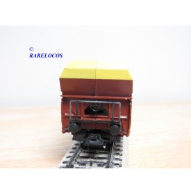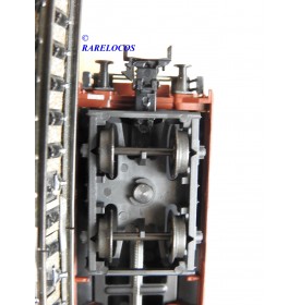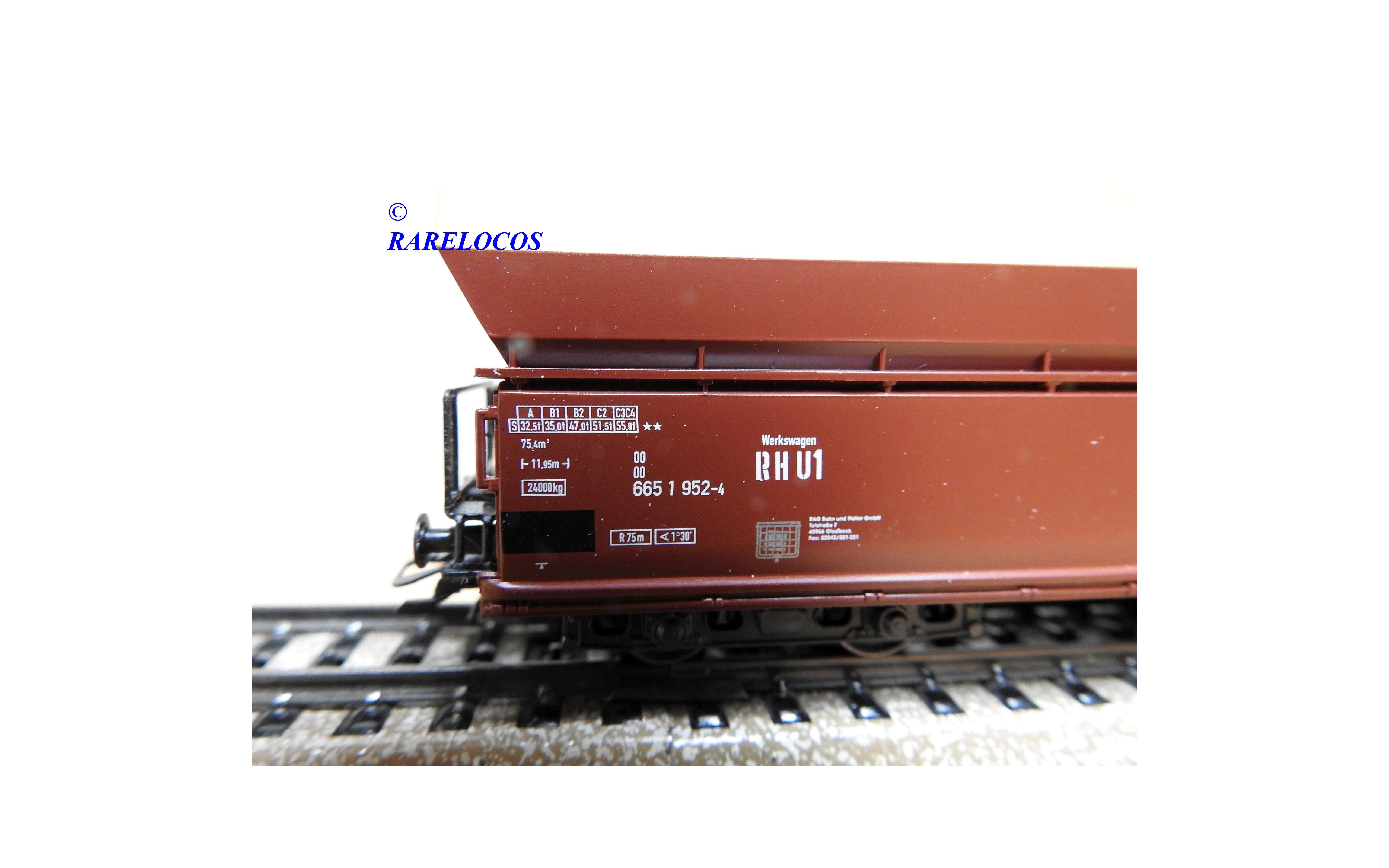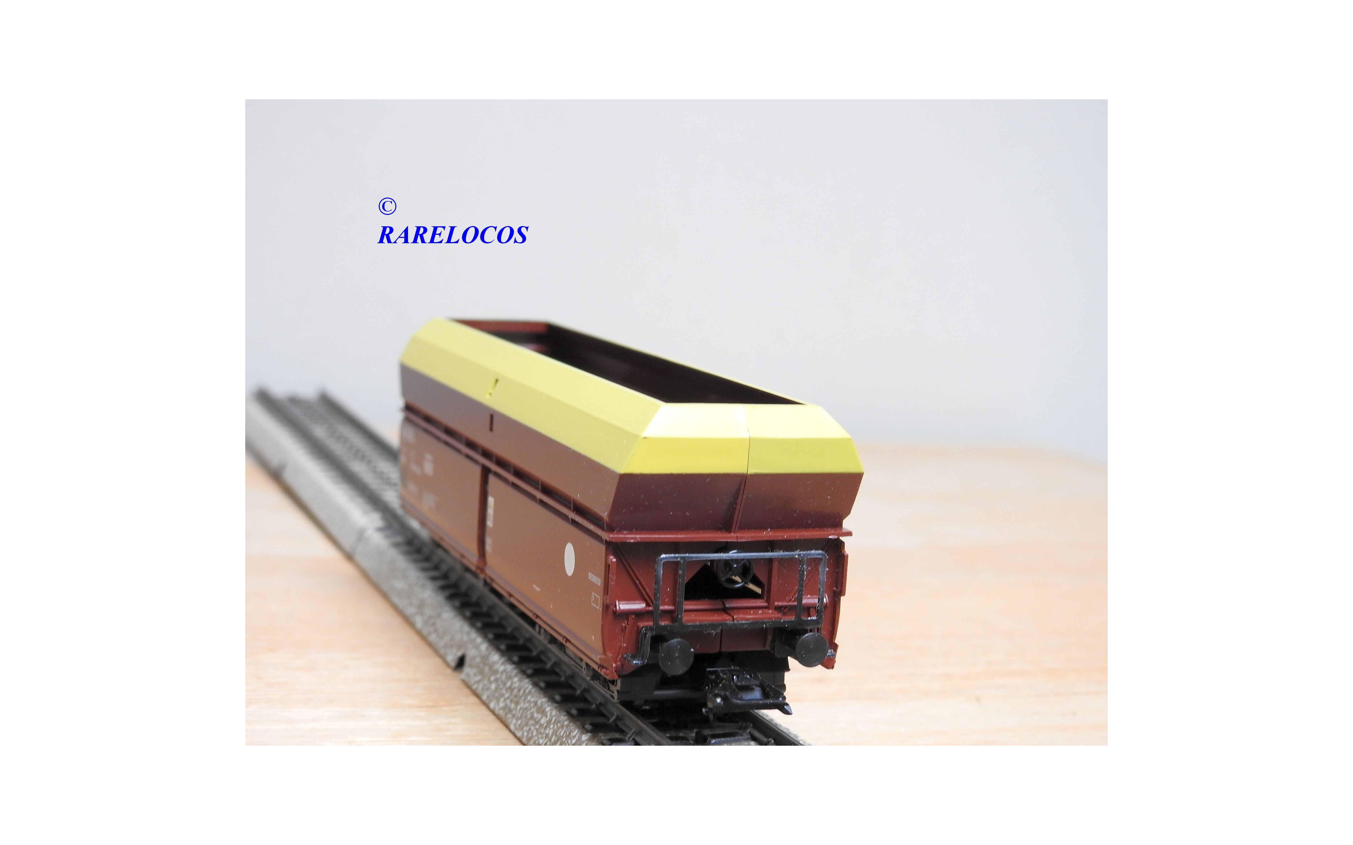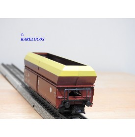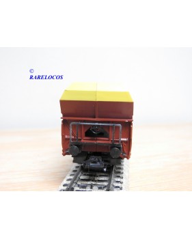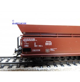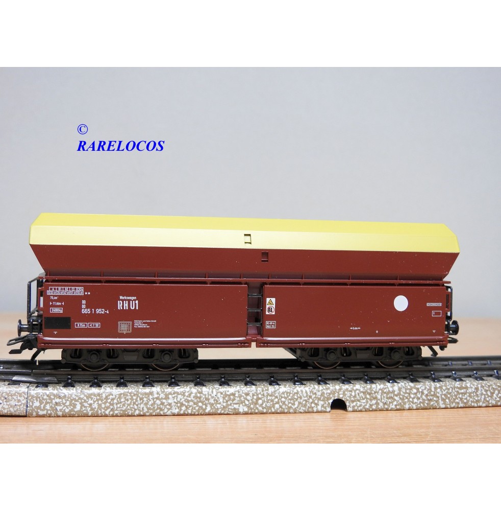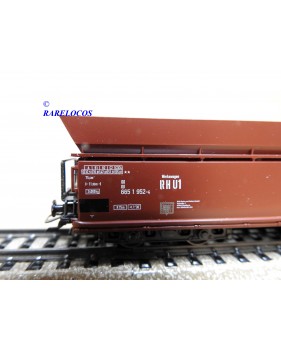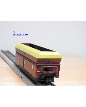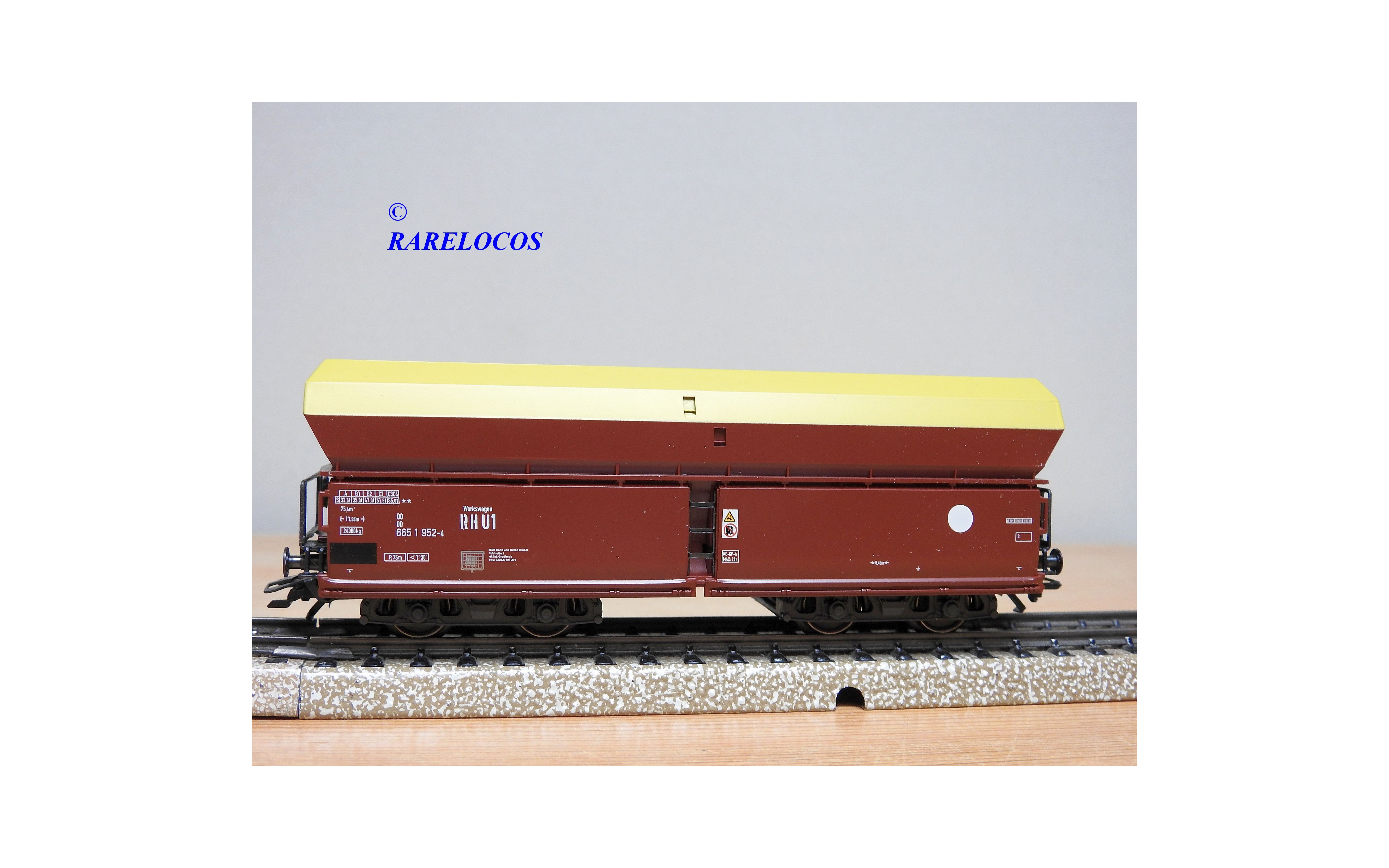 Wagon trémie grande capacité à 2 bogies pour transport de minerai à plate forme de serre freins à 2 bogies type Fals des chemins de fer privés allemands ( RAG Bahn und Hafen ), livrée marron à bordure jaune, immatriculation :665 1 952-4, emballage d'origine en état neuf.