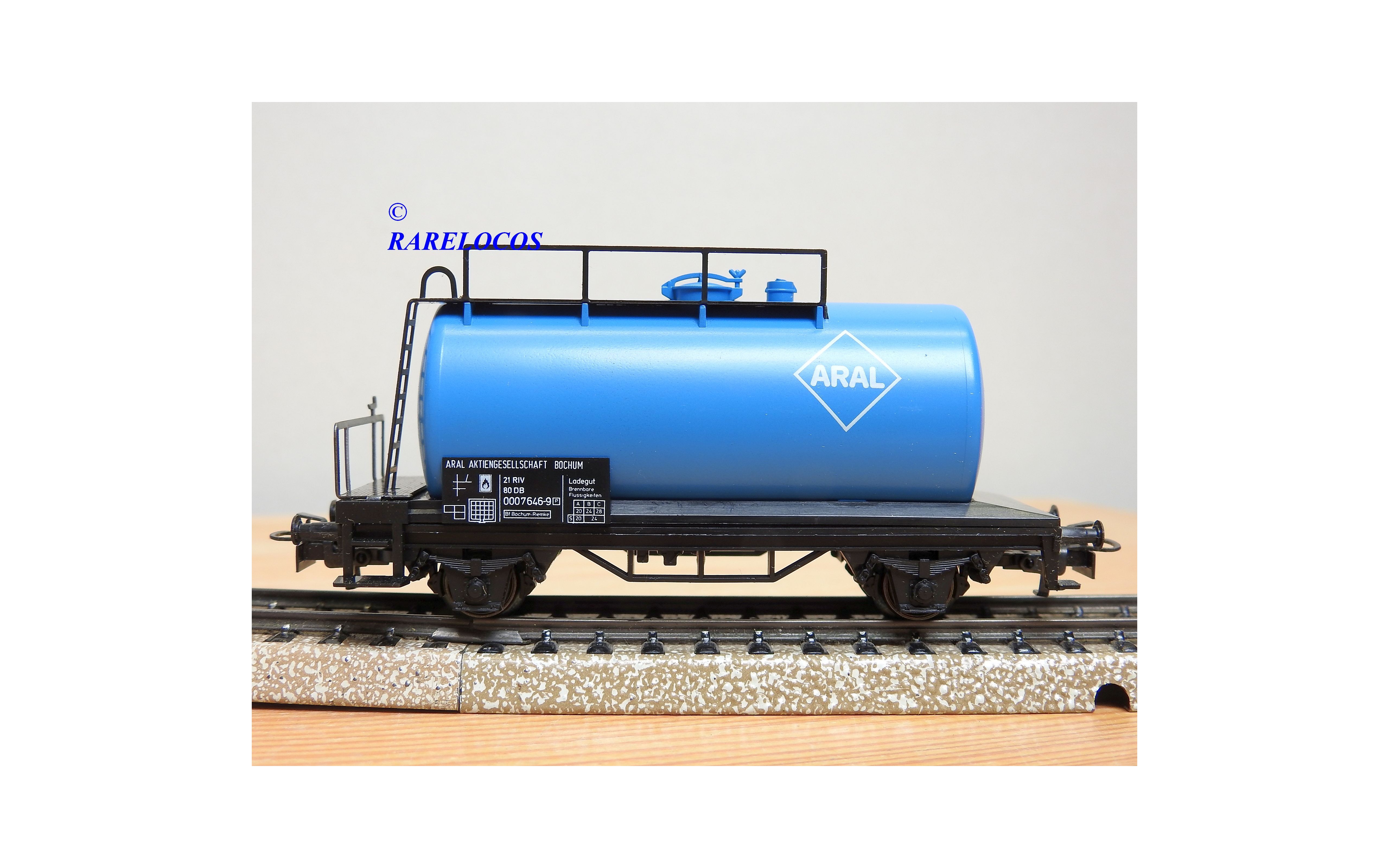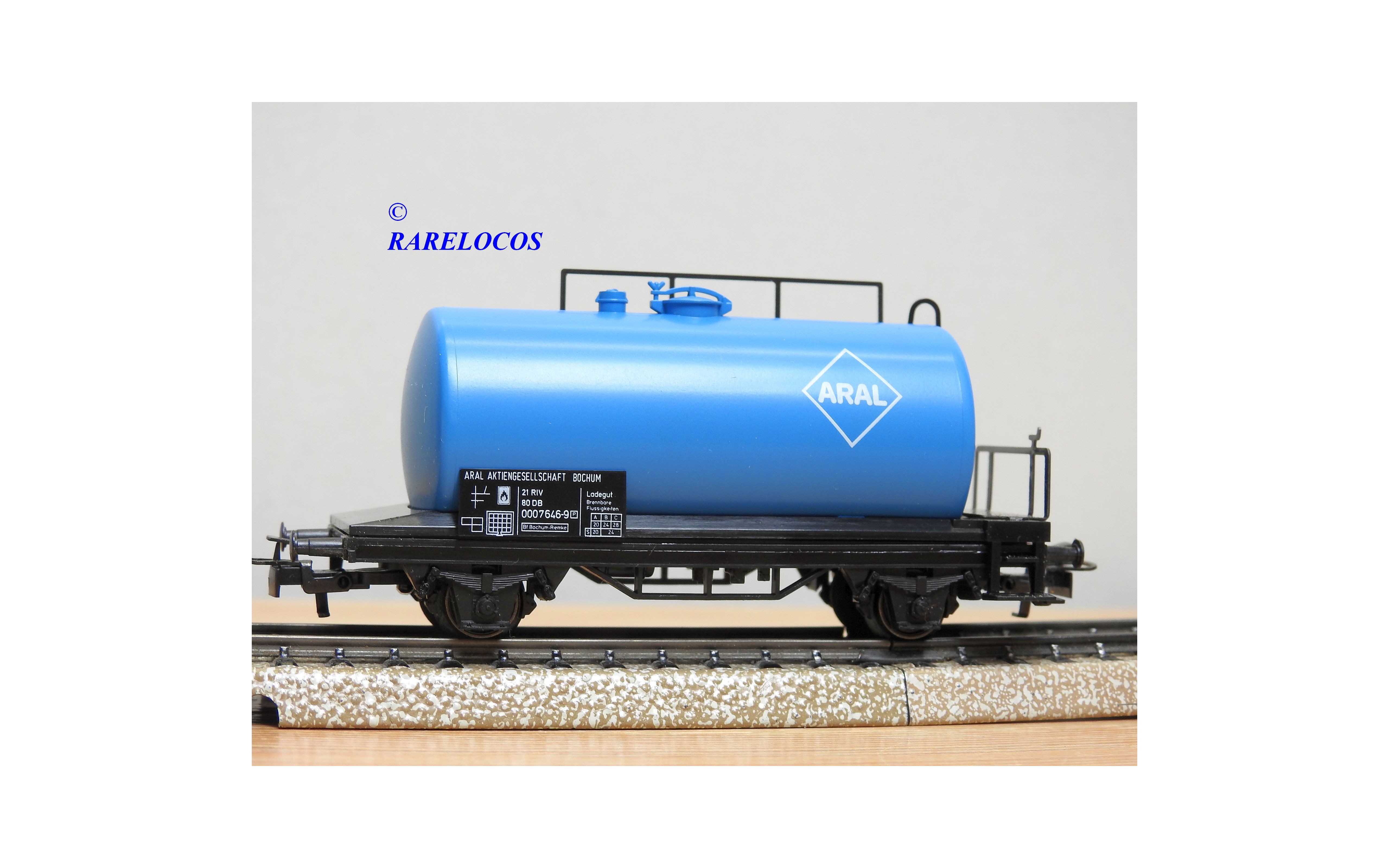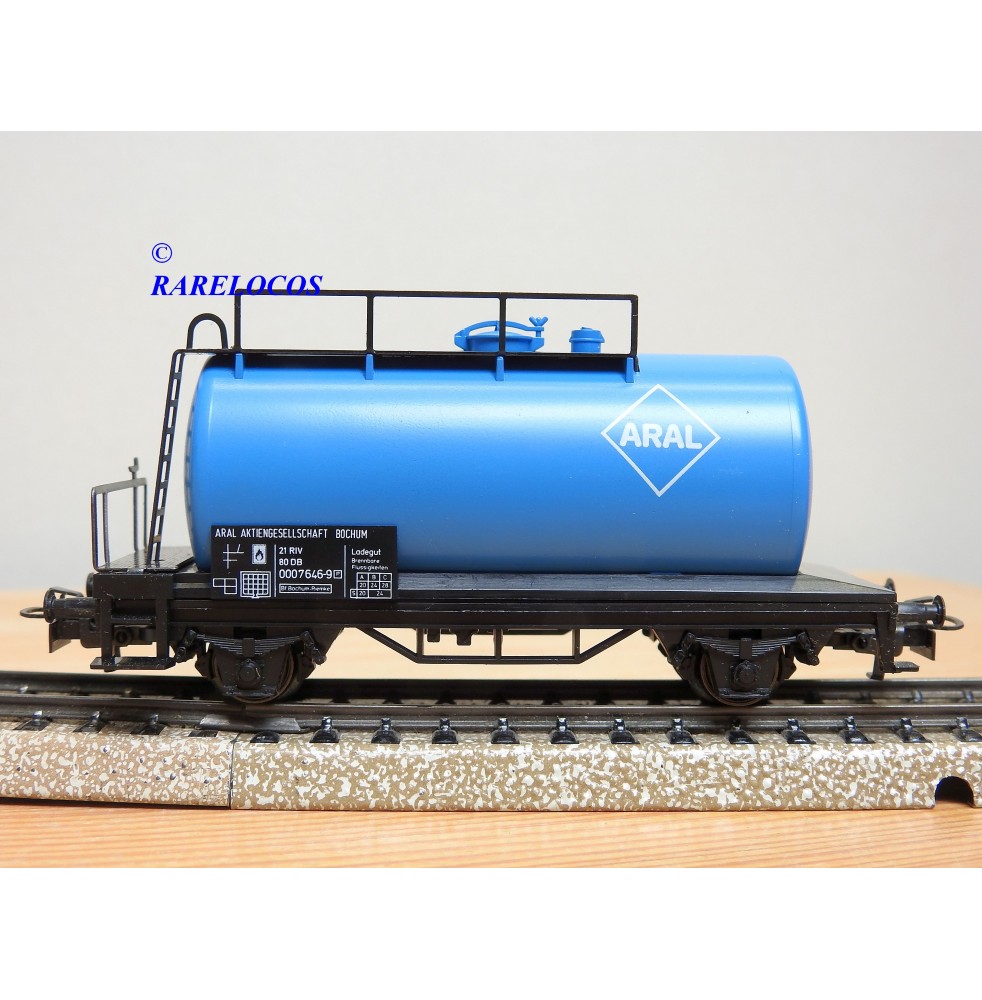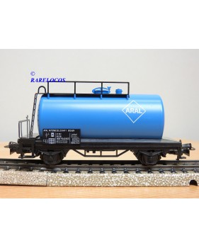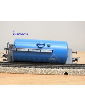 Wagon citerne unifié à 2 essieux des chemins de fer allemands ( DB ), livrée bleue avec marquages ARAL sur fond blanc, immatriculation : 0007646-9, boîte d'origine en excellent état.