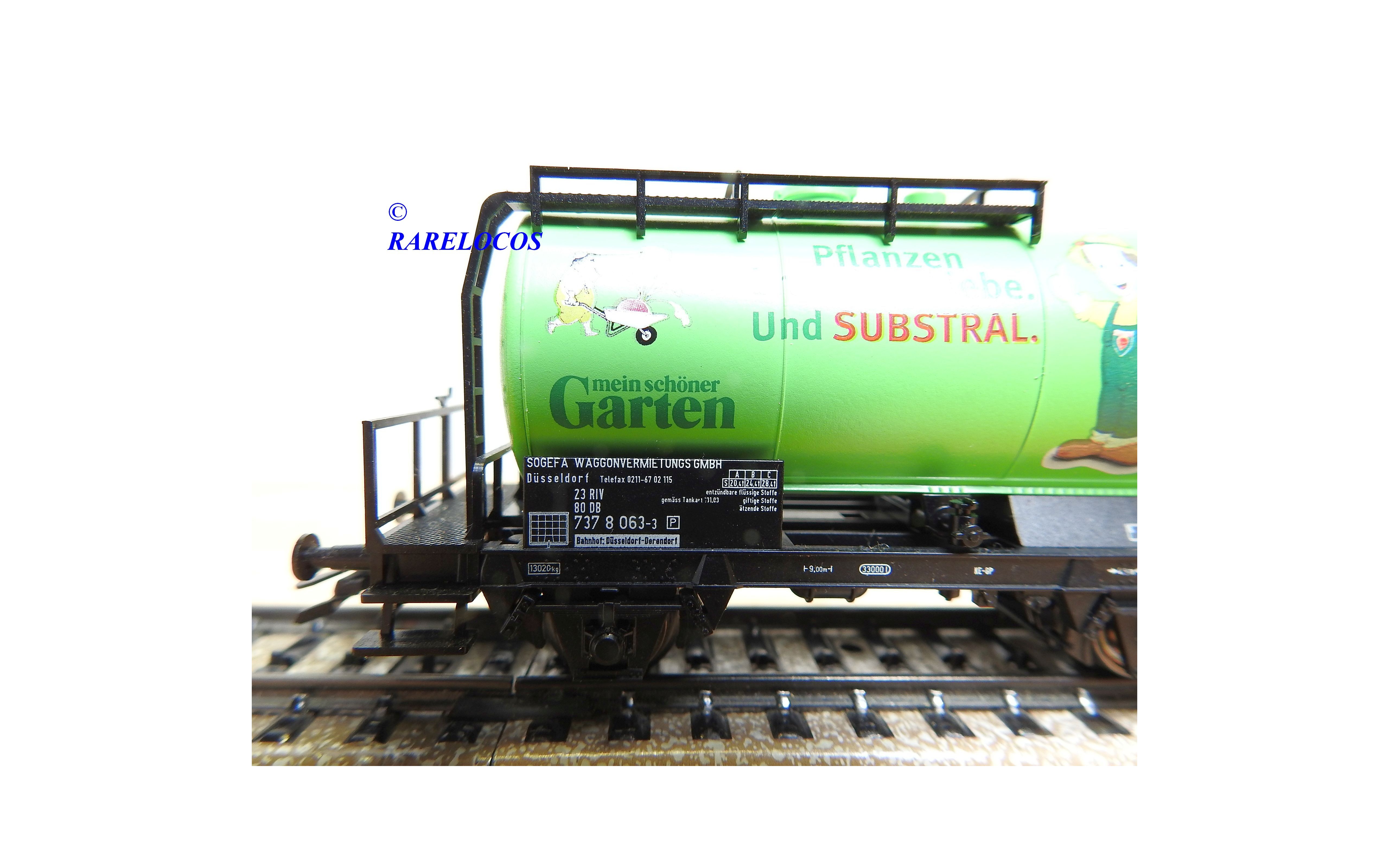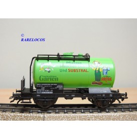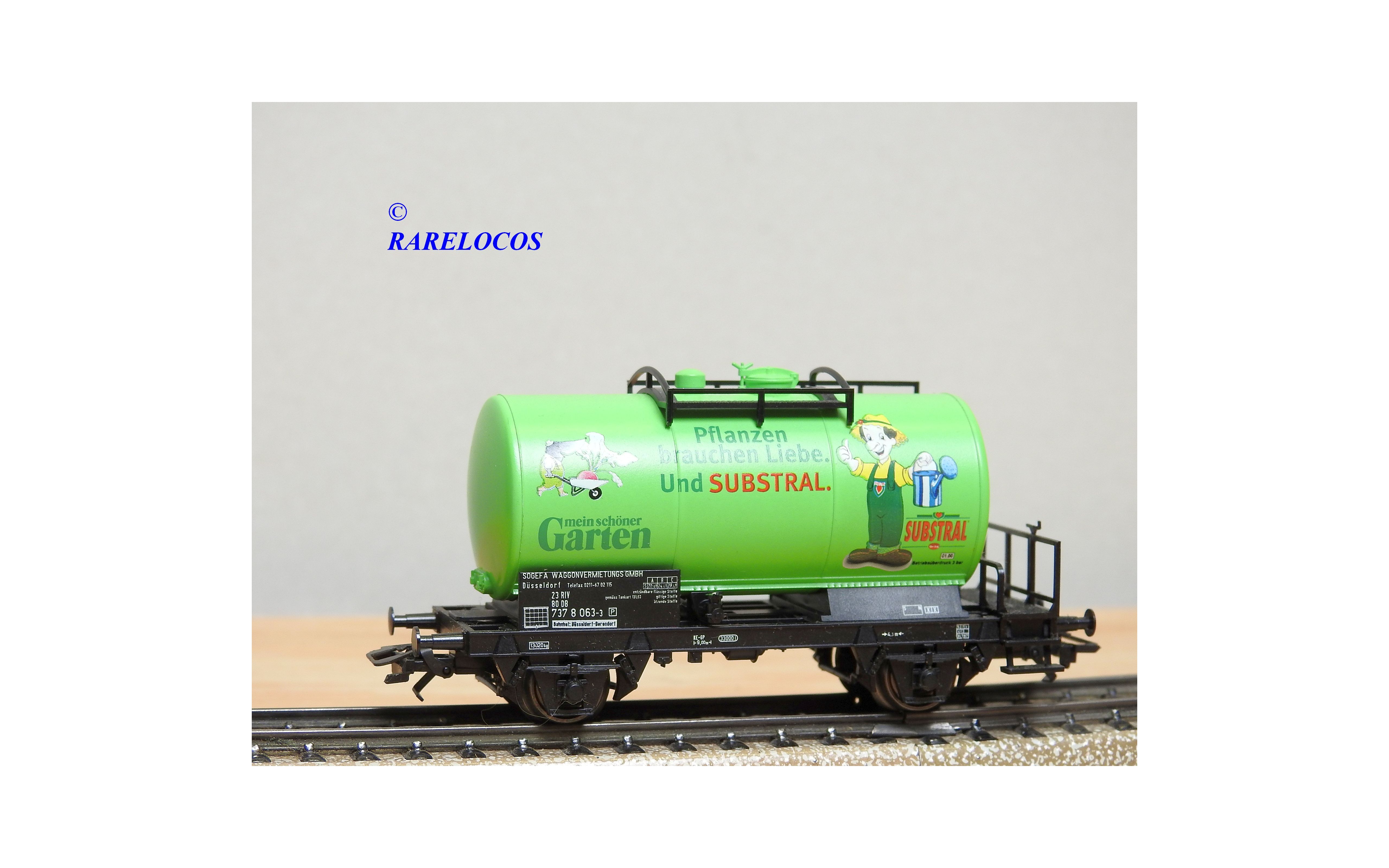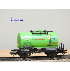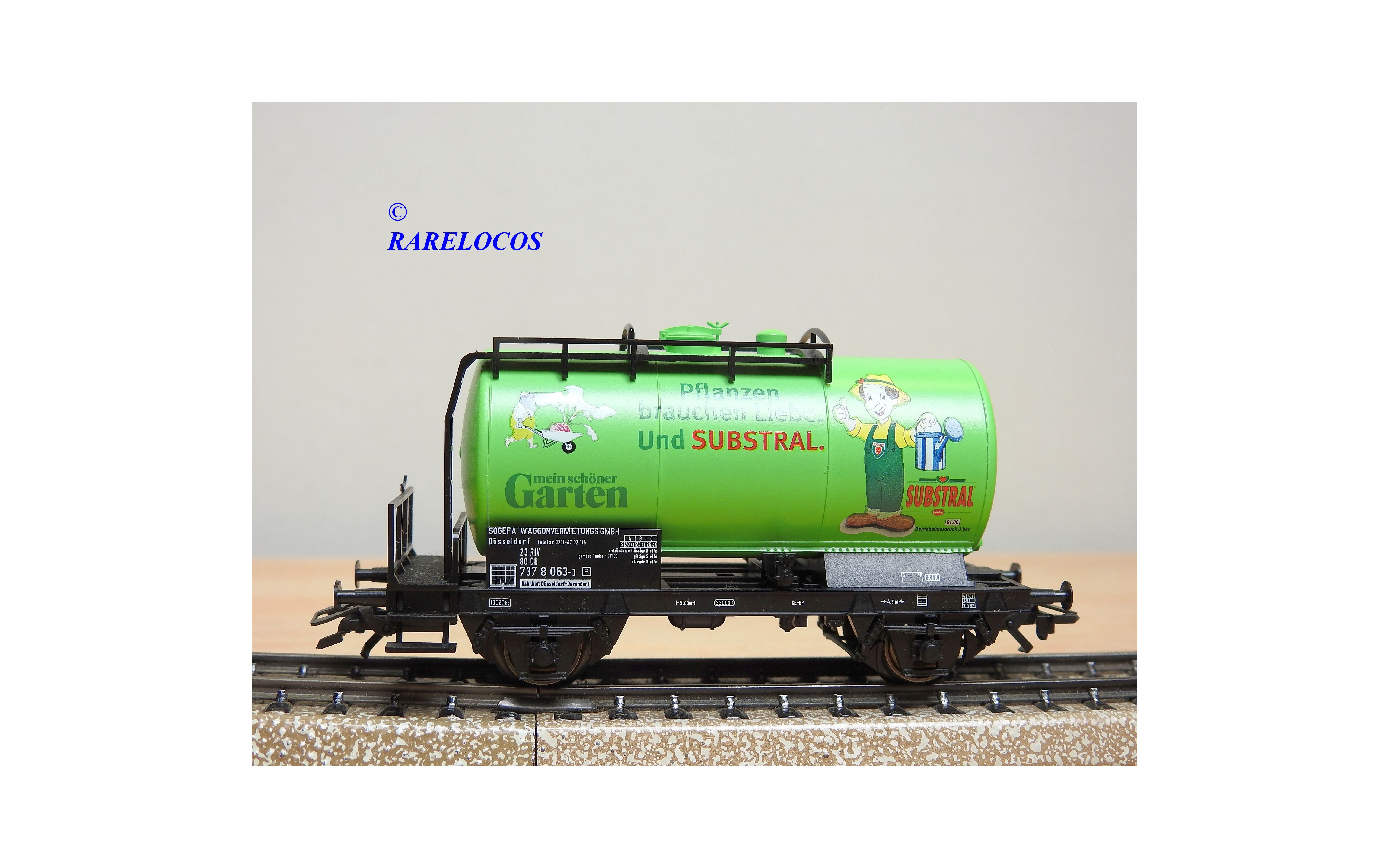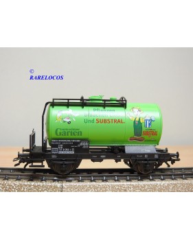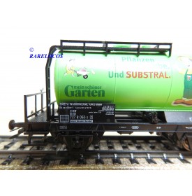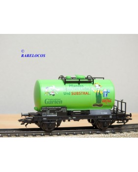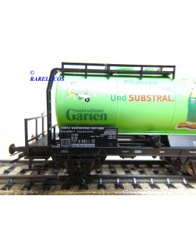 Wagon citerne unifié à 2 essieux à plate forme d' extrémité des chemins de fer allemands ( DB ), livrée vert pâle avec marquages SUBSTRAL, immatriculation : 23 80 737 8 063-3, boîte d'origine en excellent état.