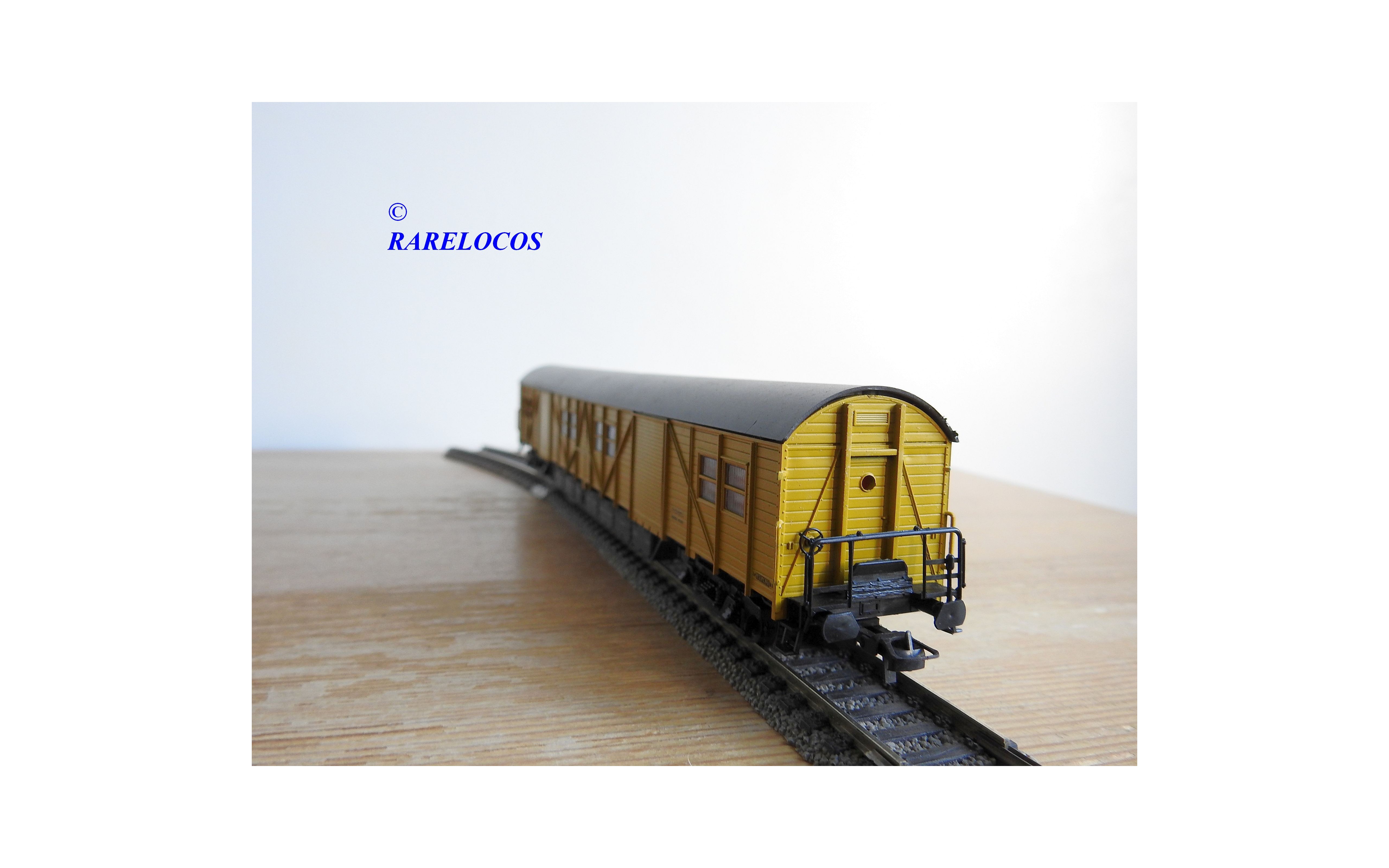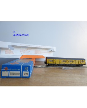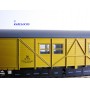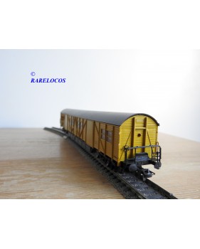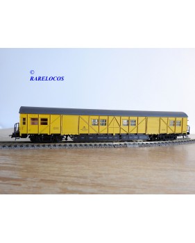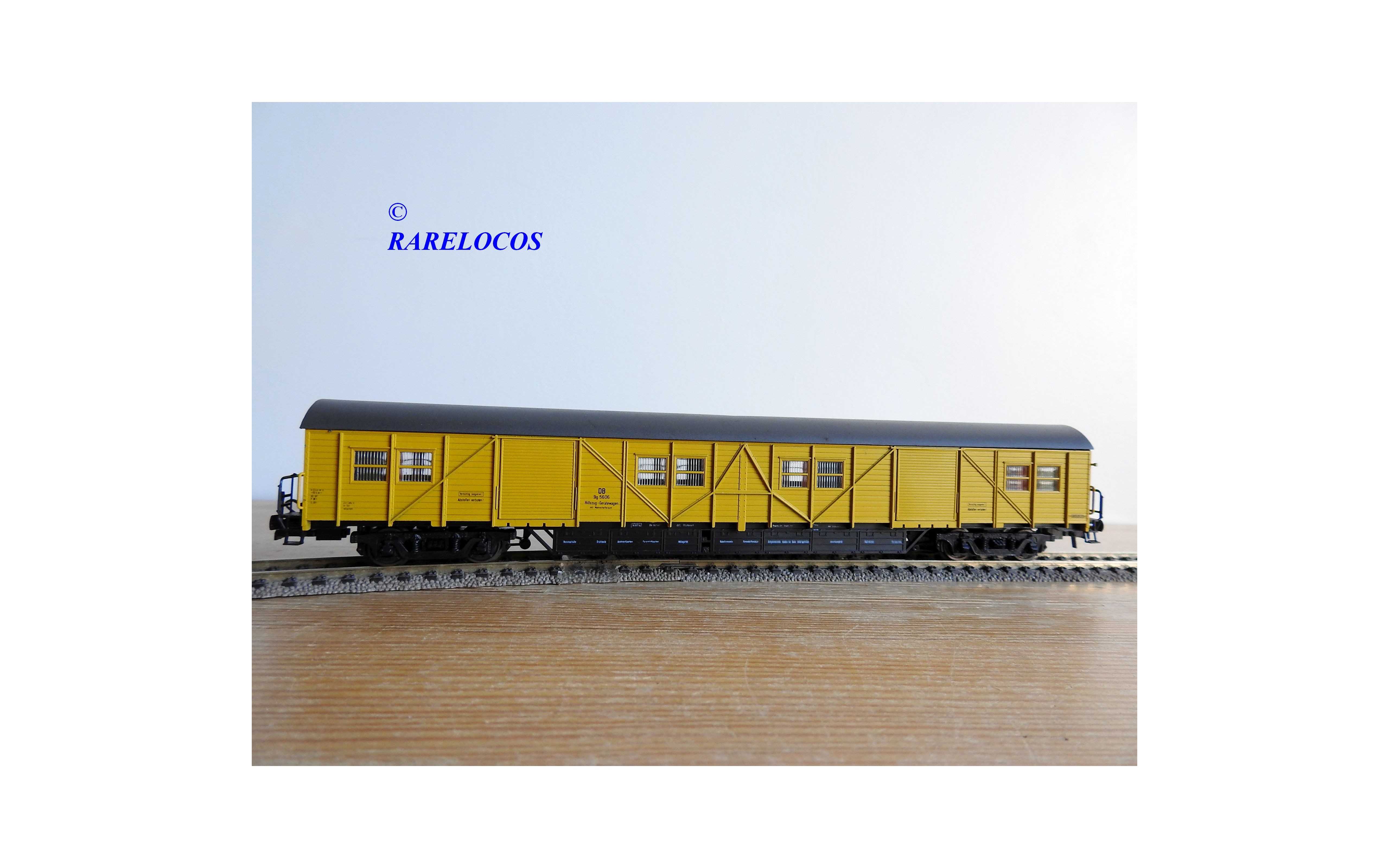 Fourgon atelier pour train de secours avec hébergement de l' équipage à 2 bogies type Stg des chemins de fer allemands ( DB ), livrée jaune à toit gris, pièces de détaillage encore scellées, immatriculation : Stg 5606, boîte d'origine en excellent état.