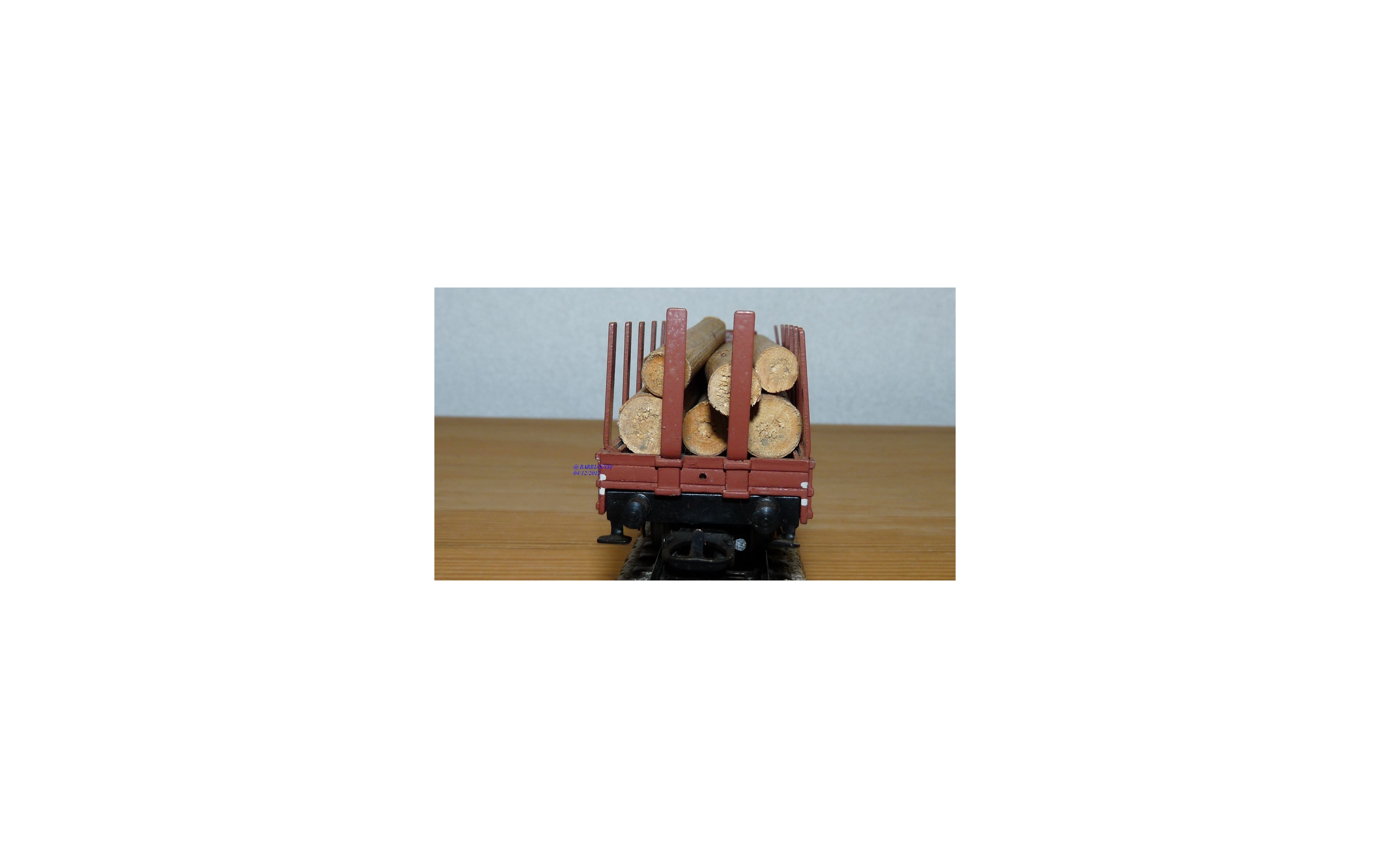 Wagon plat à ranchers à 2 essieux à guérite de serre freins des chemins de fer allemands ( DB ), tout en métal (alliage ), chargé de troncs d'arbres en bois ( je ne pense pas que ce soient ceux d'origine ! ), pas d' emballage d'origine.