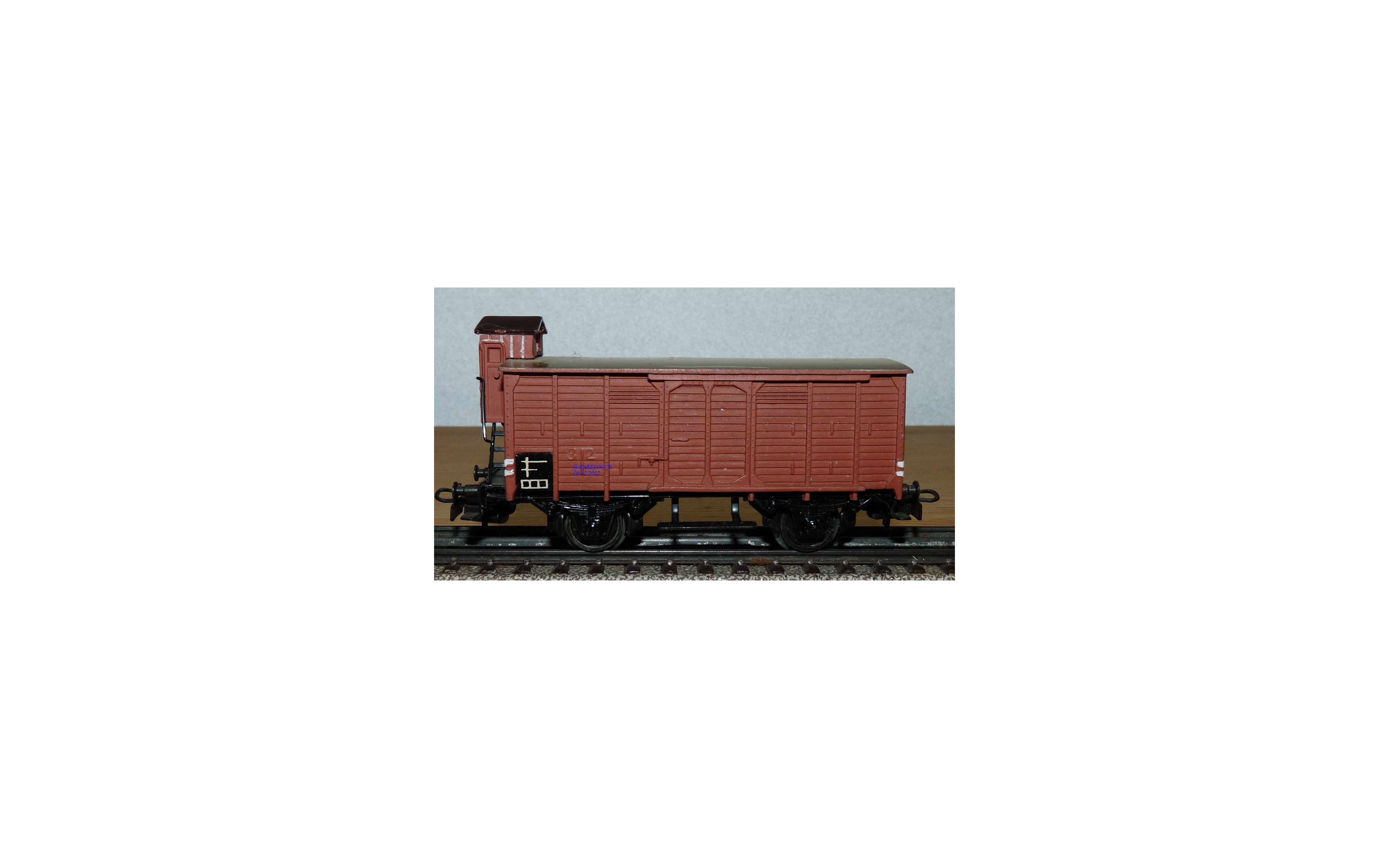 Wagon couvert à 2 essieux à guérite de serre freins des chemins de fer allemands ( DB ), tout en métal (alliage ), pas de boîte d'origine.