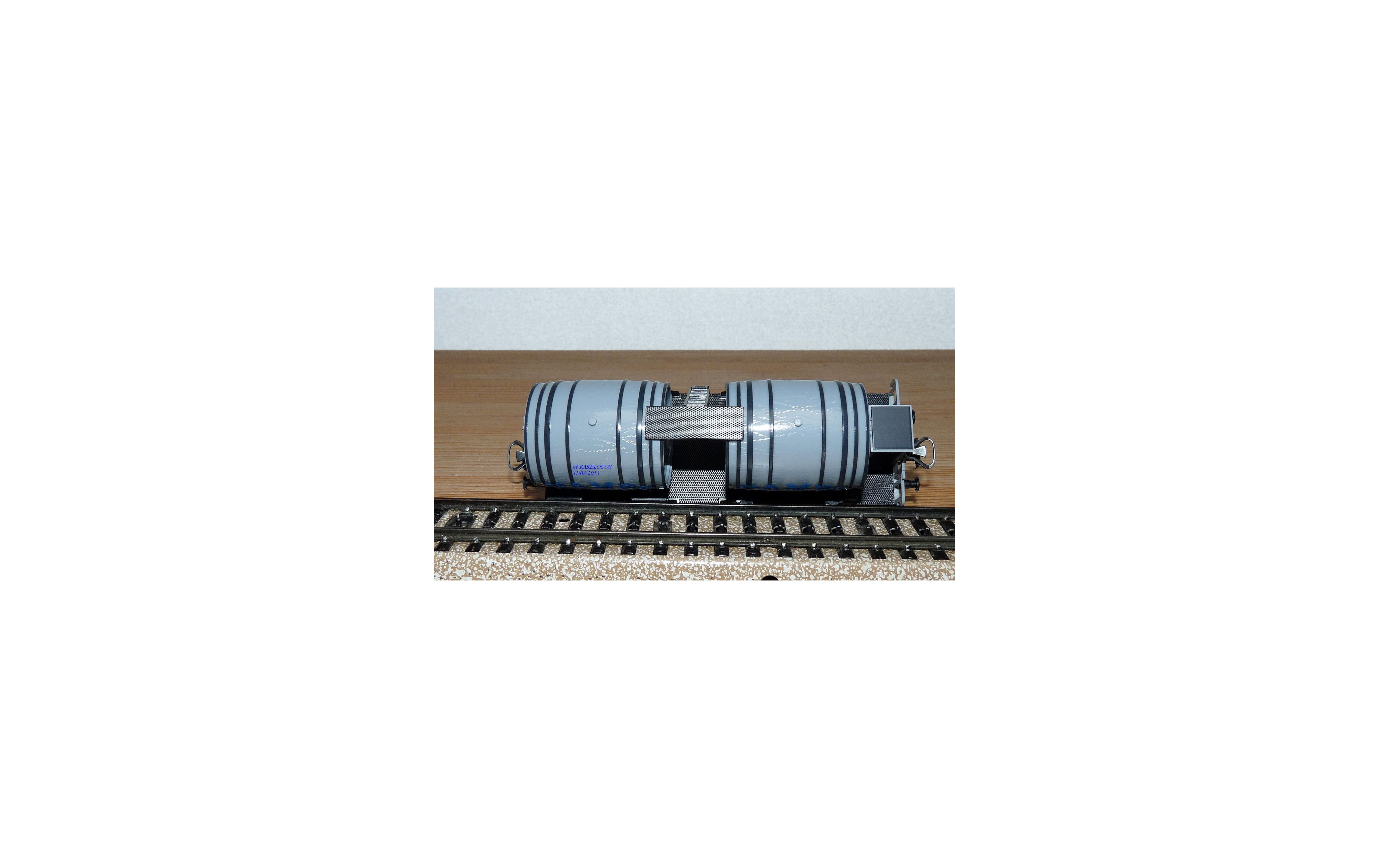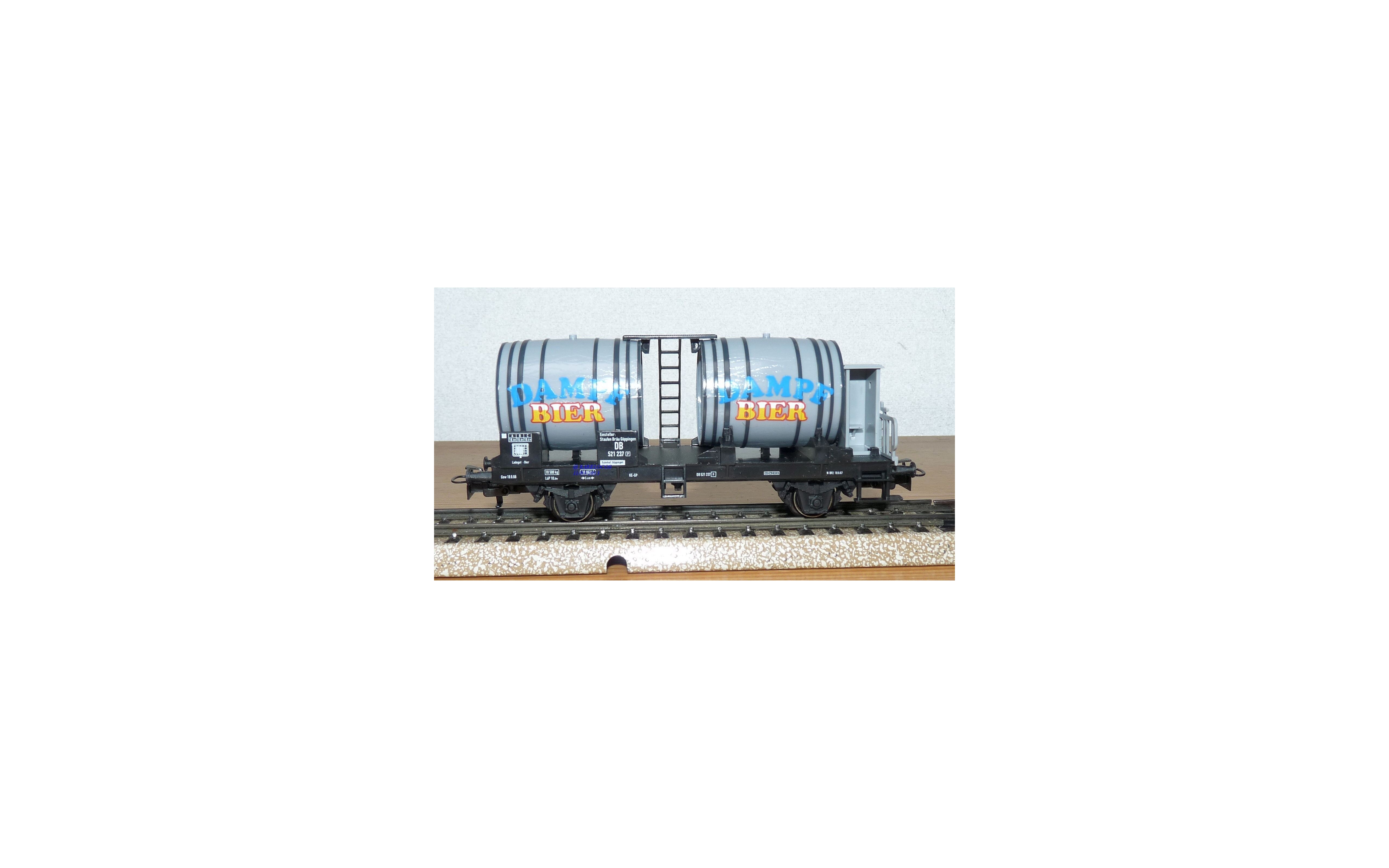 Wagon bi-foudres à guérite de serre freins à 2 essieux pour le transport de bière, marquages DAMPF BIER, emballage d'origine en état neuf.