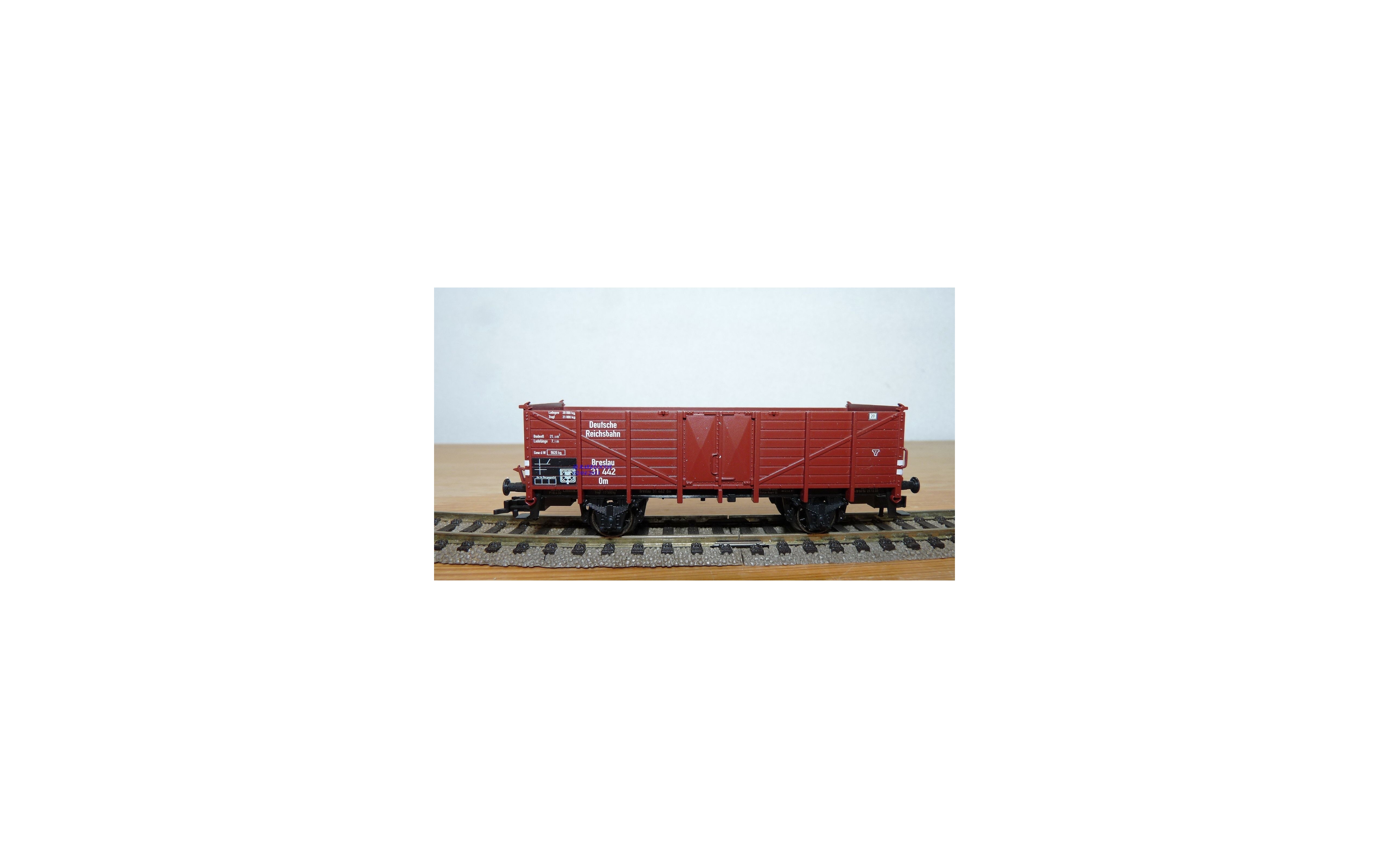 Wagon tombereau à guérite de serre freins ancien type Om 12 à 2 essieux des chemins de fer allemands ( DR ), livrée marron , attelages à élongation, emballage d'origine en état neuf.