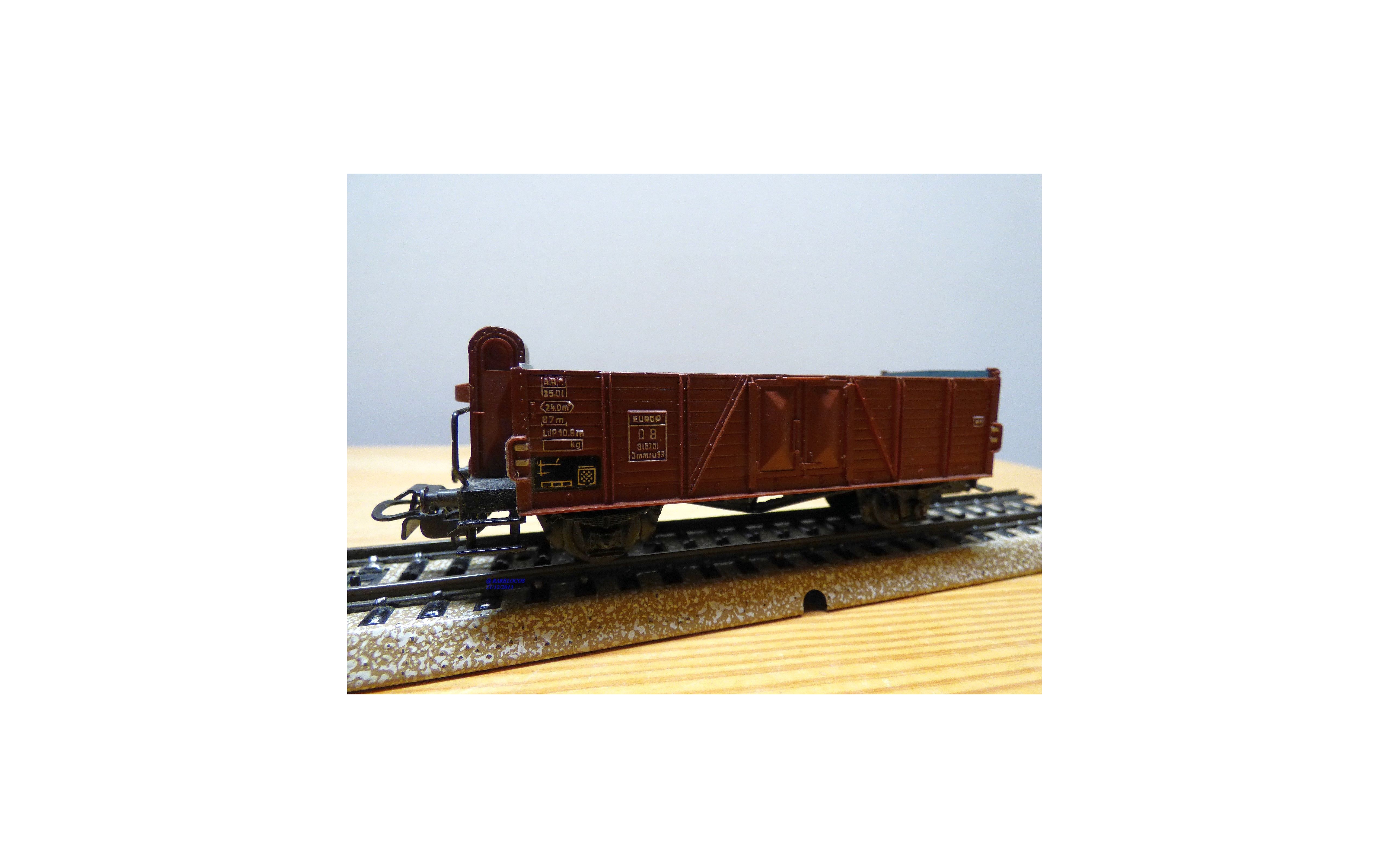 Wagon tombereau à guérite de serre freins type Omm 13 à 2 essieux des chemins de fer allemands ( DR ), livrée marron avec marquages EUROP, emballage d'origine en état neuf.