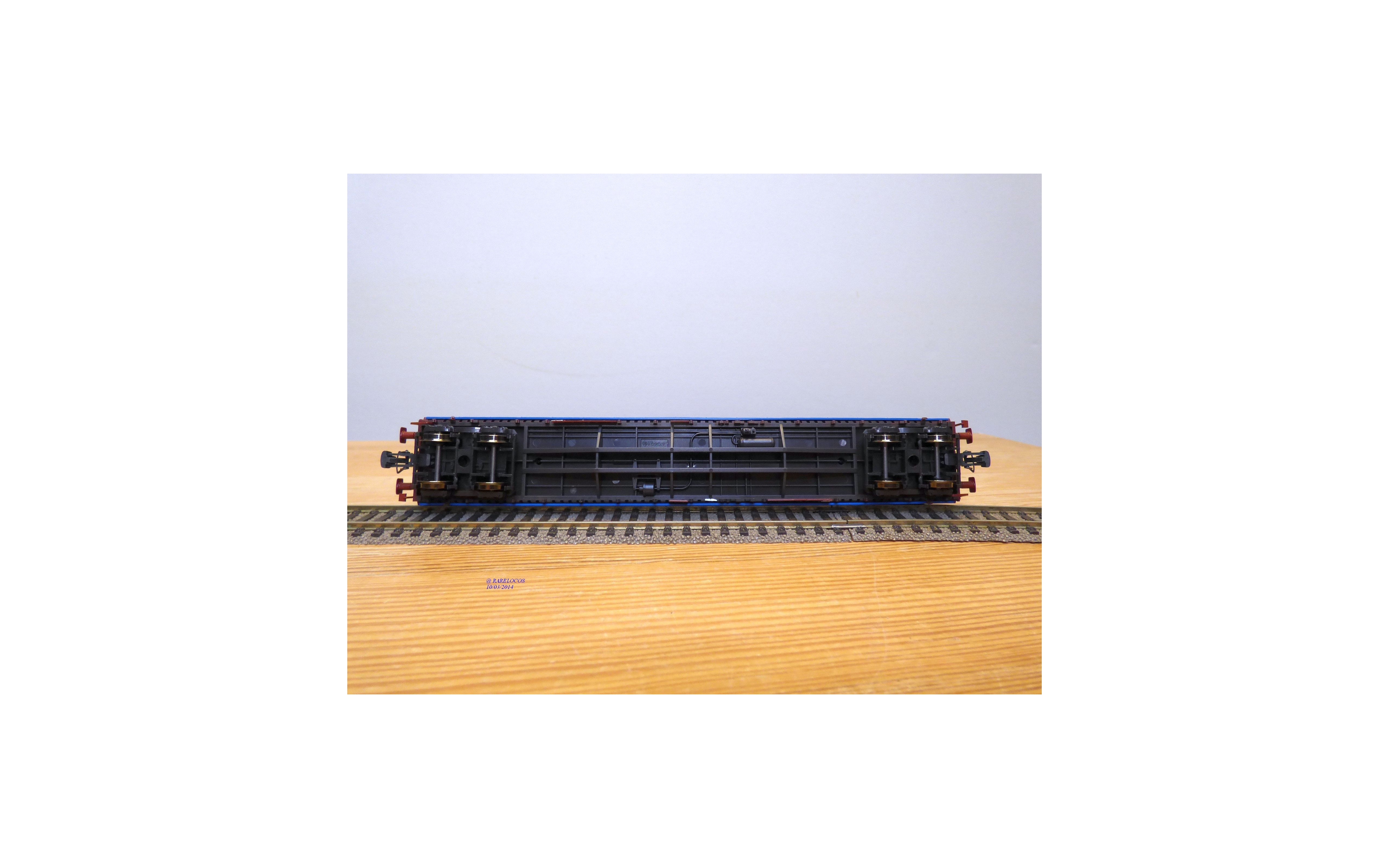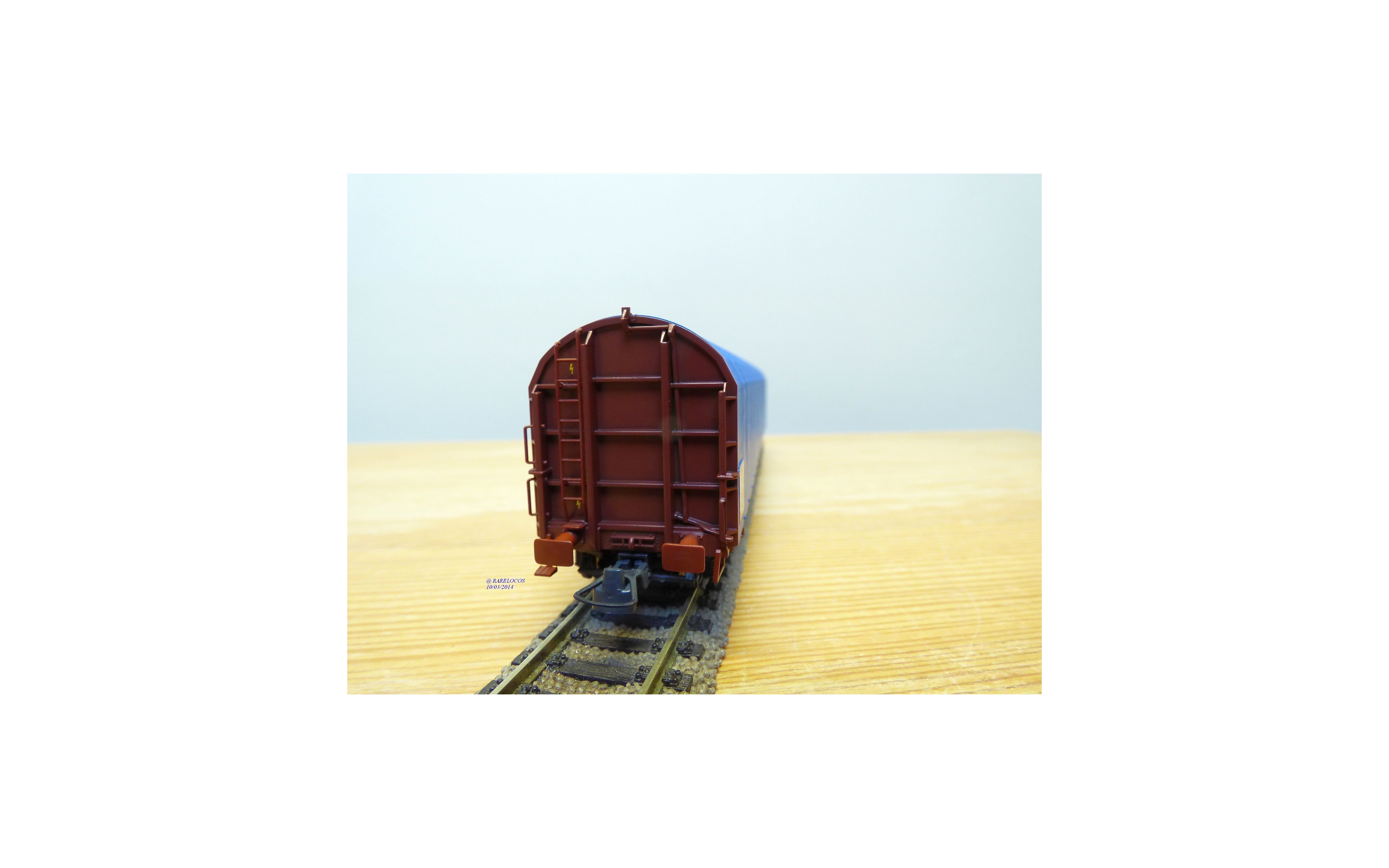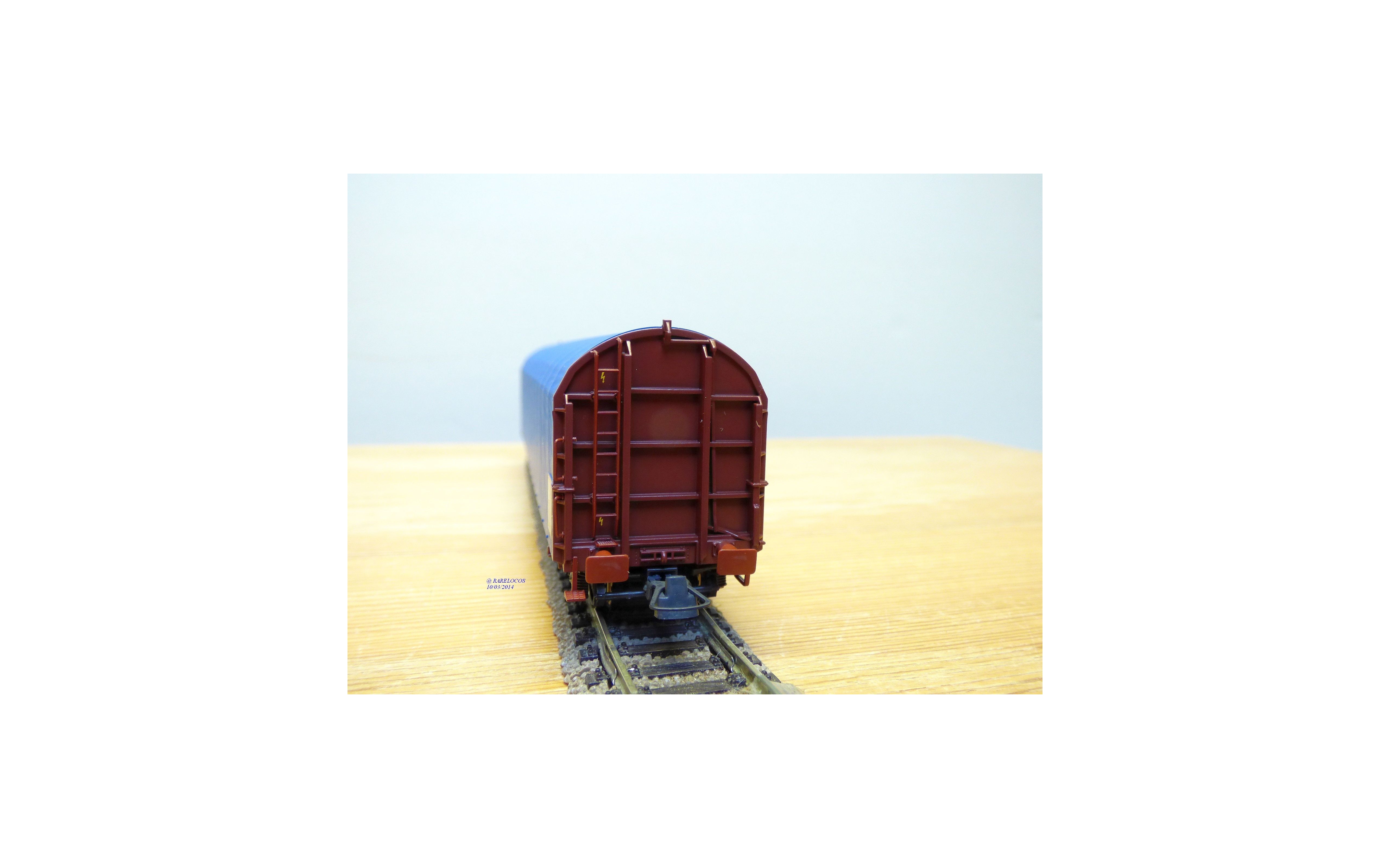 Wagon à parois coulissantes à 2 essieux type Rils 652 des chemins de fer allemands ( DB ), livrée marron à bâche bleue, notice présente, emballage d'origine en excellent état.