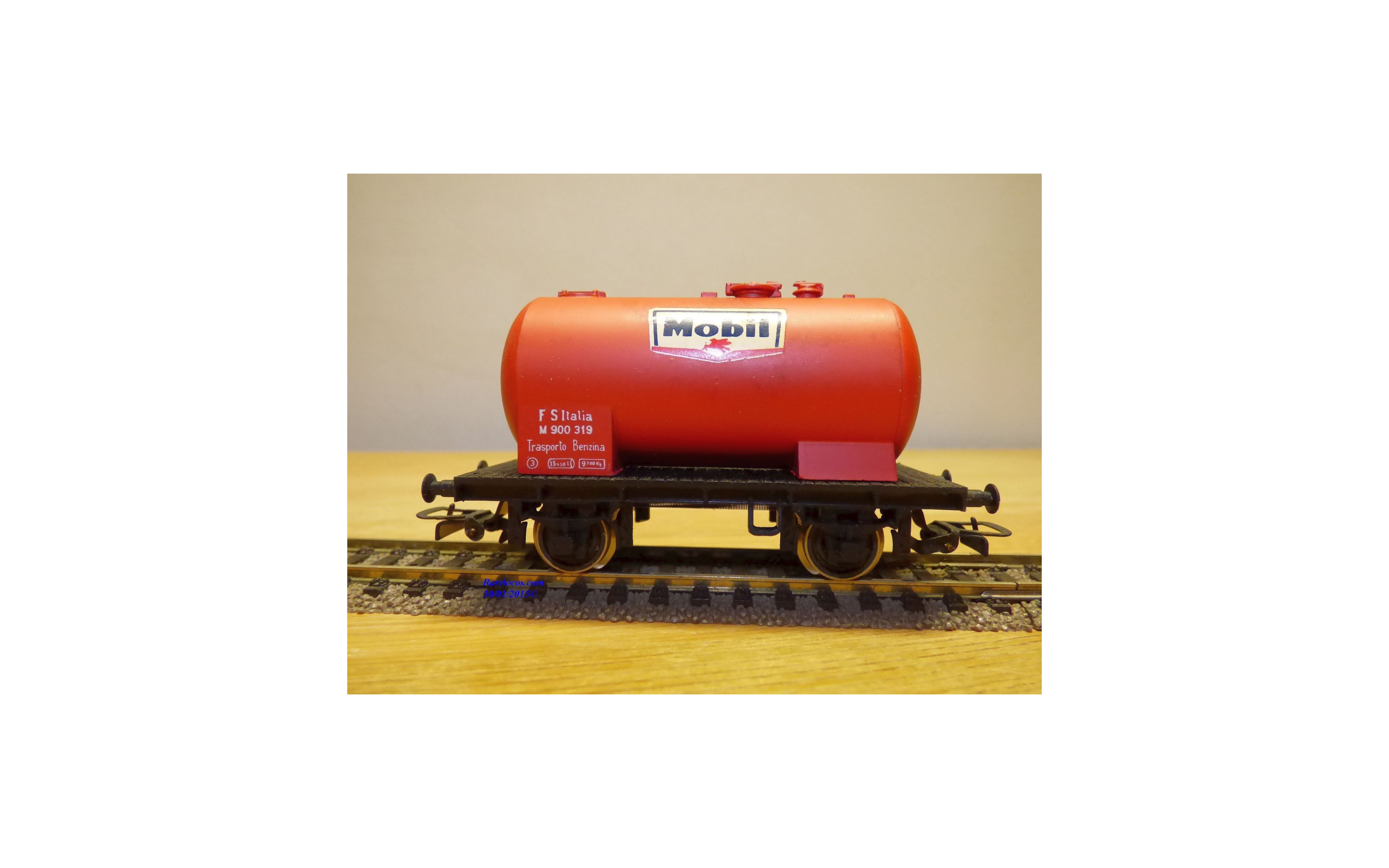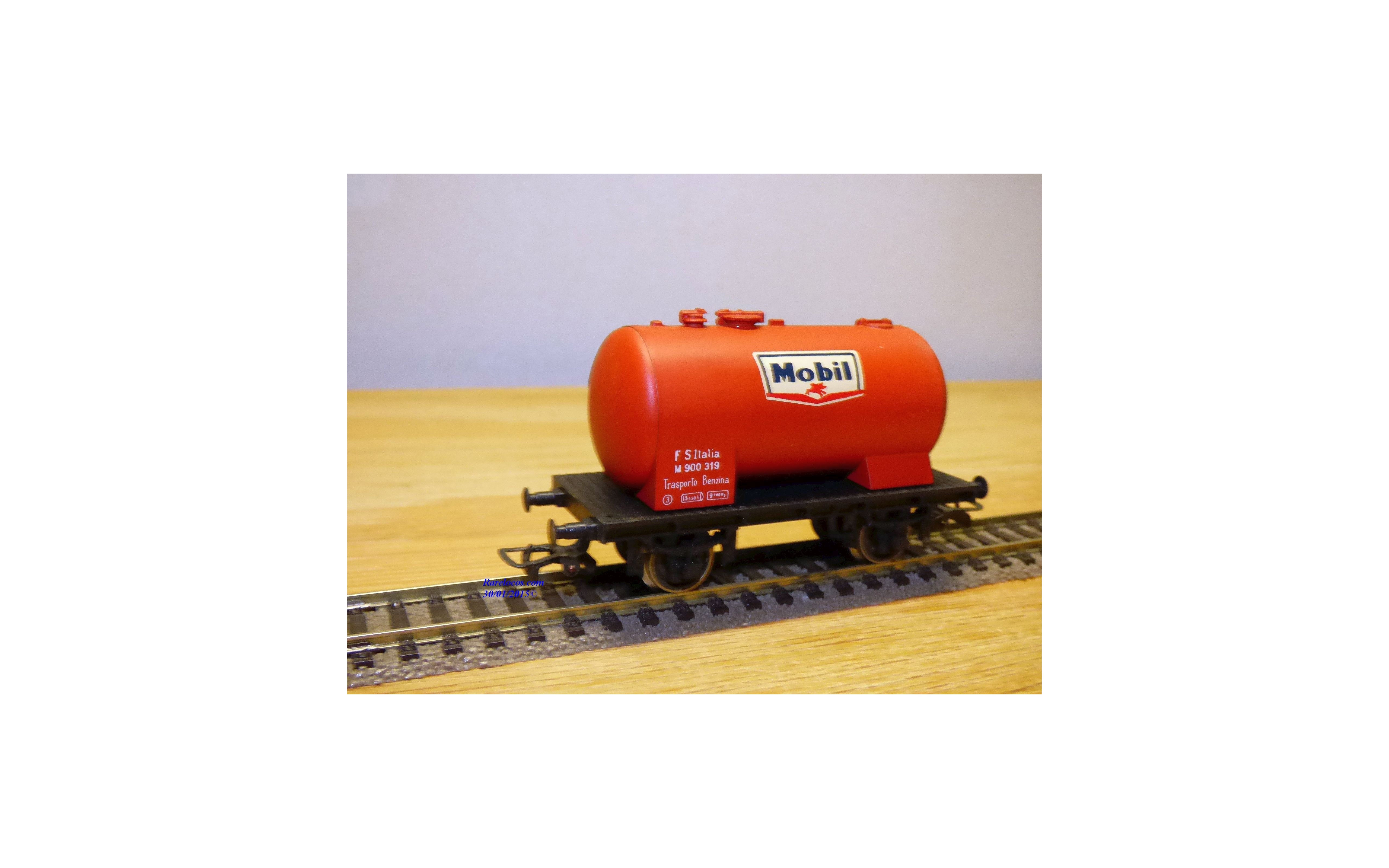 Wagon citerne à 2 essieux des chemins de fer italiens ( FS ), livrée rouge avec marquages MOBIL, immatriculation : M 900 319, boîte d'origine en excellent état .
