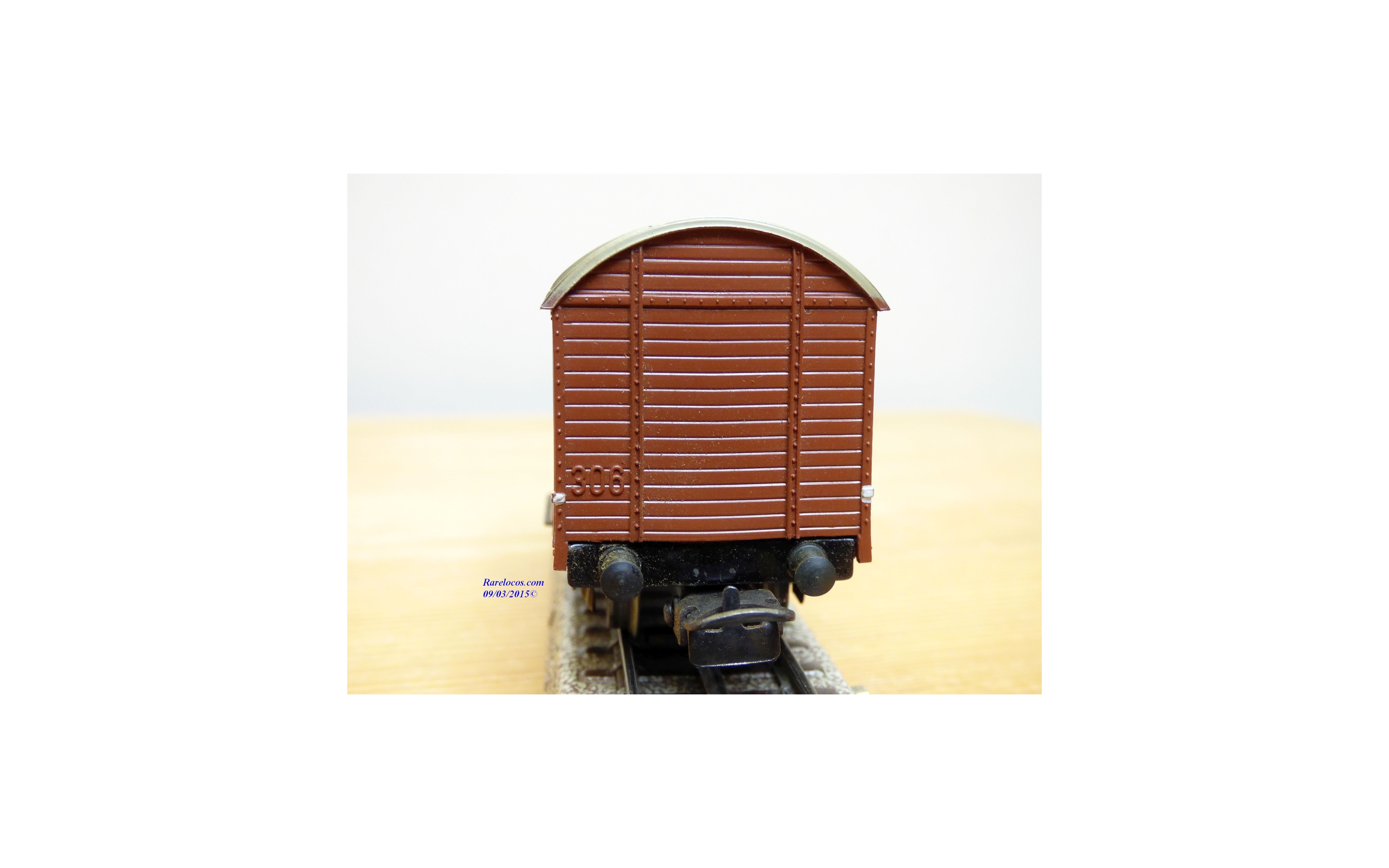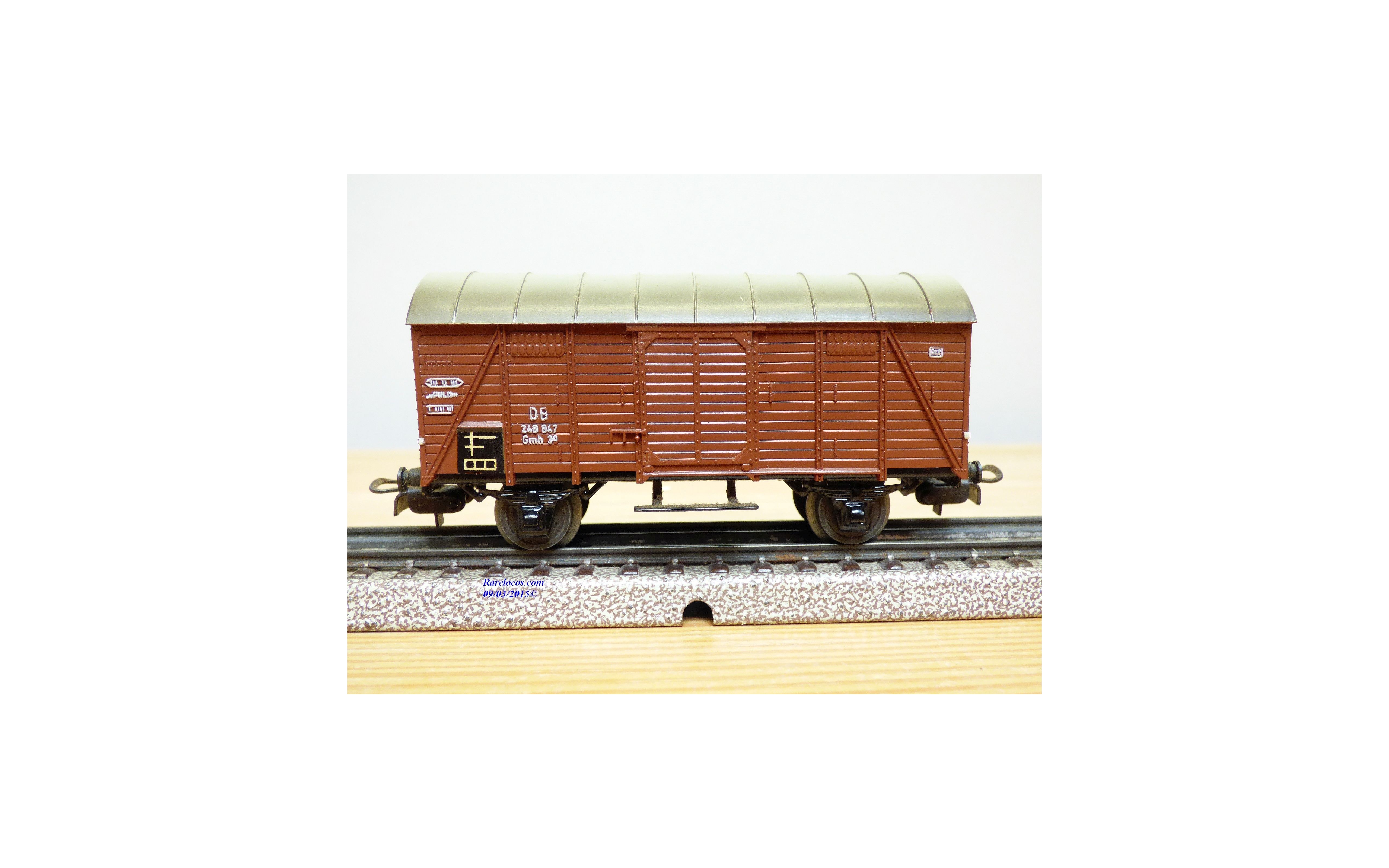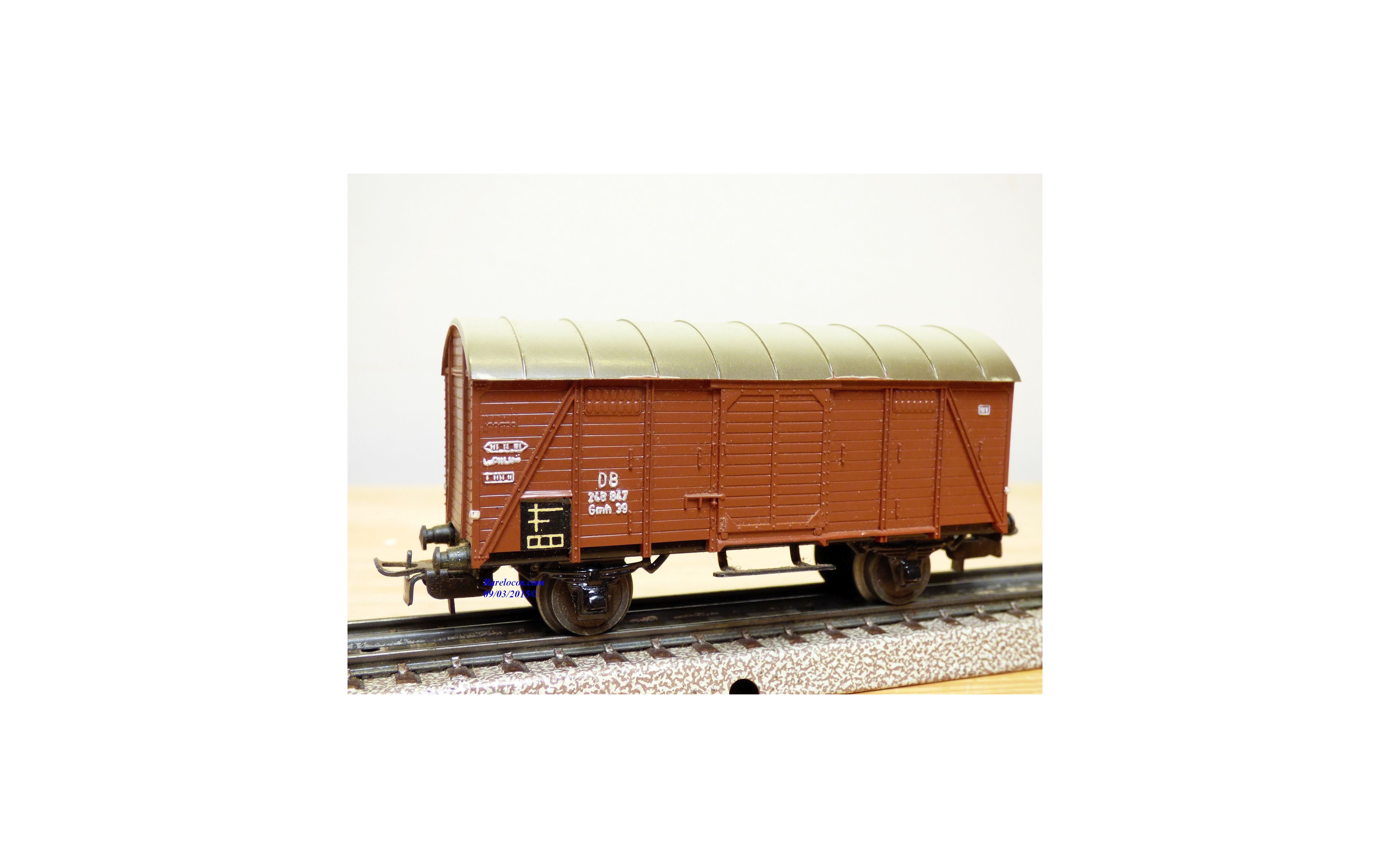 Wagon couvert à 2 essieux type Gmb 39 des chemins de fer allemands ( DB ), livrée brune à toit beige, pas d' emballage d'origine.