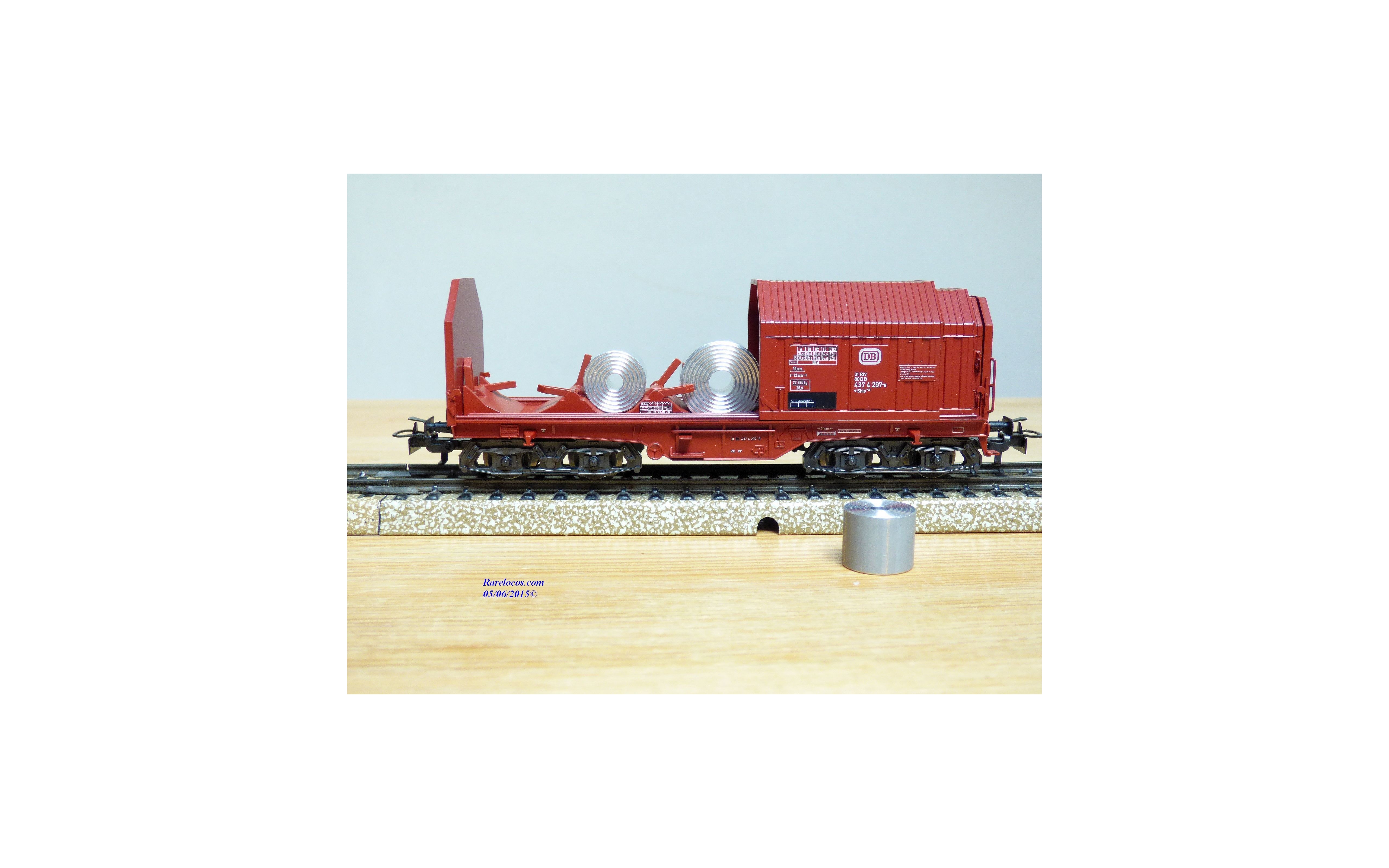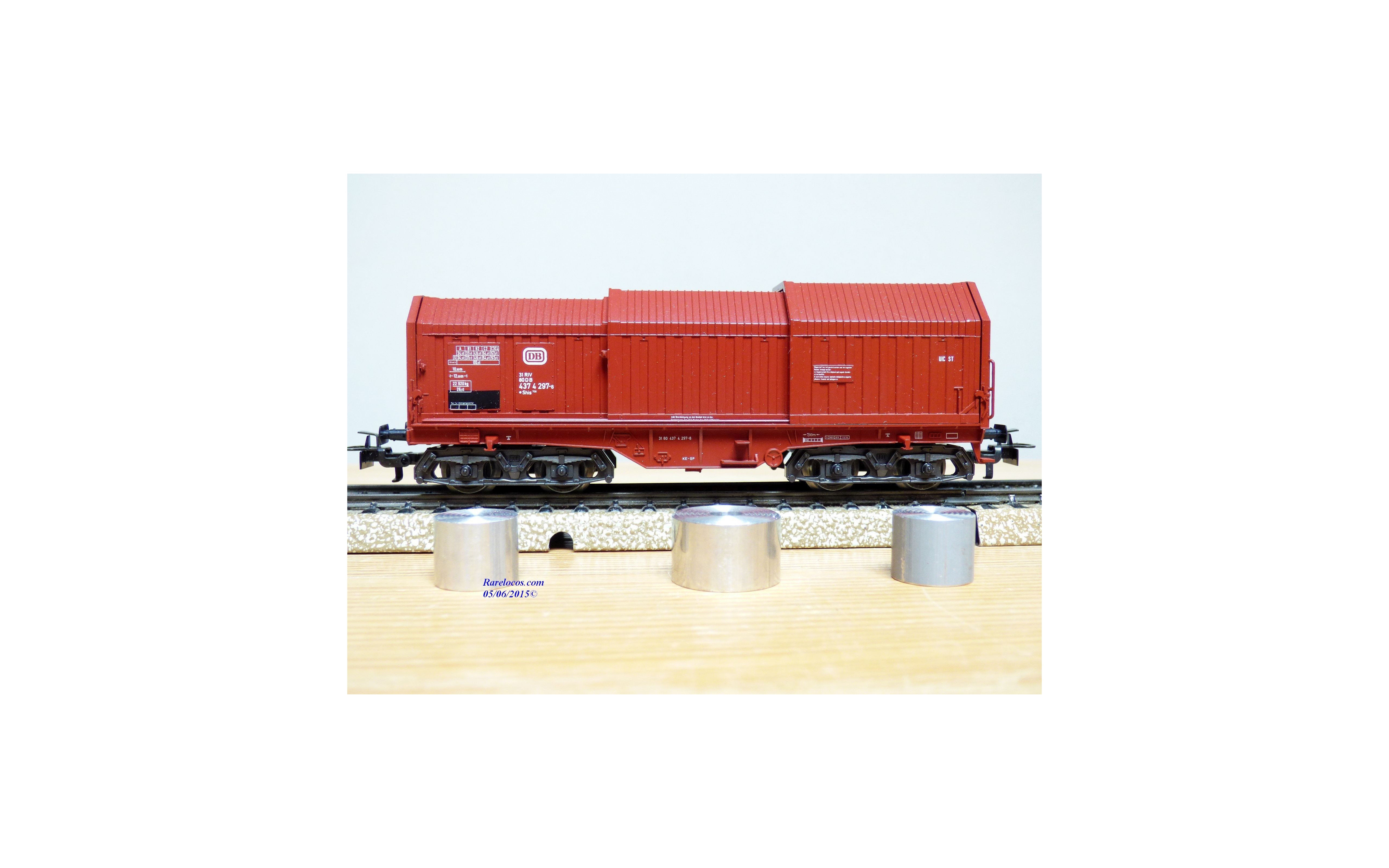 Wagon à toit coulissant fonctionnel à 2 bogies type Shis 708 des chemins de fer allemands ( DB ), livrée marron, chargement de 3 rouleaux d'aluminium ( véritable ), boîte d'origine en état neuf.