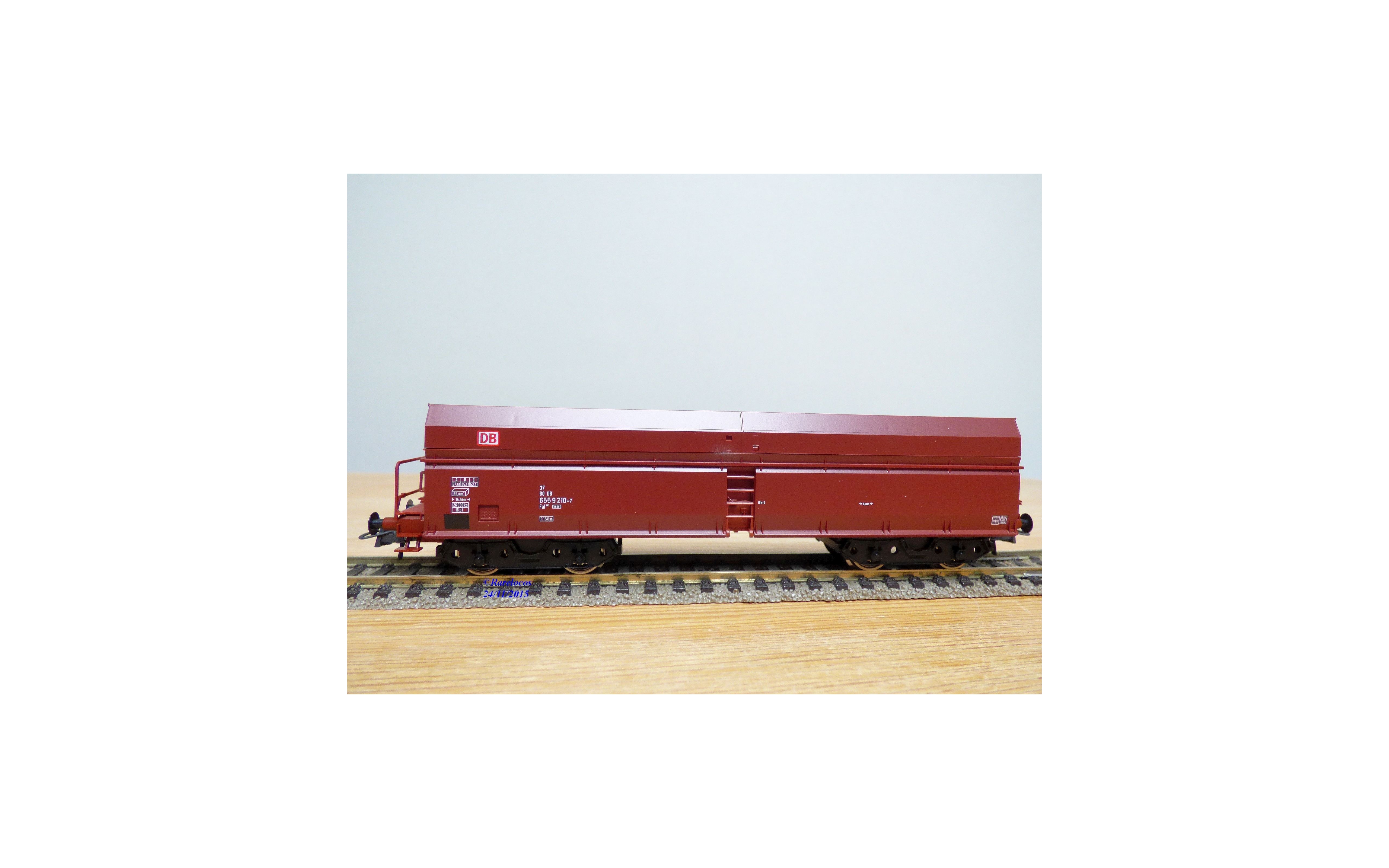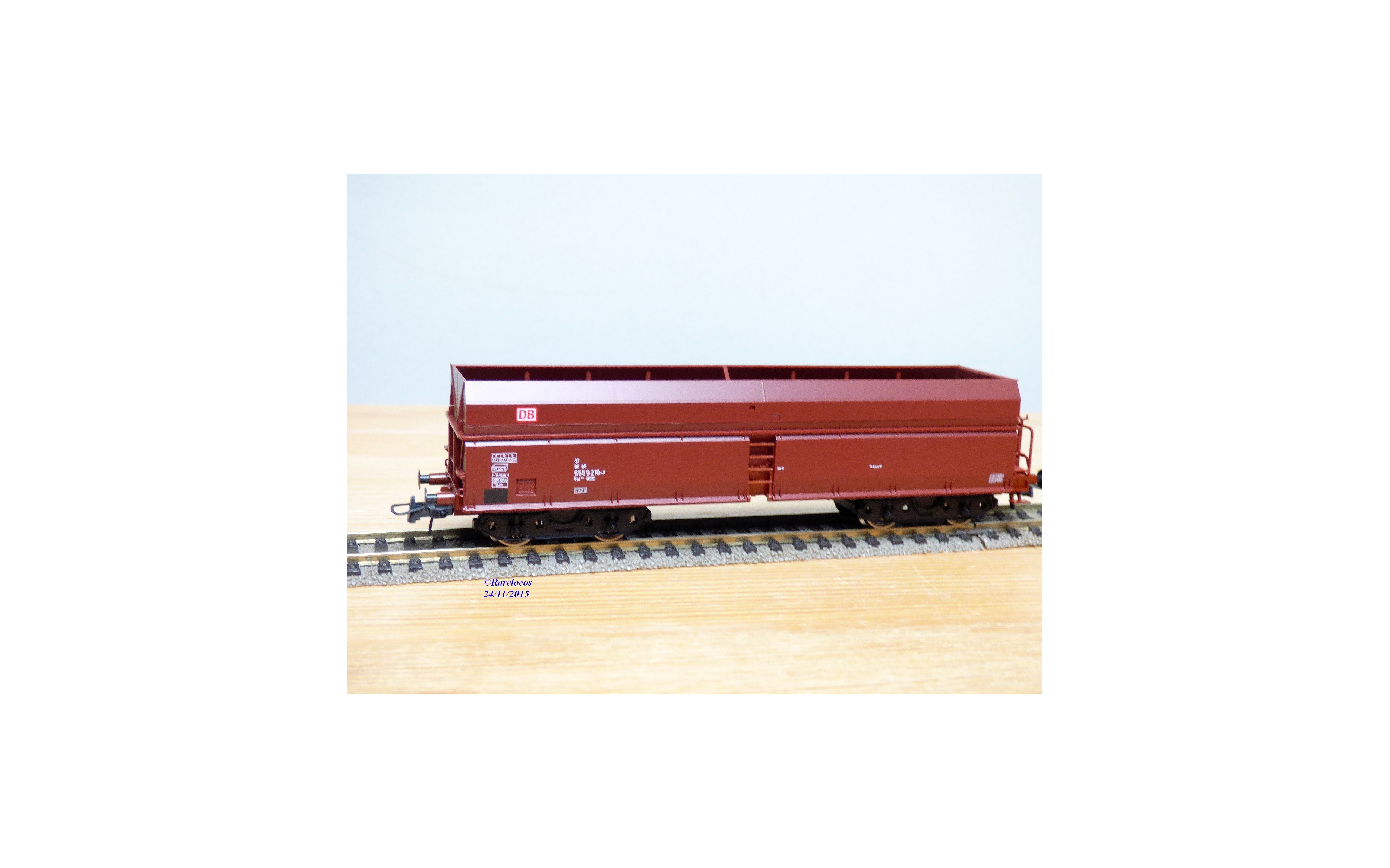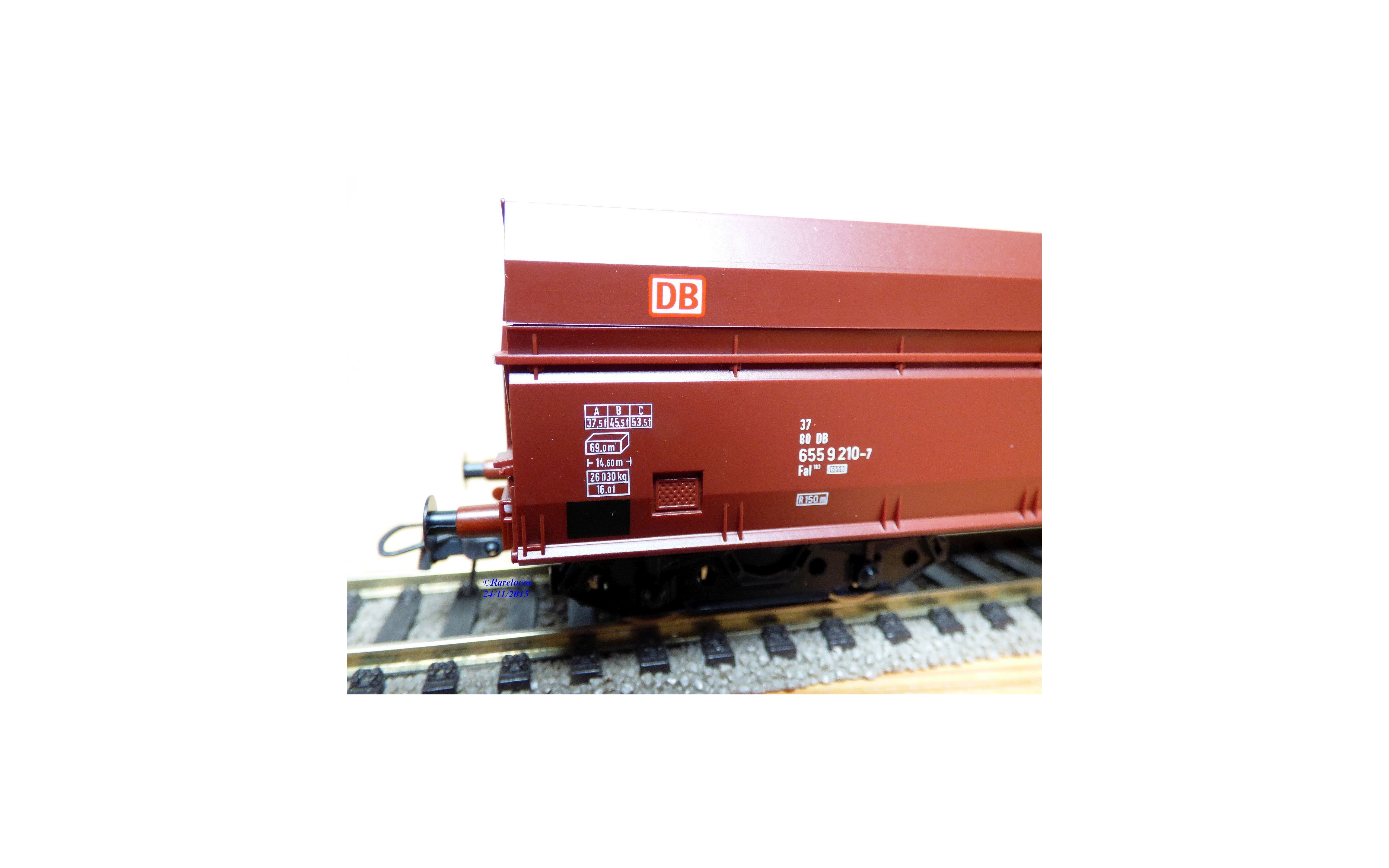 Wagon trémie à déchargement latéral à plate forme de serre freins à 2 bogies type Fal 163 des chemins de fer allemands ( DB ), livrée marron, liste de pièces détachées présente, immatriculation: 37-80 655 9 210-7, boîte d'origine en état neuf.