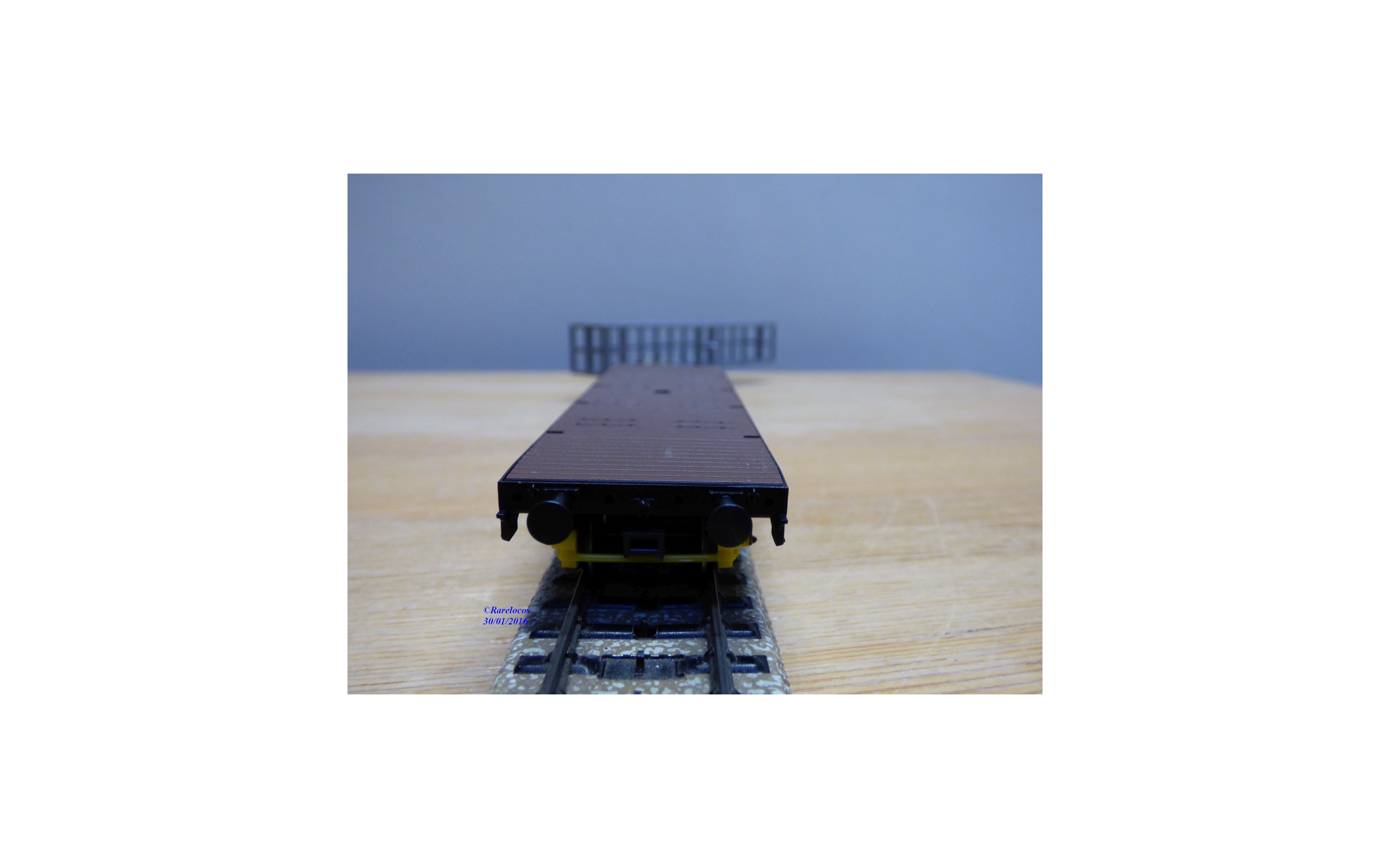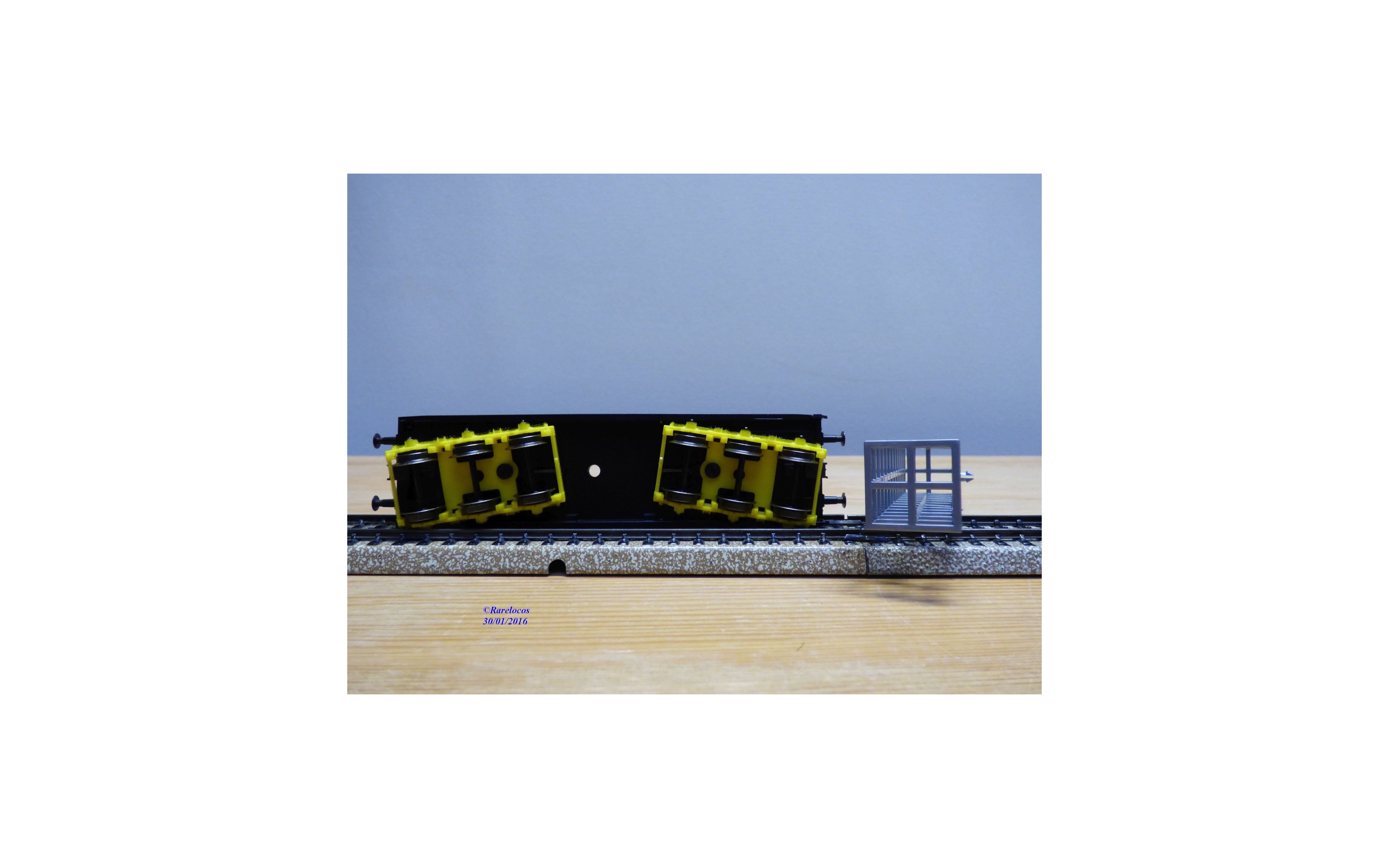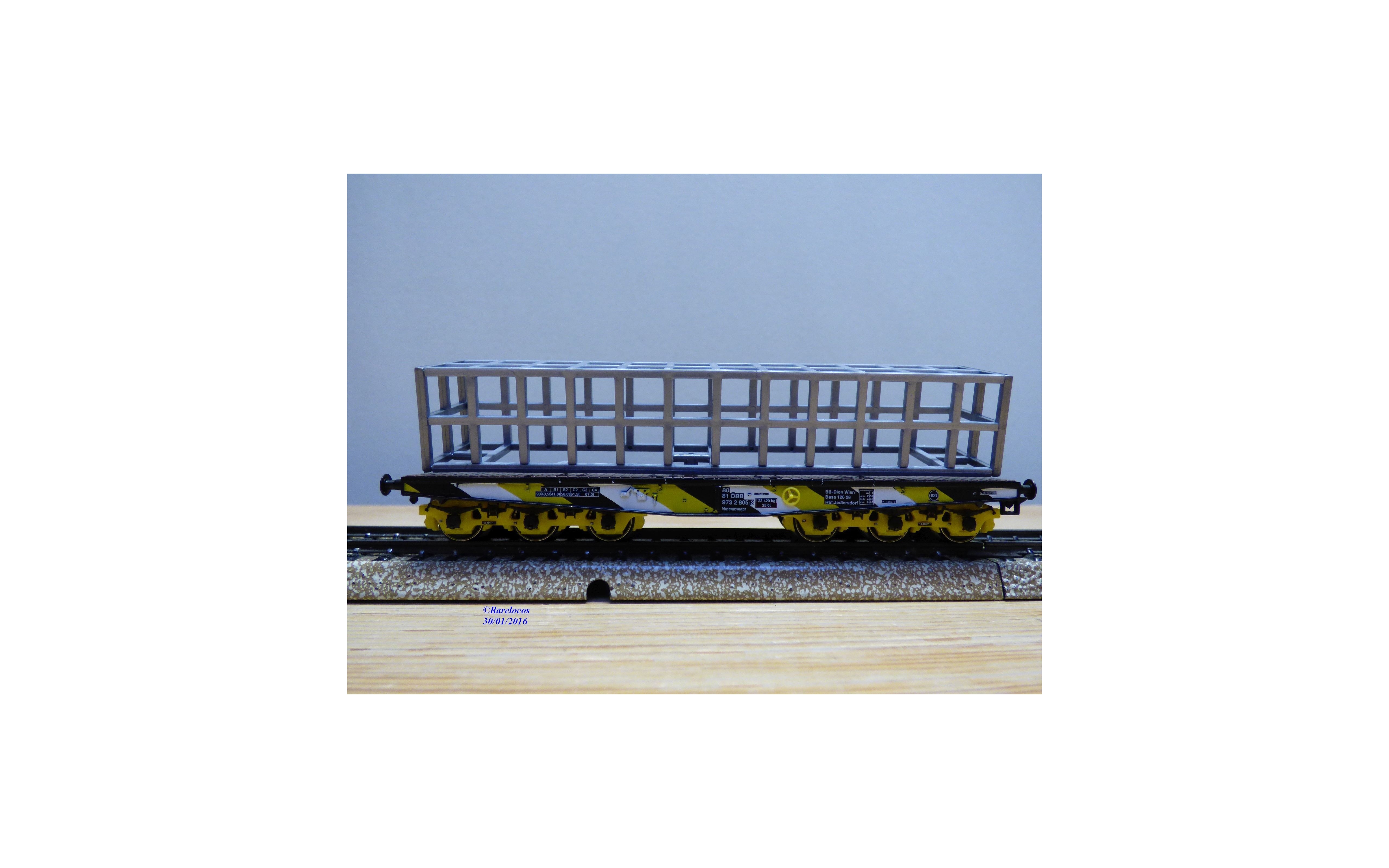 Wagon plat à ranchers pour charges lourdes à 2 bogies de 3 essieux type Samms des chemins de fer autrichiens (ÖBB), wagon en métal, chargement de rochers en pierre véritable, attelages et rochers encore scellés, boîte d'origine en état neuf.