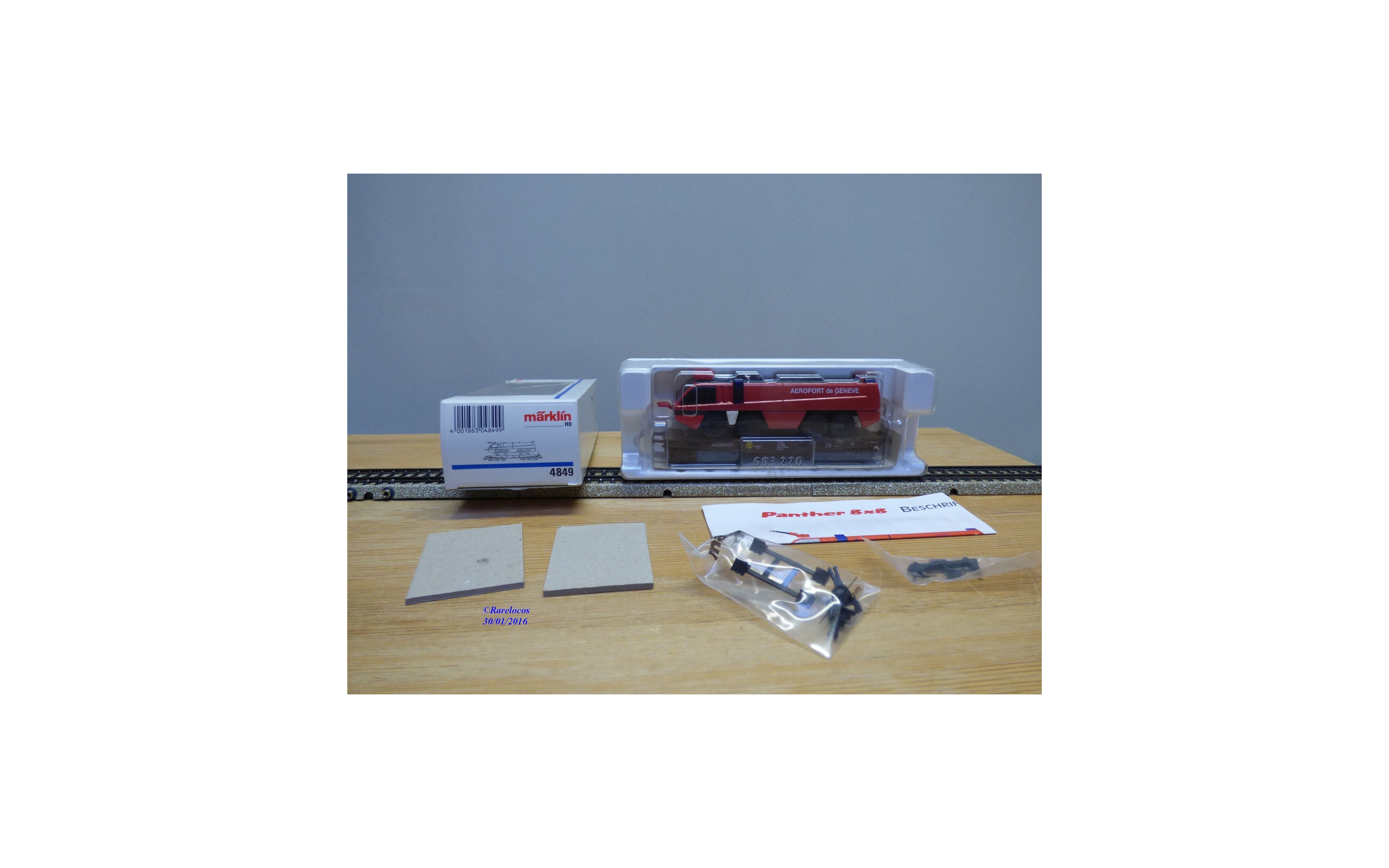 Märklin Cursor 4849, wagon plat type Samm chargé d' un camion de pompiers Aéroport de Genève ÖBB neuf BO (Ref: #4849)