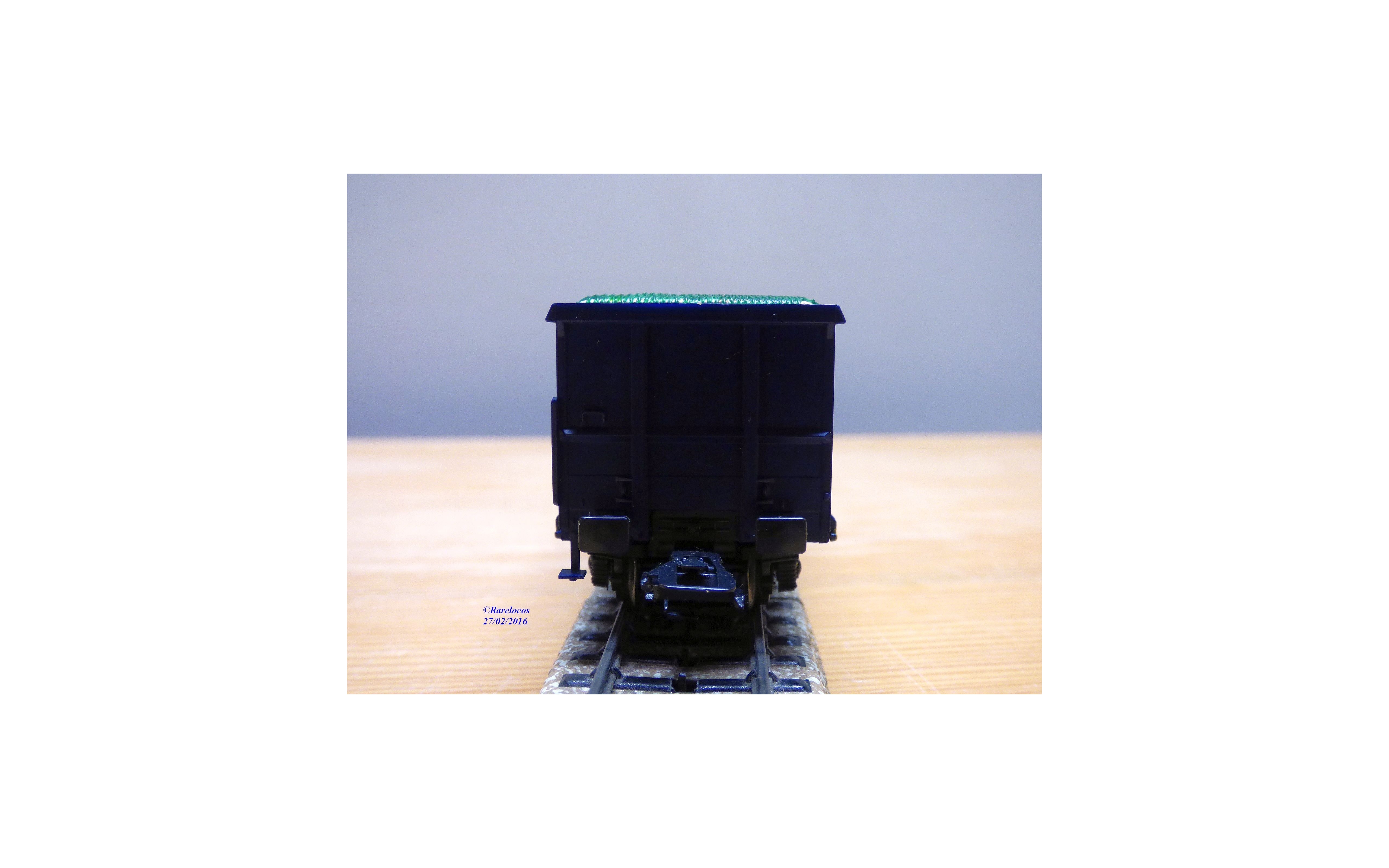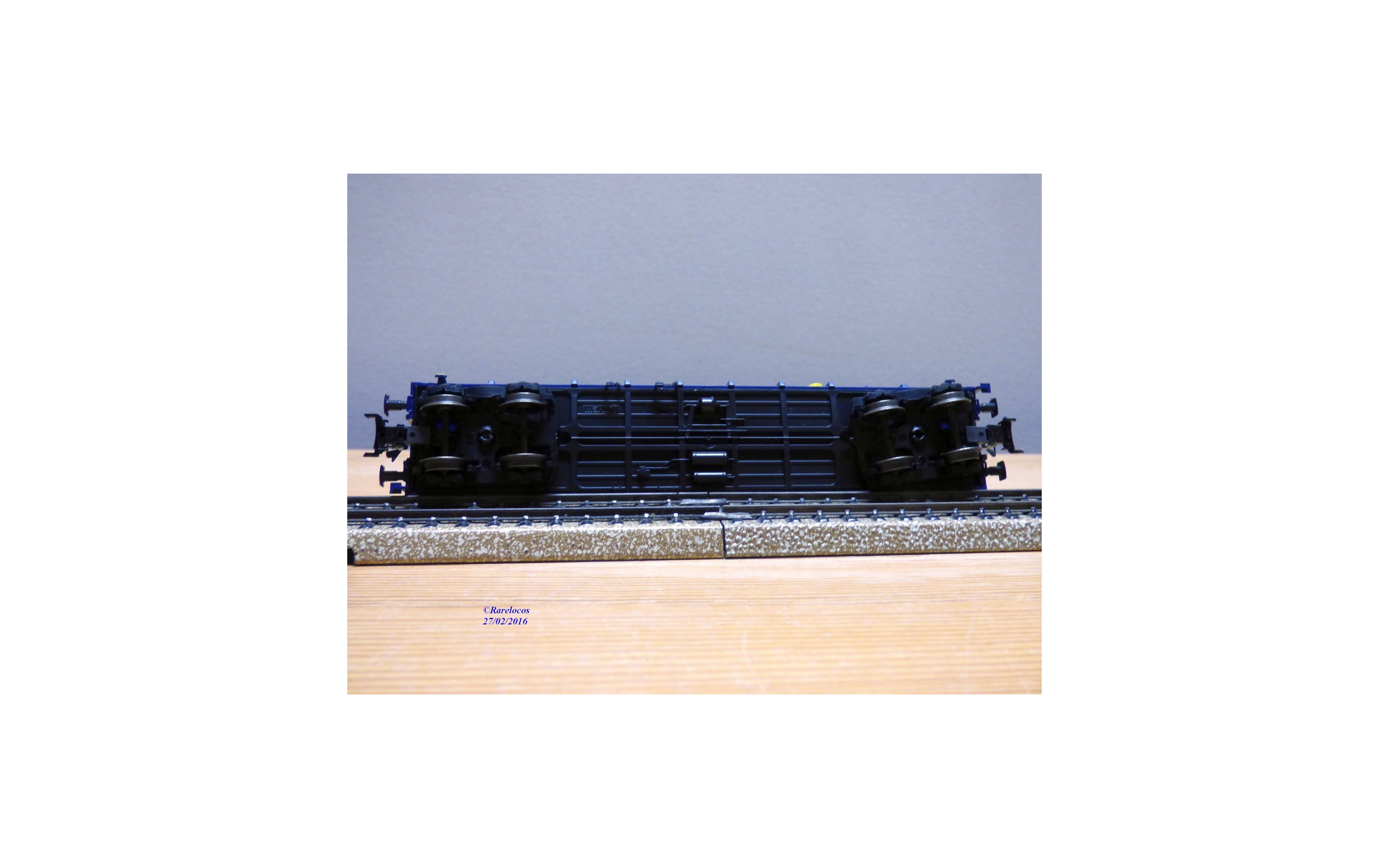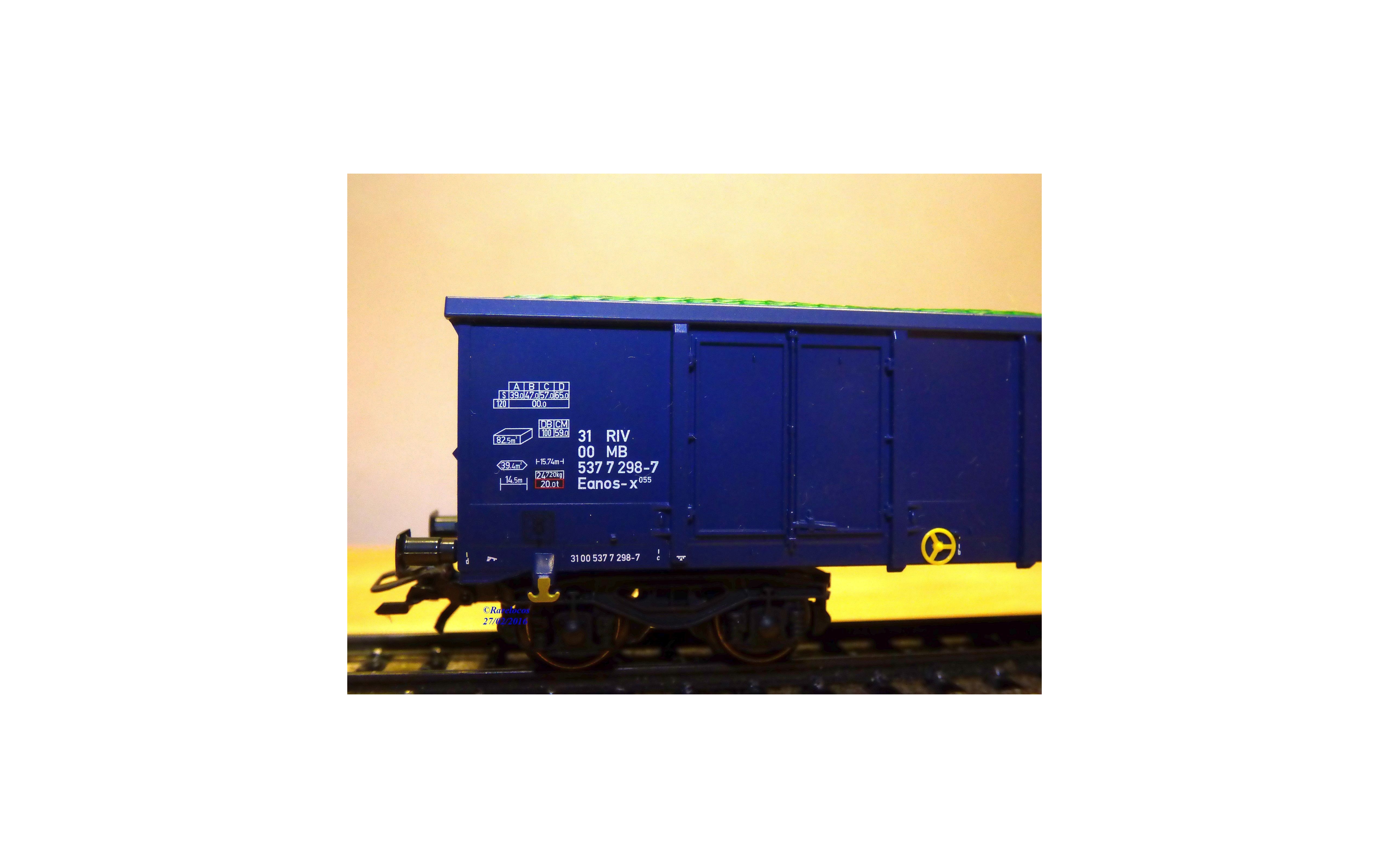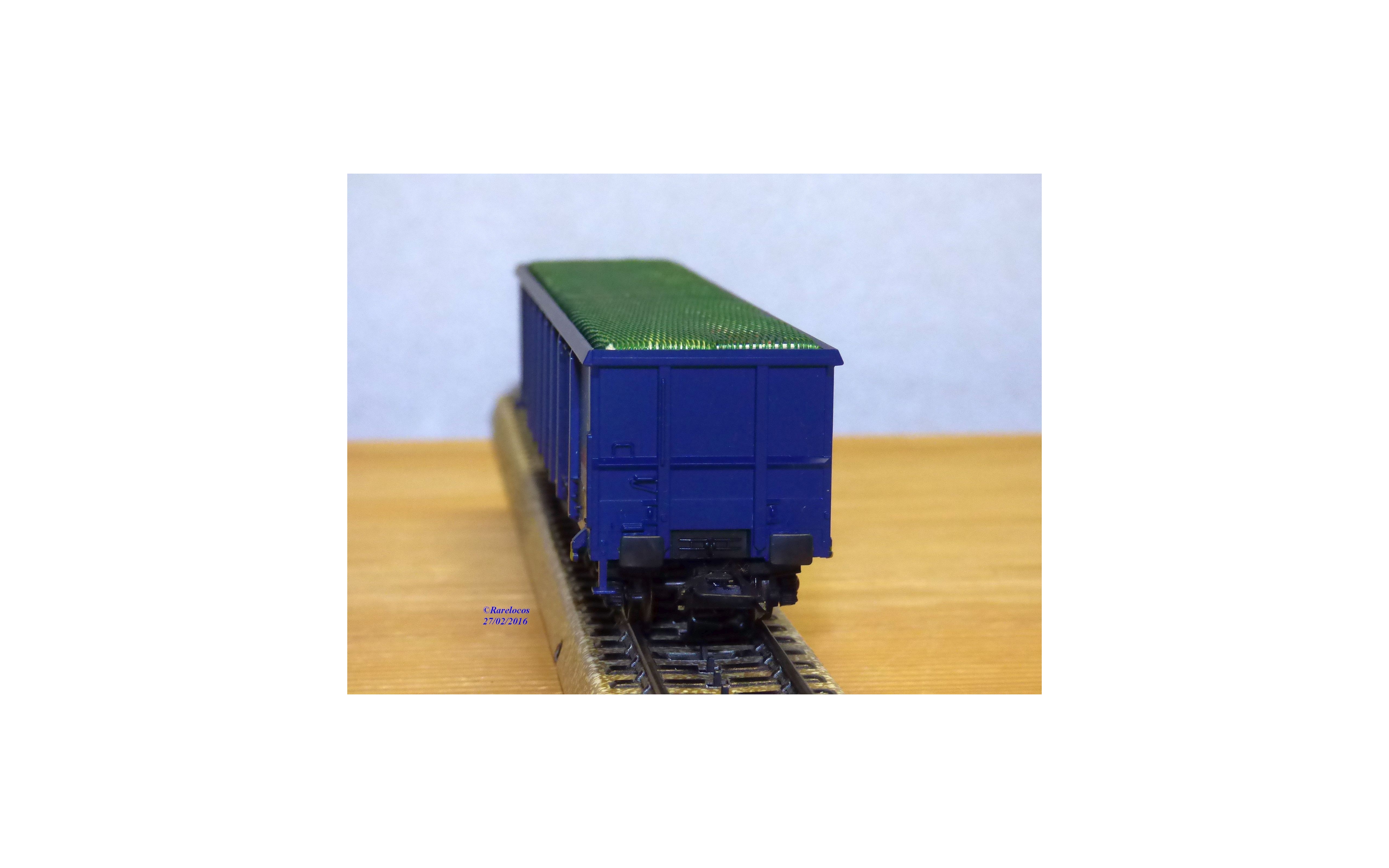 Wagon tombereau à 2 bogies type Eanos-x 055 des chemins de fer allemands ( DB ), livrée bleue, chargement de ballots de vieux papiers recouverts d'un filet, boîte d'origine en état neuf.