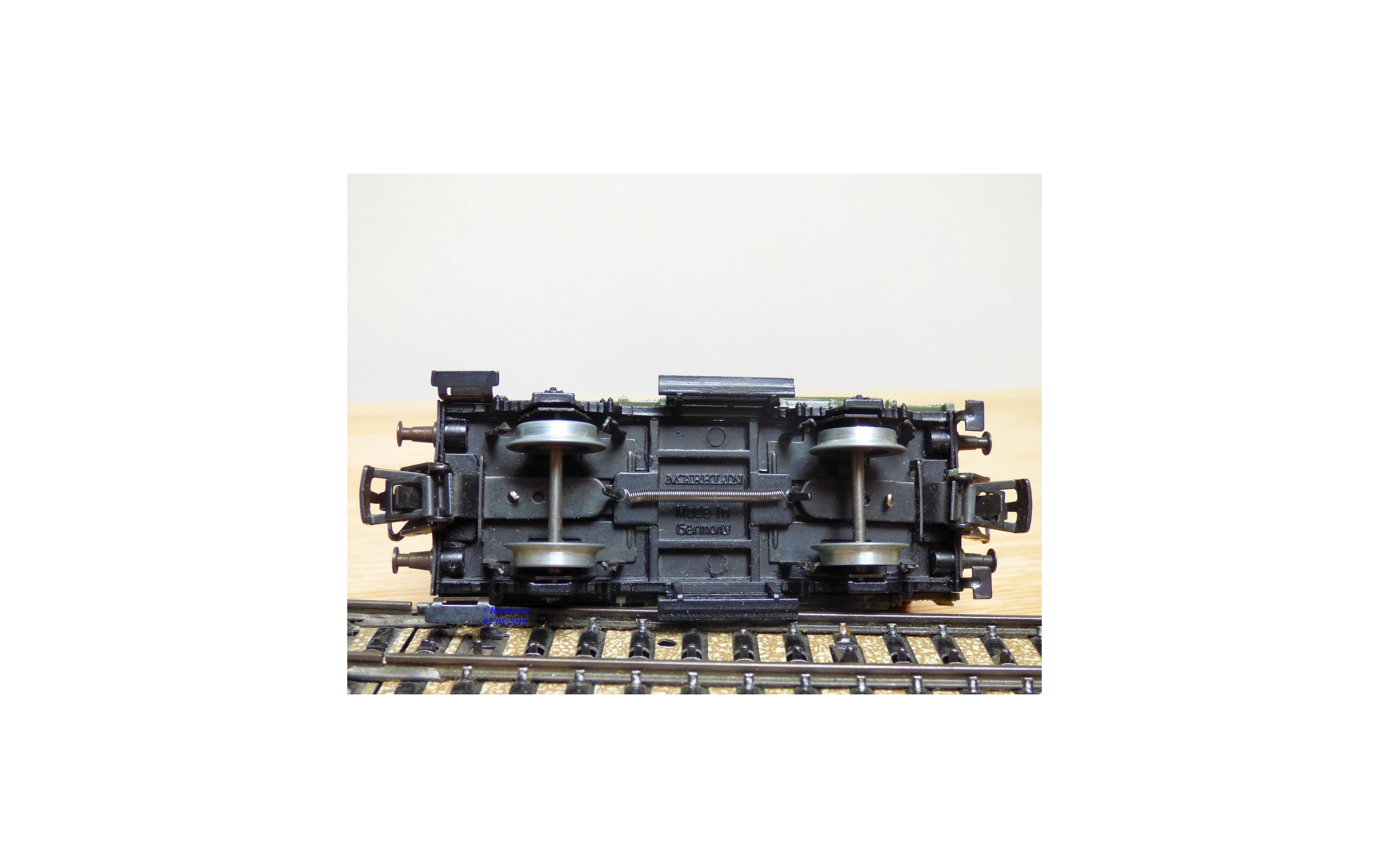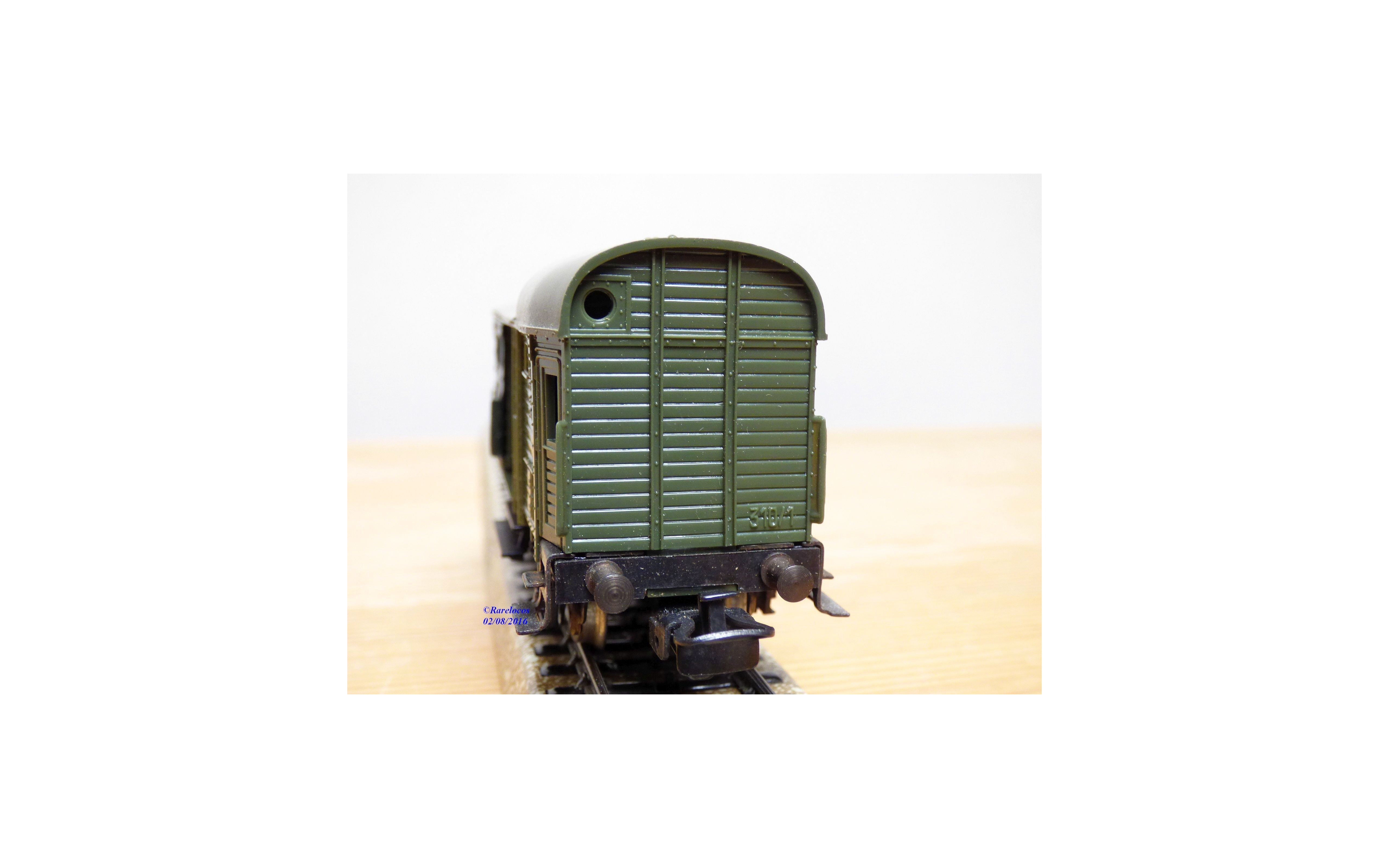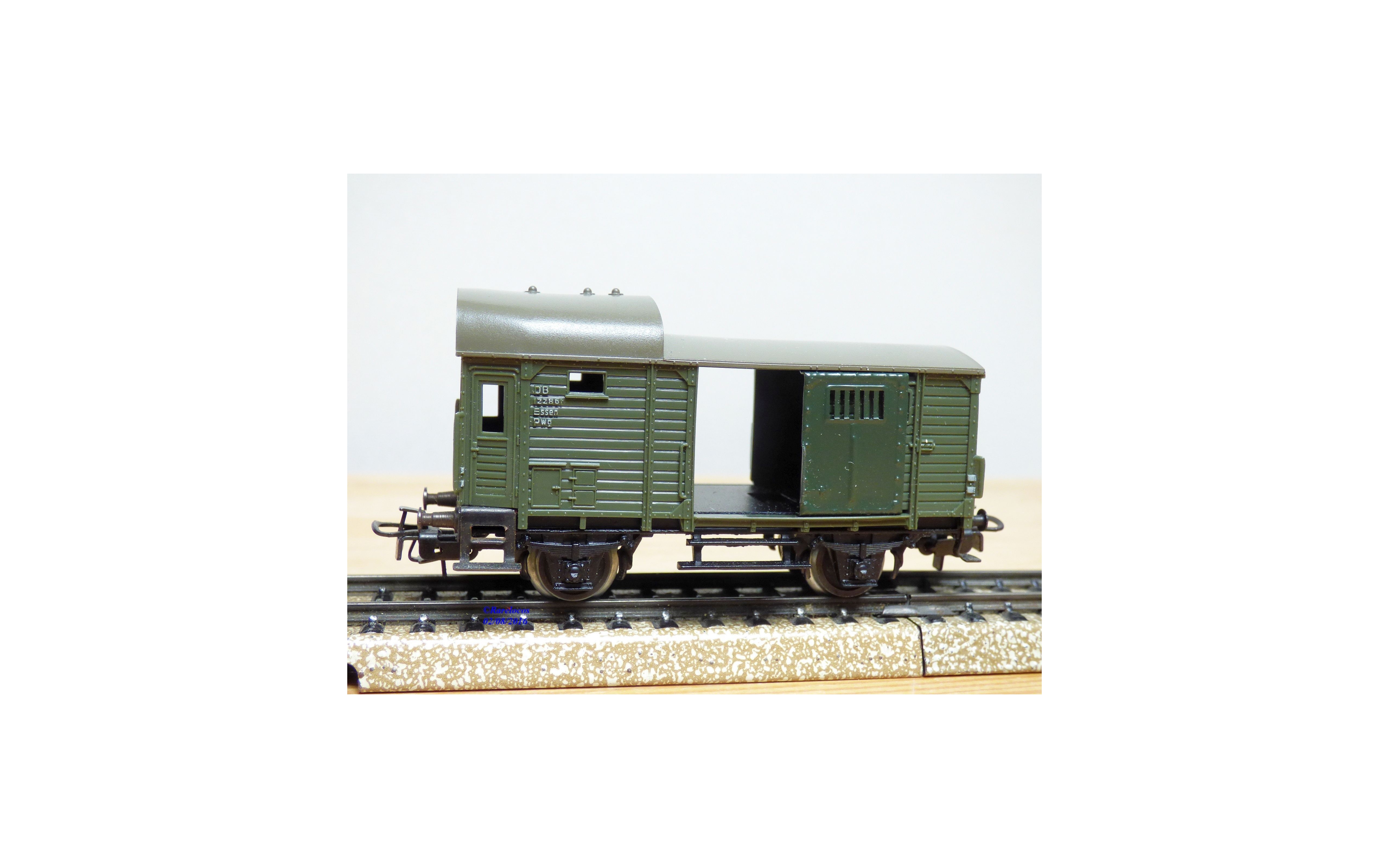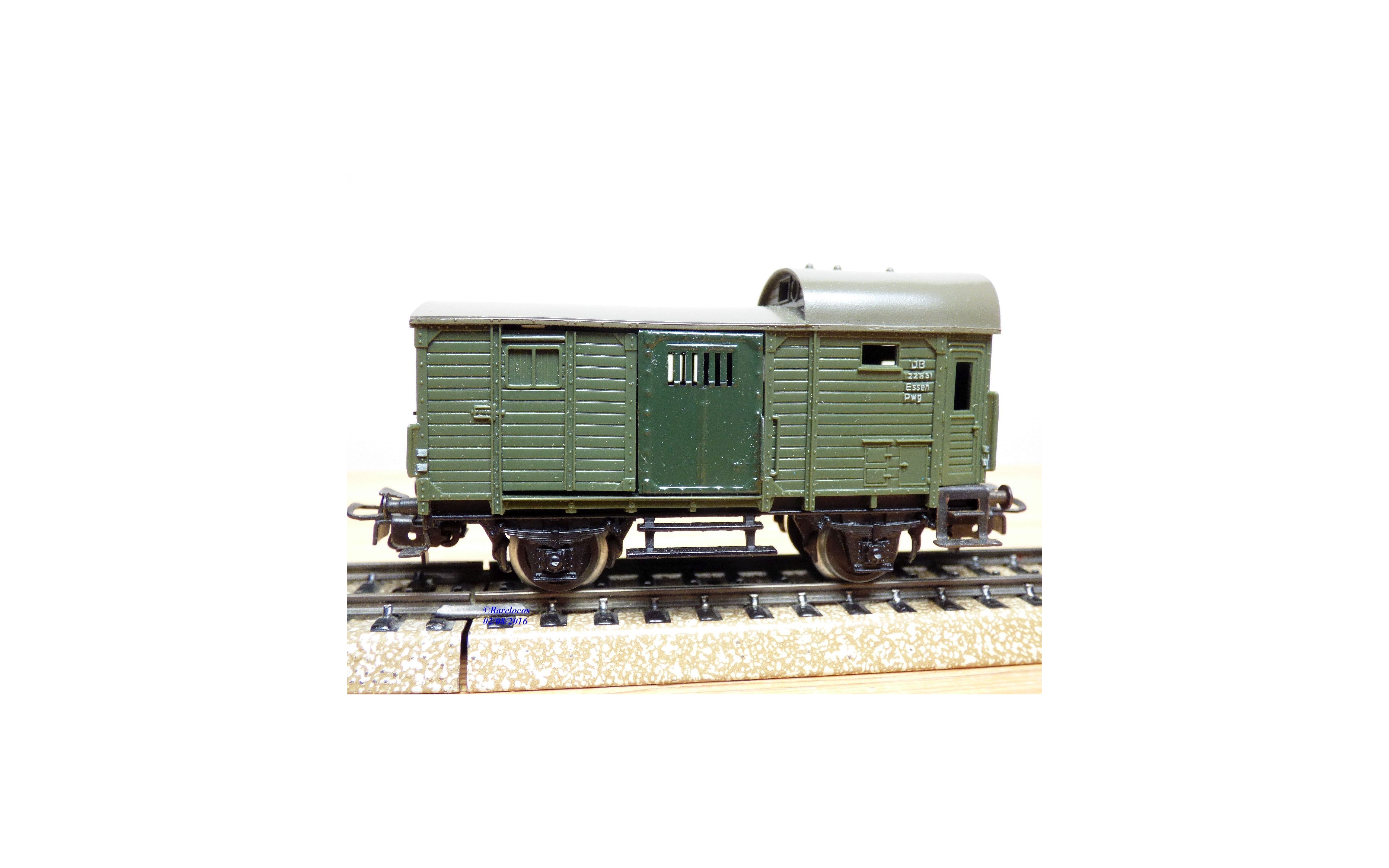 Fourgon de queue pour train de marchandise à 2 essieux à guérite type Pwg des chemins de fer allemands ( DB ), portes coulissantes fonctionnelles, livrée verte à toit gris, boîte d'origine en état neuf.