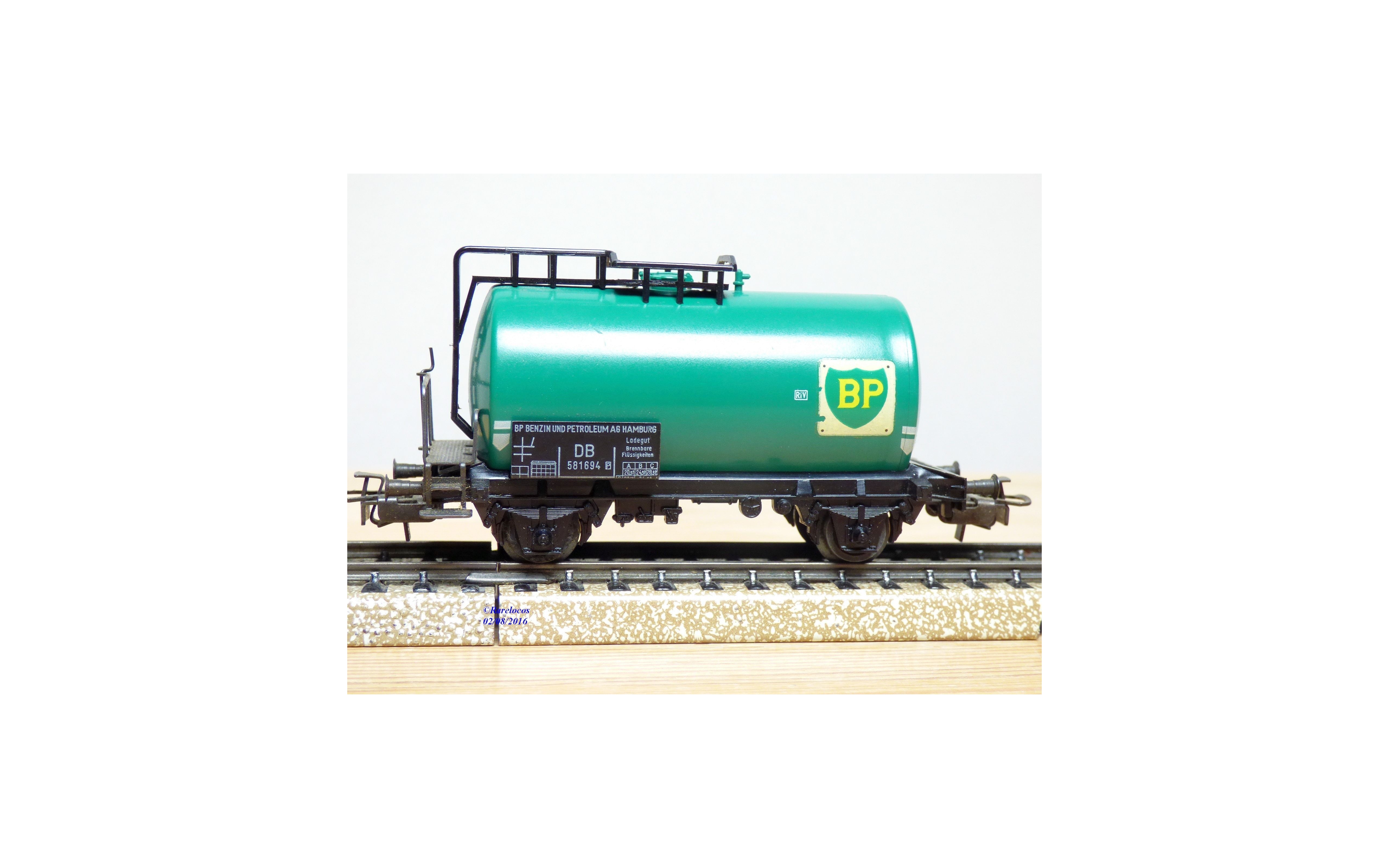 Wagon citerne unifié à 2 essieux des chemins de fer allemands ( DB ), livrée verte avec marquages BP sur fond blanc, immatriculation : 581694, boîte d'origine en excellent état.