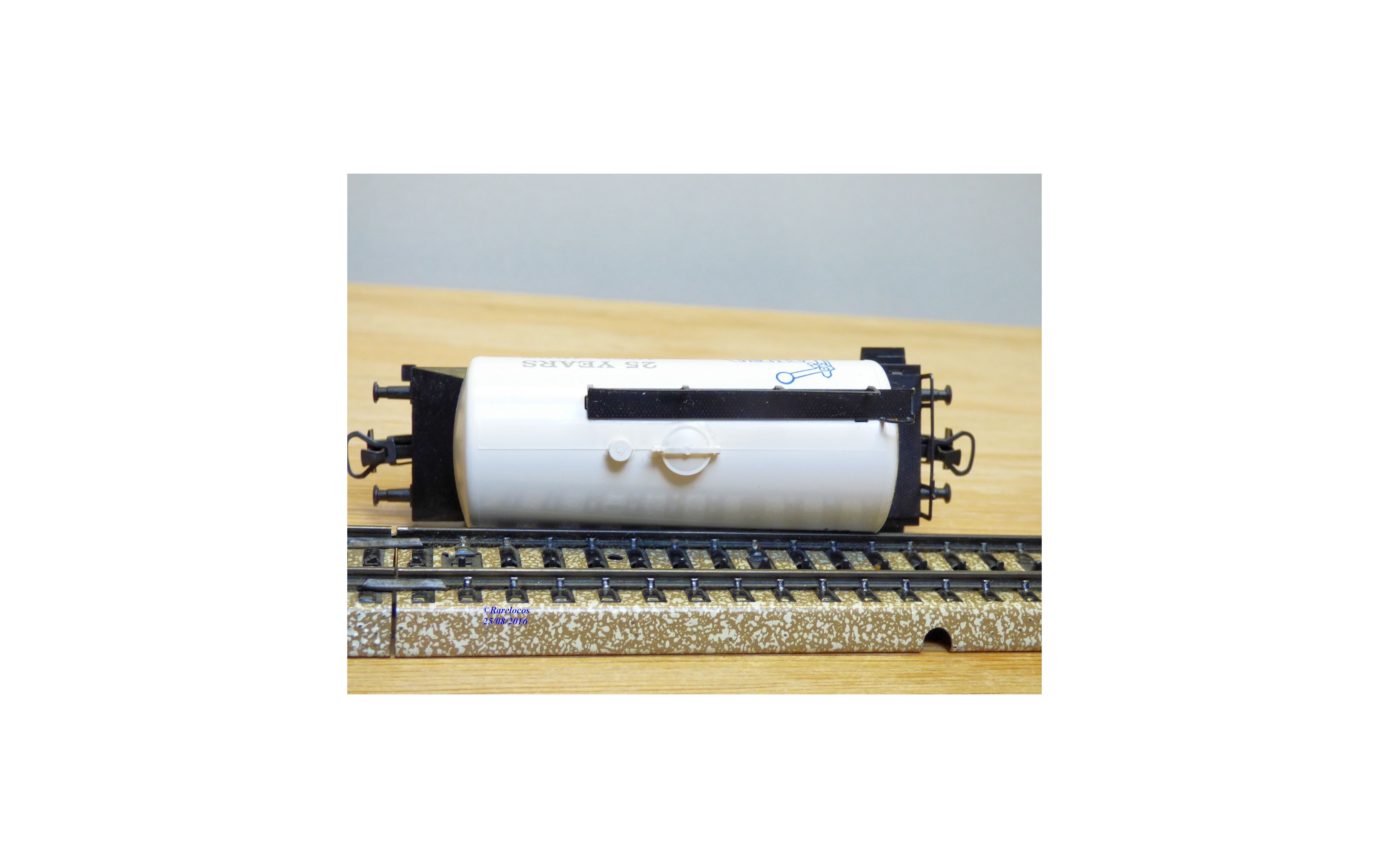 Très rare wagon citerne unifié à 2 essieux des chemins de fer allemands ( DB ), livrée blanche avec marquages 25 Years 1972 - 1997 et Märklin Enthusiasts of America, immatriculation : 000 7645-3, boîte d'origine " coins piquants" .