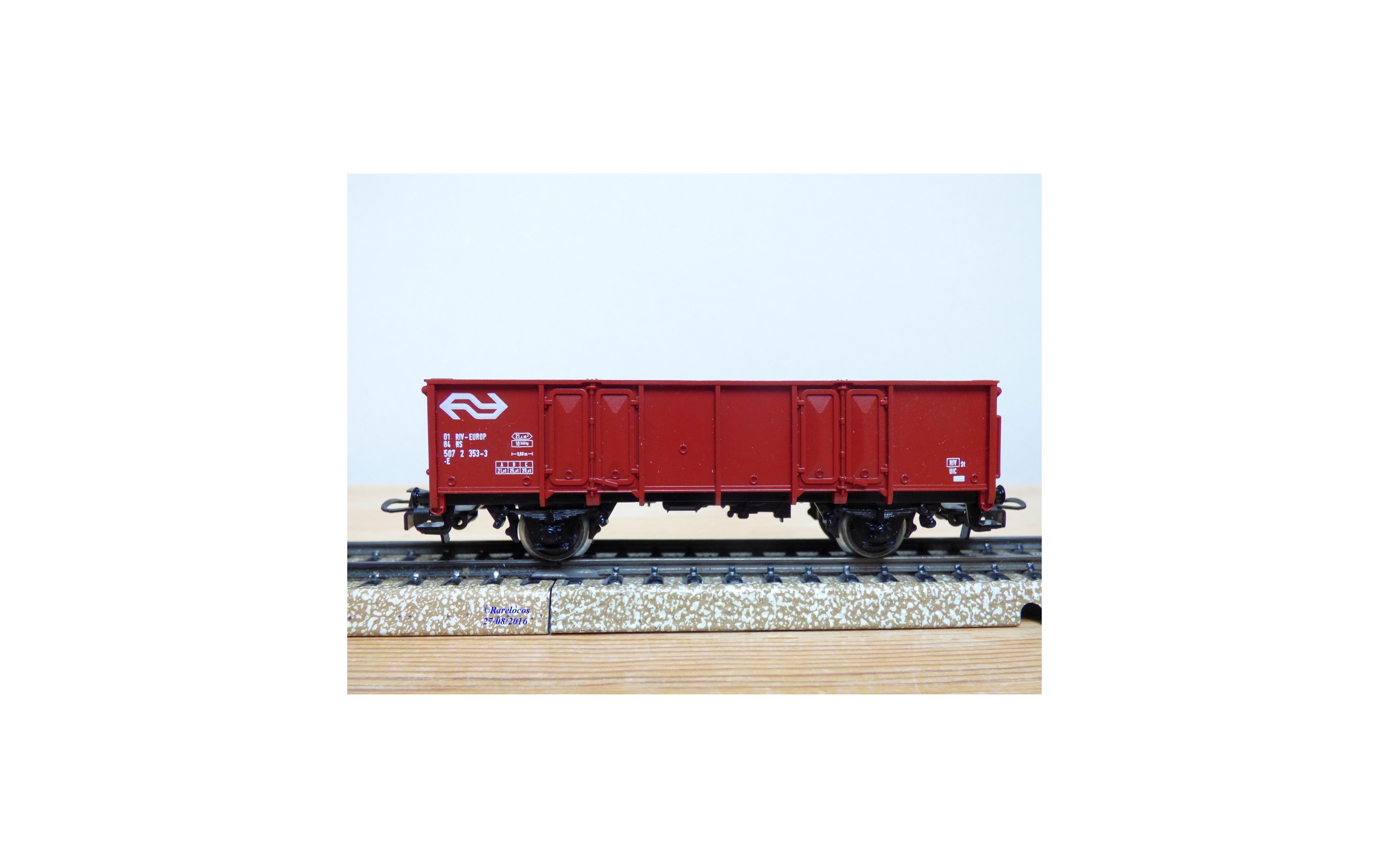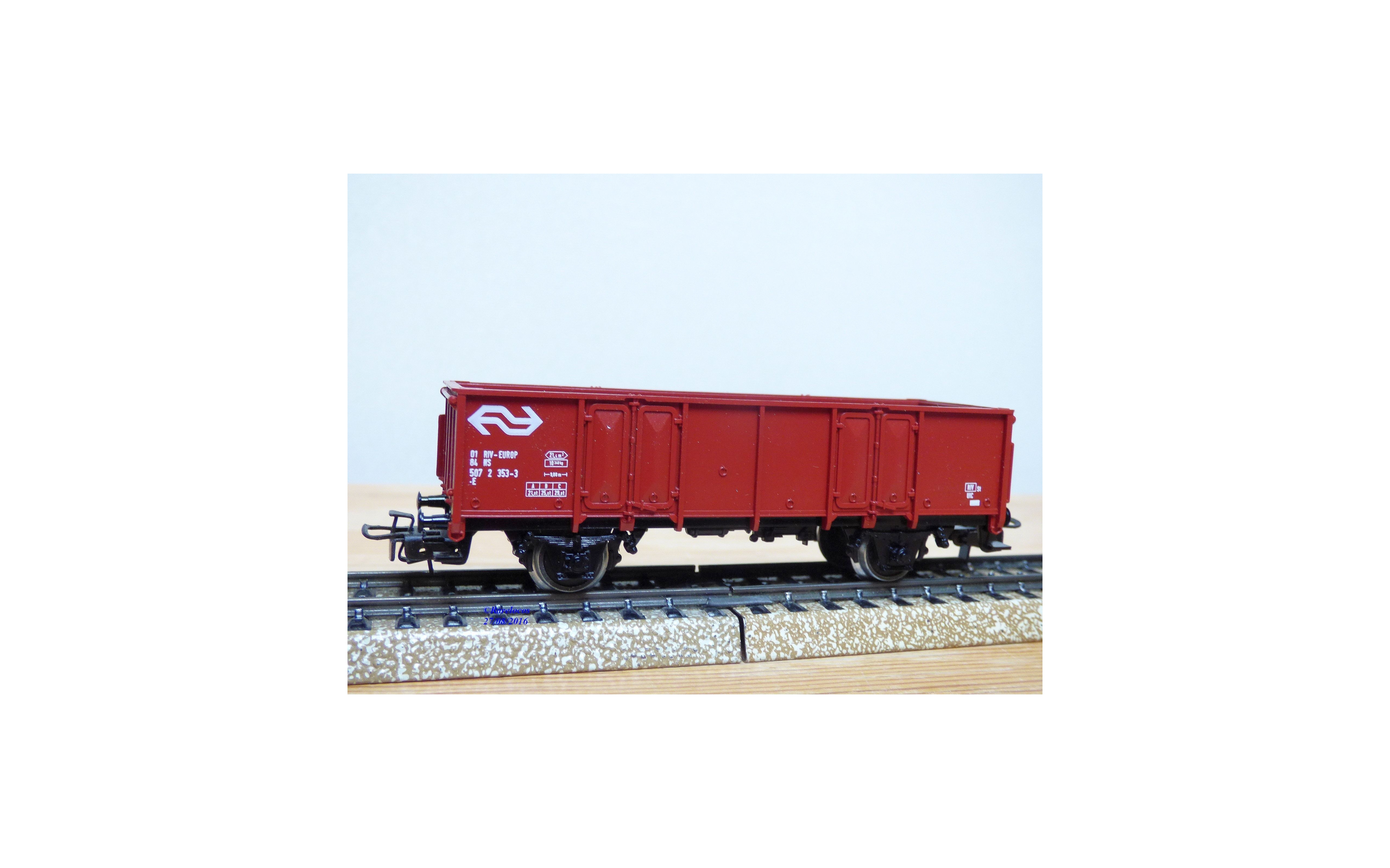 Wagon tombereau type GTOW ( EUROP Wagen ) à 2 essieux des chemins de fer hollandais ( NS ), livrée marron, immatriculation :01 84 507 2 353-3, boîte d'origine en état neuf.