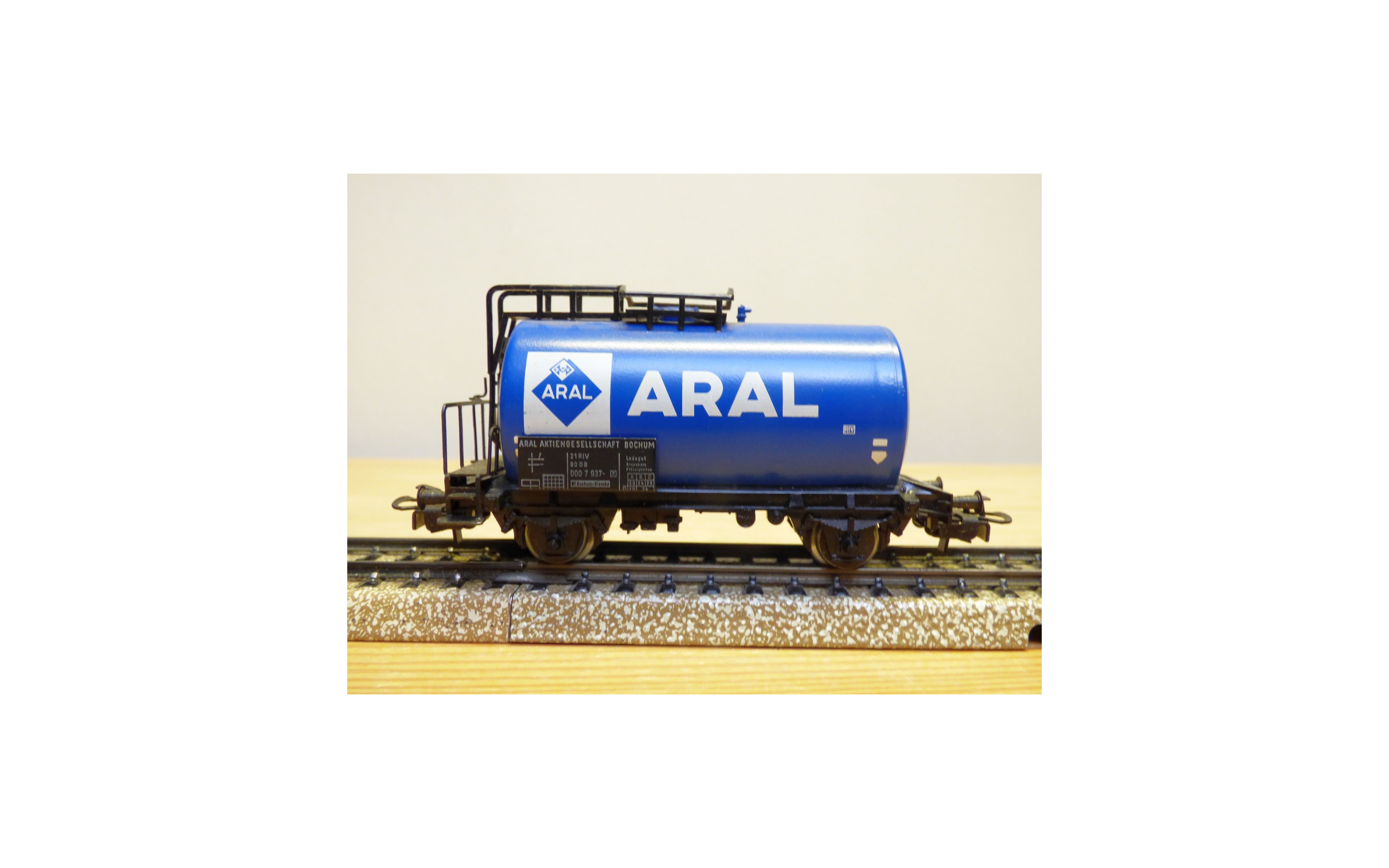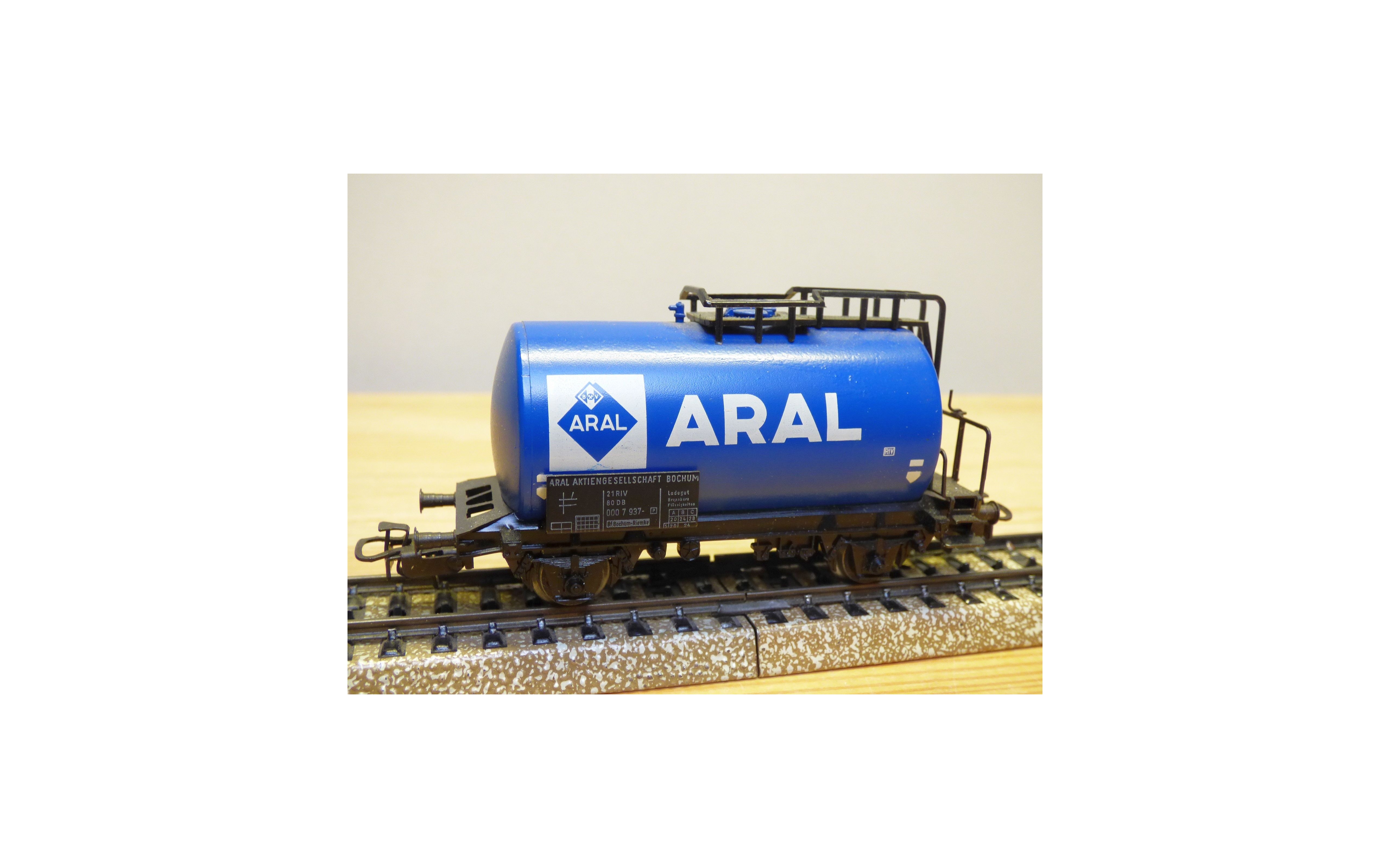 Wagon citerne unifié à 2 essieux des chemins de fer allemands ( DB ), livrée bleue avec marquages ARAL sur fond blanc, immatriculation : 21 80 000 7 937-, boîte d'origine en excellent état.