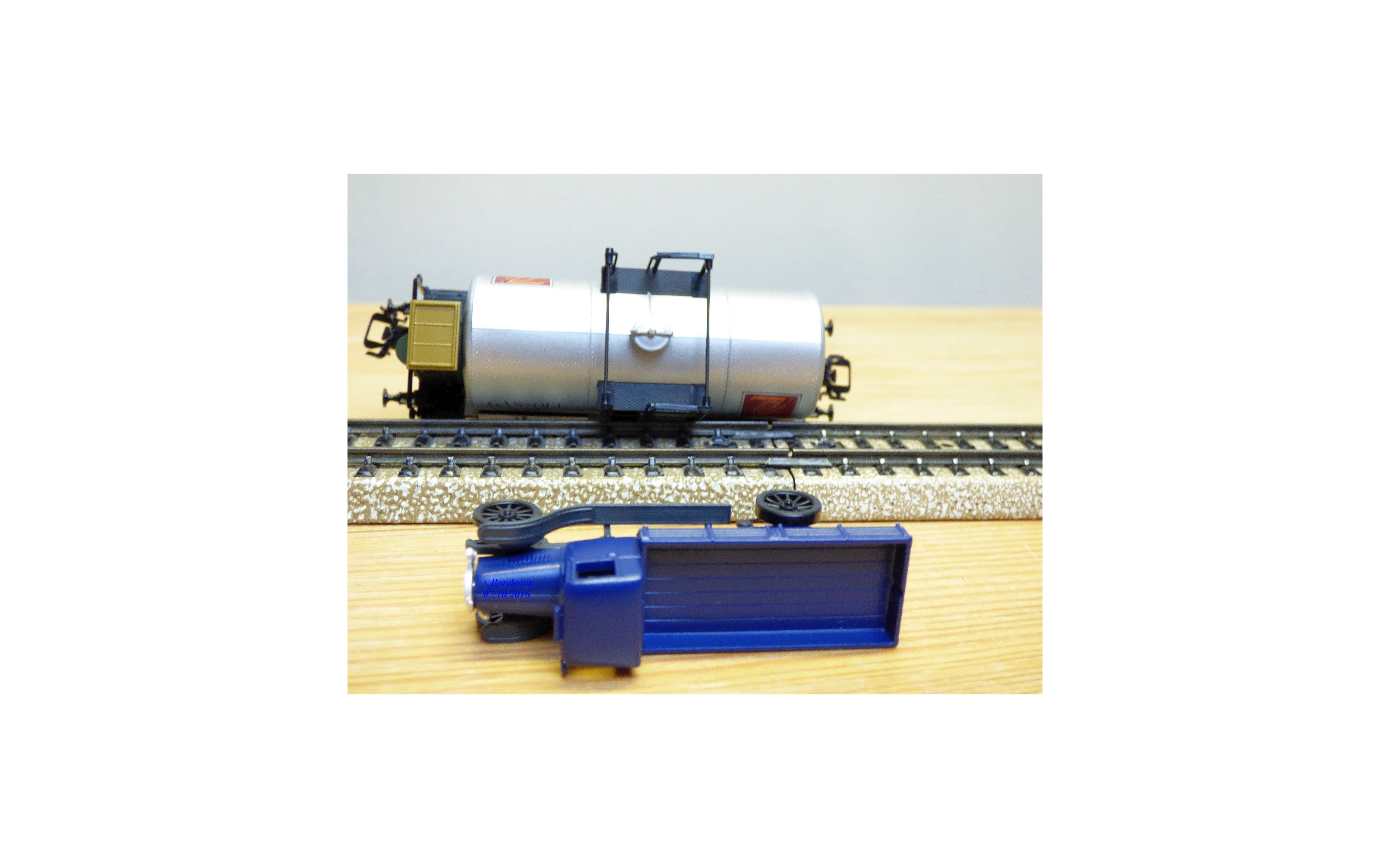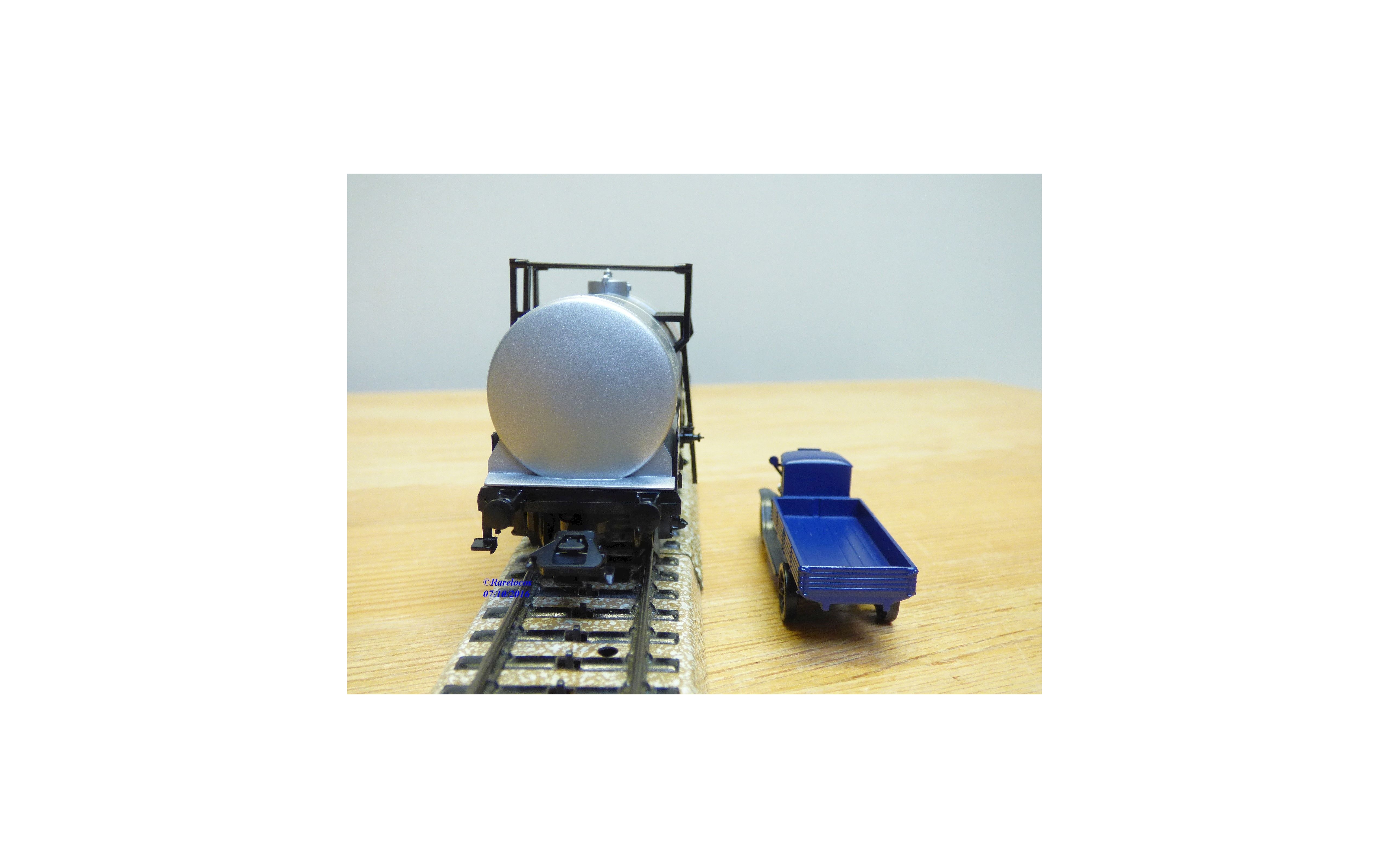 Wagon citerne à guérite à 2 essieux des chemins de fer allemands ( K.W.Sts.E.: chemins de fer du Würtemberg ) , livrée gris argent avec marquages GAS-OEL Diesel Zeller & Gmelin, attelages à élongation, et un camion fourgon ancien en métal ( Märklin ), boîte d'origine en état neuf.