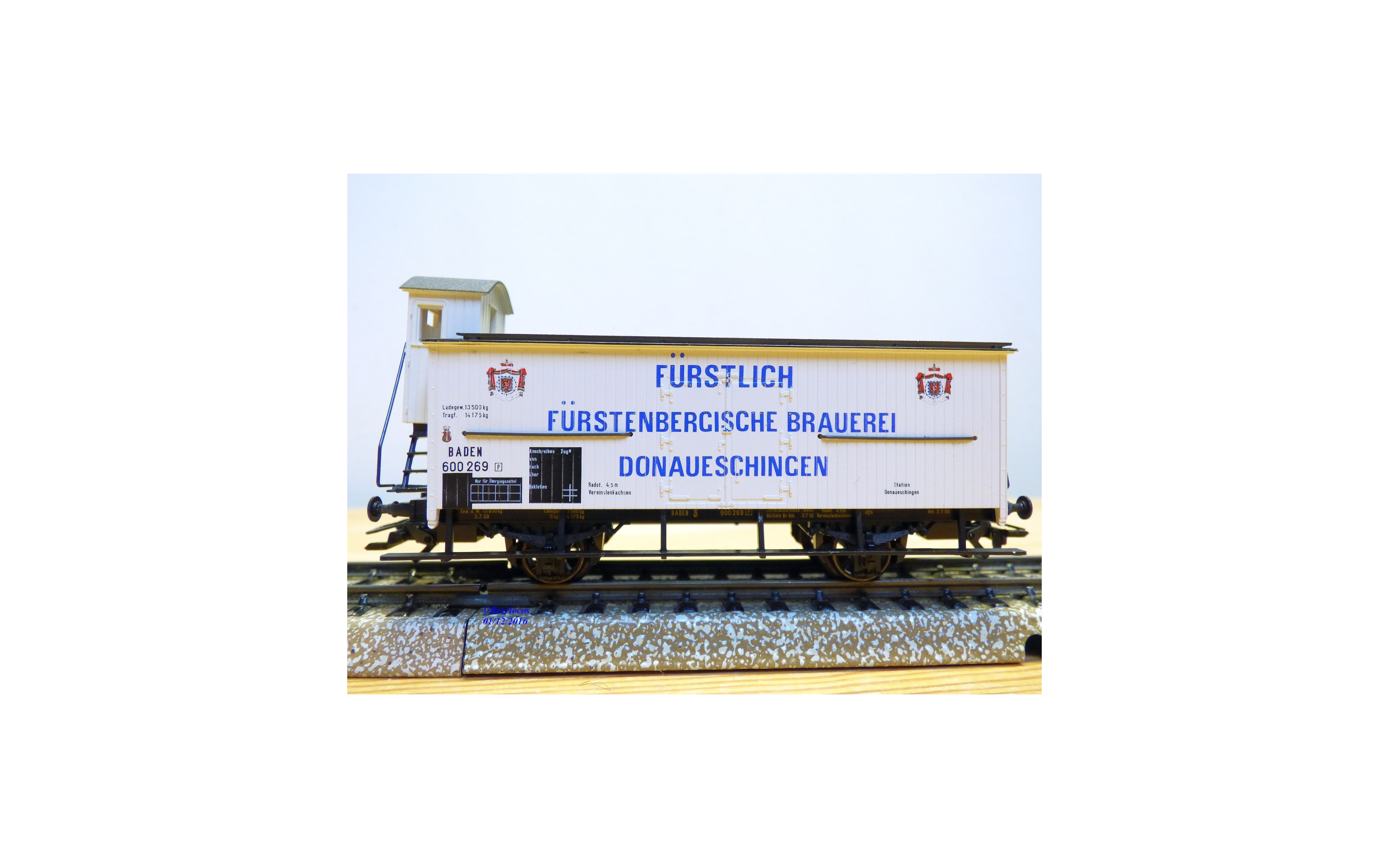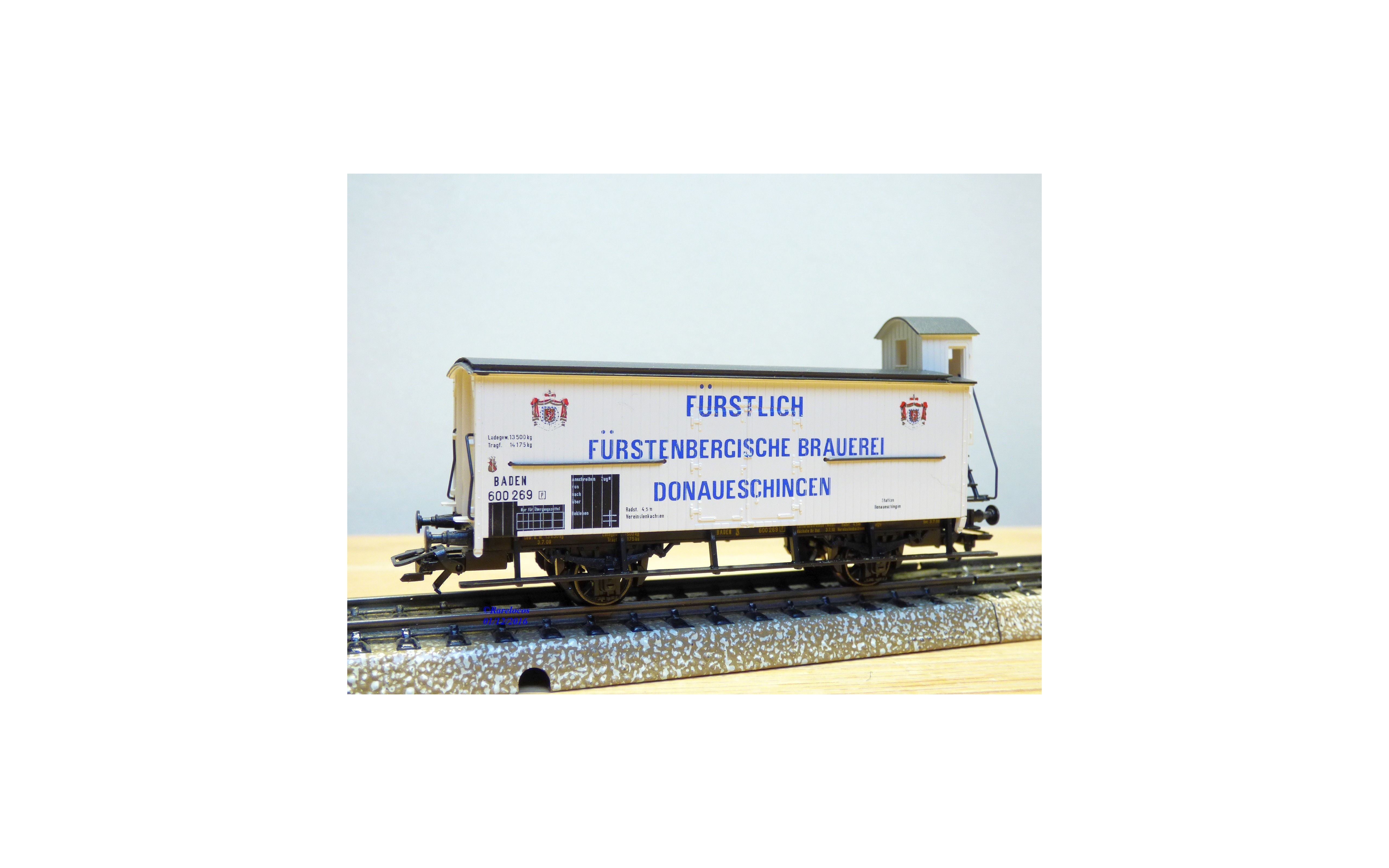 Wagon couvert à guérite à 2 essieux des chemins de fer allemands ( BADEN ) , livrée blanche à toit gris avec marquages au nom de la brasserie FÜRSTLICH FÜRSTENBERGISCHE BRAUEREI à Donaueschingen, boîte d'origine en état neuf.