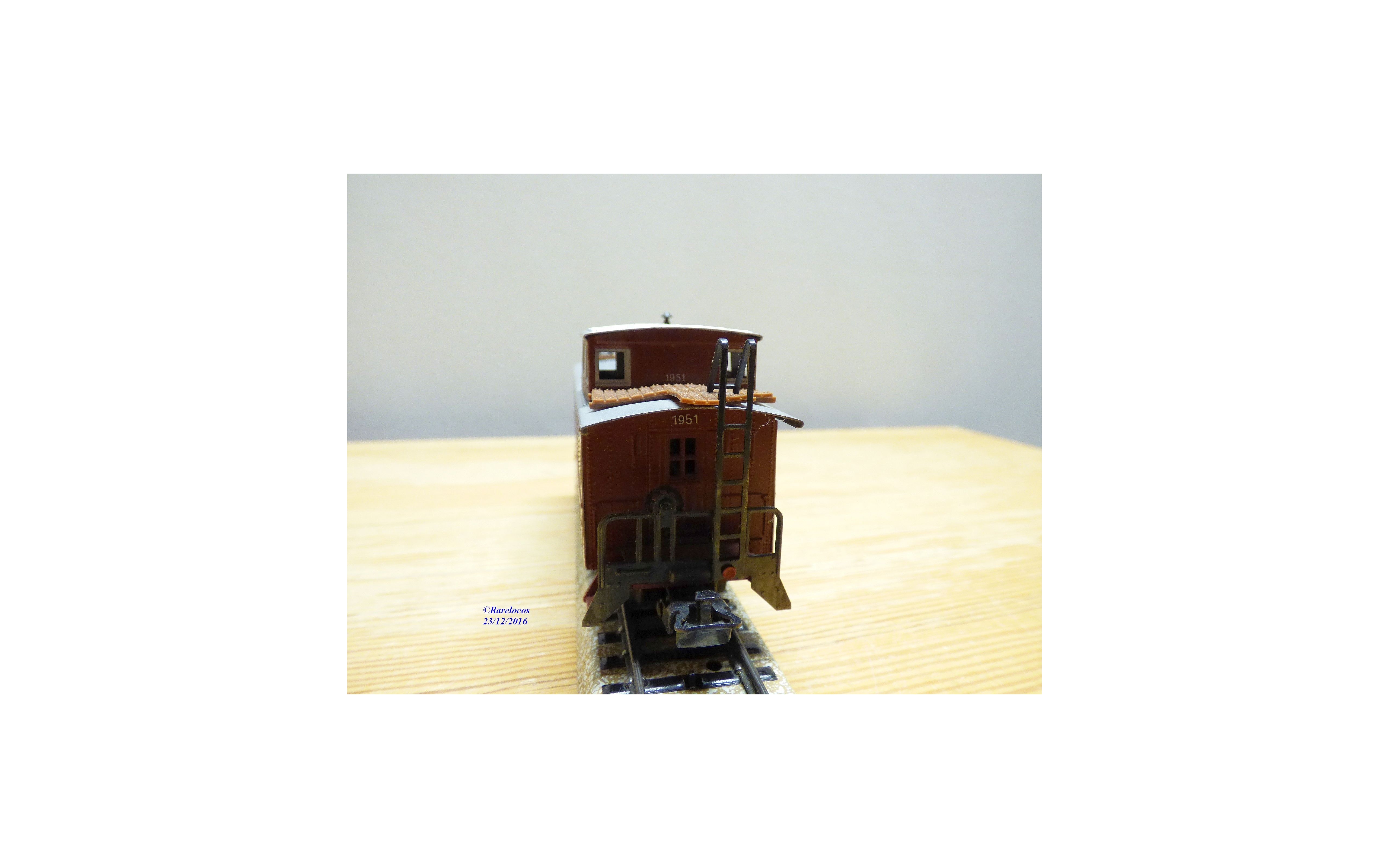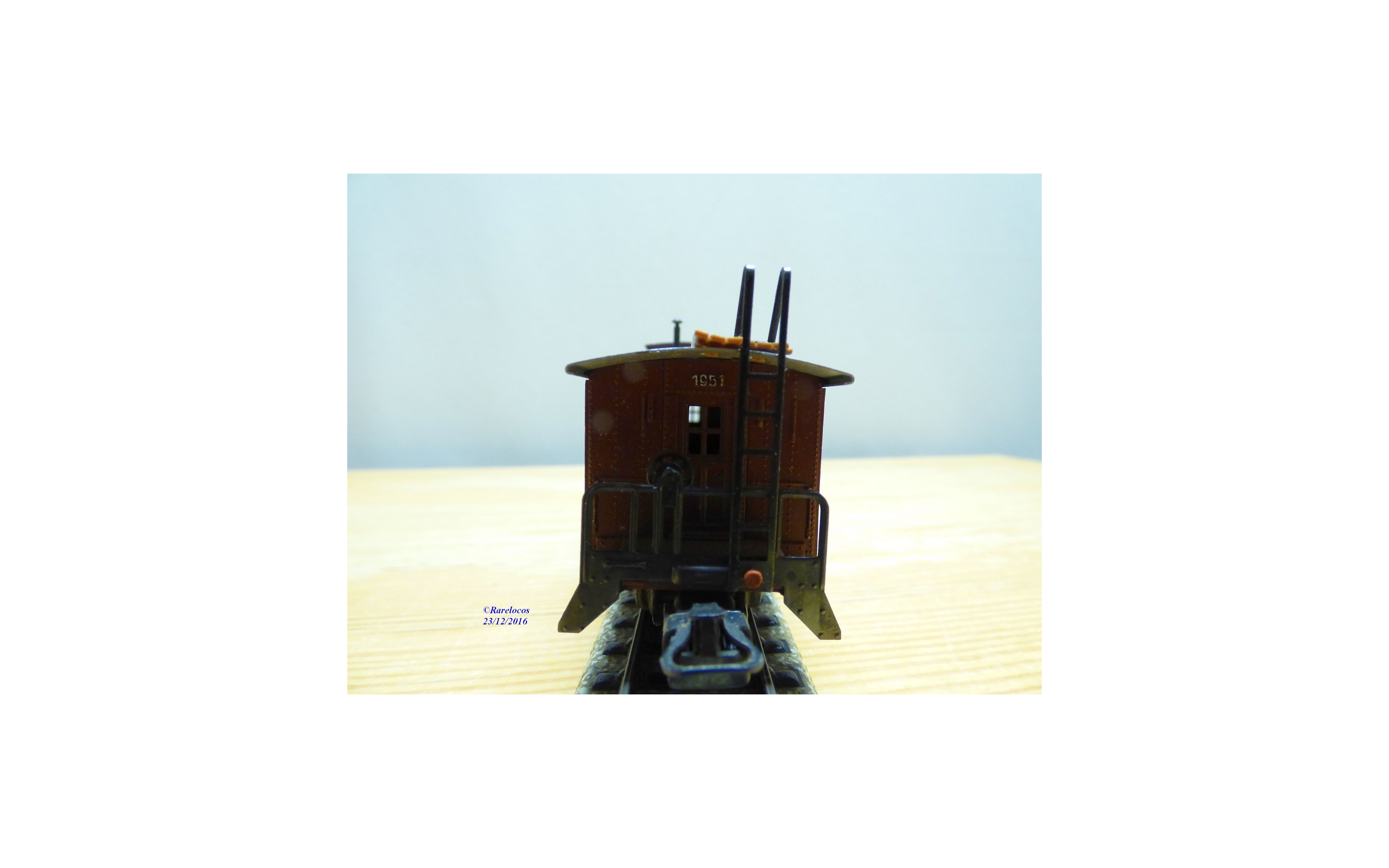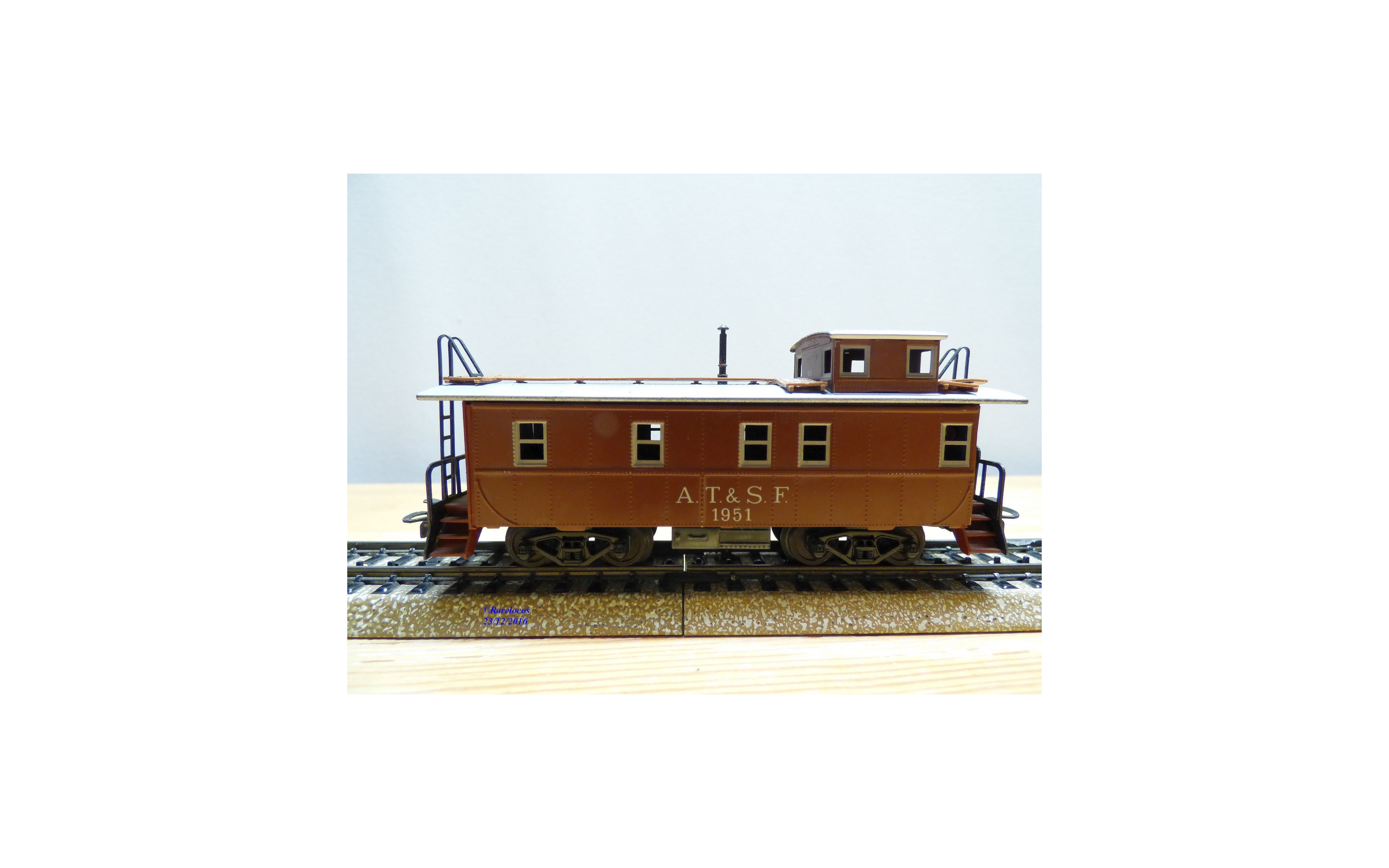 Rare fourgon de queue ( caboose ) à 2 bogies des chemins de fer américains ( AT&SF : Atchison, Topeka and Santa Fé ), livrée brune à toit gris argent, immatriculation : 1951, emballage d'origine en état correct.