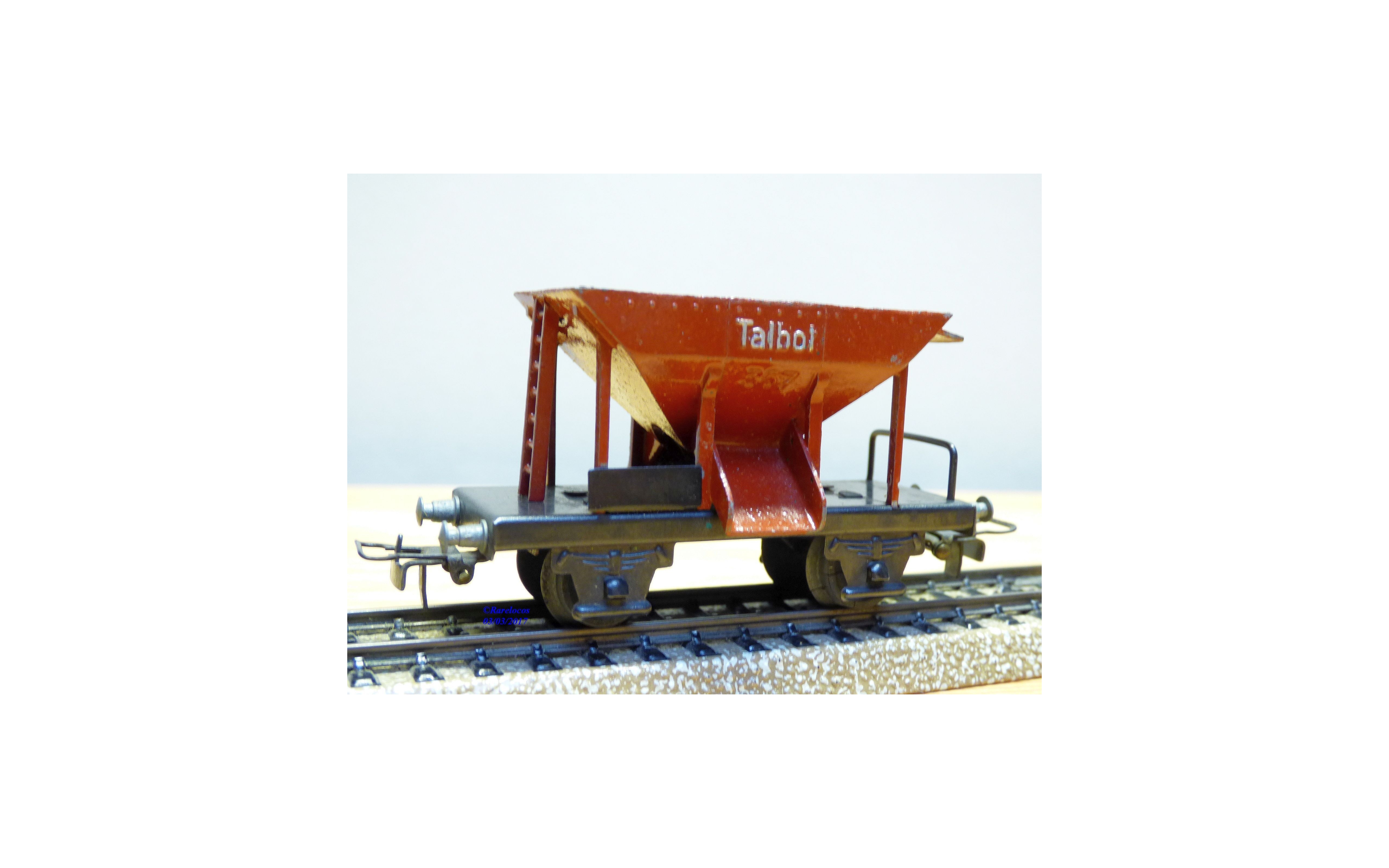 Wagon trémie à déchargement latéral type Talbot des chemins de fer allemands ( DB ), tout métal, livrée marron, pas de boîte d' origine.