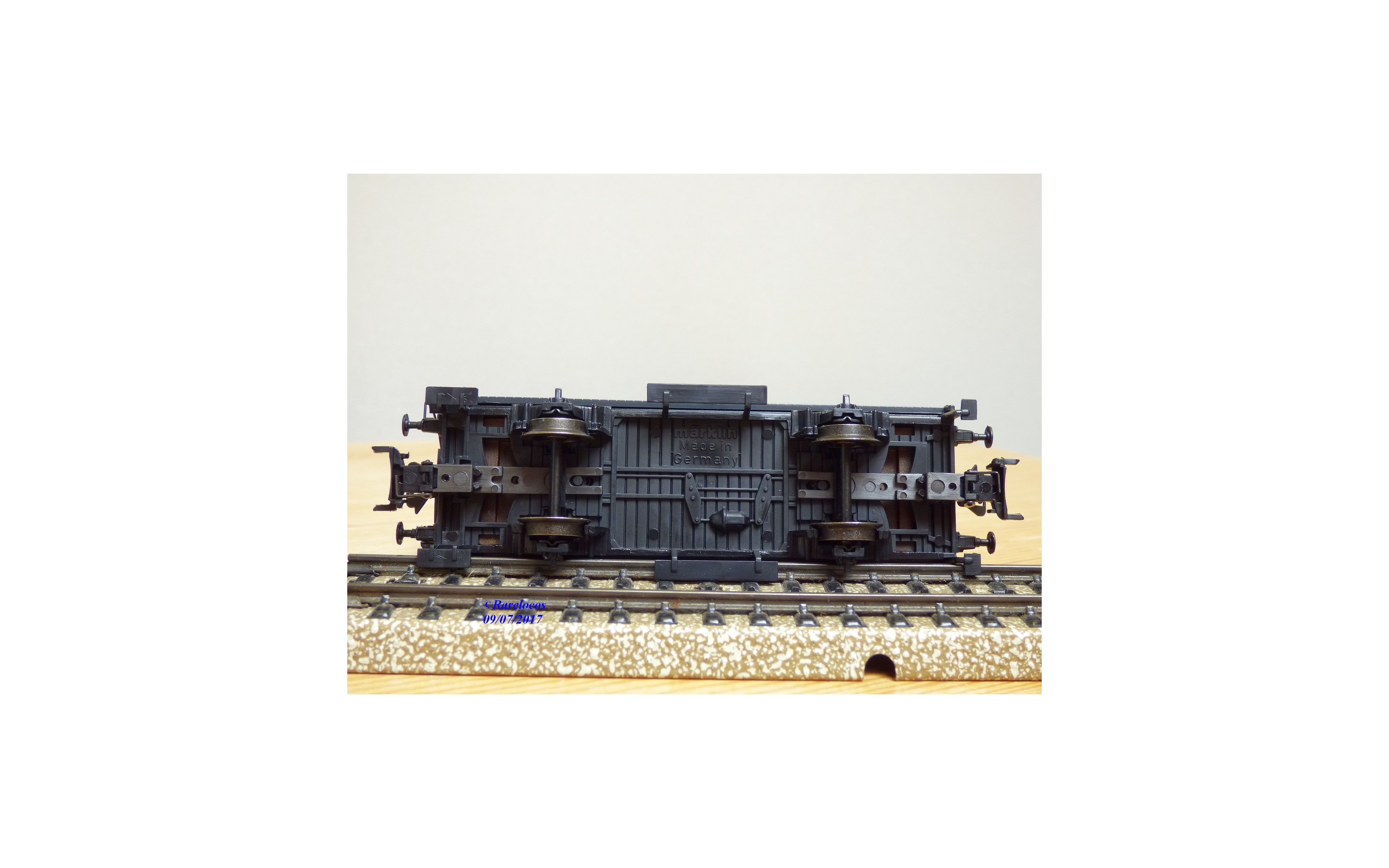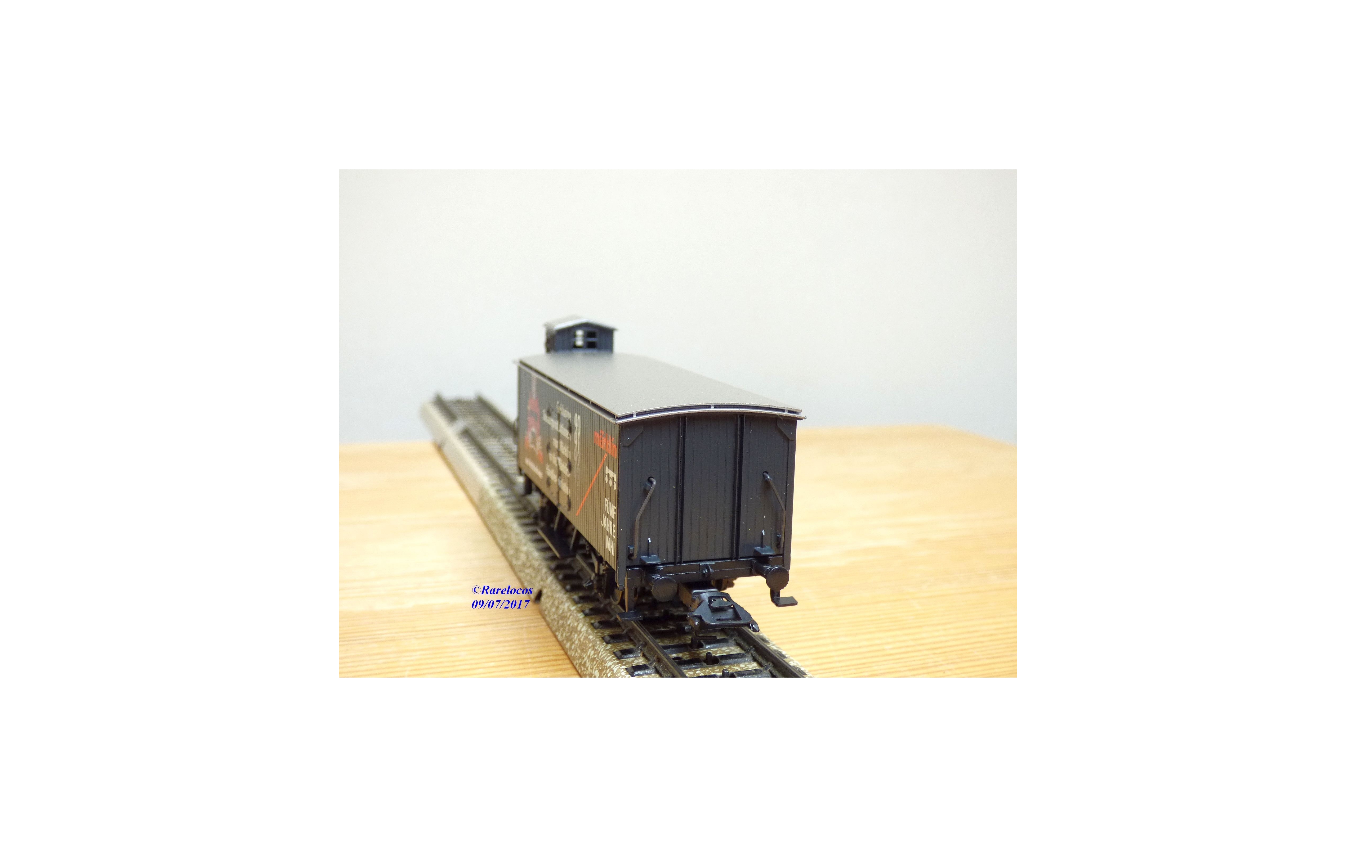 Wagon couvert ancien à guérite à 2 essieux , livrée noire à toit gris, décoré d'une silhouette de camion de pompiers, marquages FÜNF JAHRE MHI, boîte d'origine en état neuf.