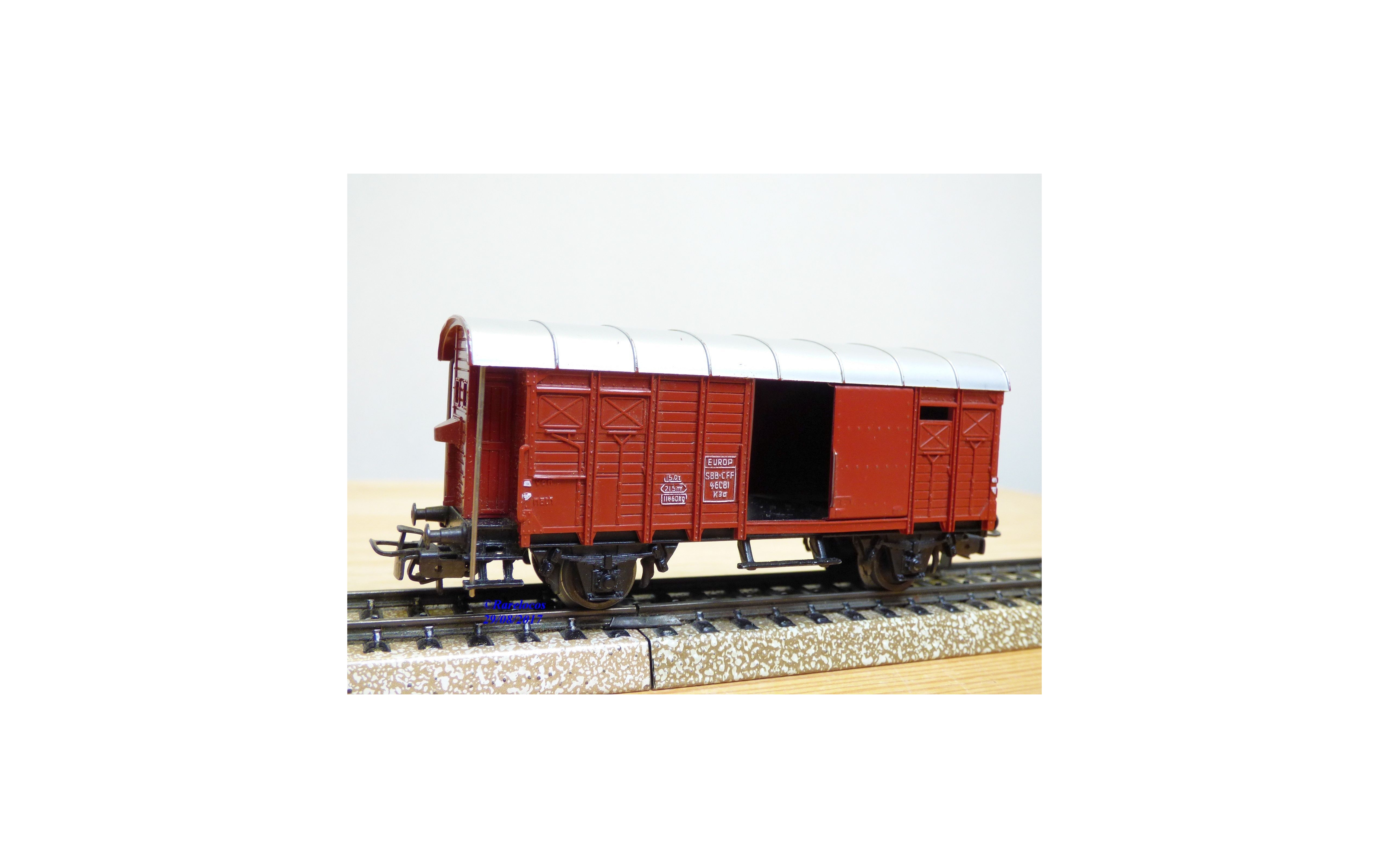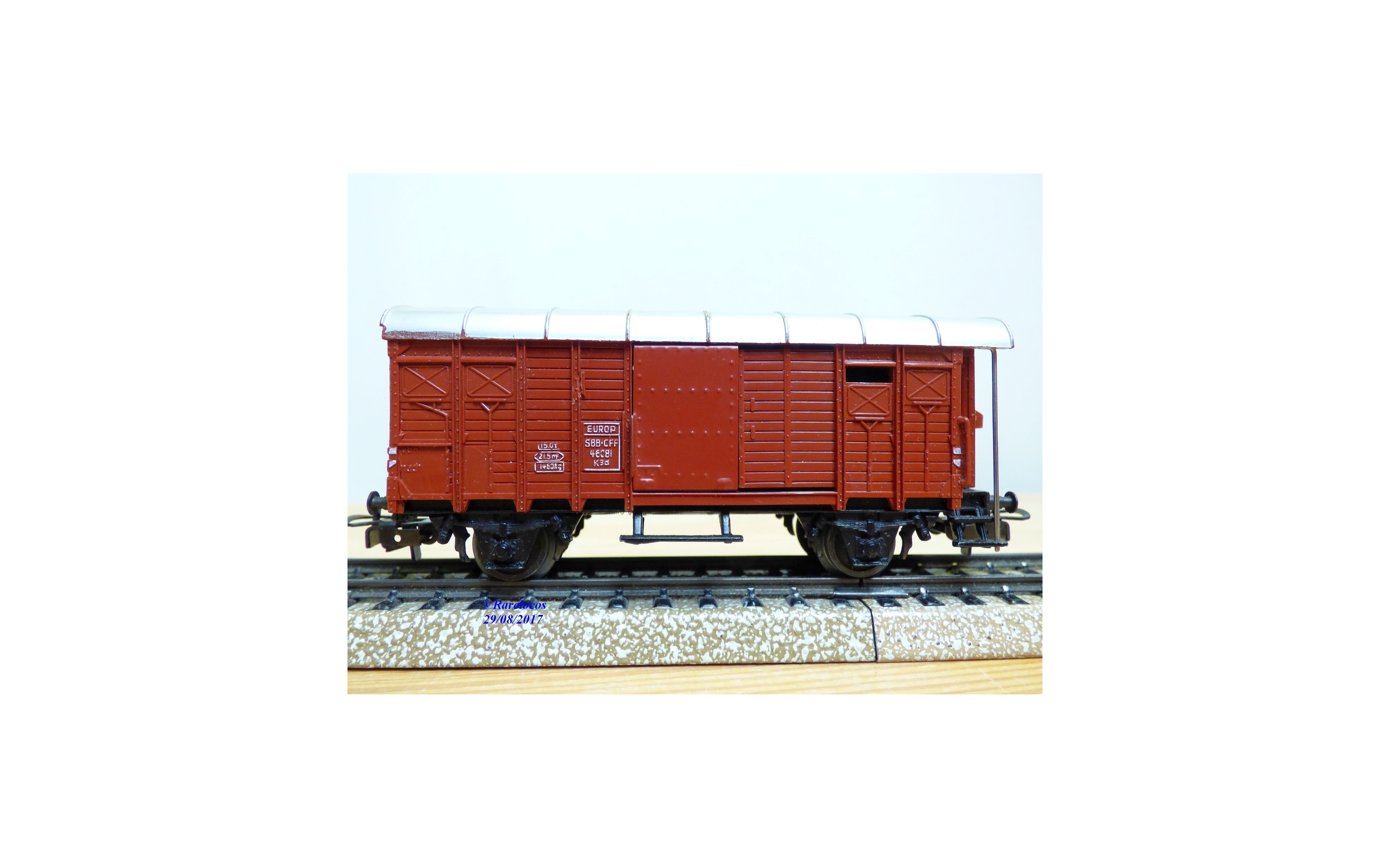 Wagon couvert à 2 essieux à guérite type K3 des chemins de fer suisses ( SBB / CFF / FFS ), portes coulissantes fonctionnelles, livrée marron à toit gris argent, boîte d'origine en excellent état.