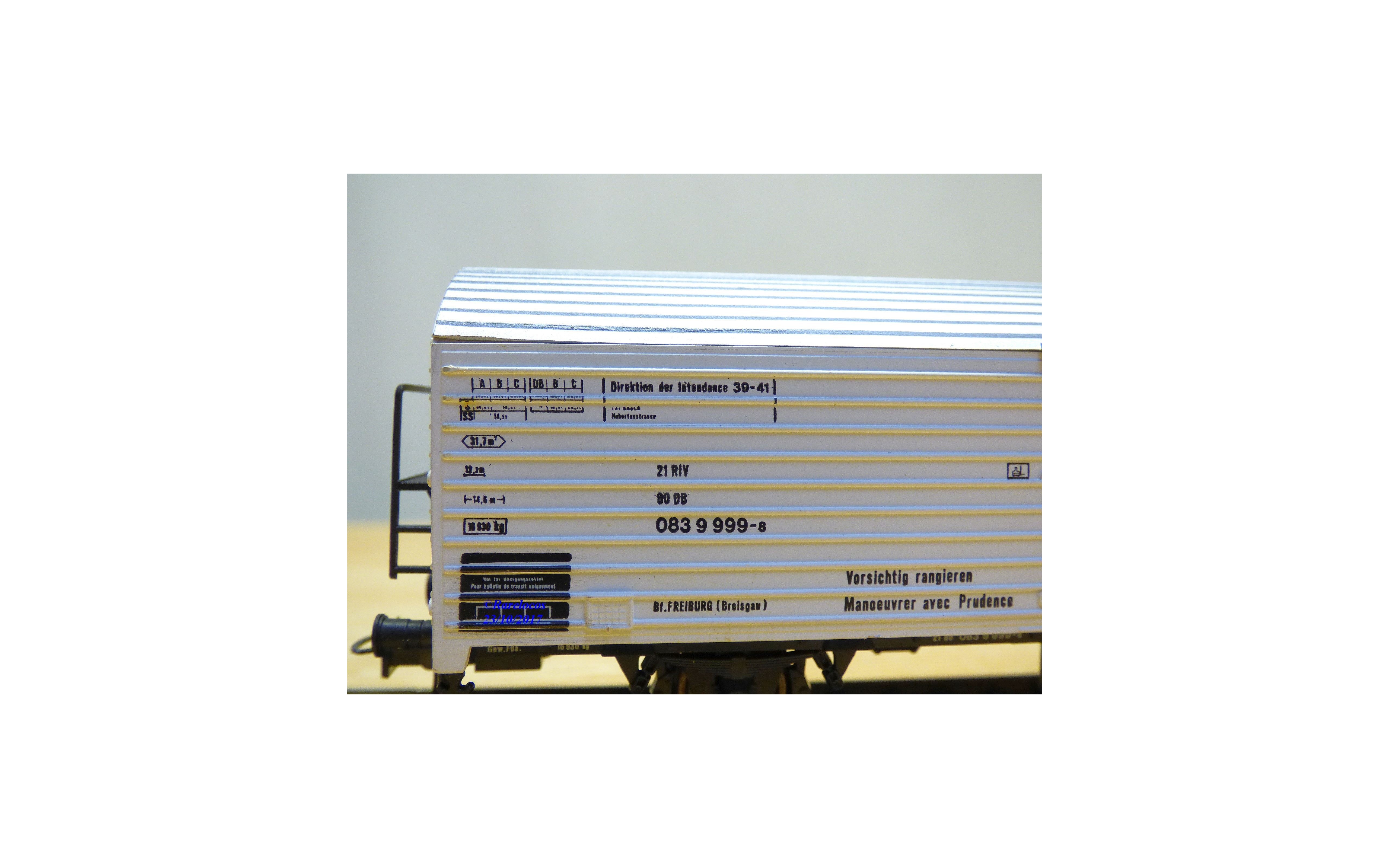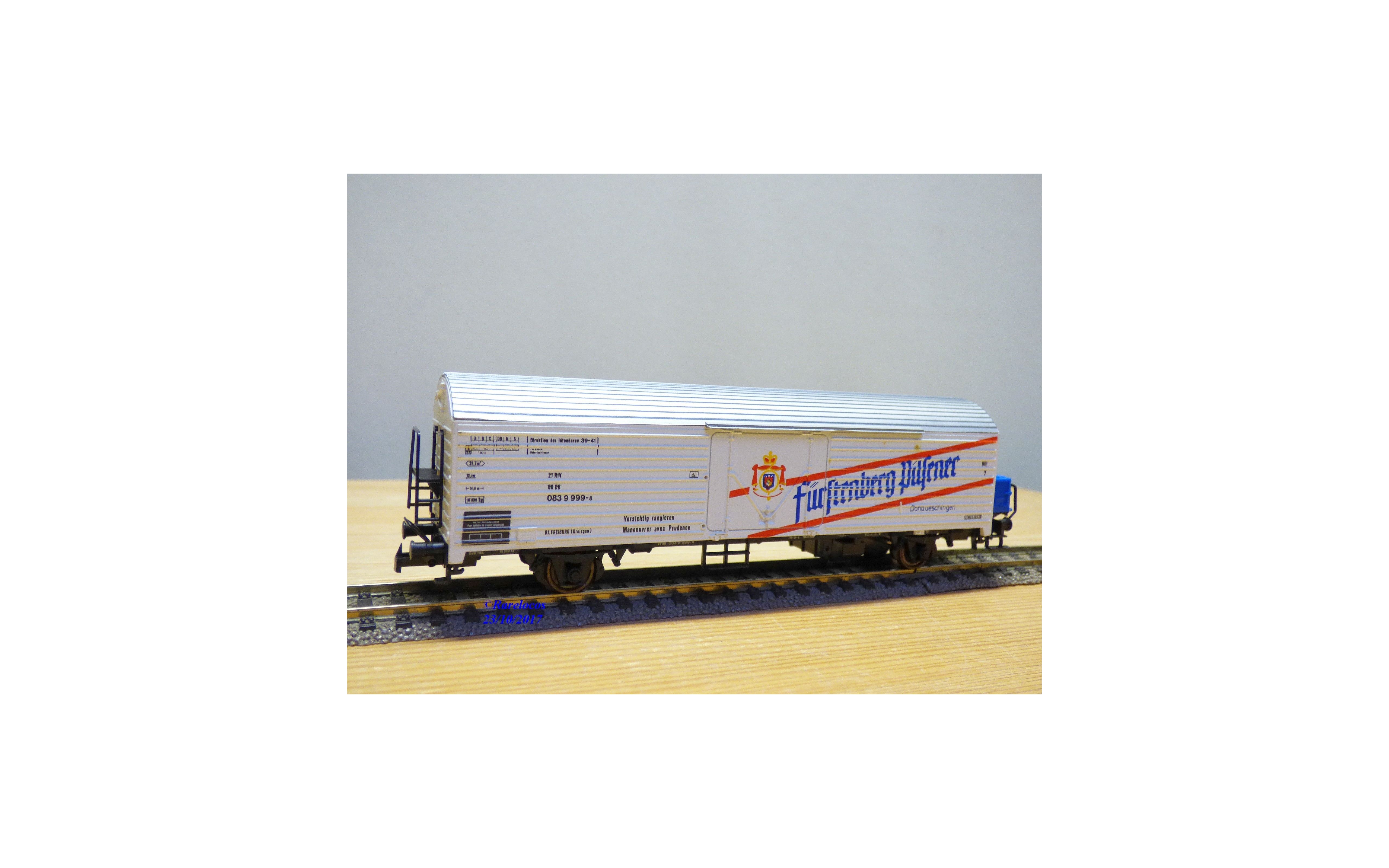 Wagon couvert à 2 essieux des chemins de fer allemands ( DB), livrée blanche avec marquages Fürstenberg Pilsner à Donaueschingen , pièces de détaillage encore scellées, notice présente, boîte d'origine en excellent état.