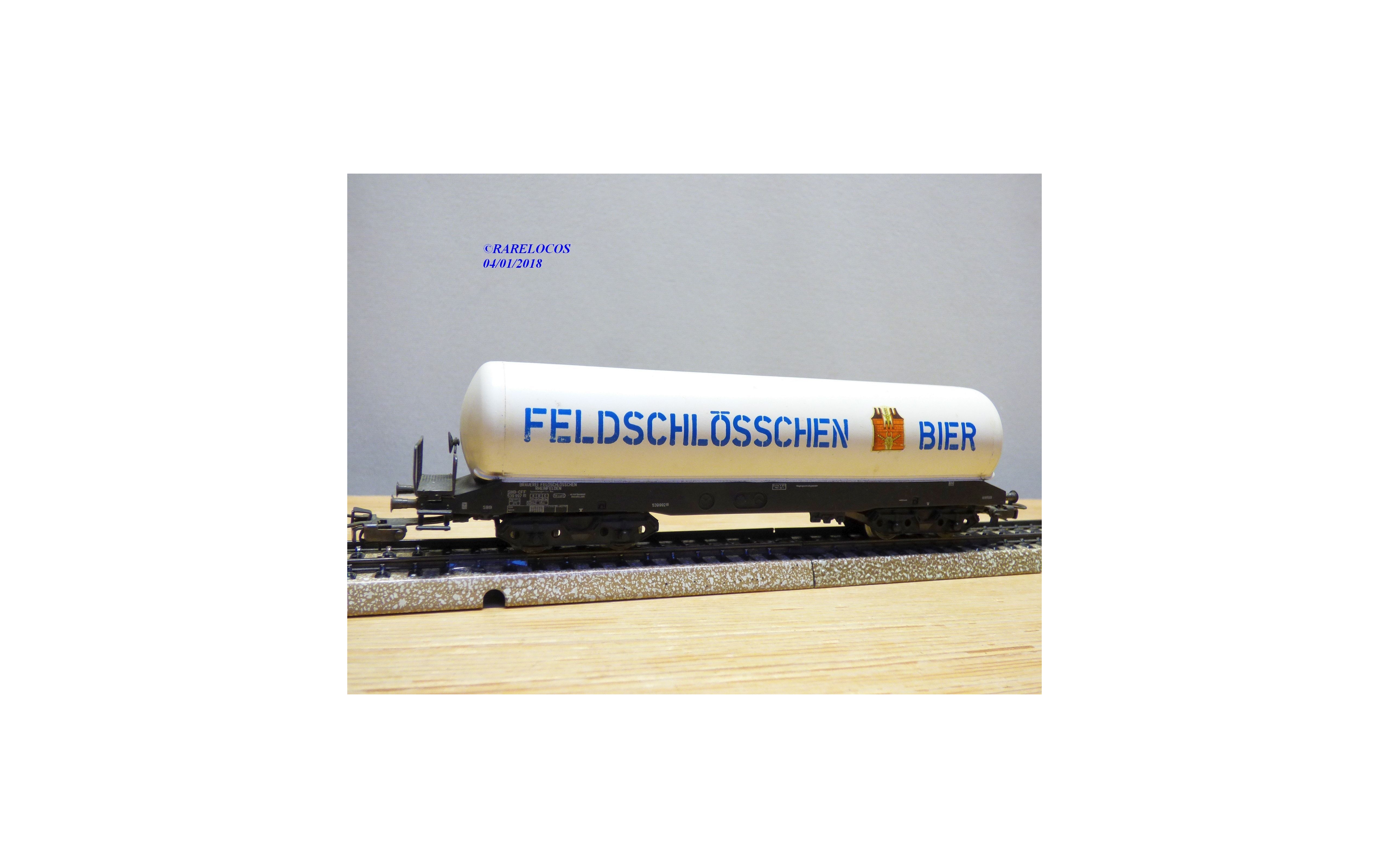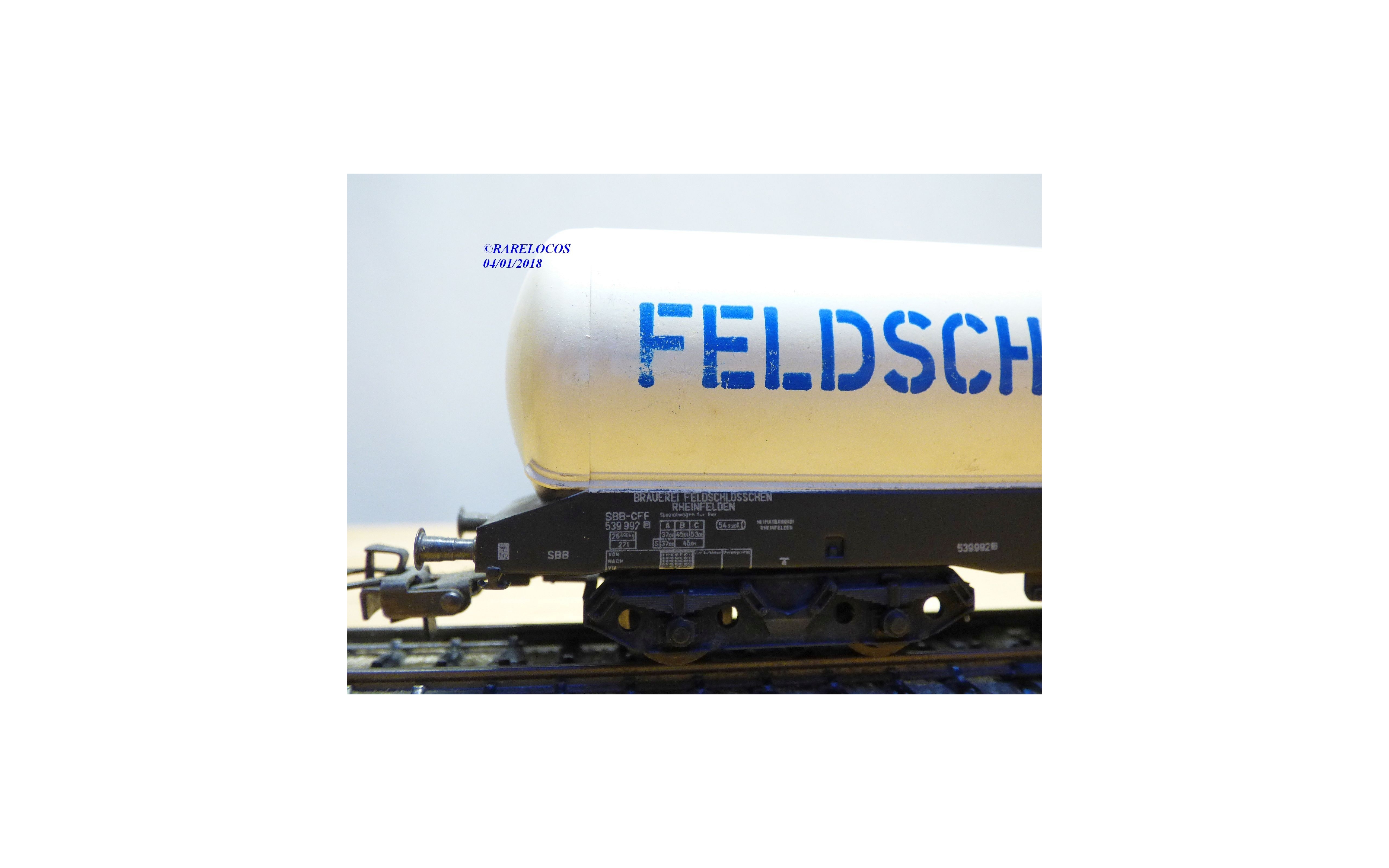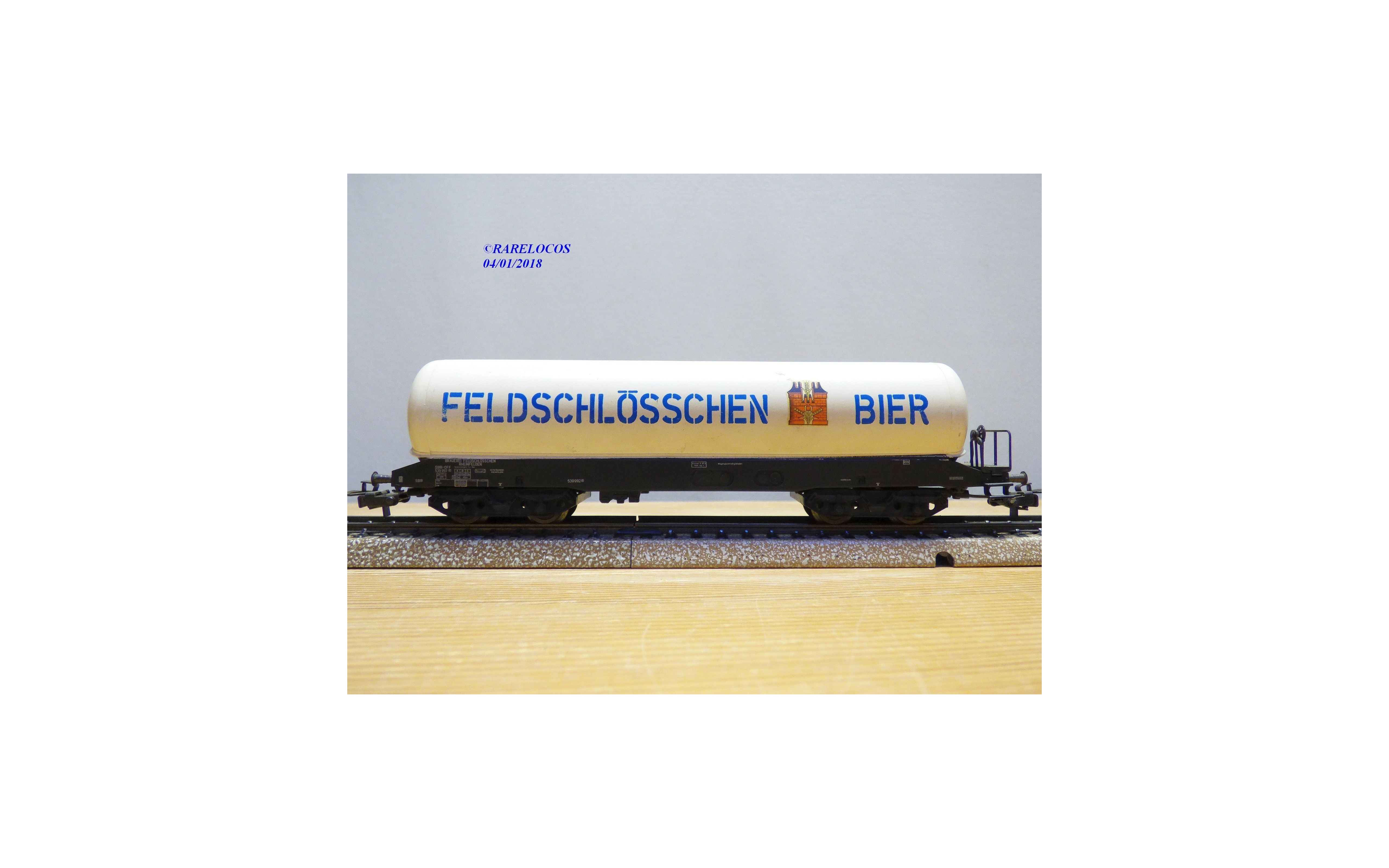 Wagon citerne pour le transport de bière à 2 bogies des chemins de fer suisses ( SBB/CFF/FFS ), livrée blanche avec marquages FELDSCHLÖSSCHEN BIER, boîte d'origine en bon état.
