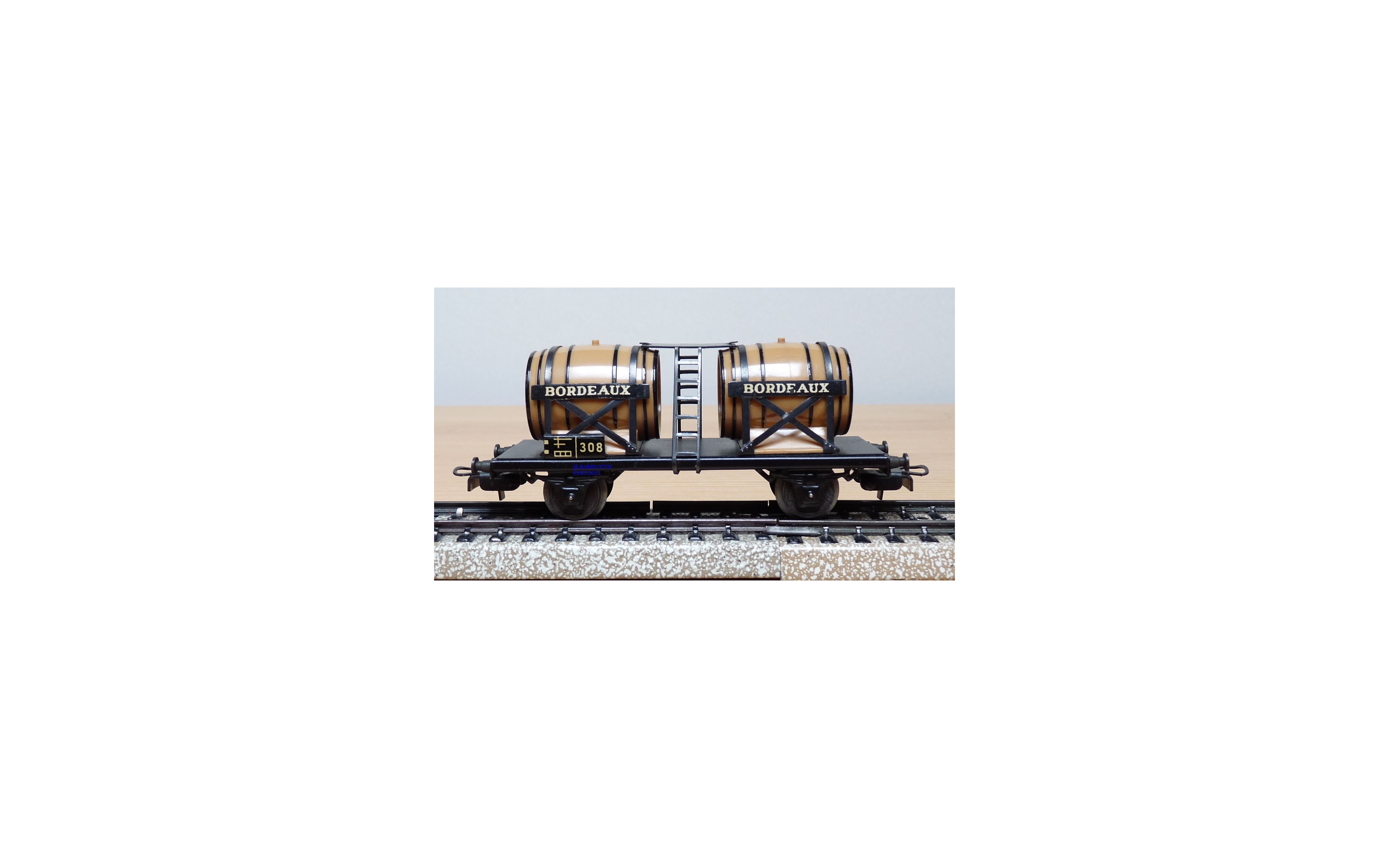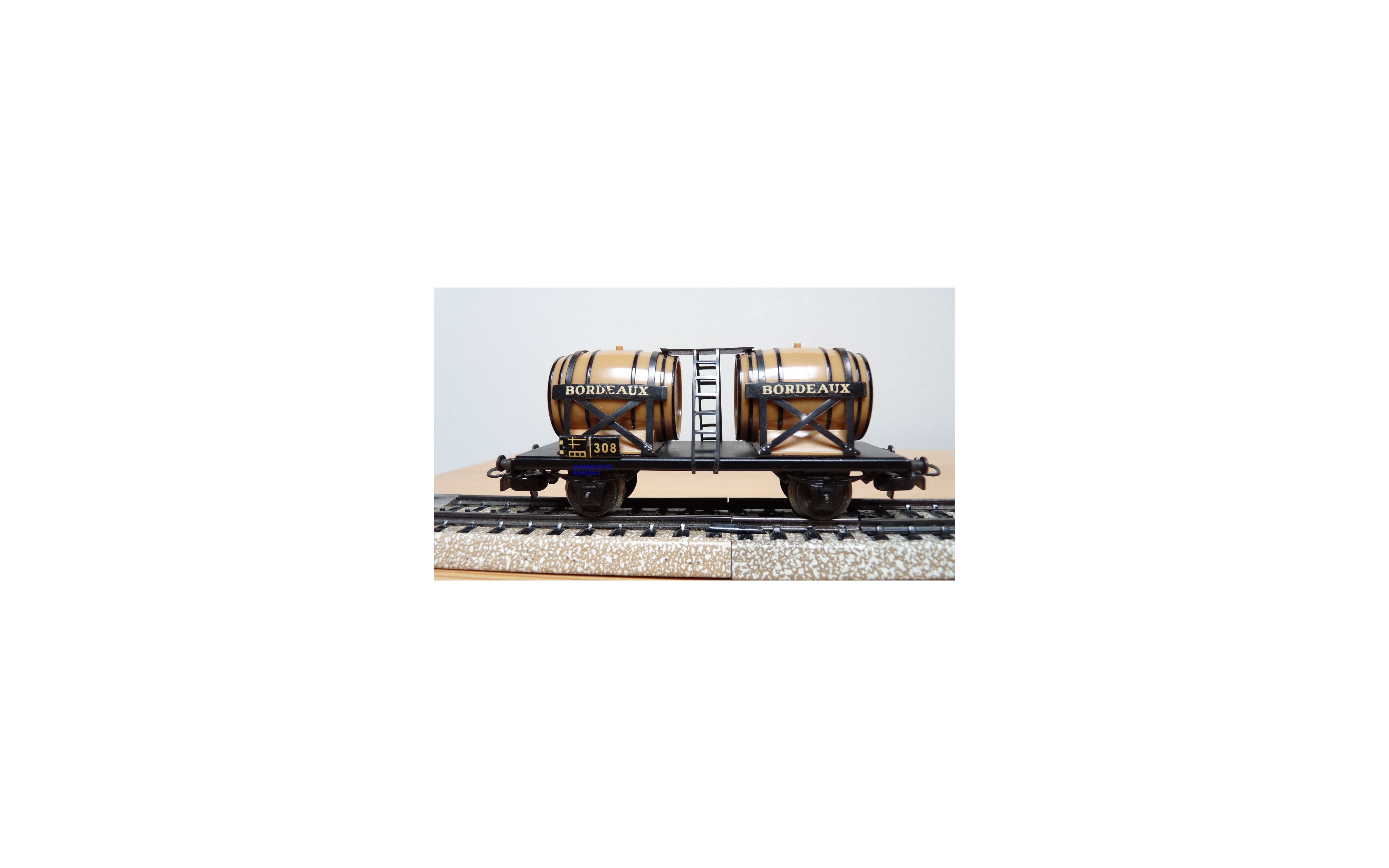 Wagon bi-foudres à 2 essieux pour le transport de vin, marquages Bordeaux, pas d' emballage d'origine.