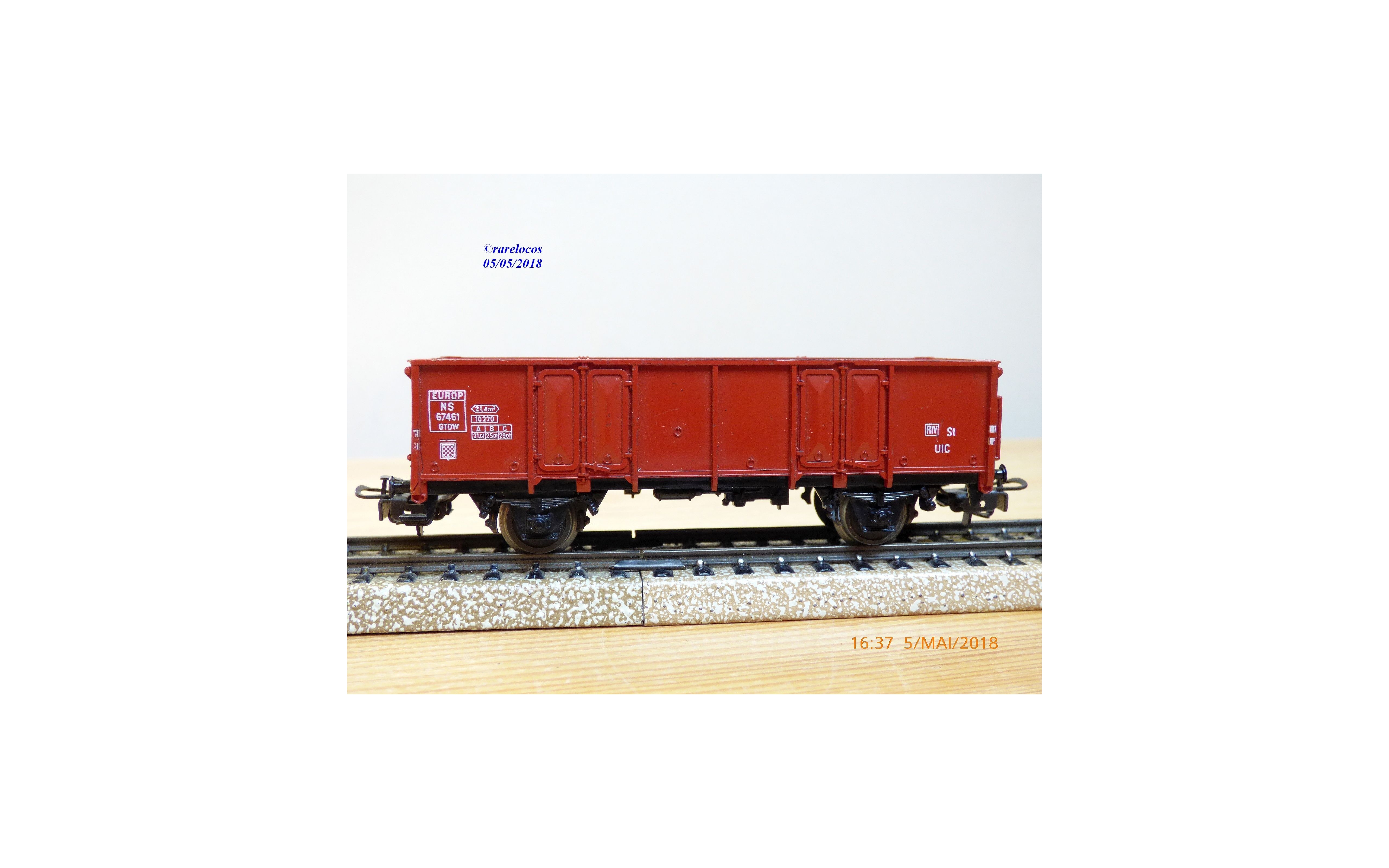Wagon tombereau à 2 essieux des chemins de fer hollandais (NS ), livrée marron, boîte d'origine mais pas la bonne référence.