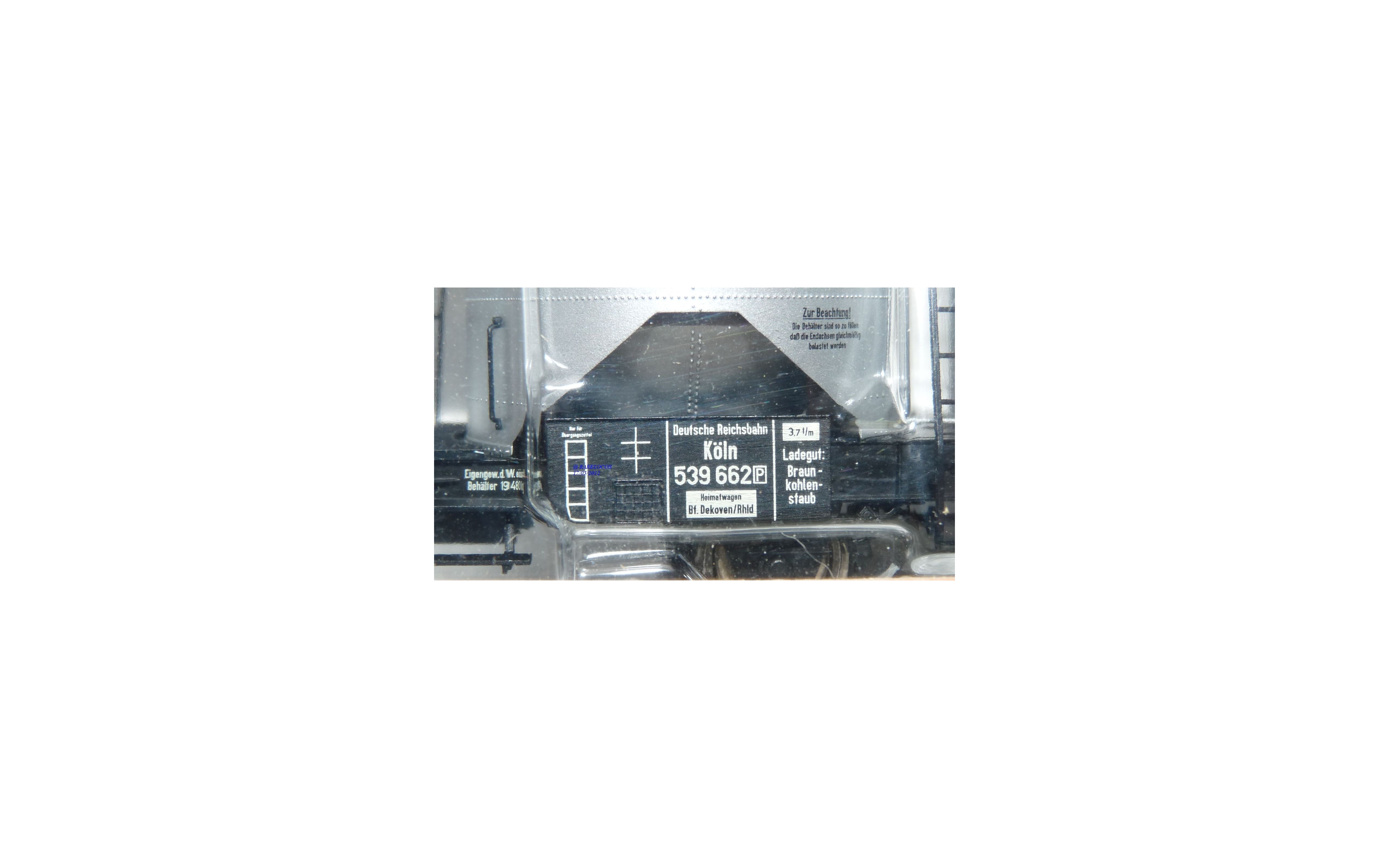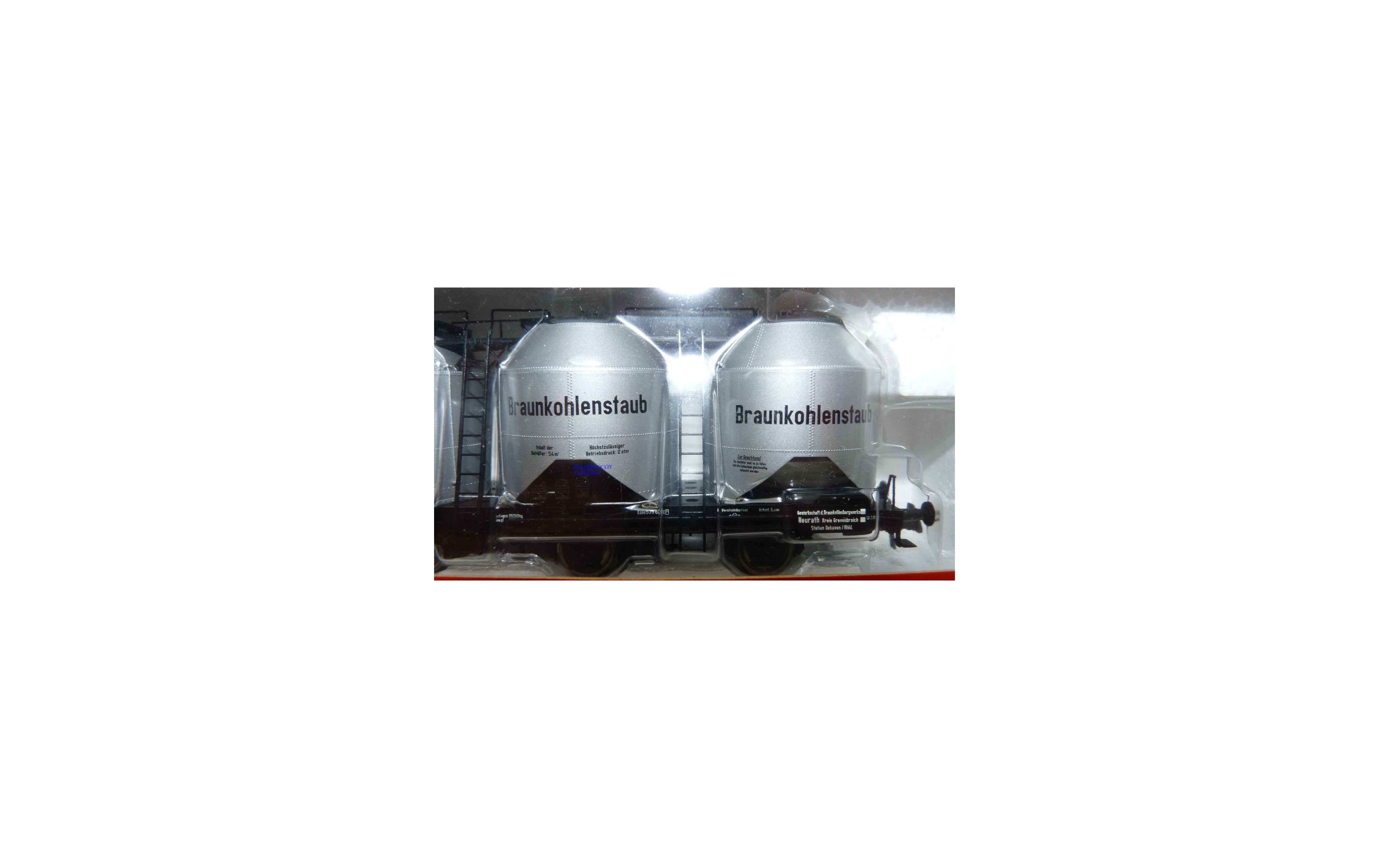 Wagon silo pour le transport de lignite à 3 essieux des chemins de fer allemands ( DR ), livrée grise avec marquages Braunkohlenstaub, notice présente, emballage d'origine en excellent état.