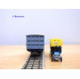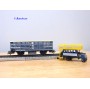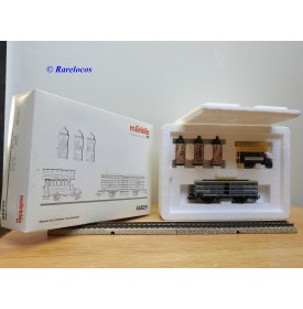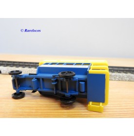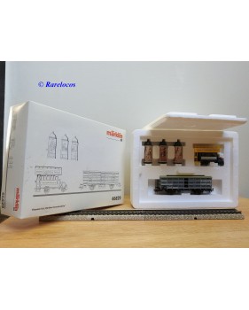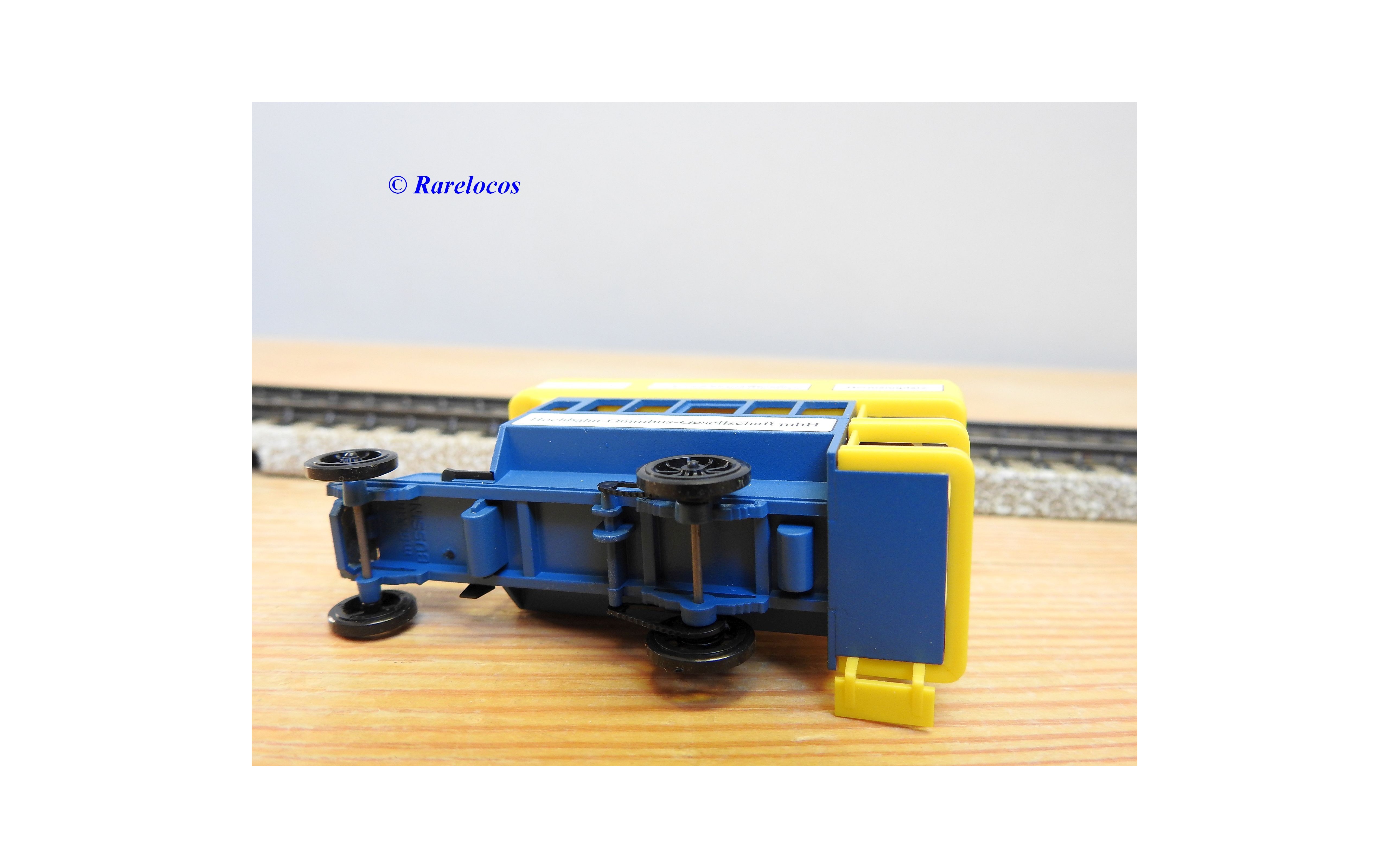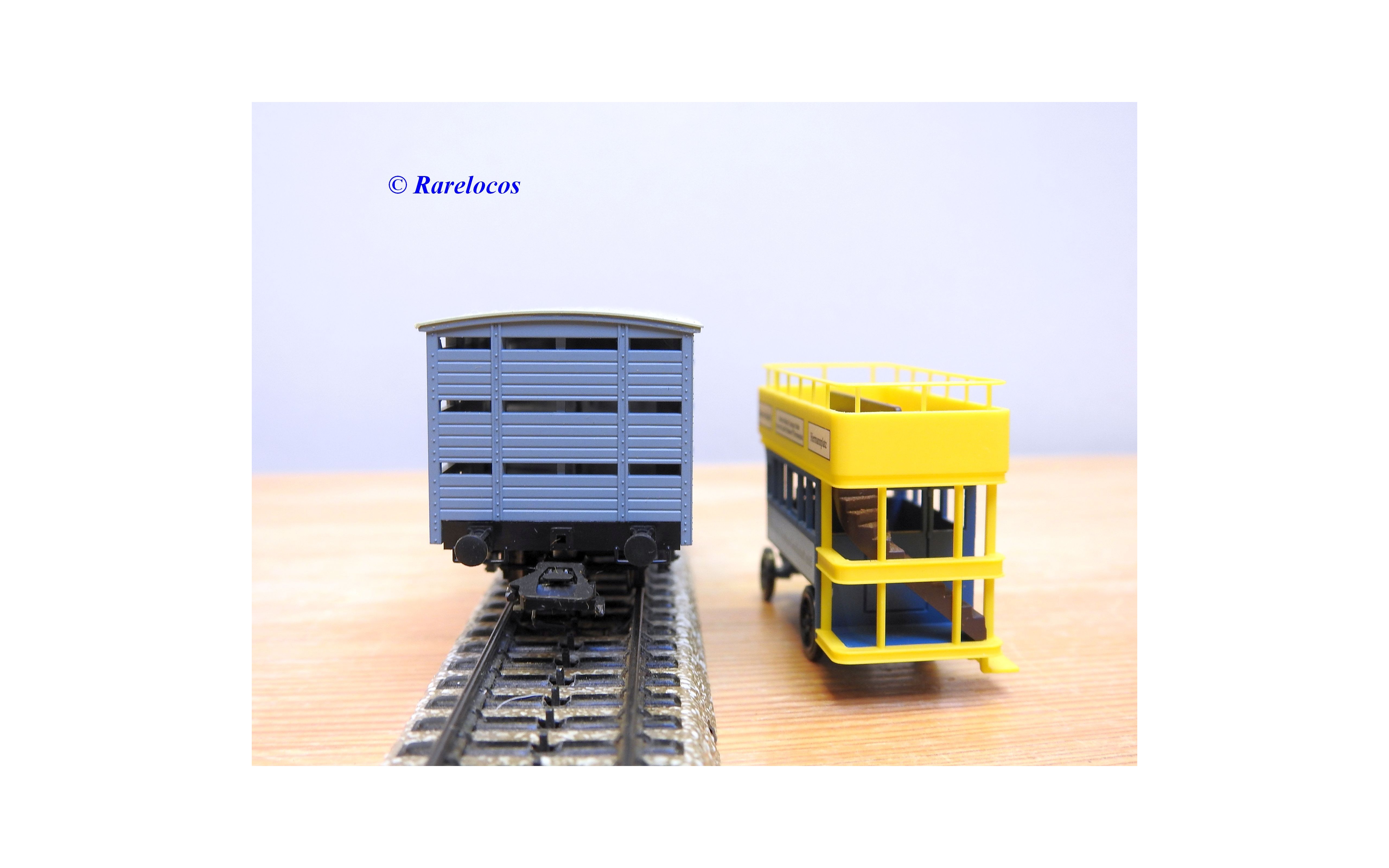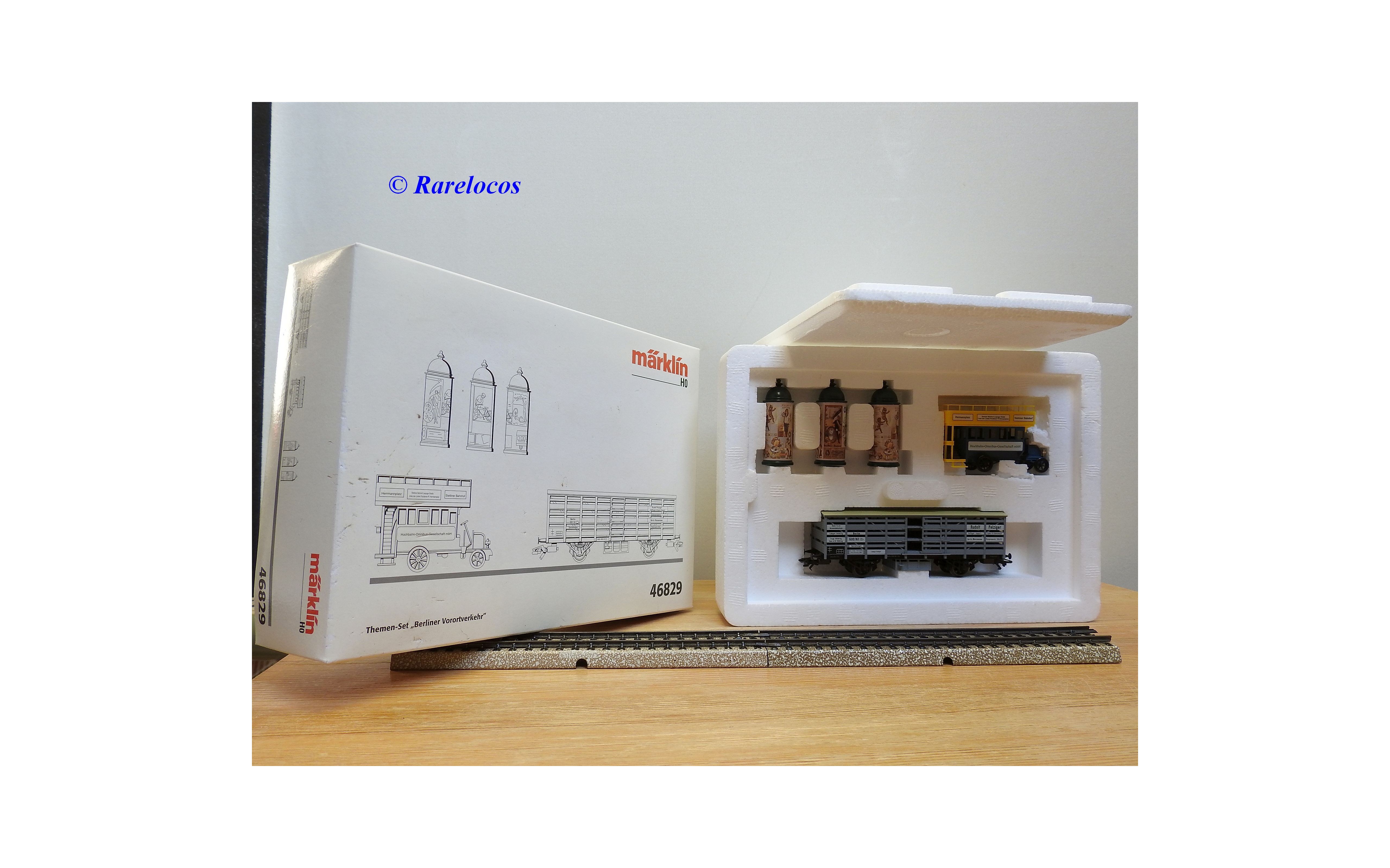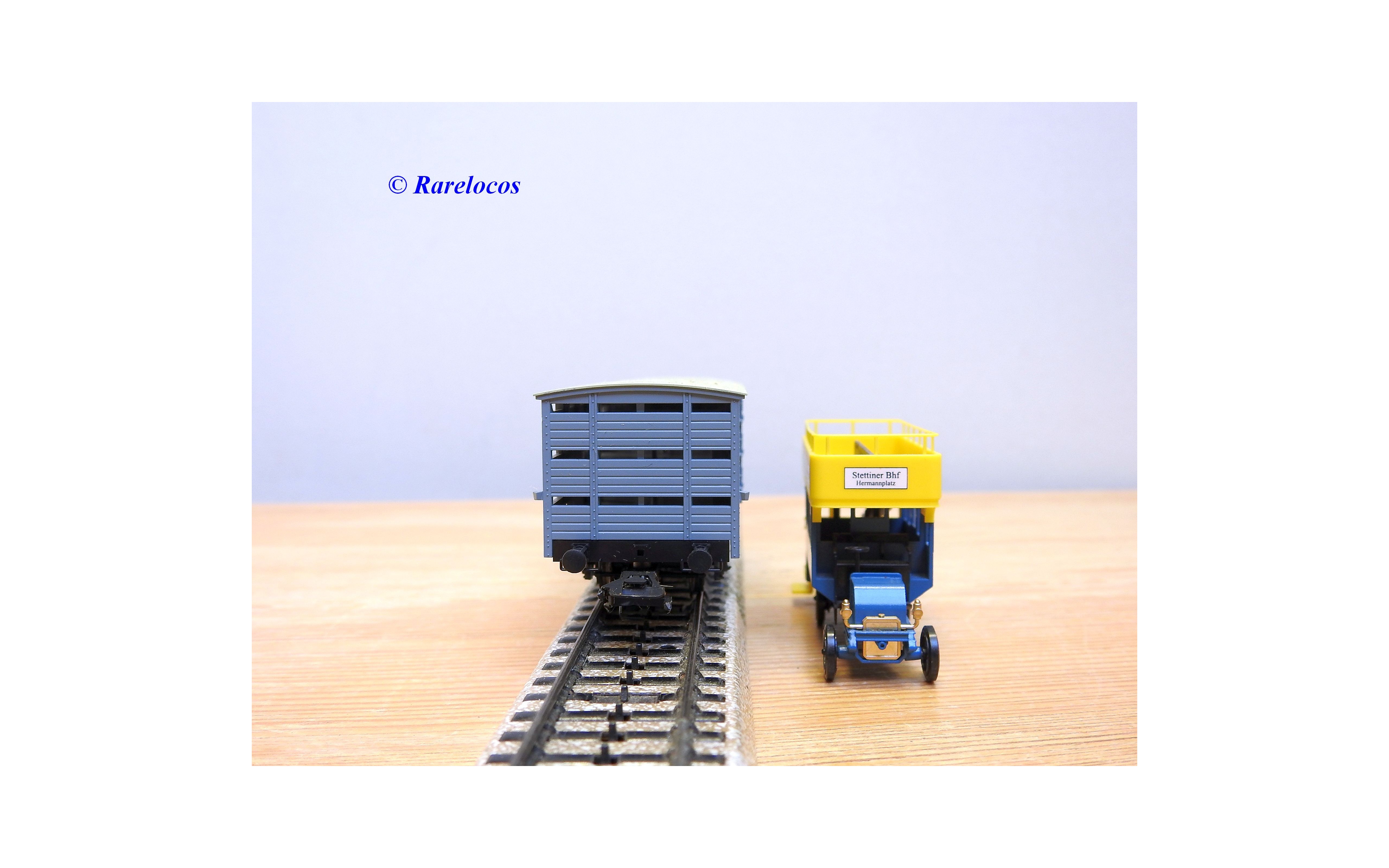 Wagon à claire voies pour le transport de petits animaux des chemins de fer allemands ( KPEV ), livrée grise à toit beige avec marquages Rudolf Petziger à Berlin, livré avec 3 colonnes Morris et un autobus Büssing à 2 étages en métal, boîte d'origine en très bon état.
