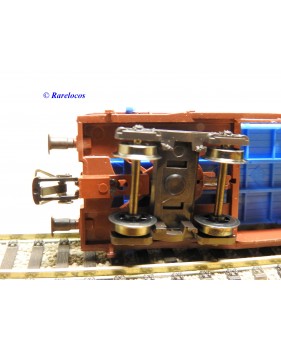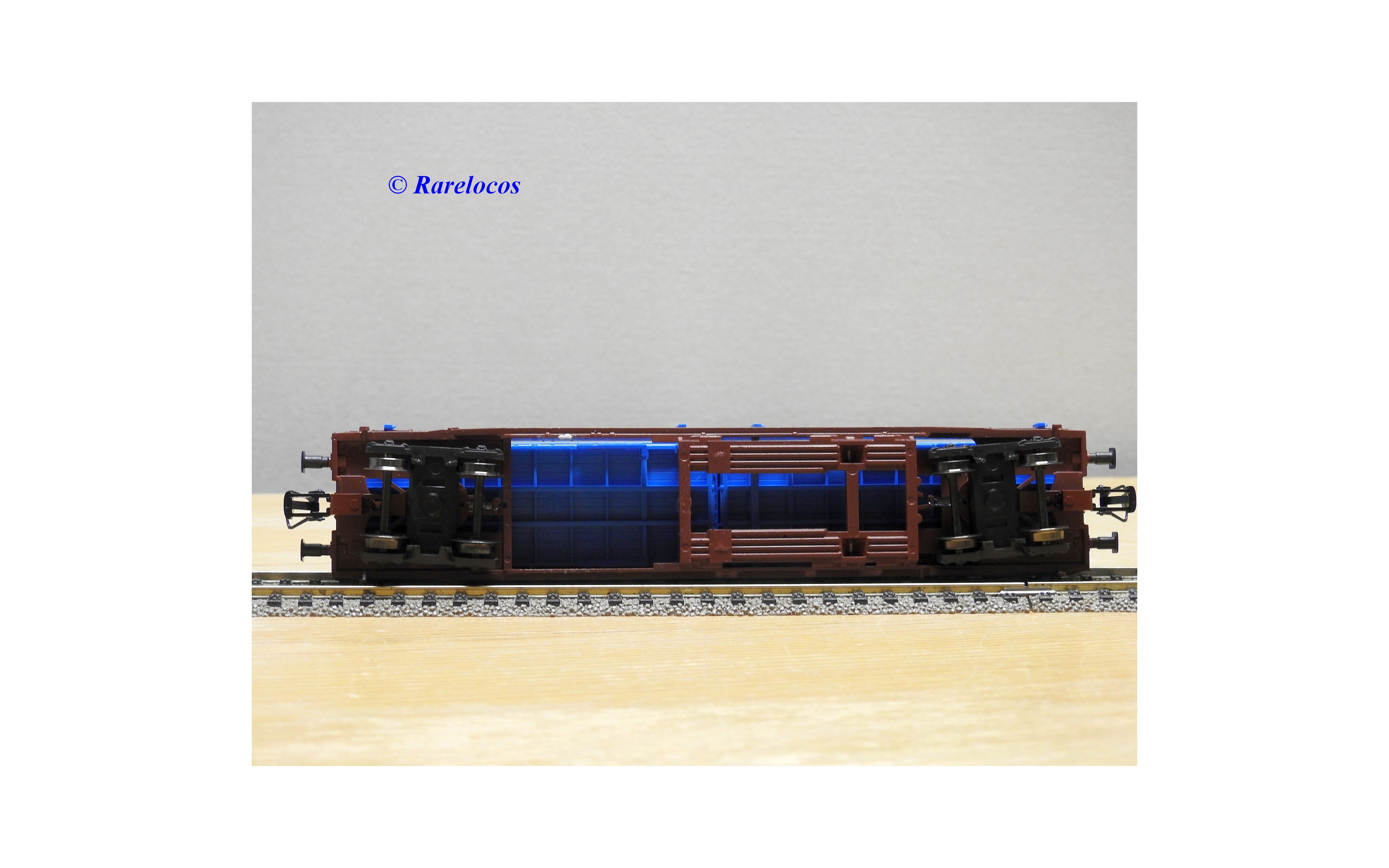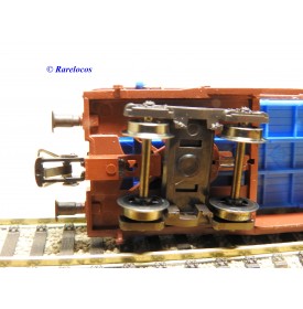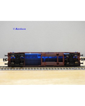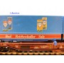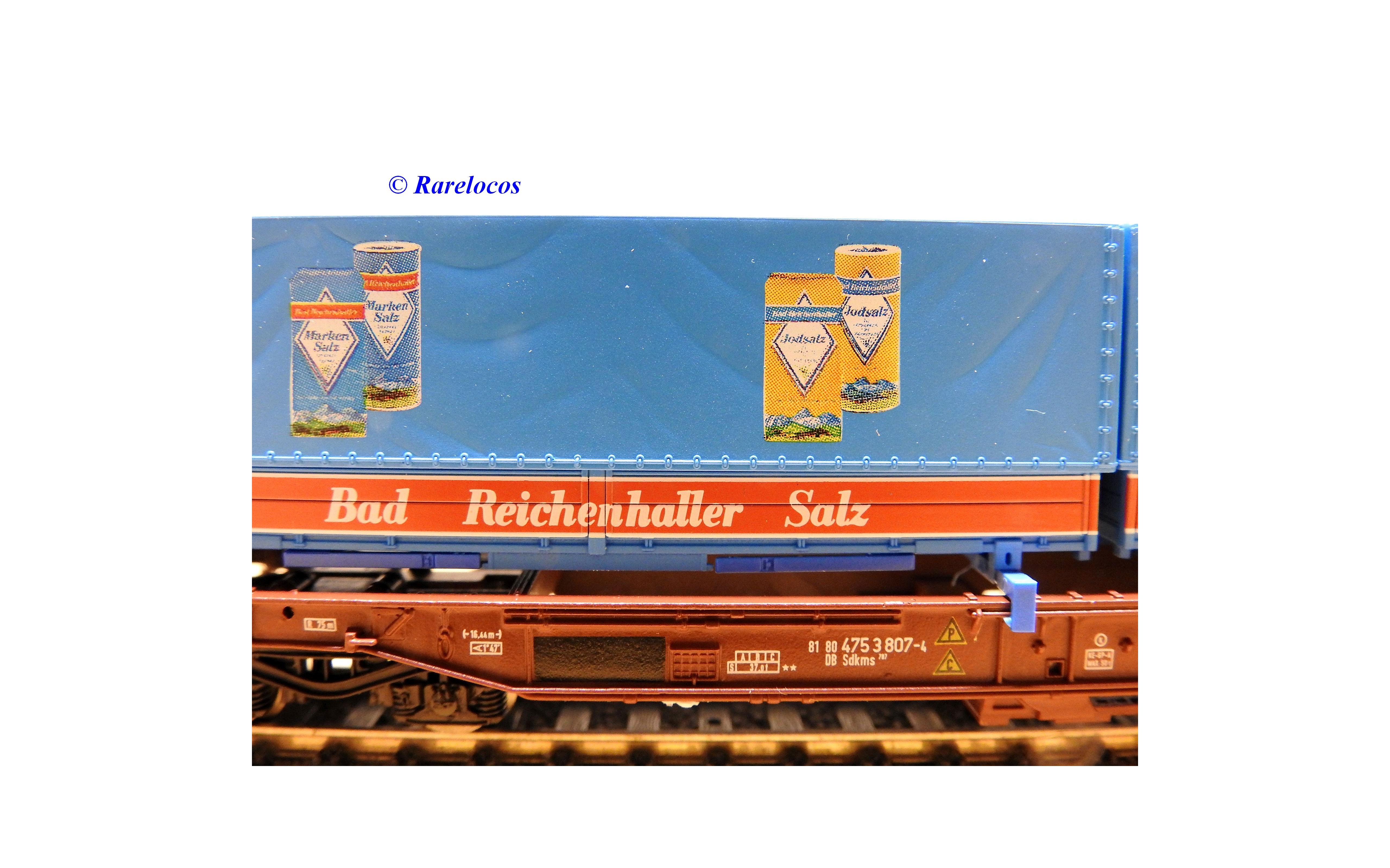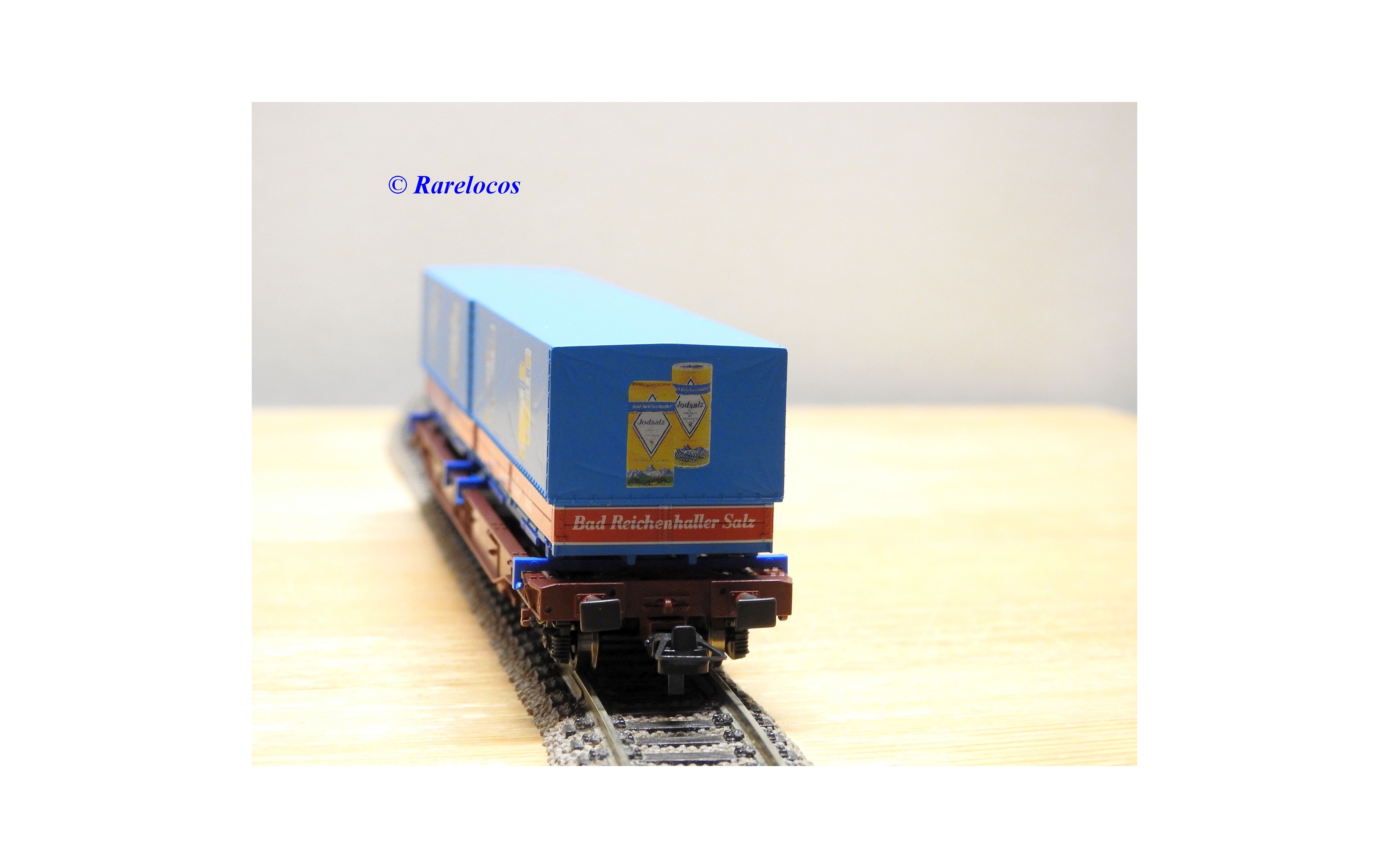 Wagon poche à 2 bogies type Sdkms des chemins de fer allemands ( DB ) , livrée marron, chargé de 2 conteneurs amovible de 20 ' aux couleurs de la société Bad Reichenhaller Salz, attelages à élongation, pièces de détaillage encore scellées, notice présente, boîte d'origine en excellent état.