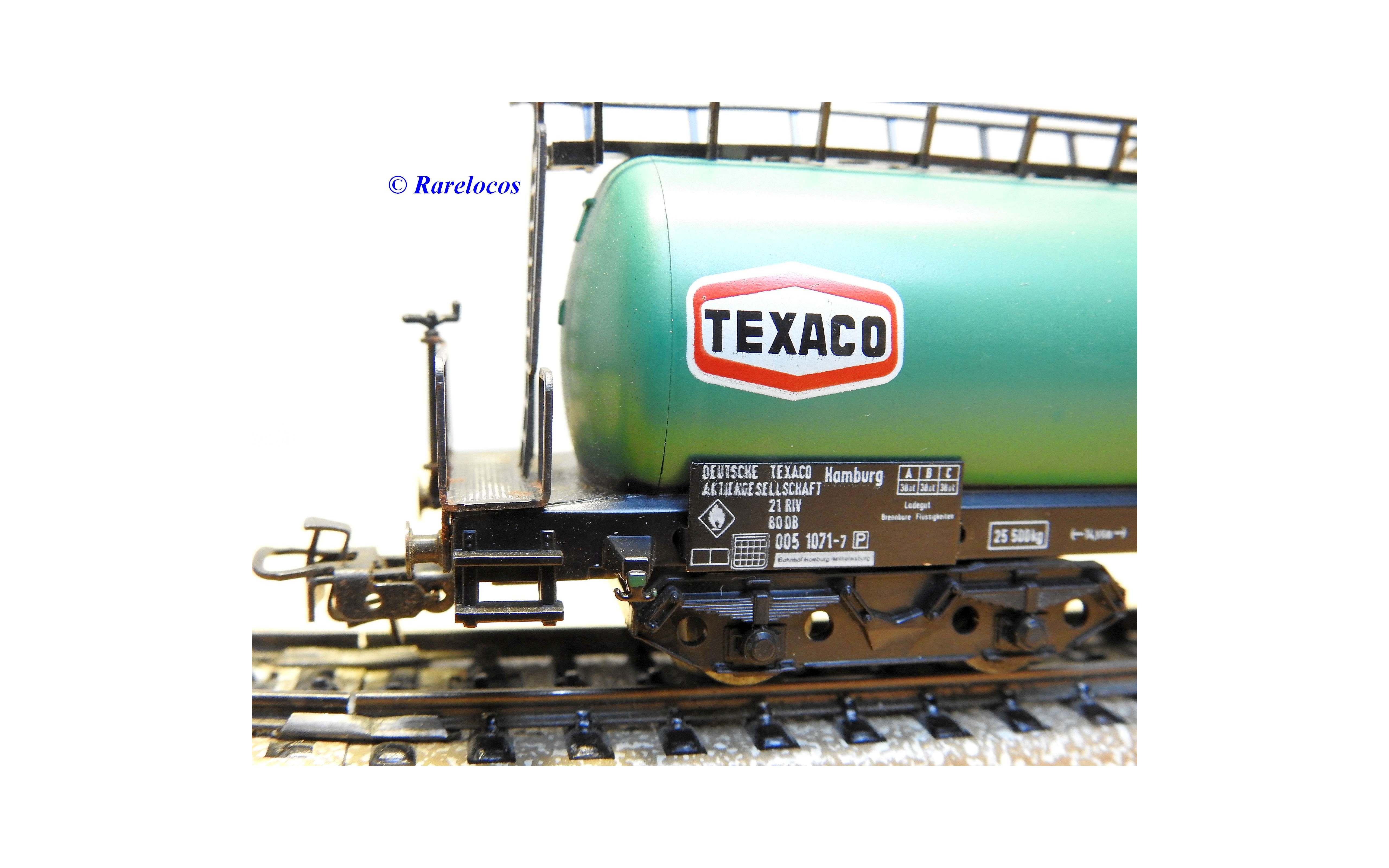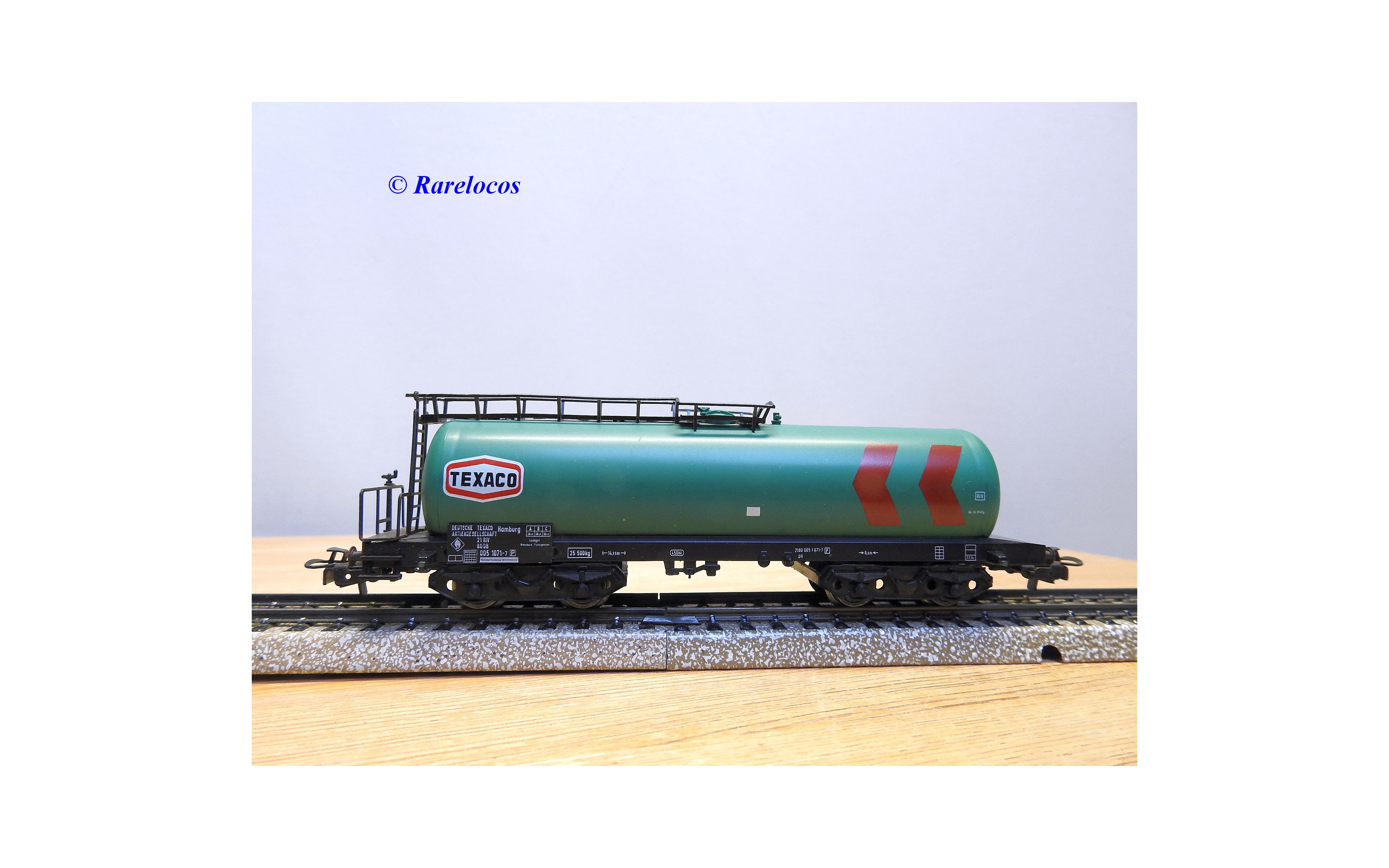 Wagon citerne à 2 bogies des chemins de fer allemands ( DB ), livrée verte à chevrons rouge avec marquages TEXACO, boîte d'origine en bon état .