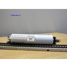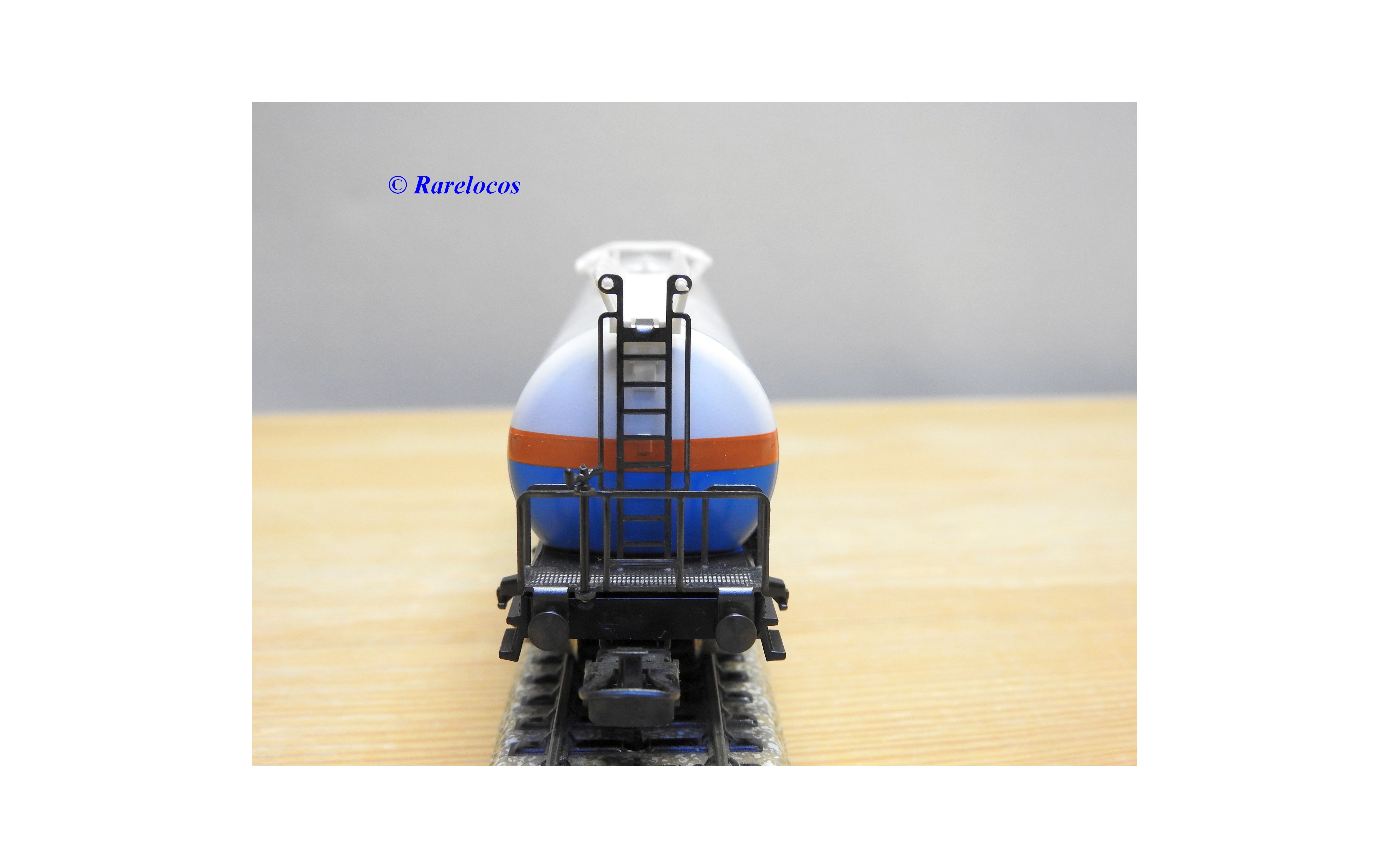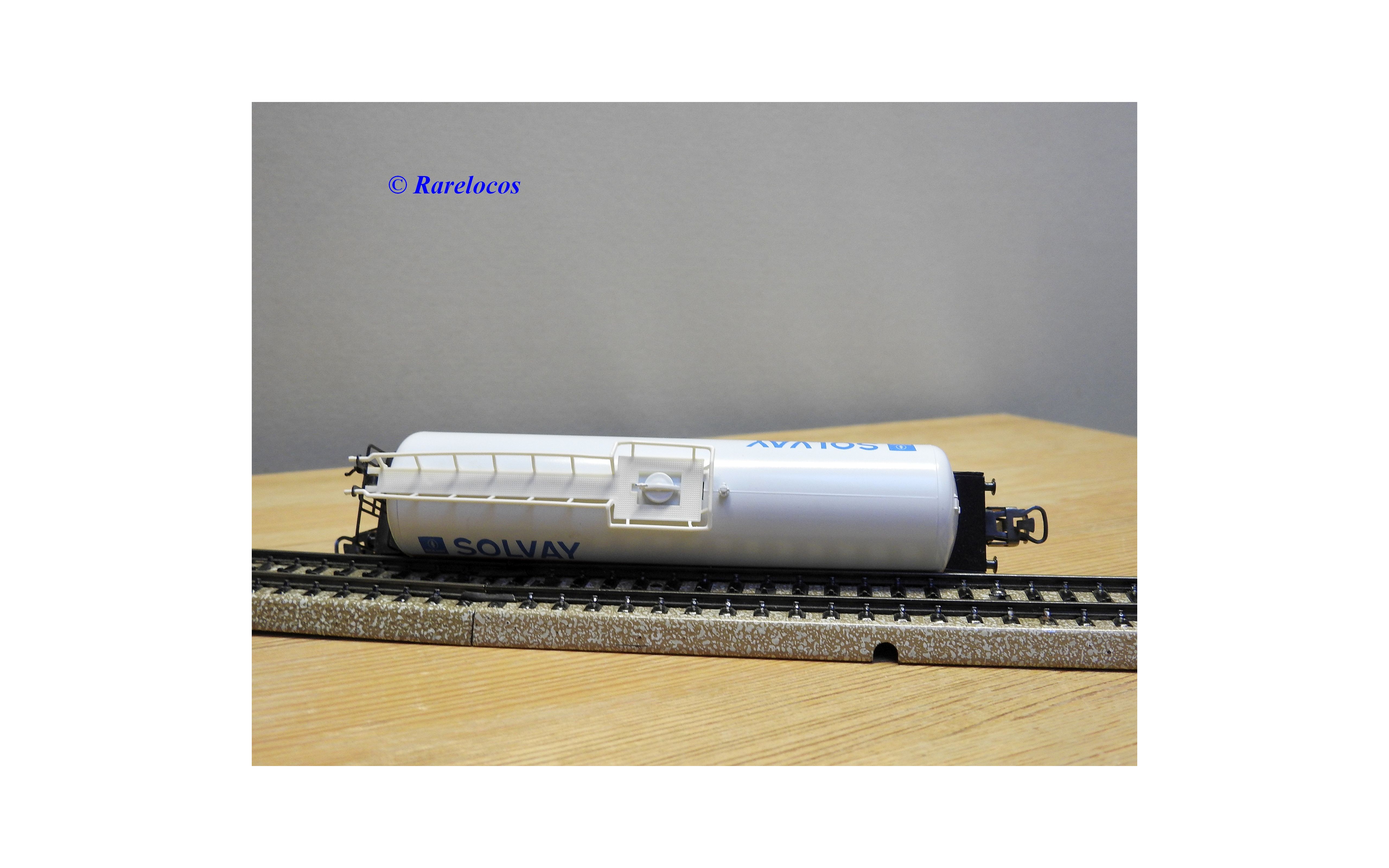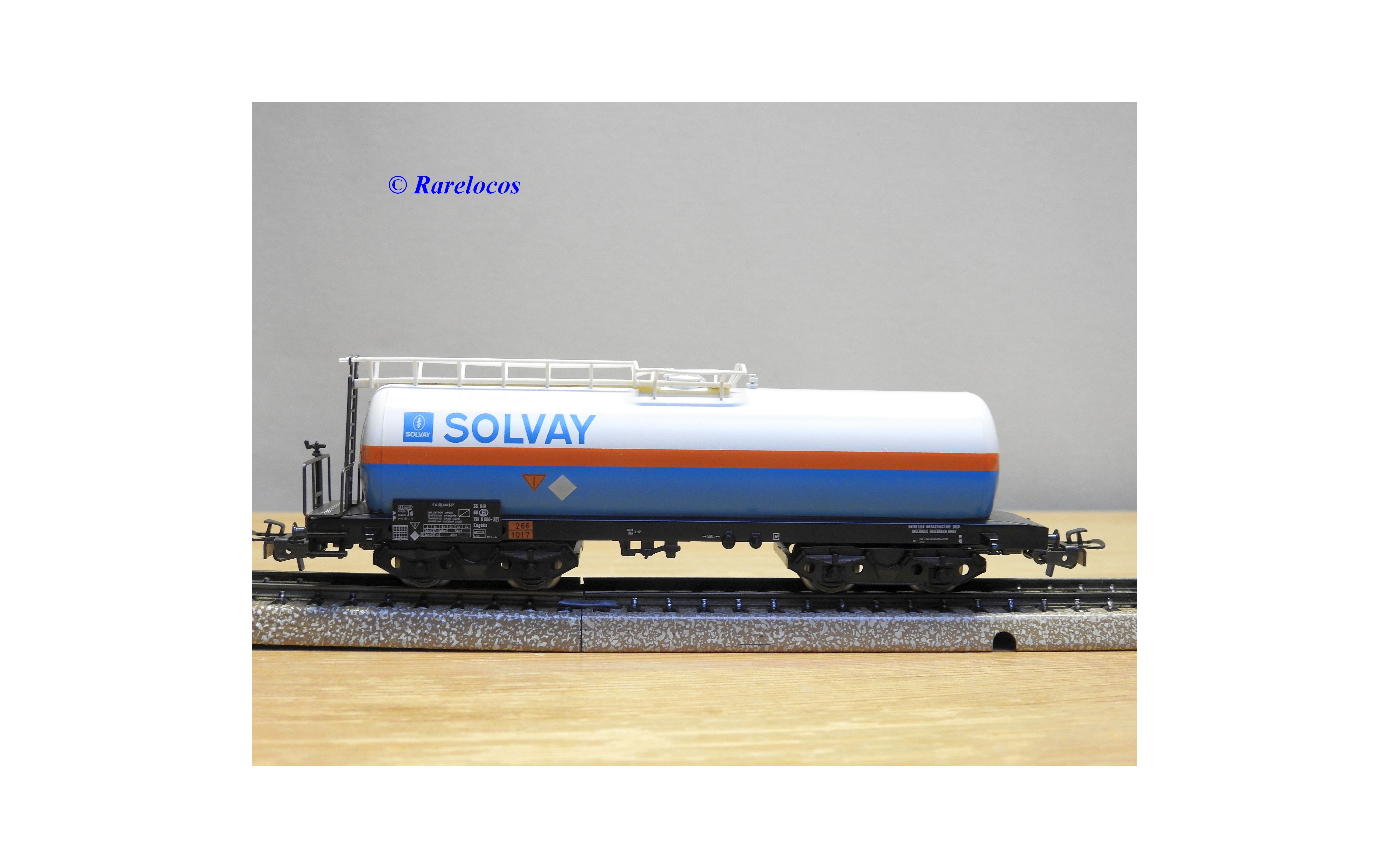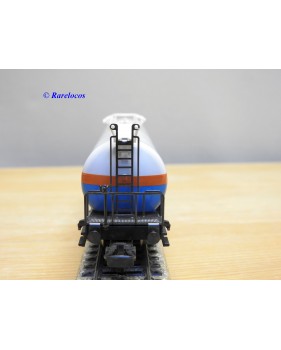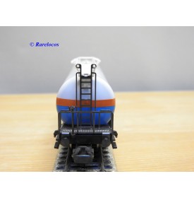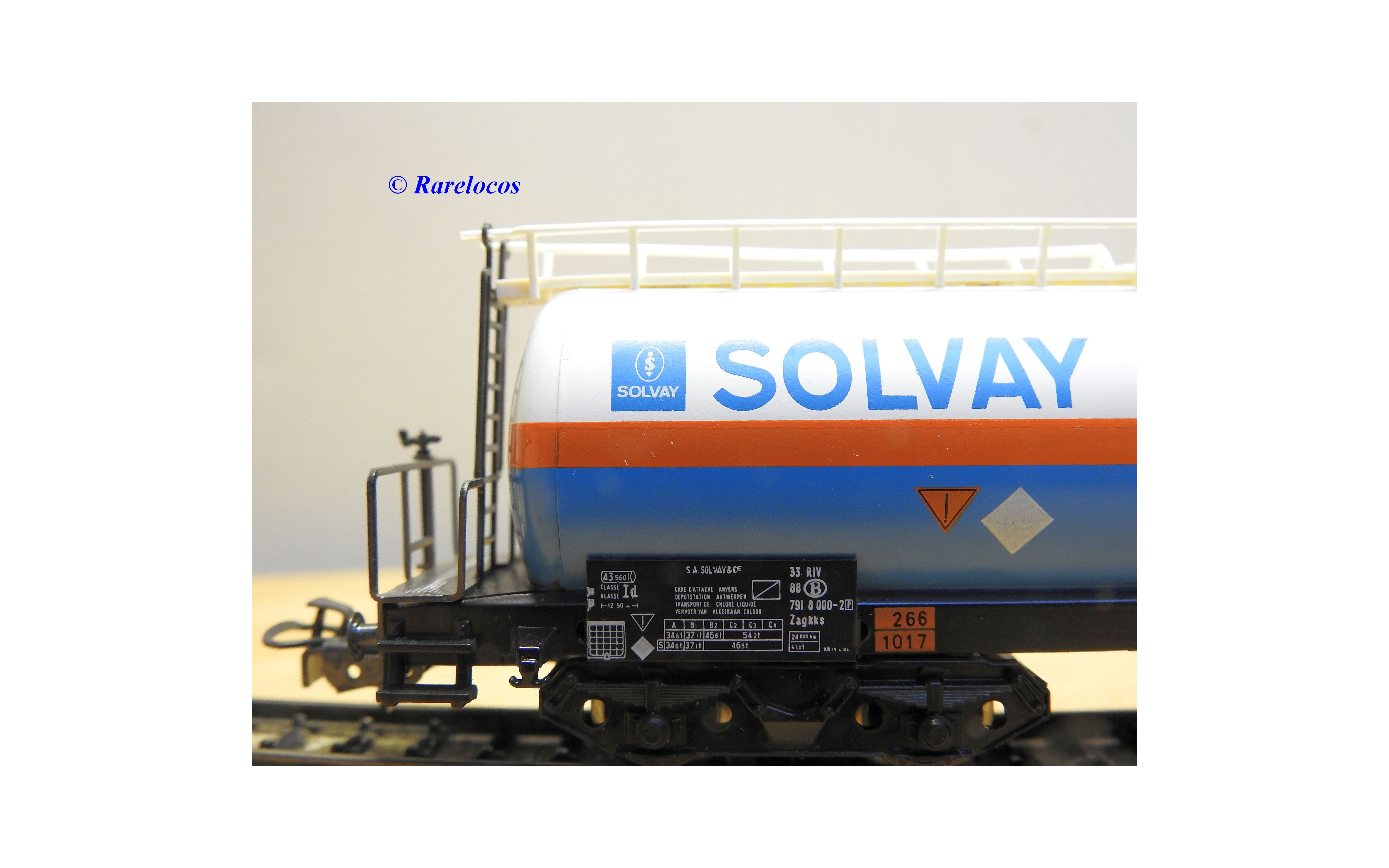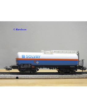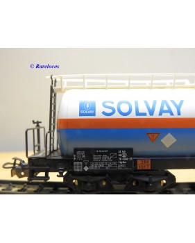 Wagon citerne à 2 bogies des chemins de fer belges ( SNCB ), livrée bleue et blanche à filet orange avec marquages SOLVAY, boîte d'origine en excellent état .