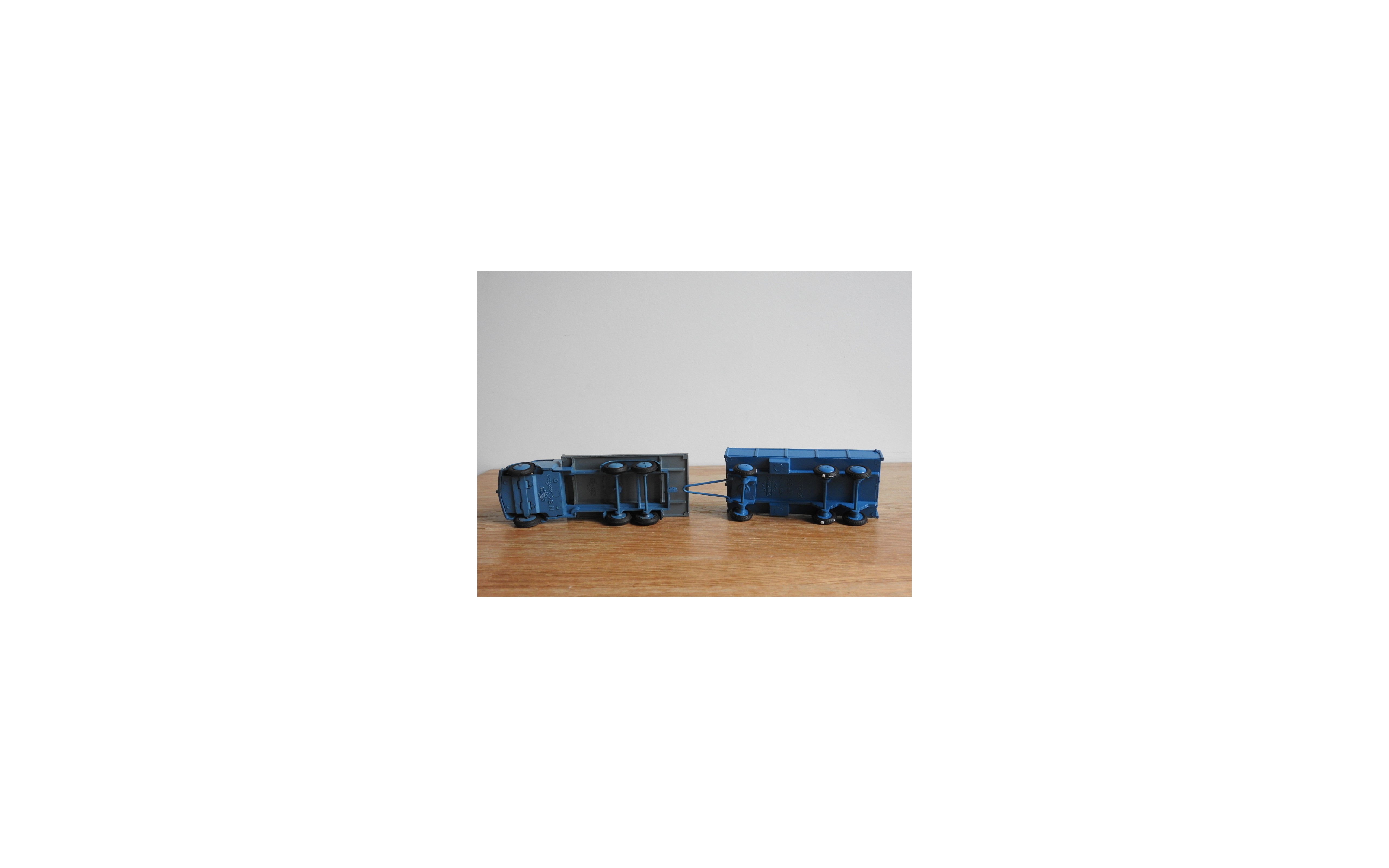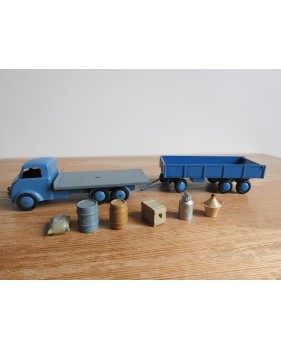 Modèle réduit en métal d'un camion 4*6 et de sa remorque à 3 essieux , baptisés respectivement Ciclope et Vulcano, chargement de 6 pièces ( Mercury ) . pas de boîte d'origine.