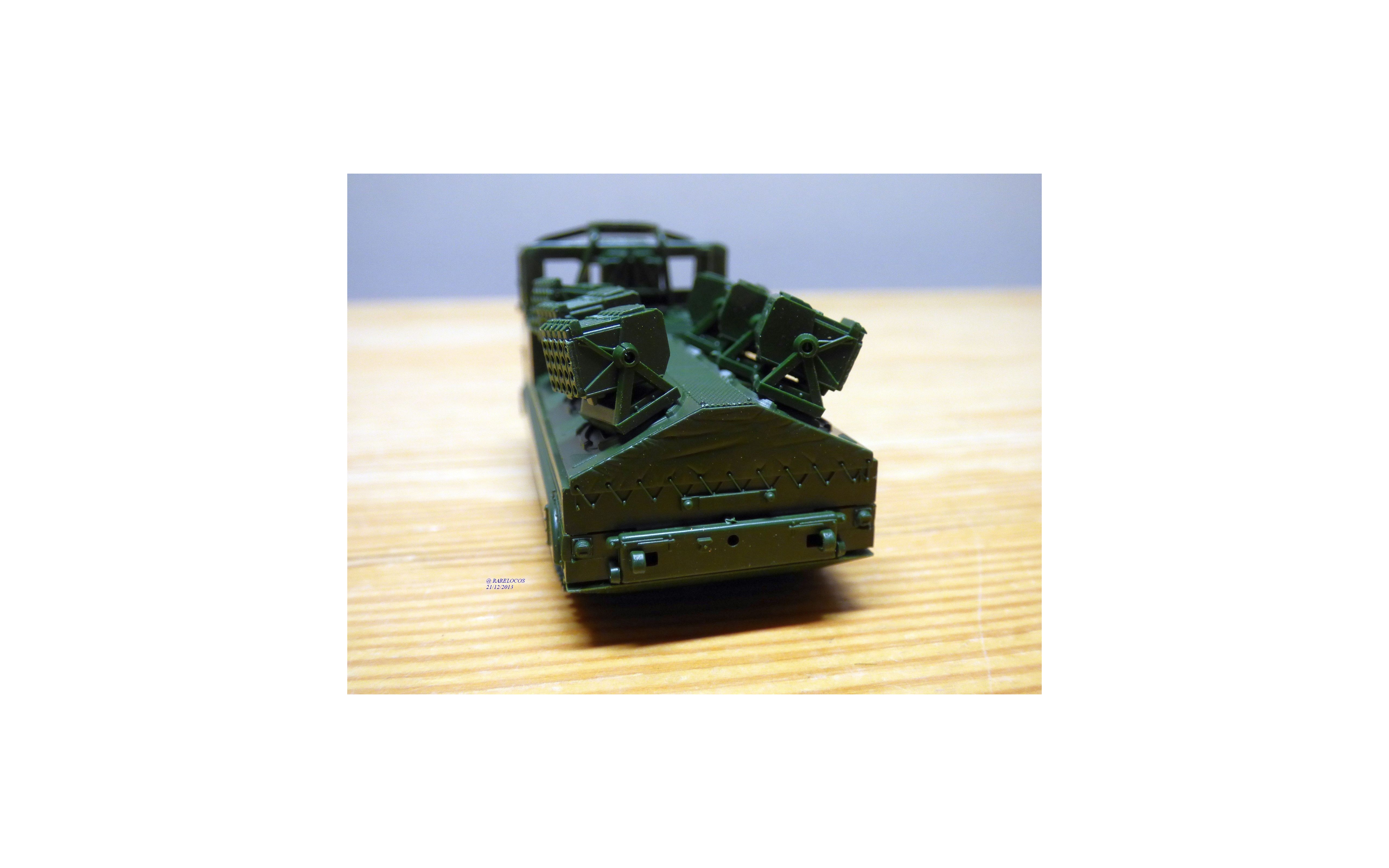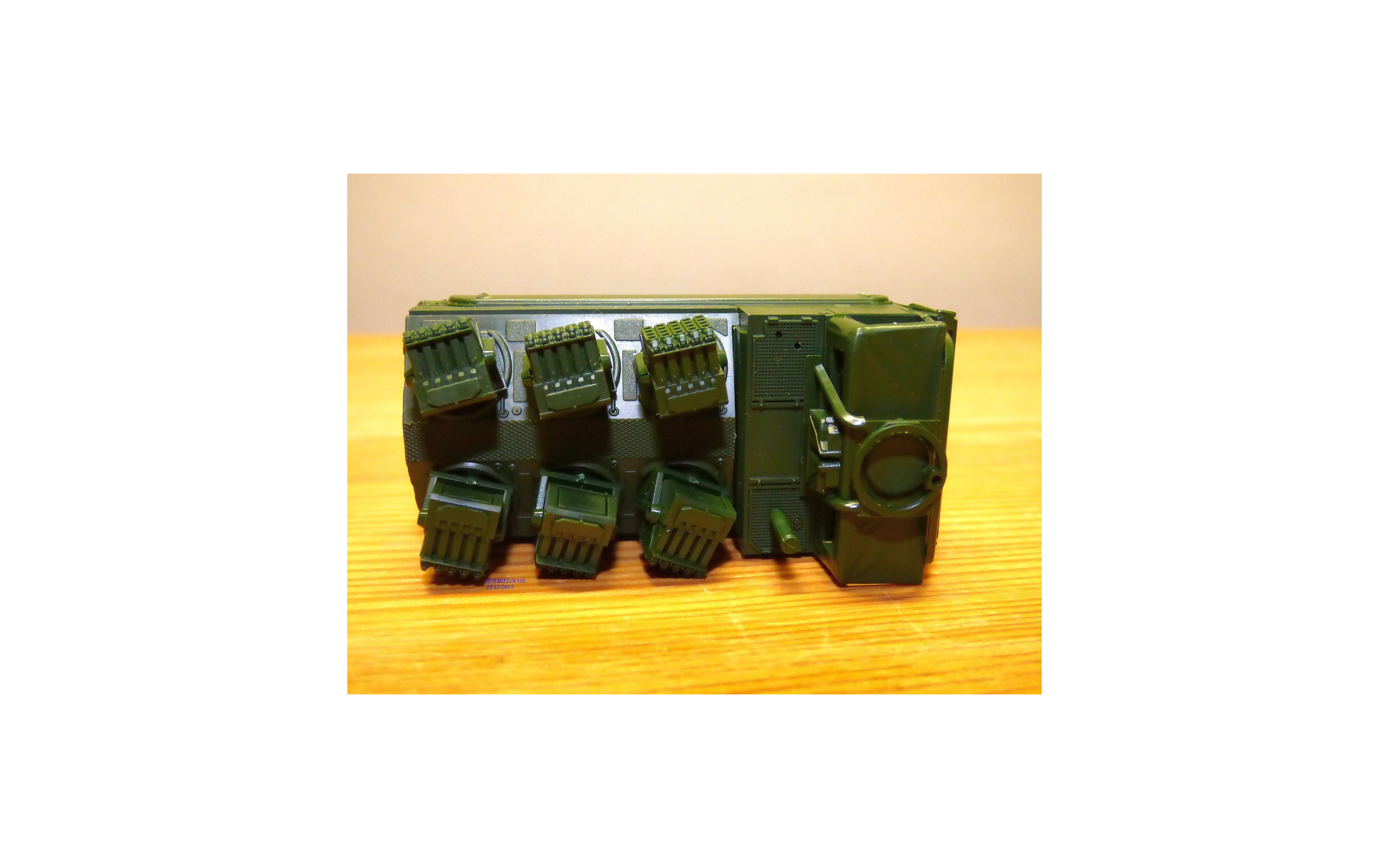Modèle réduit à l'échelle du 1/87 ( HO ) d'un char lanceur de mines sur chassis M 548 , livrée vert foncé, pièces de détaillage encore scellées, notice présente, emballage d'origine en état neuf .