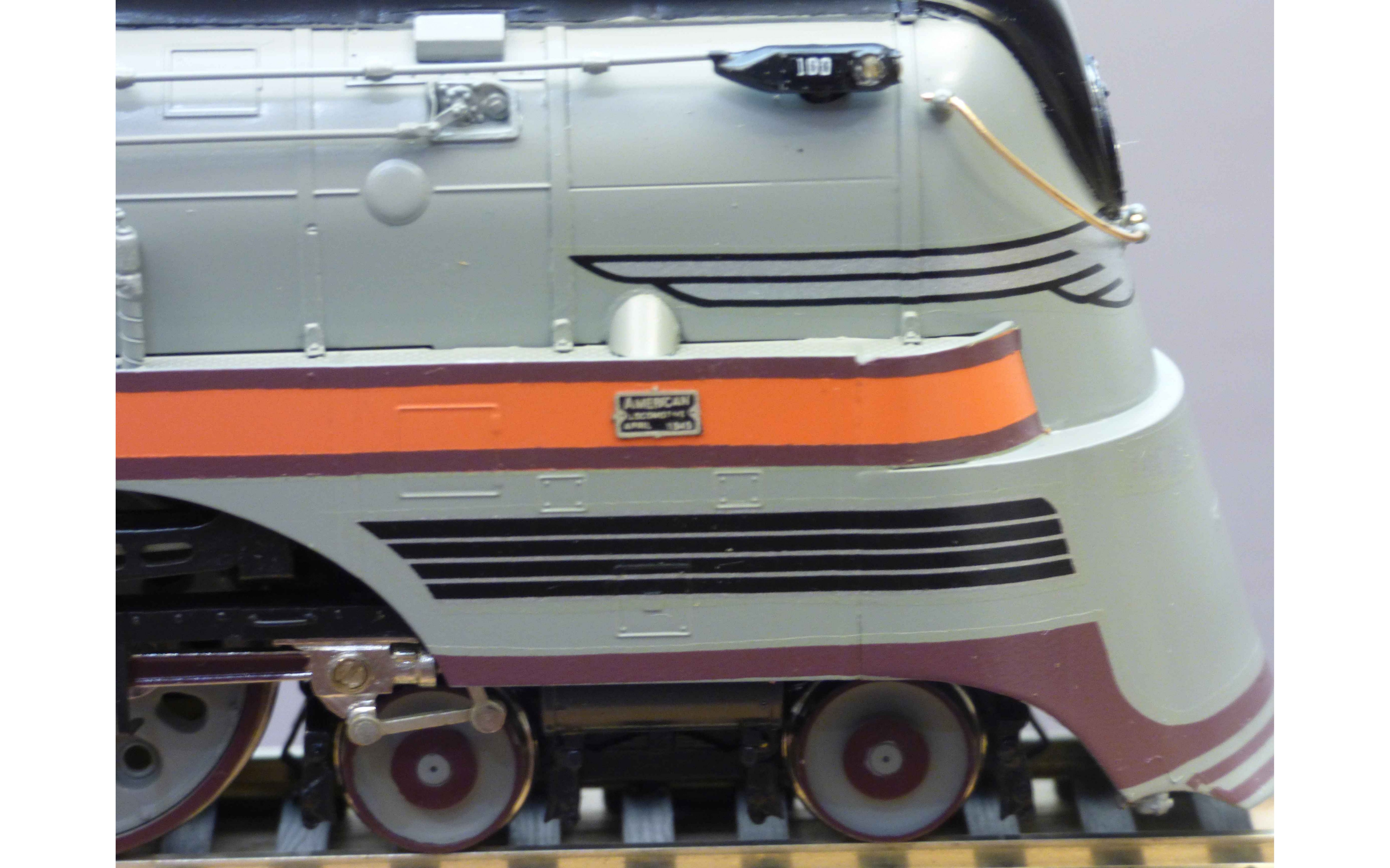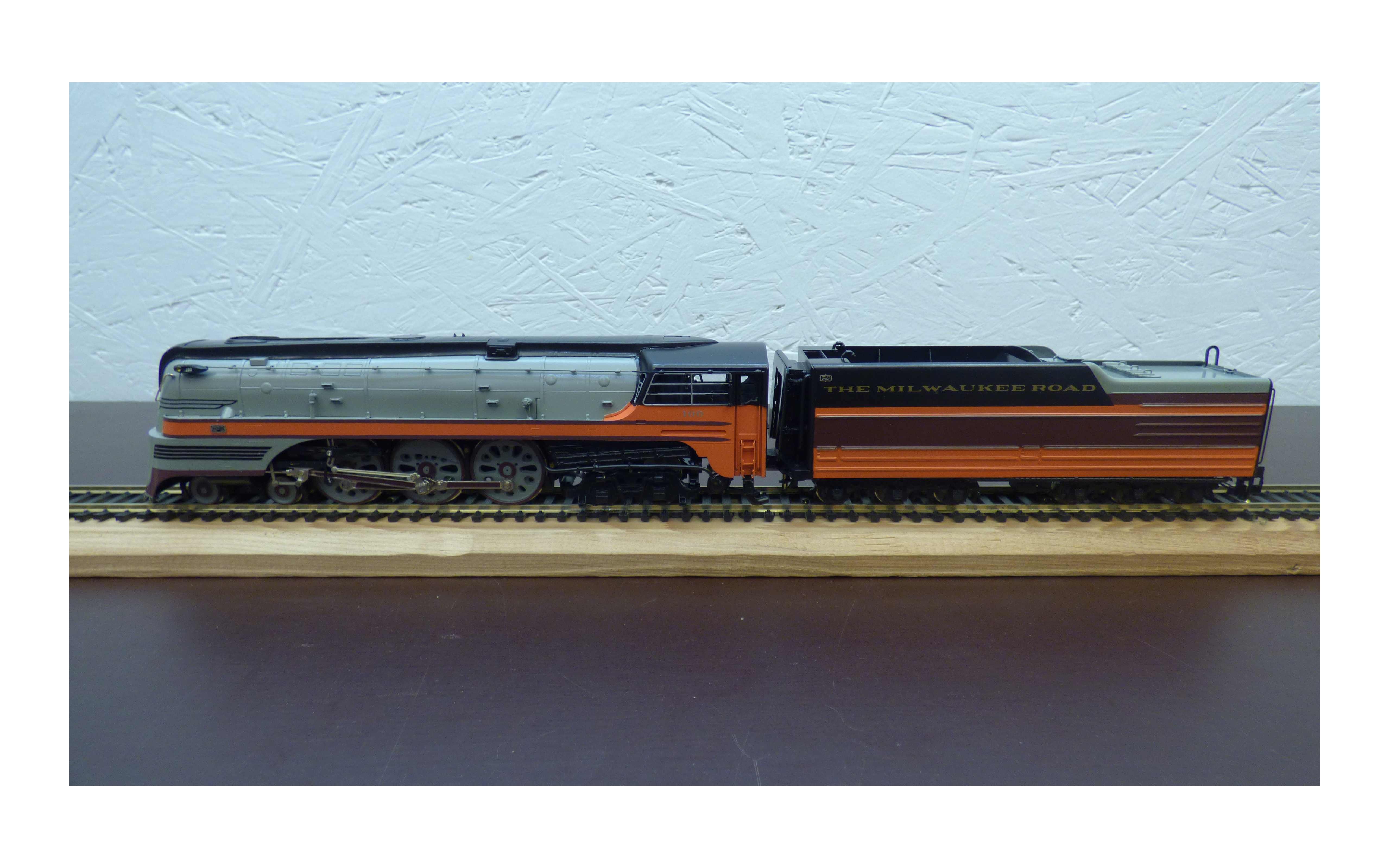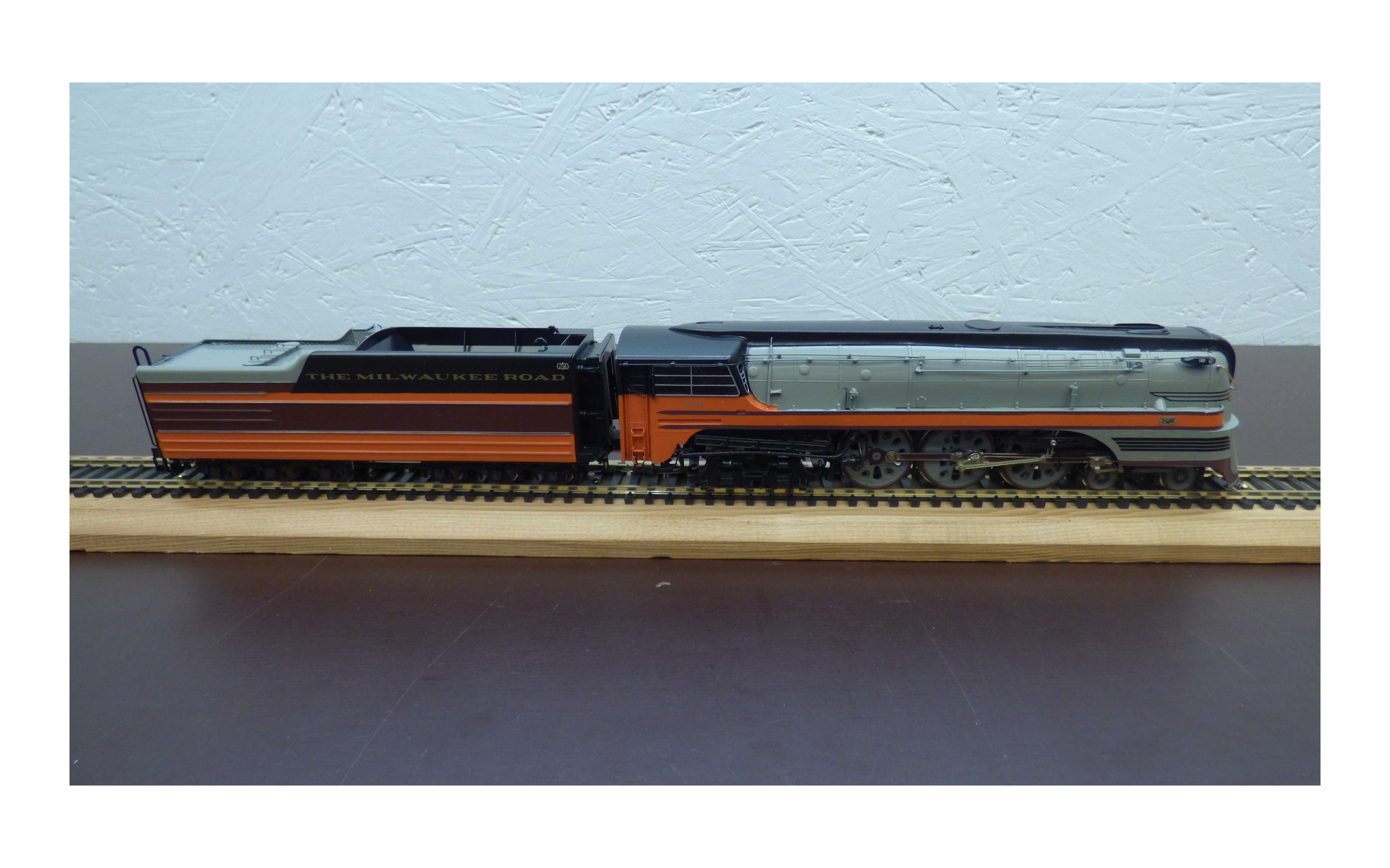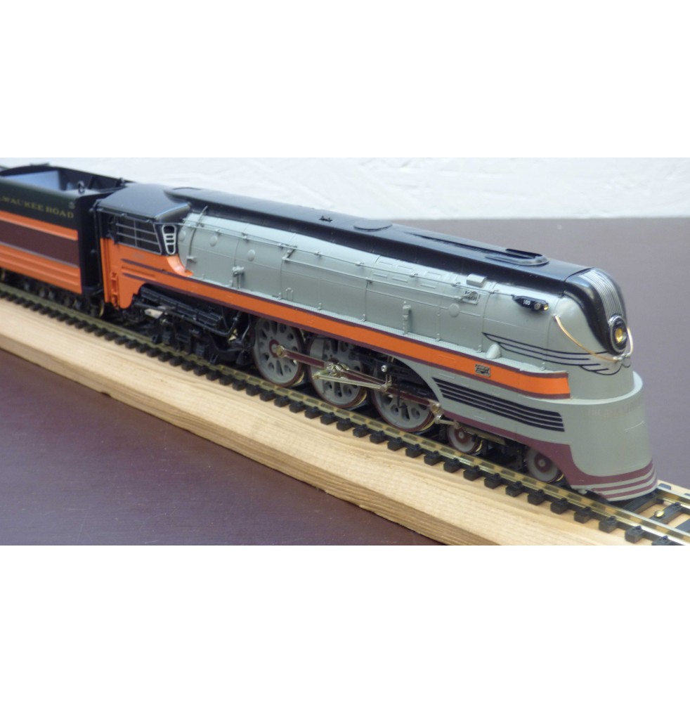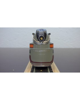 Loco Hudson 4-6-4 (232) carénée type F-7 des chemins de fer américains ( Chicago, Milwaukee, Saint Paul and Pacific : The Milwaukee Road) dans sa version d' origine et la livrée pour remorquer le célèbre train baptisé Hiawatha, peinture réalisée par Overland Models, immatriculation : 100, boîte d'origine en très bon état .