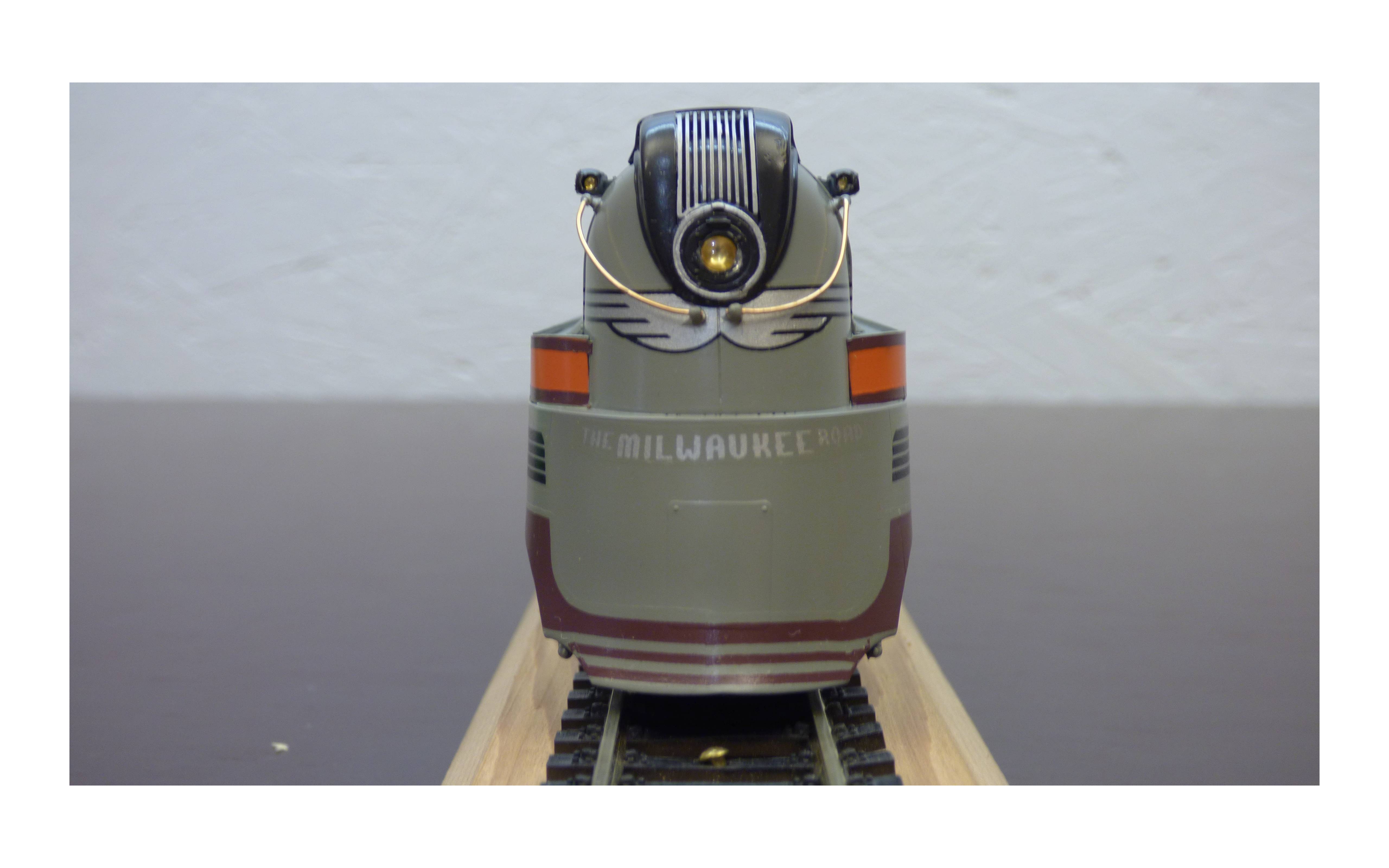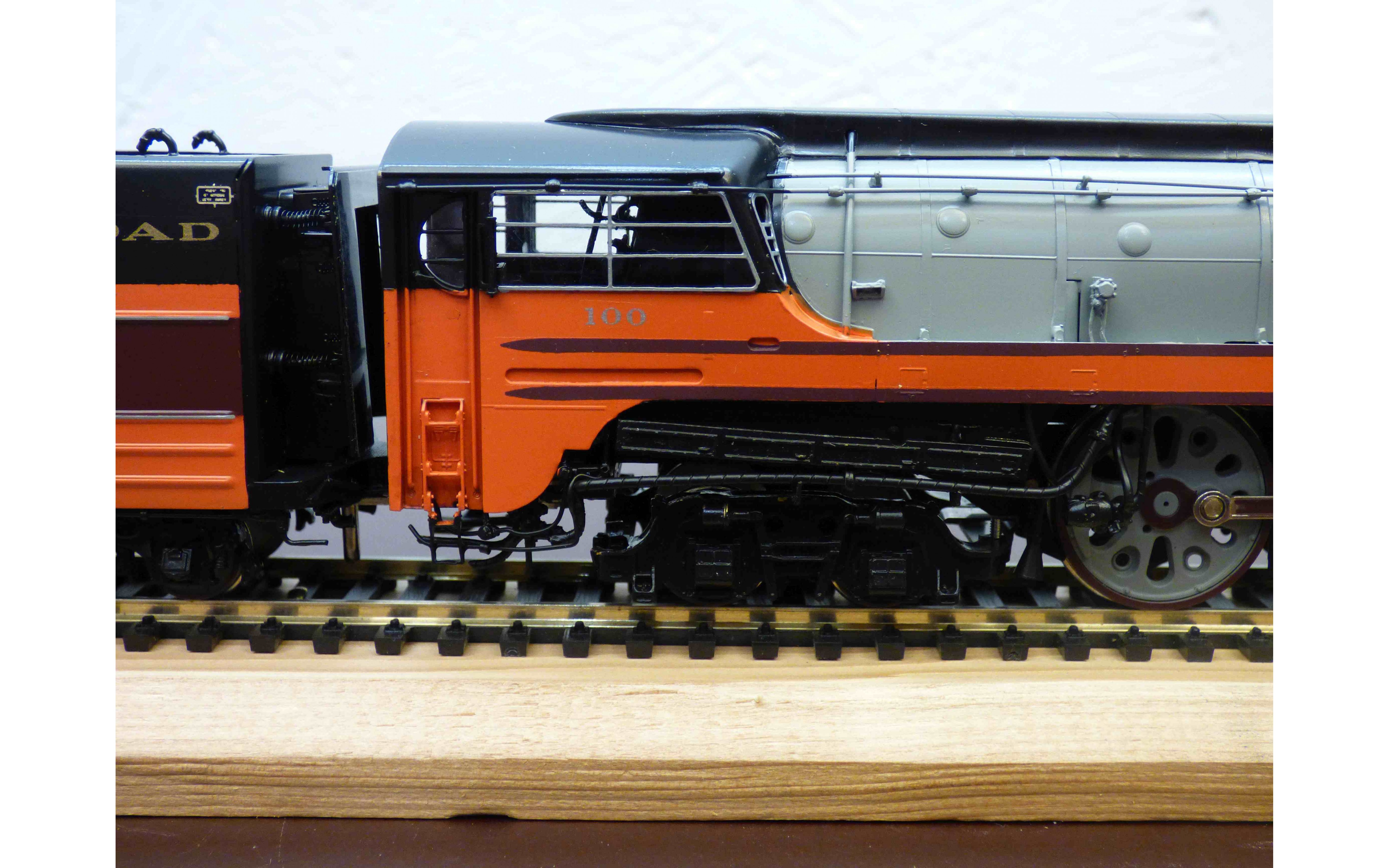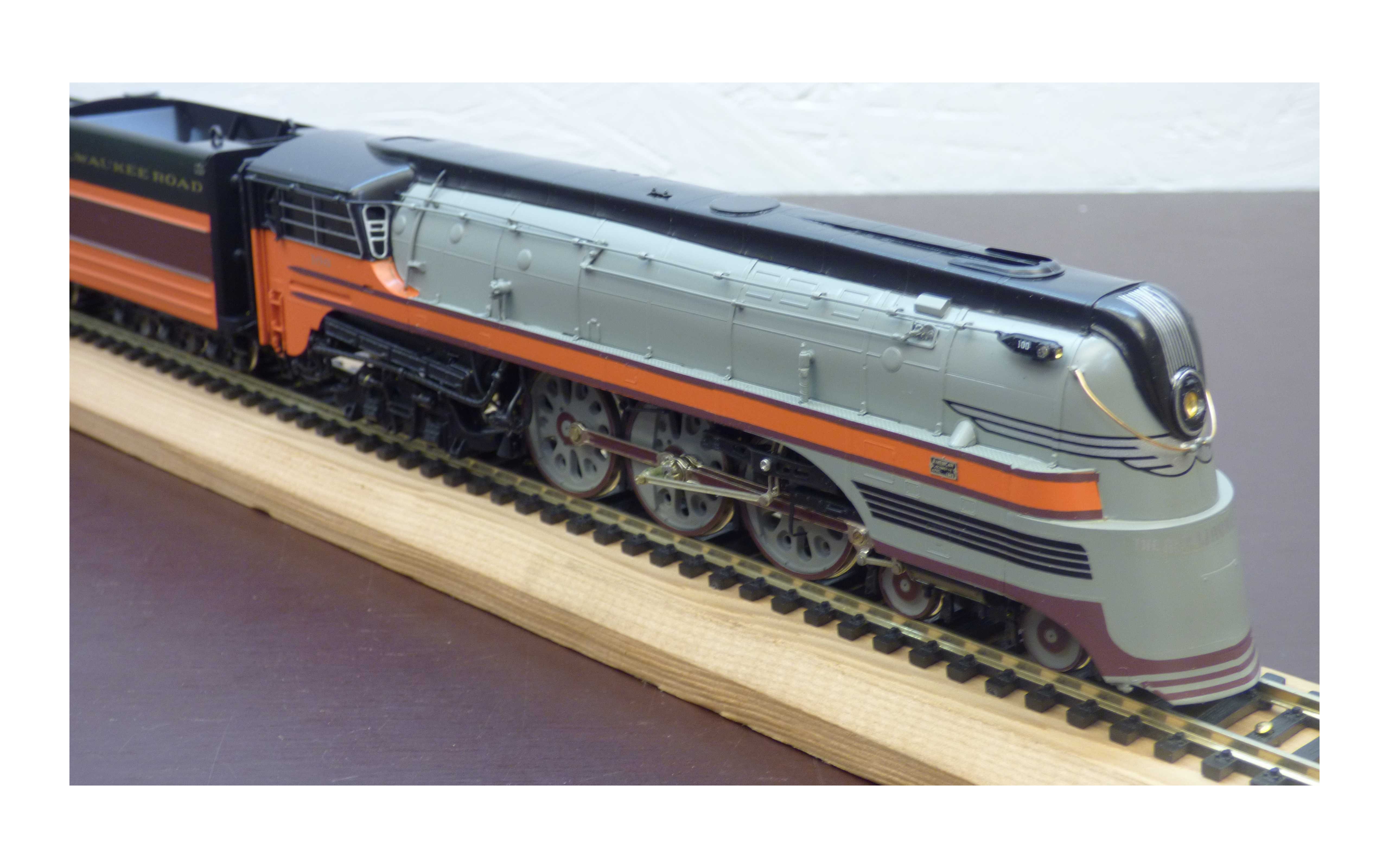 Loco Hudson 4-6-4 (232) carénée type F-7 des chemins de fer américains ( Chicago, Milwaukee, Saint Paul and Pacific : The Milwaukee Road) dans sa version d' origine et la livrée pour remorquer le célèbre train baptisé Hiawatha, peinture réalisée par Overland Models, immatriculation : 100, boîte d'origine en très bon état .
