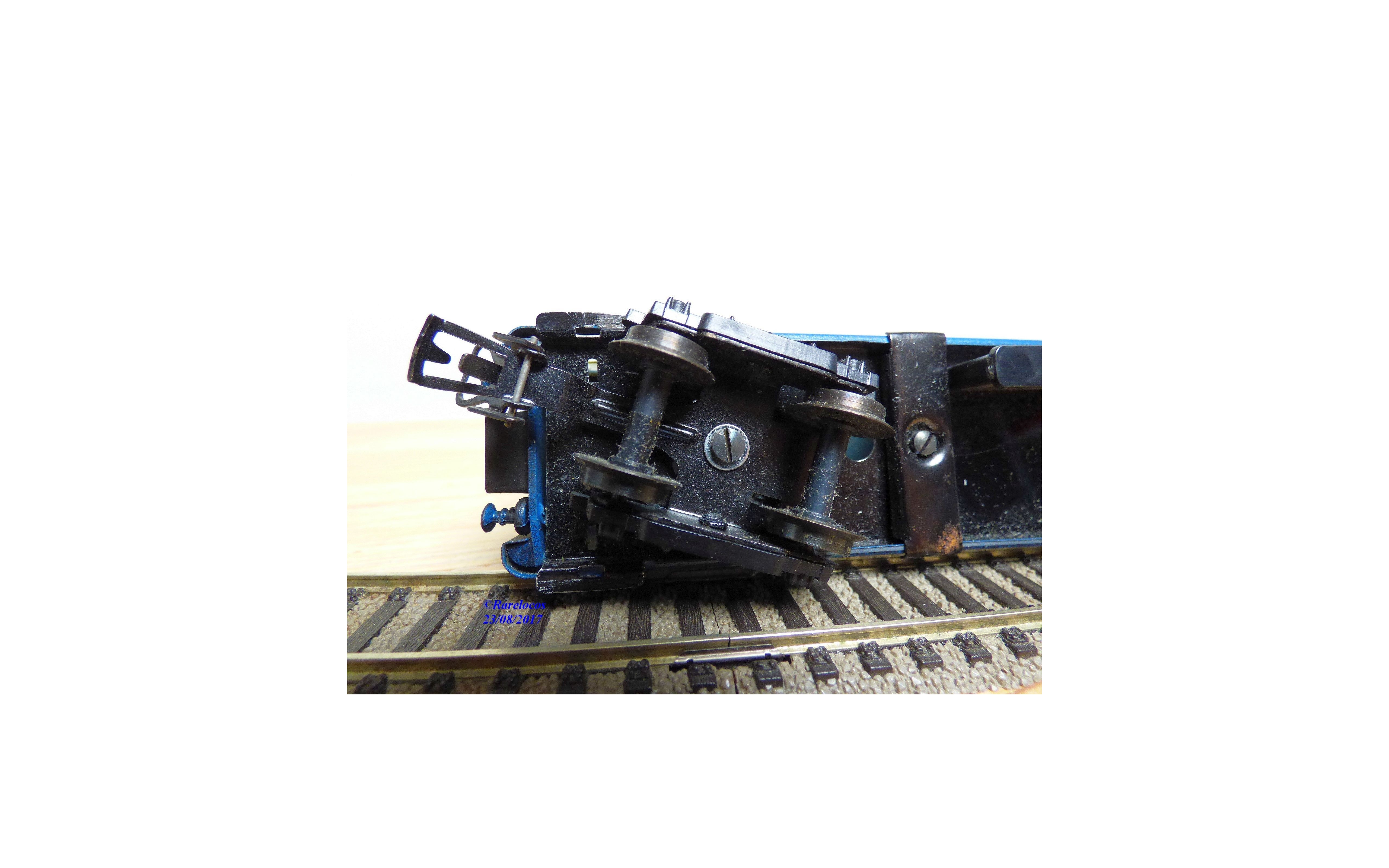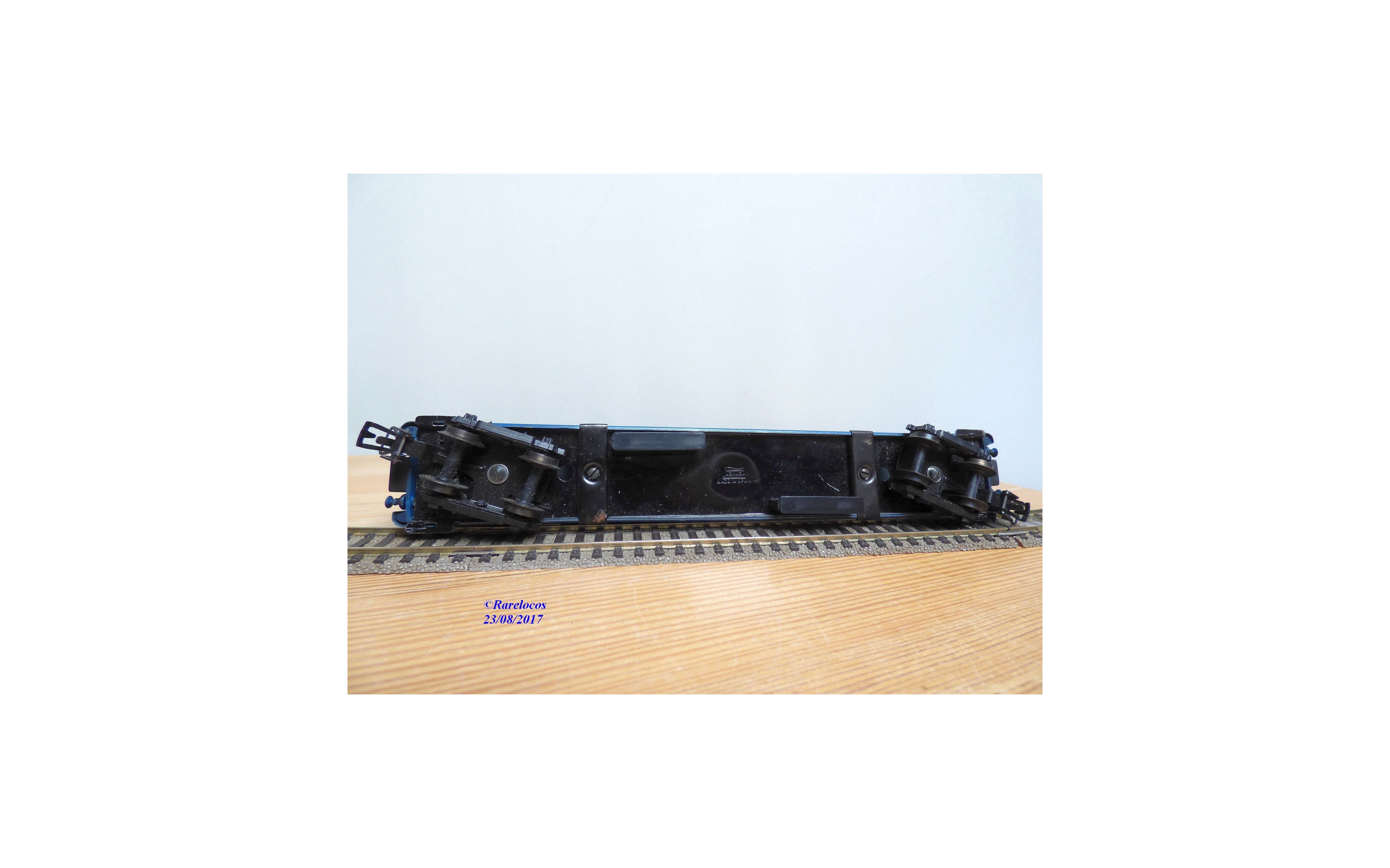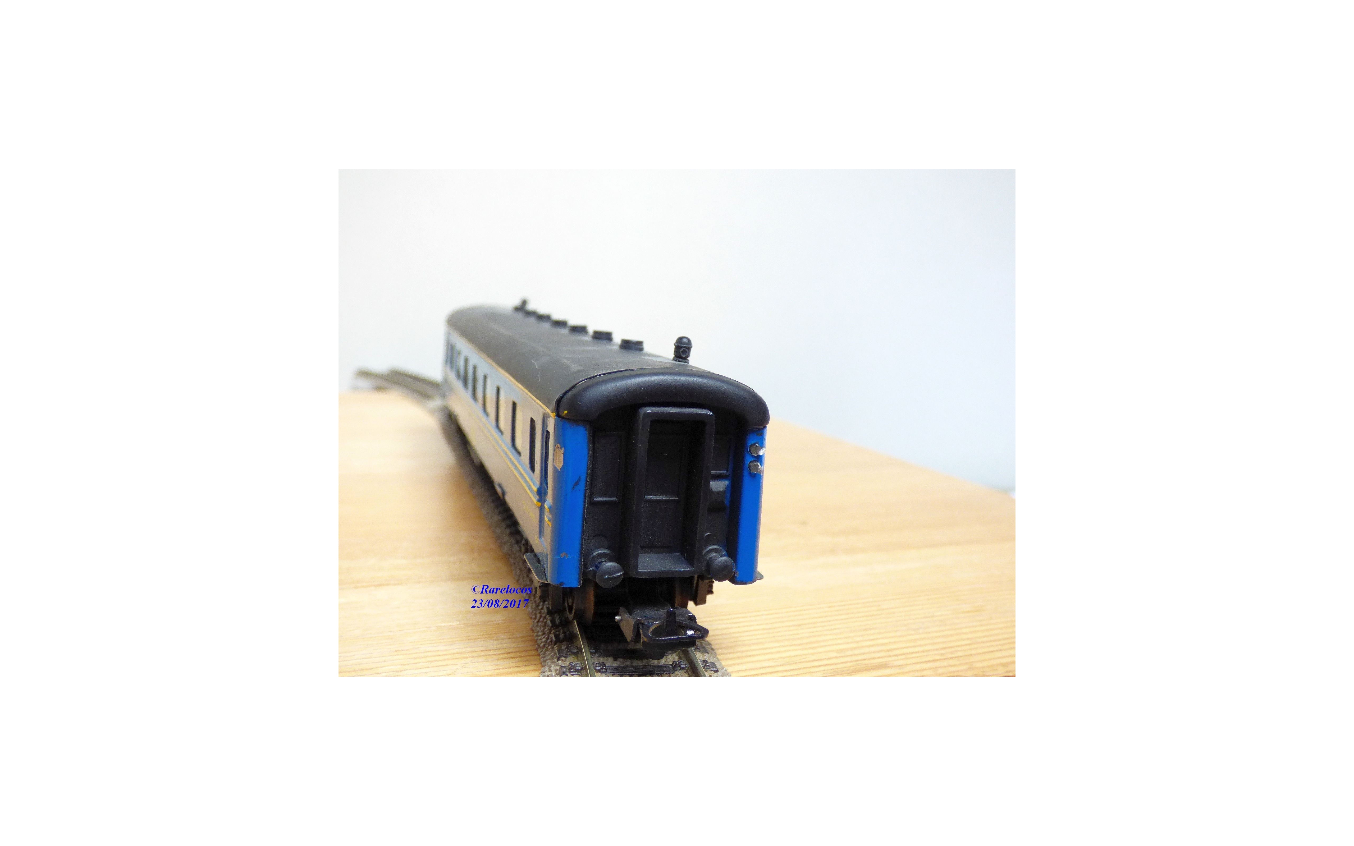 Rare voiture lits à 2 bogies des chemins de fer espagnols ( RENFE), tout métal, livrée bleu à bandes jaune paille et toit noir mat, boîte d'origine en excellent état mais sans référence .