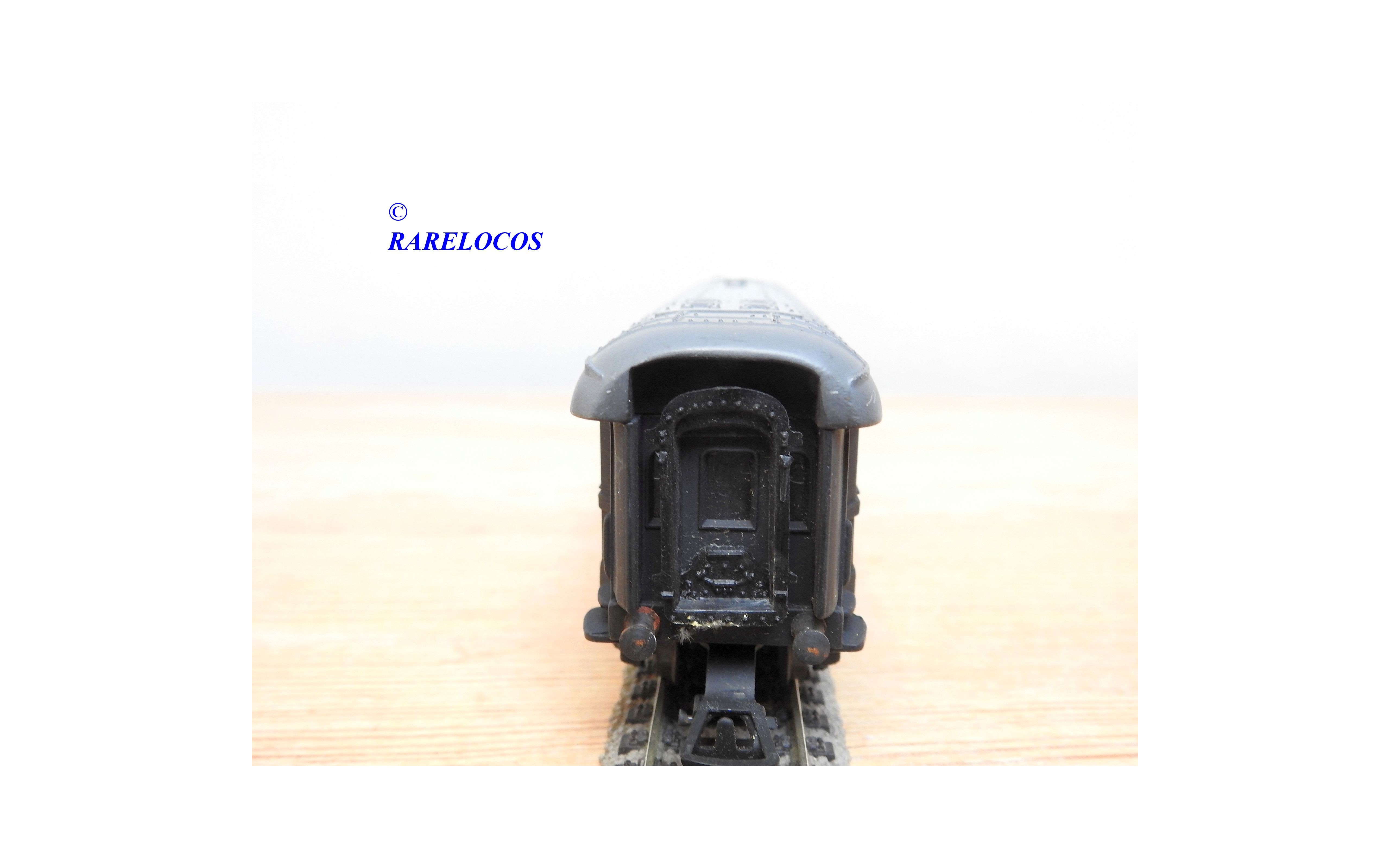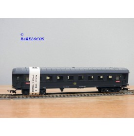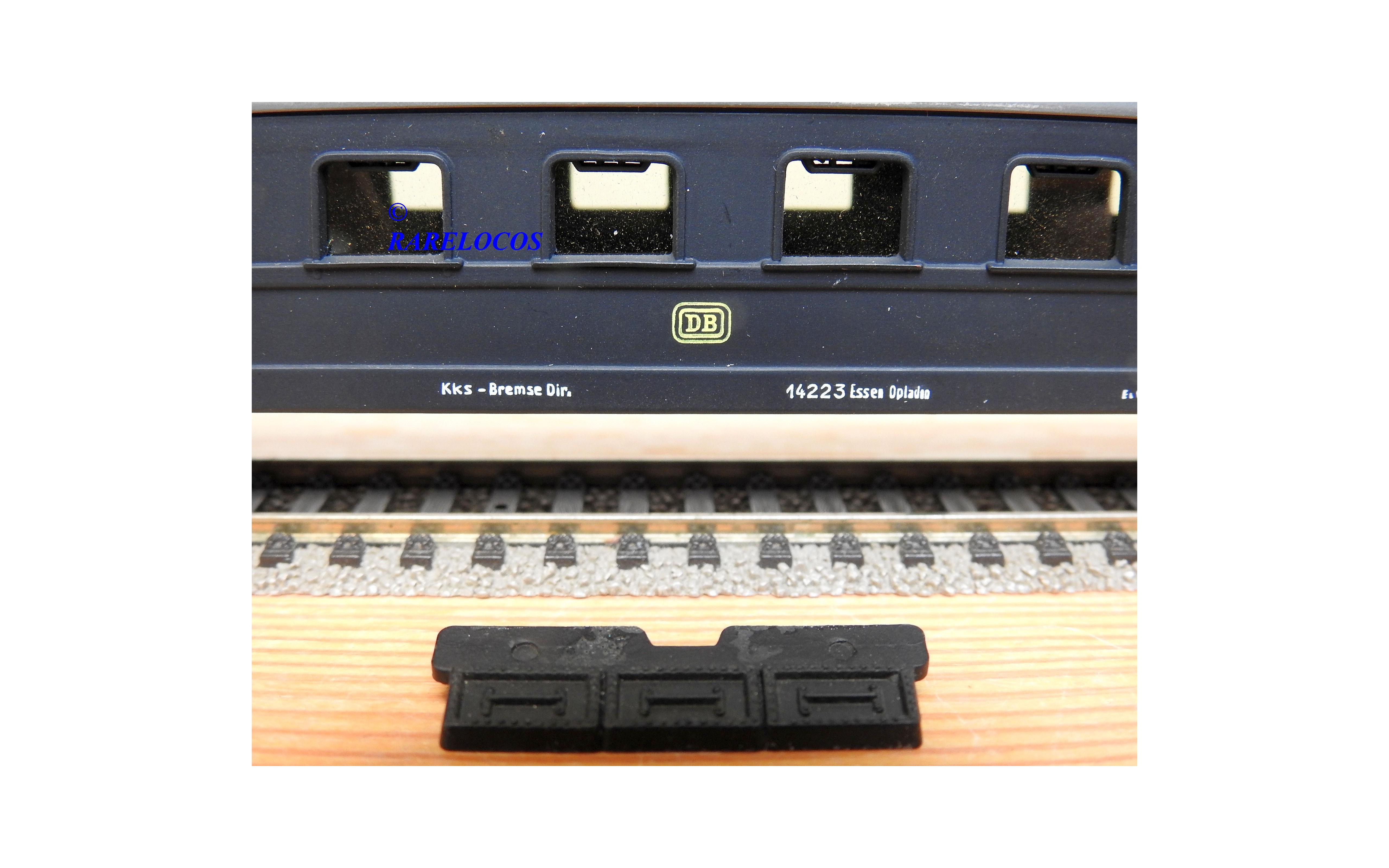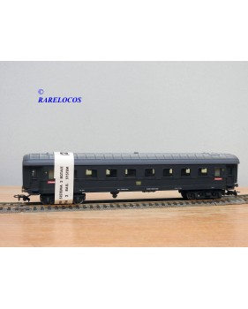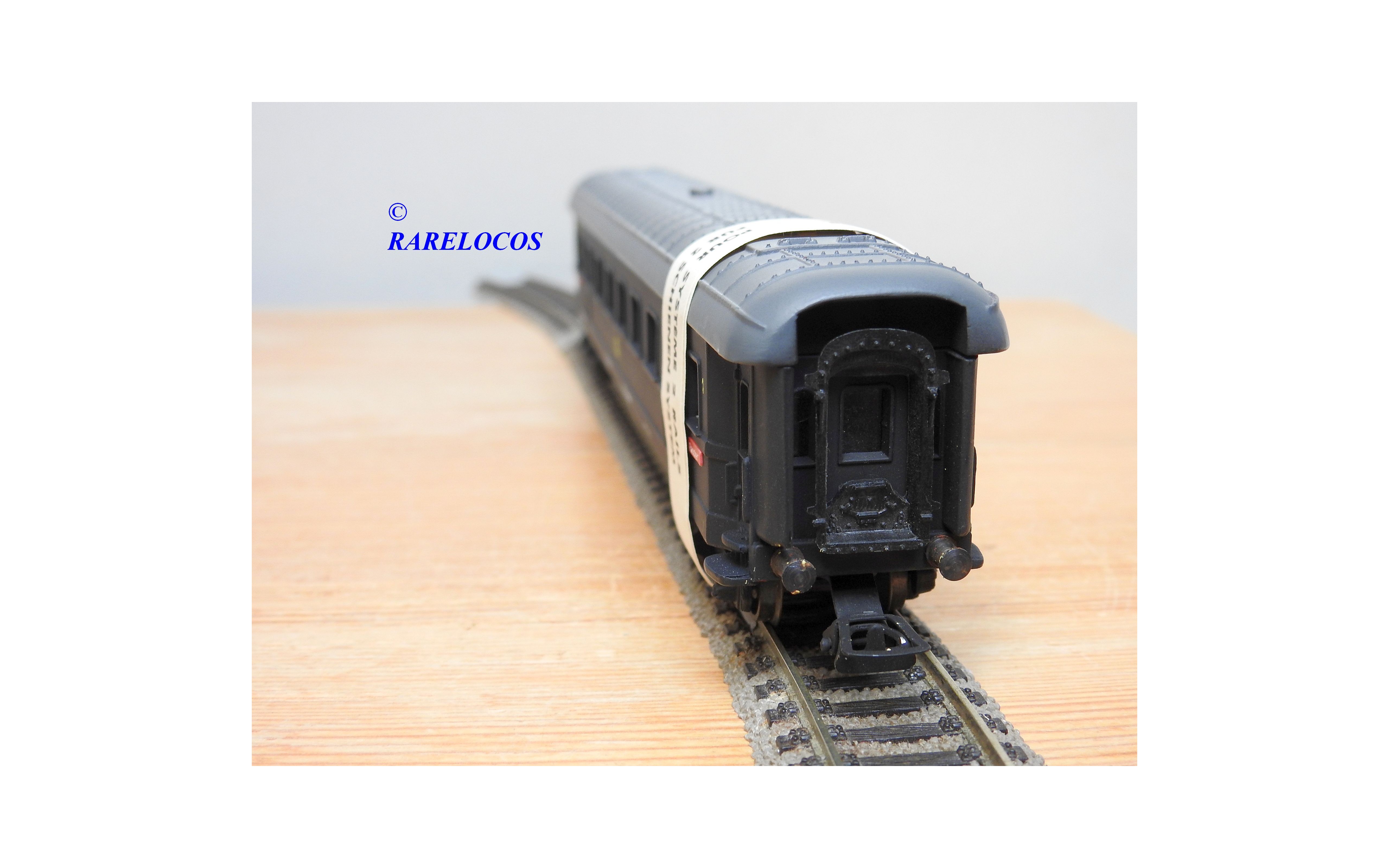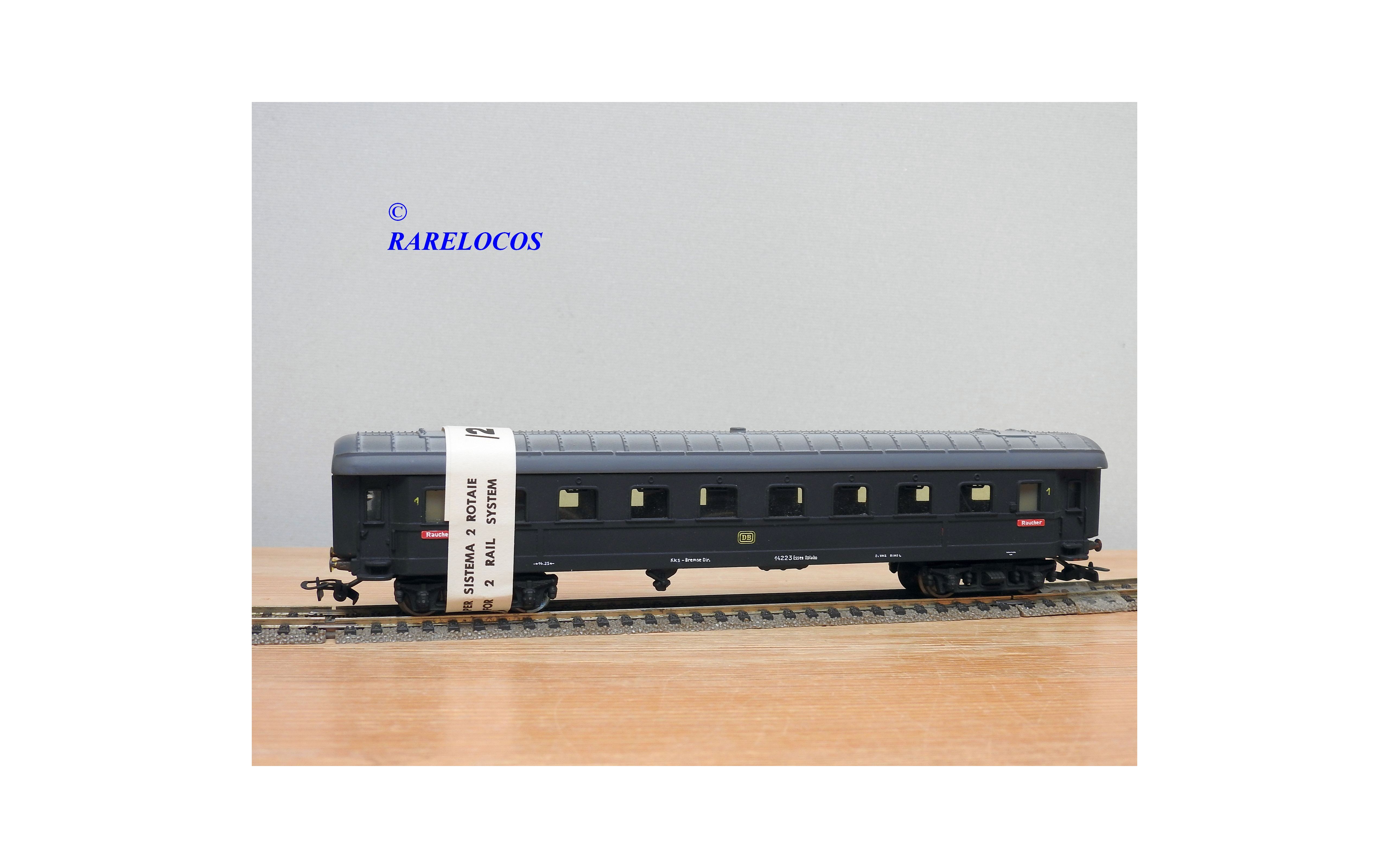 Très rare voiture grandes lignes de 1 ère classe à 2 bogies des chemins de fer allemands (DB ), livrée bleue à toit gris, en fait sur celle ci la couleur est très proche du noir mat ?, immatriculation :14223 Esh, boîte d'origine en état correct.
