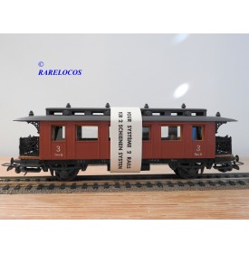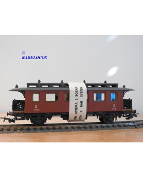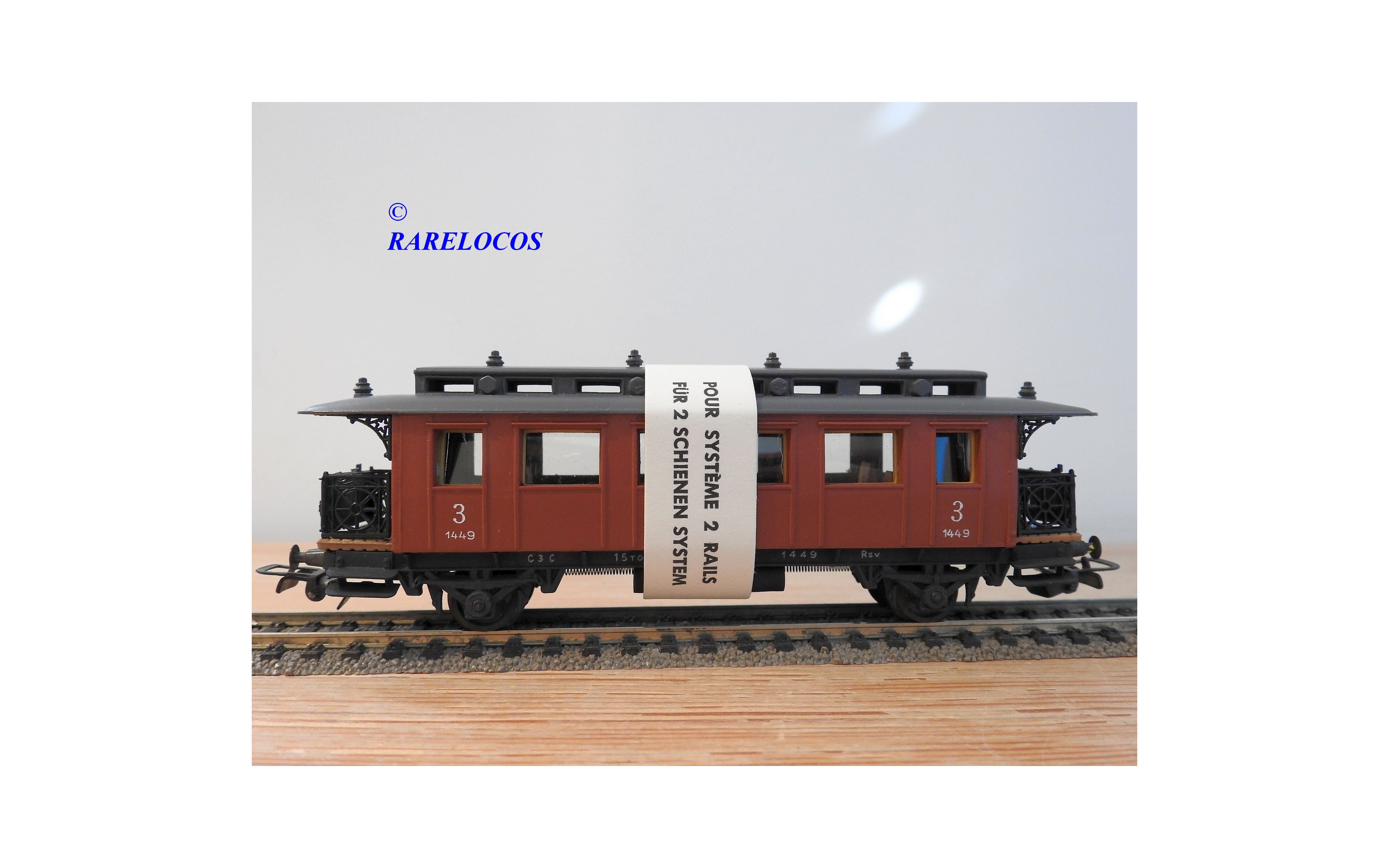 Rare voiture ancienne à plate forme d'extrémité à 2 essieux de 3 ème classe des chemins de fer suédois ( SJ), livrée brune à toit gris, immatriculation : 1449, boîte d'origine en excellent état.