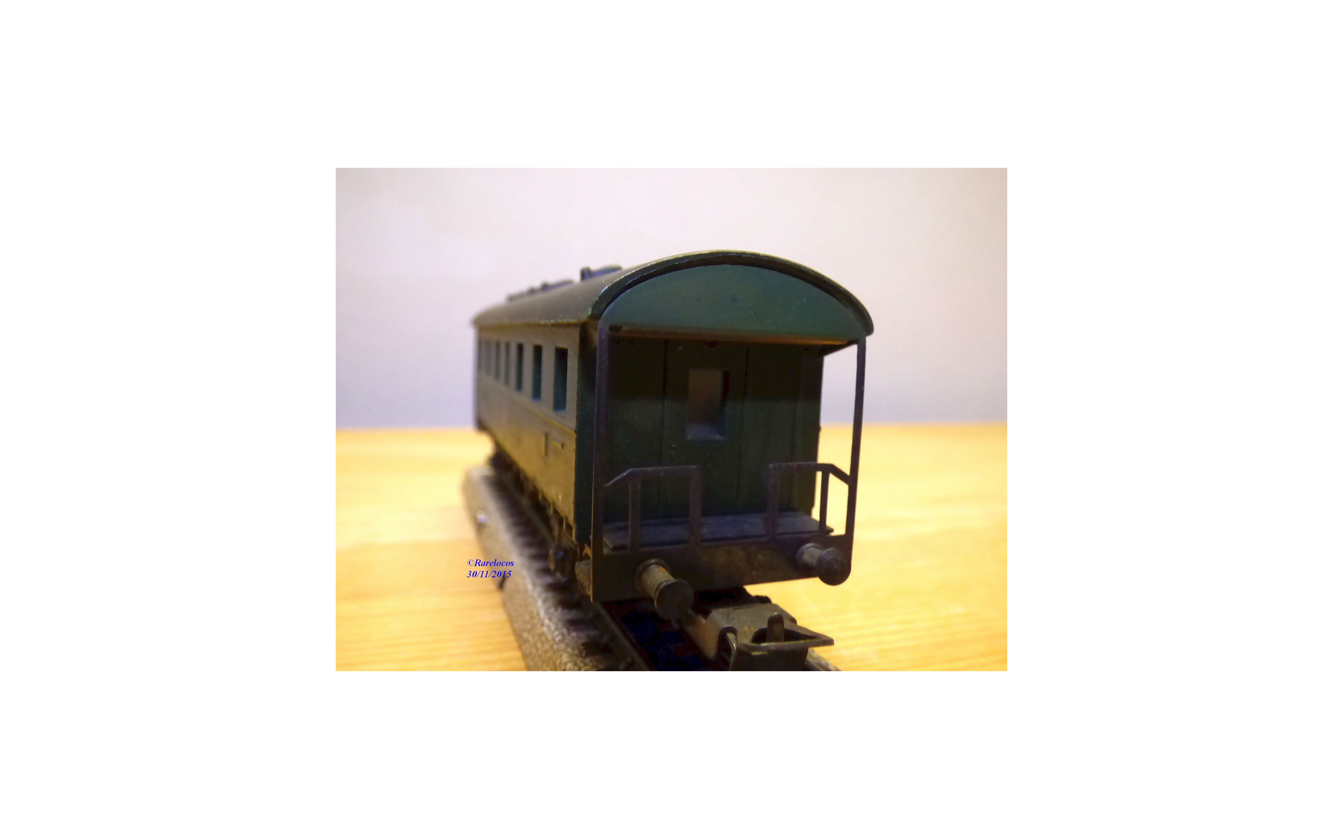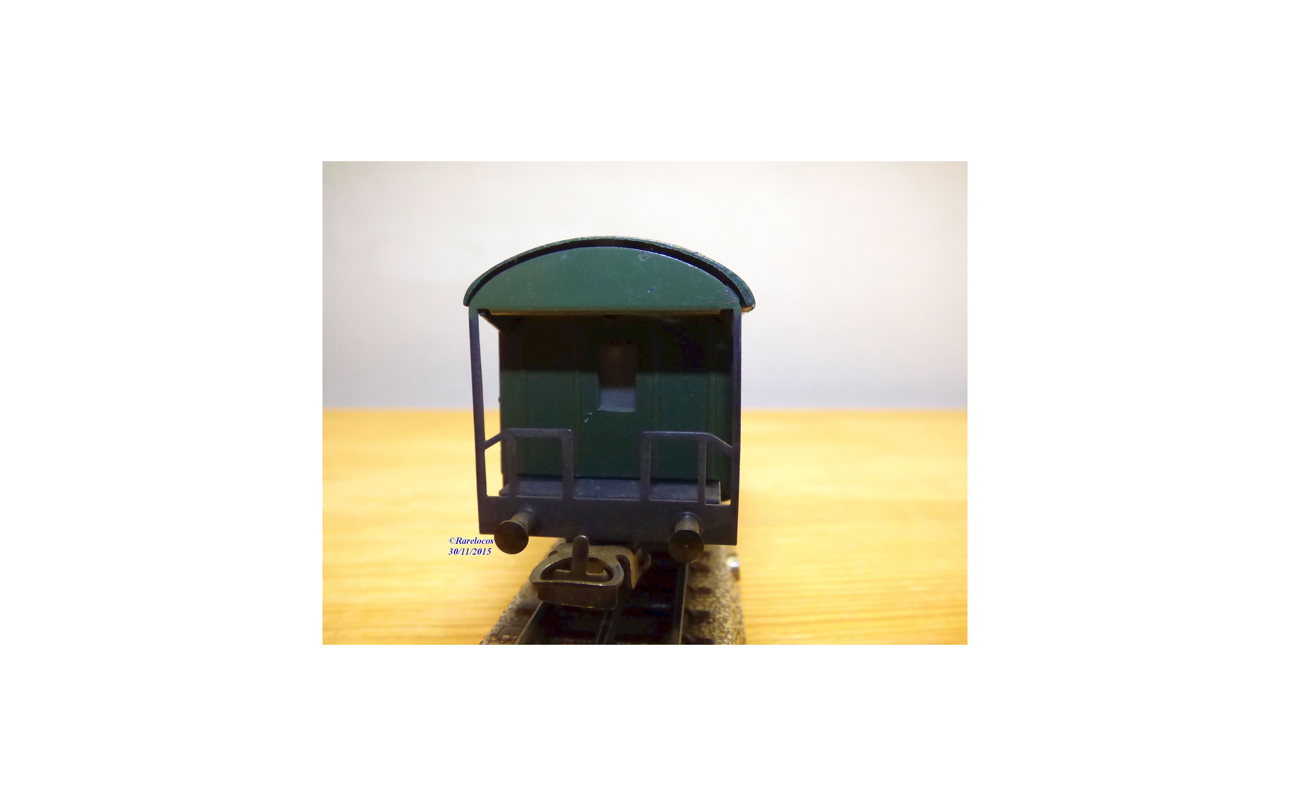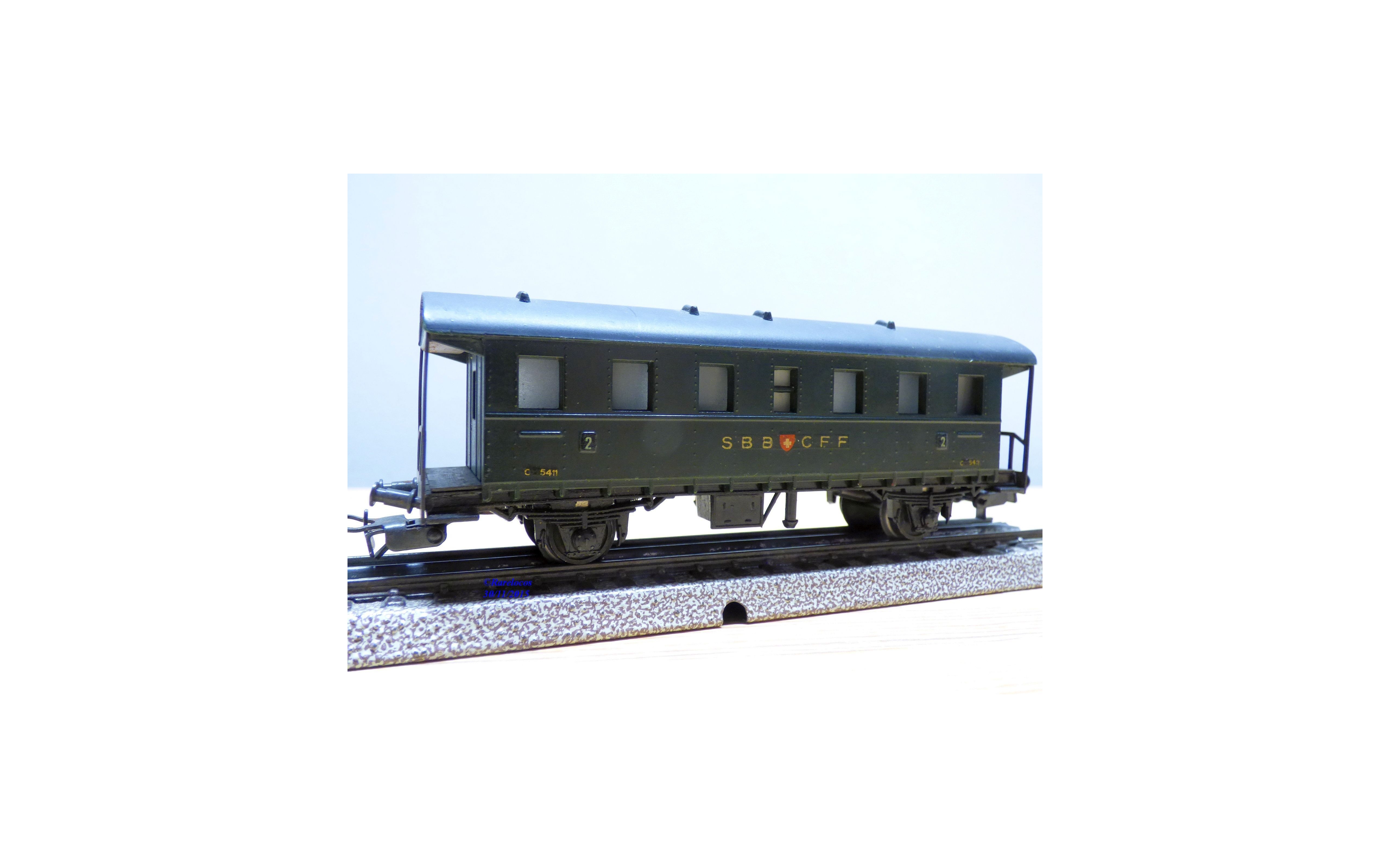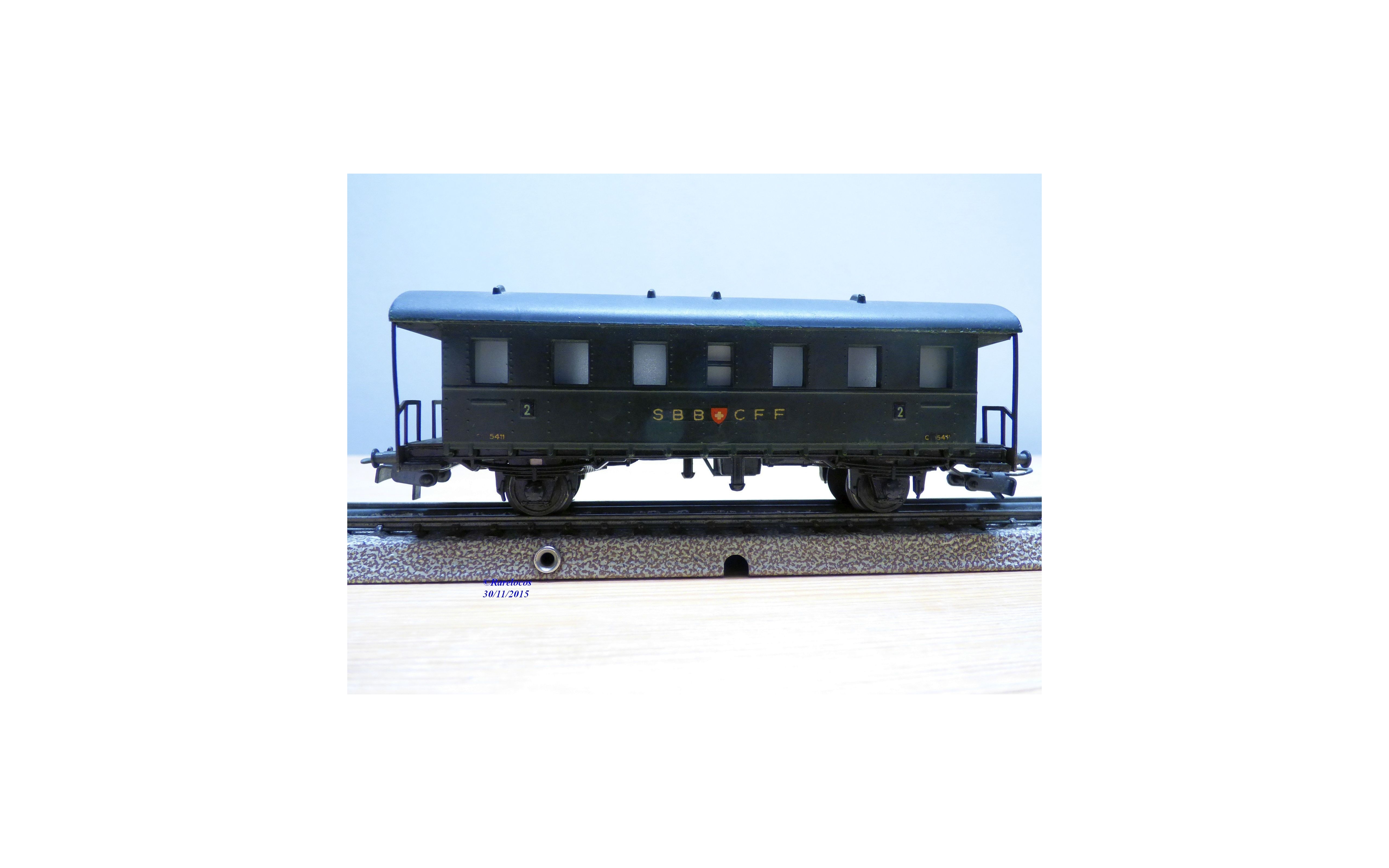 Rare voiture à plate formes d'extrémité de 2 ème classe à 2 essieux des chemins de fer suisses ( SBB/CFF/FFS ), livrée vert sapin à toit gris, immatriculation : 5411, pas de boîte d'origine.