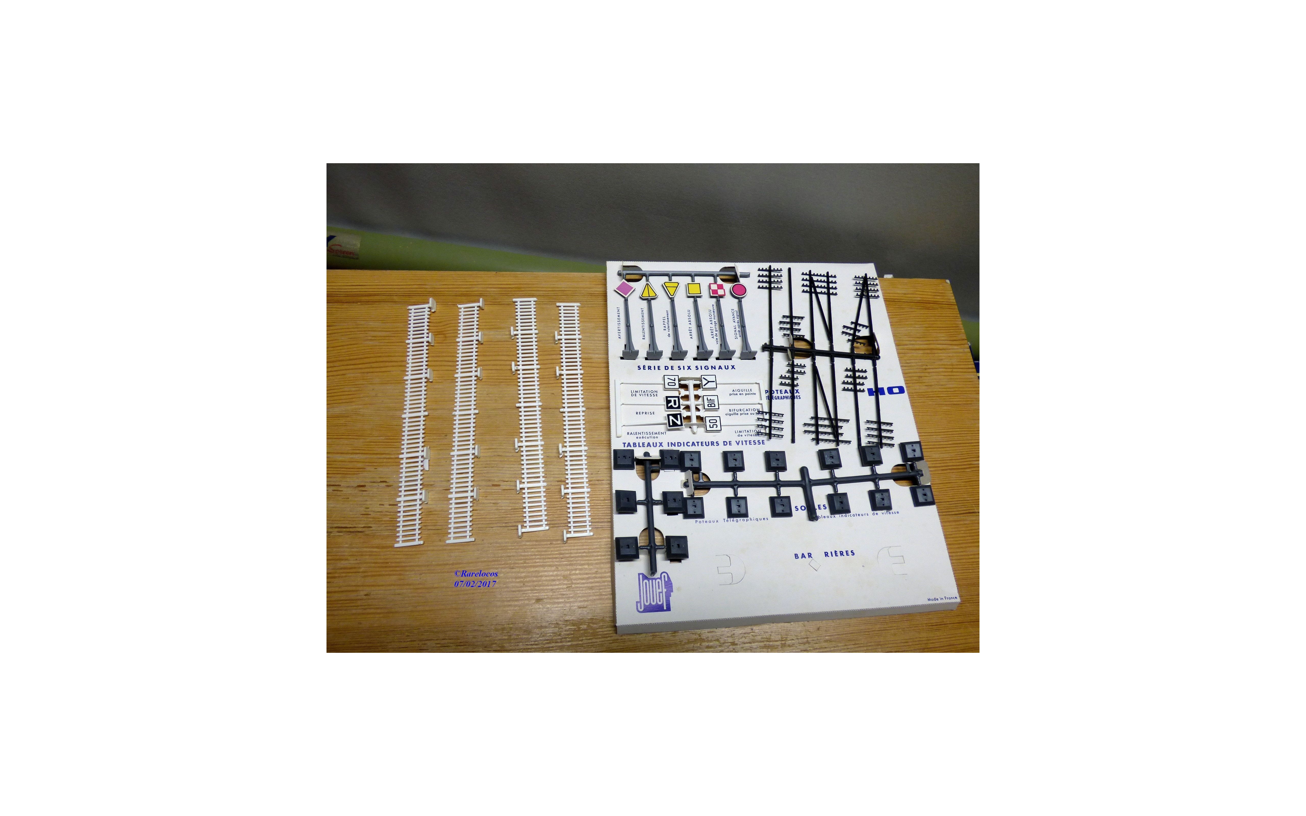 Maquette à construire ( kit ) en matière plastique permettant la réalisation de divers signaux et accessoires ferroviaires, boîte d'origine en très bon état.
