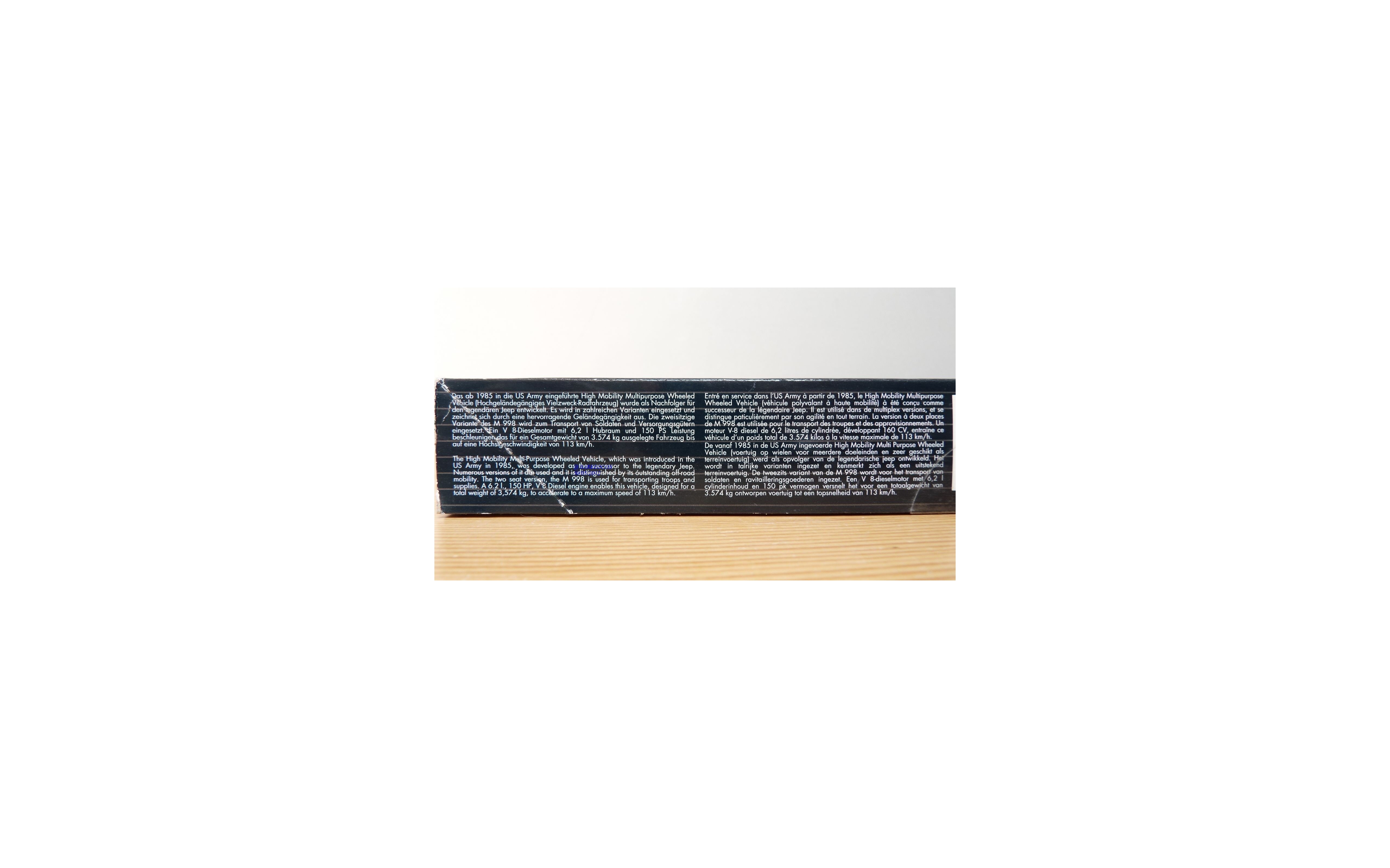 Maquette à monter ( kit ) en plastique à l'échelle 1/35 du véhicule tout terrain de l'armée américaine HUMMER HMMWV M998 Cargo/troop carrier, grappes encore scellées, décalcomanies pour 4 versions, boîte d'origine en bon état .