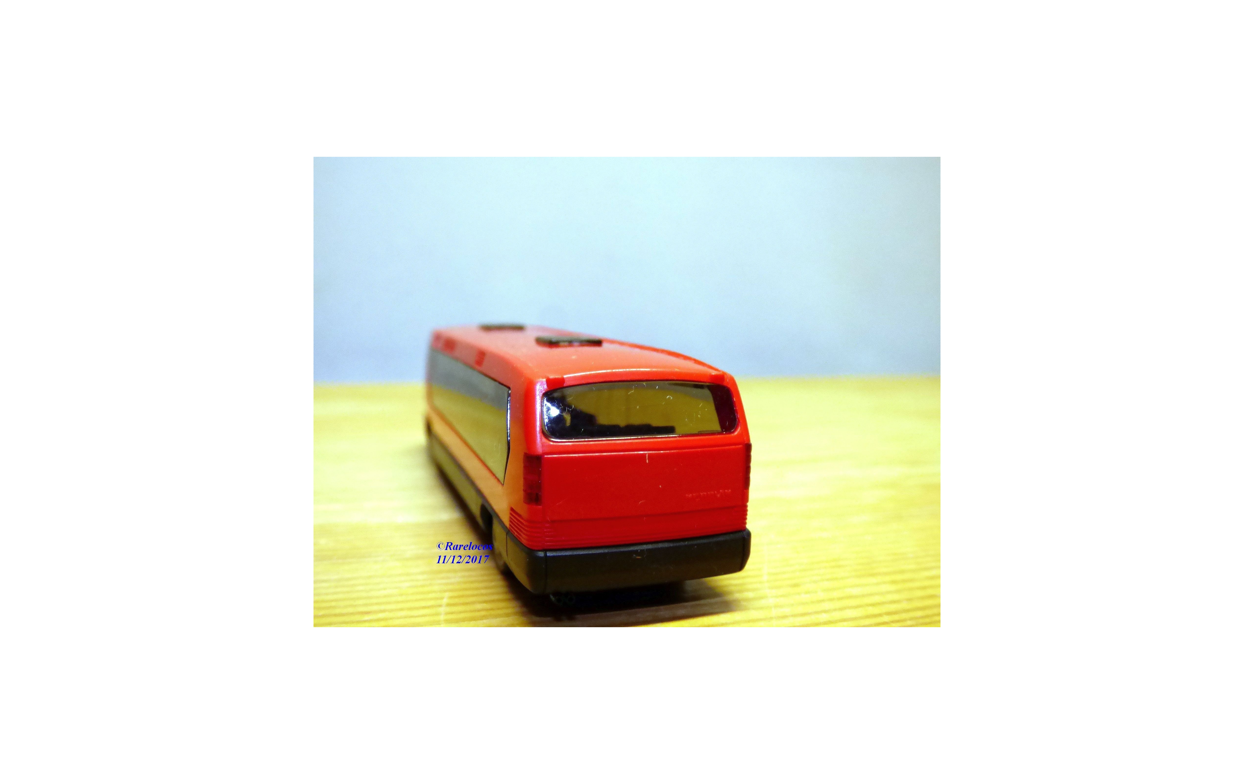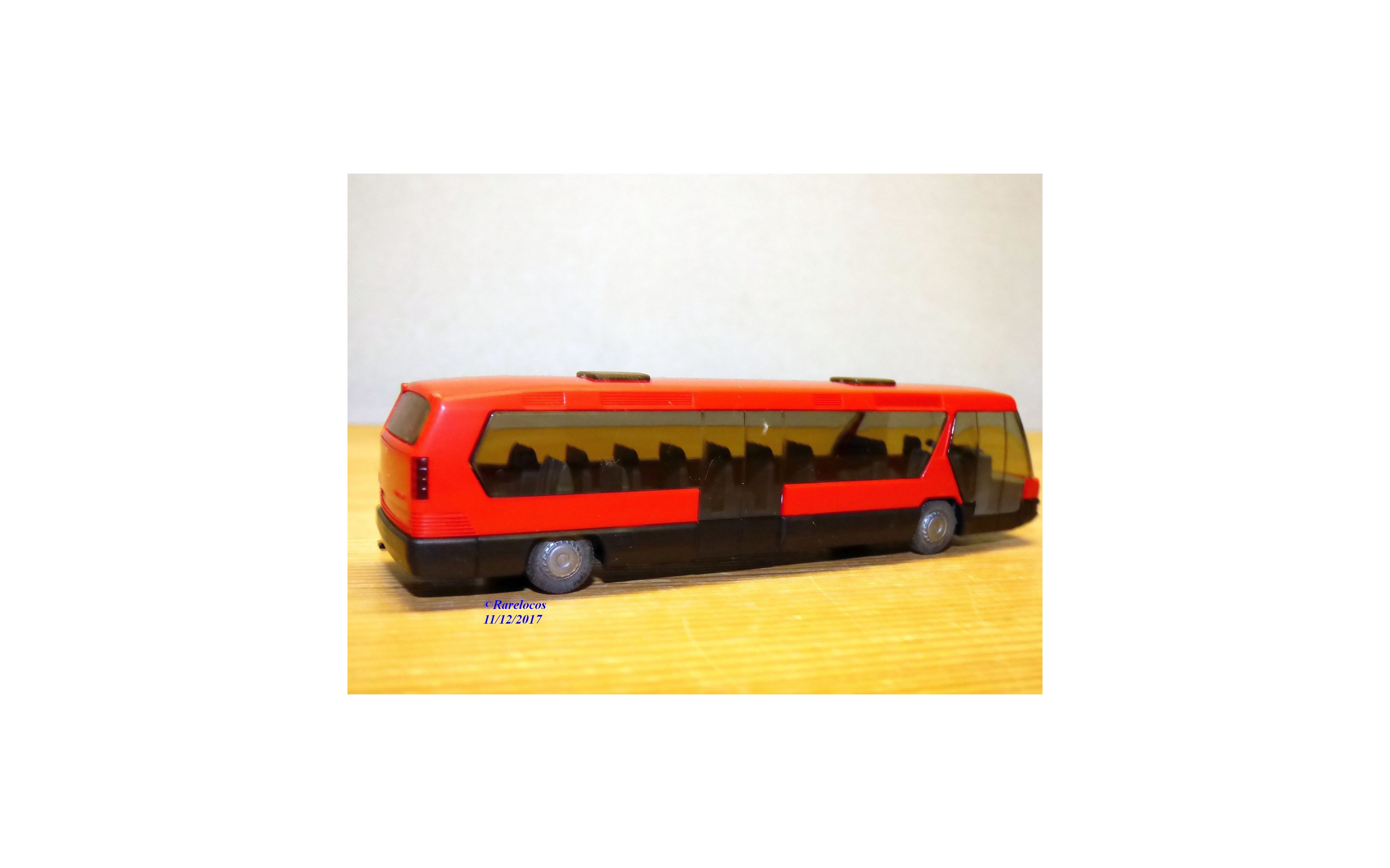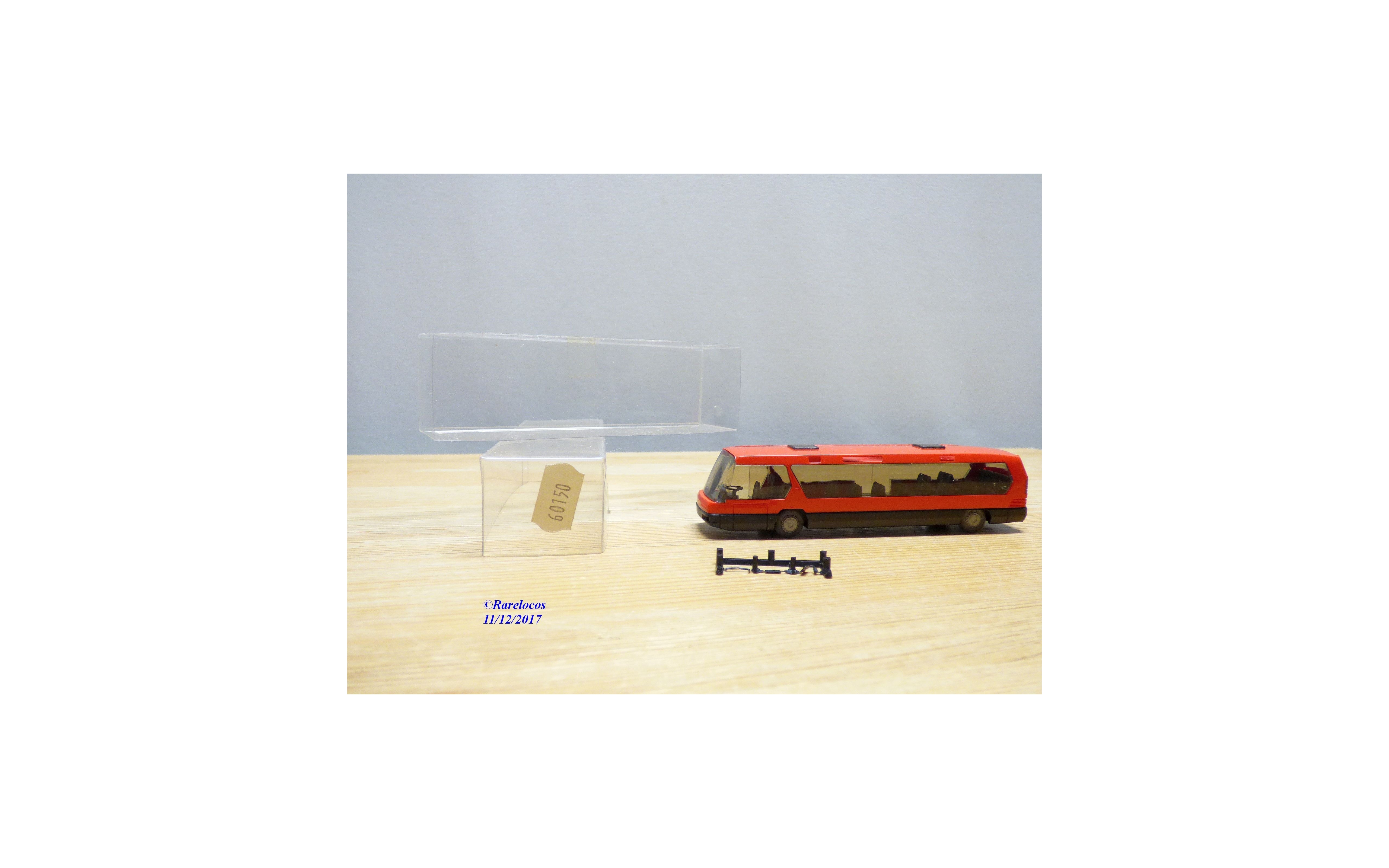 Modèle réduit à l'échelle du 1/87 ème ( échelle HO) de l'autocar NEOPLAN Metroliner , livrée rouge orangé et noire, pièces de détaillage encore en grappes, boîte d'origine en état neuf.