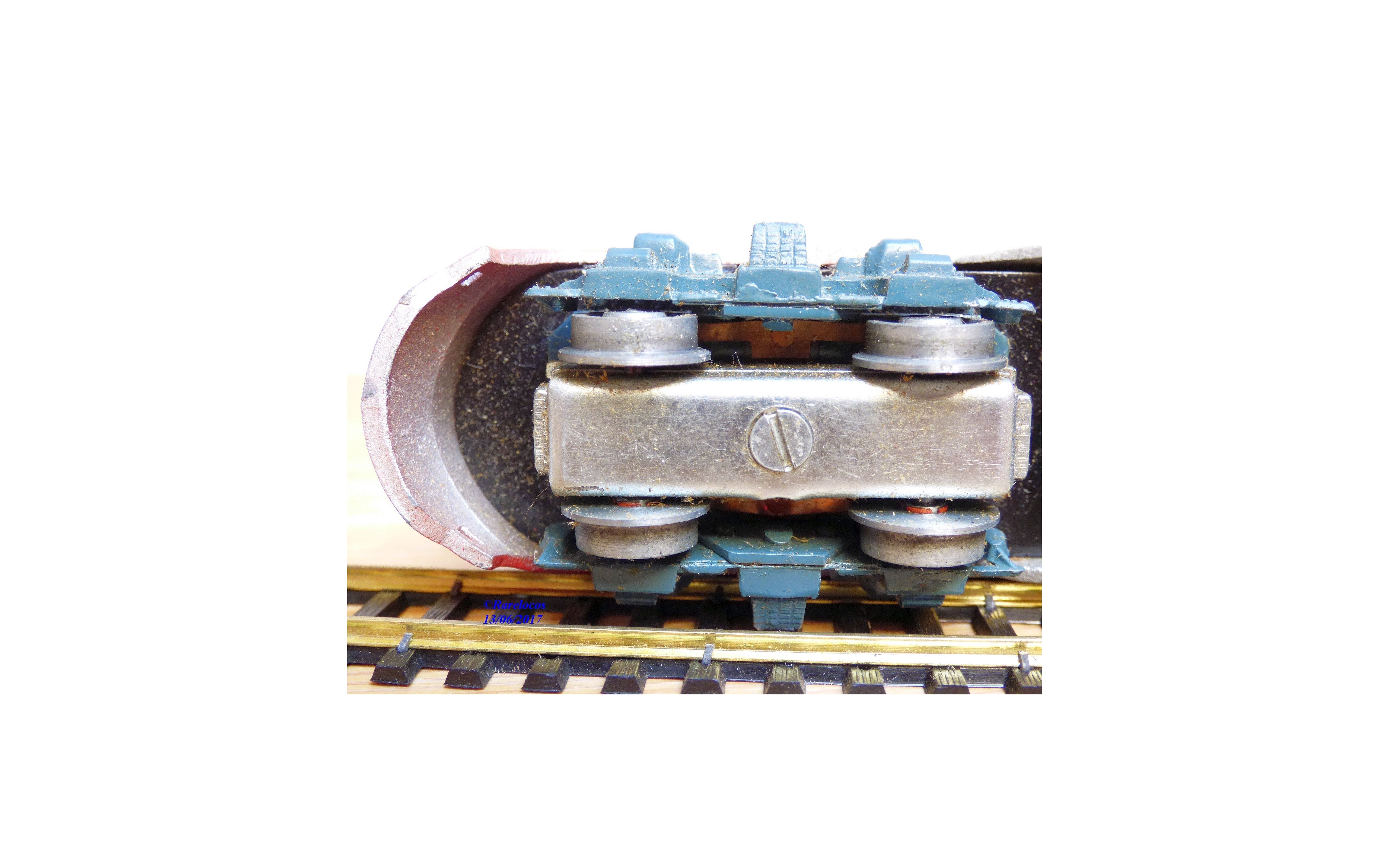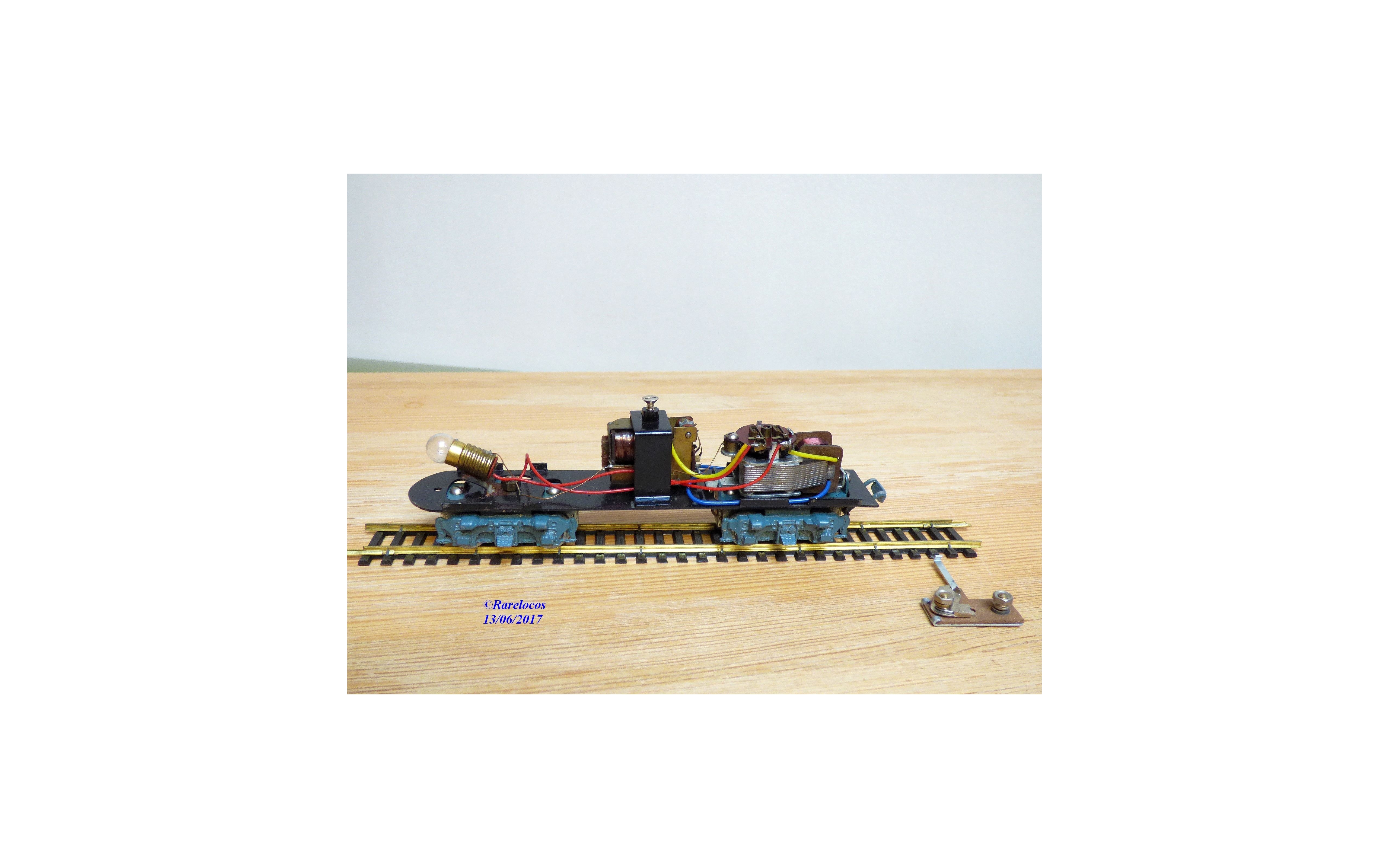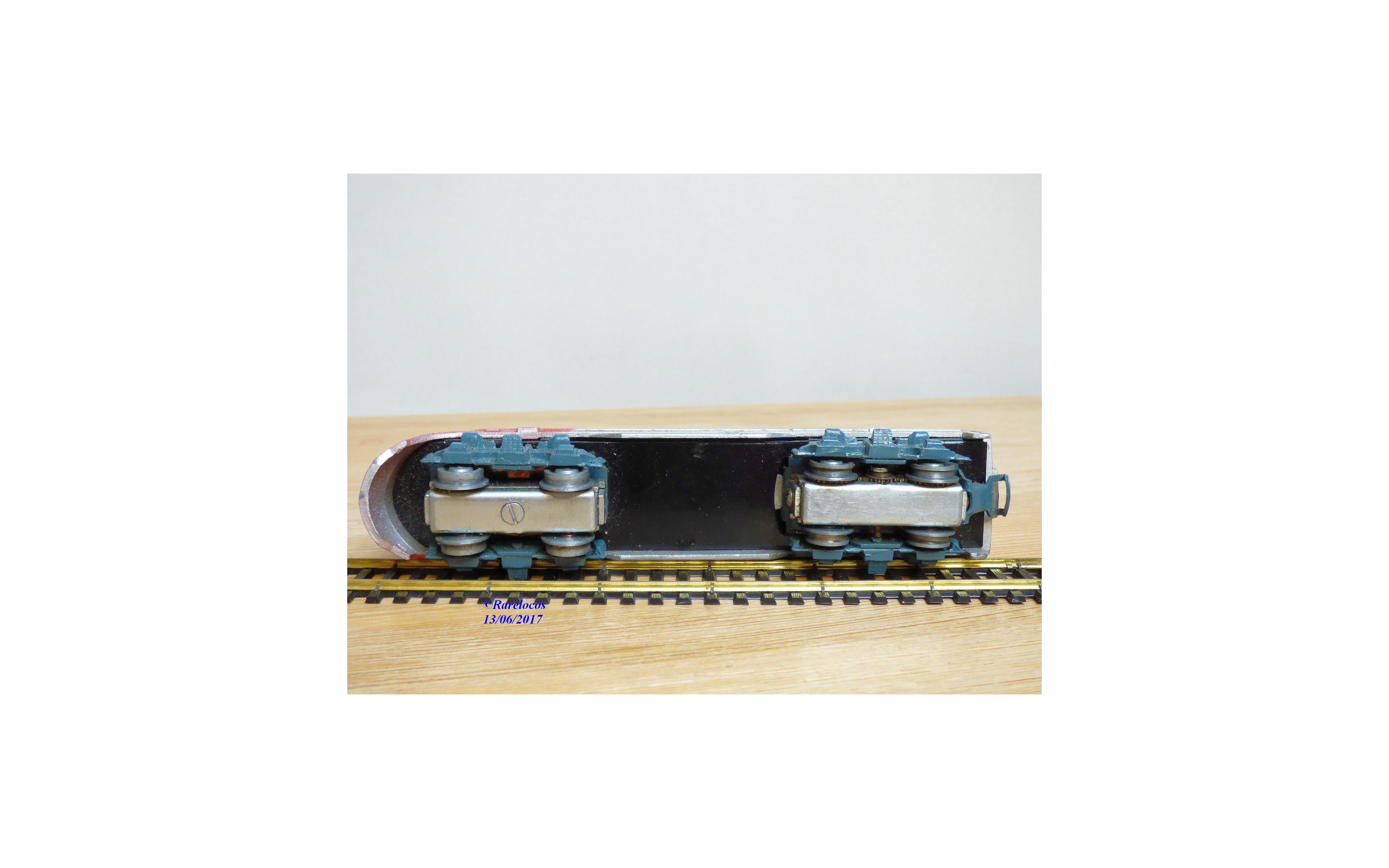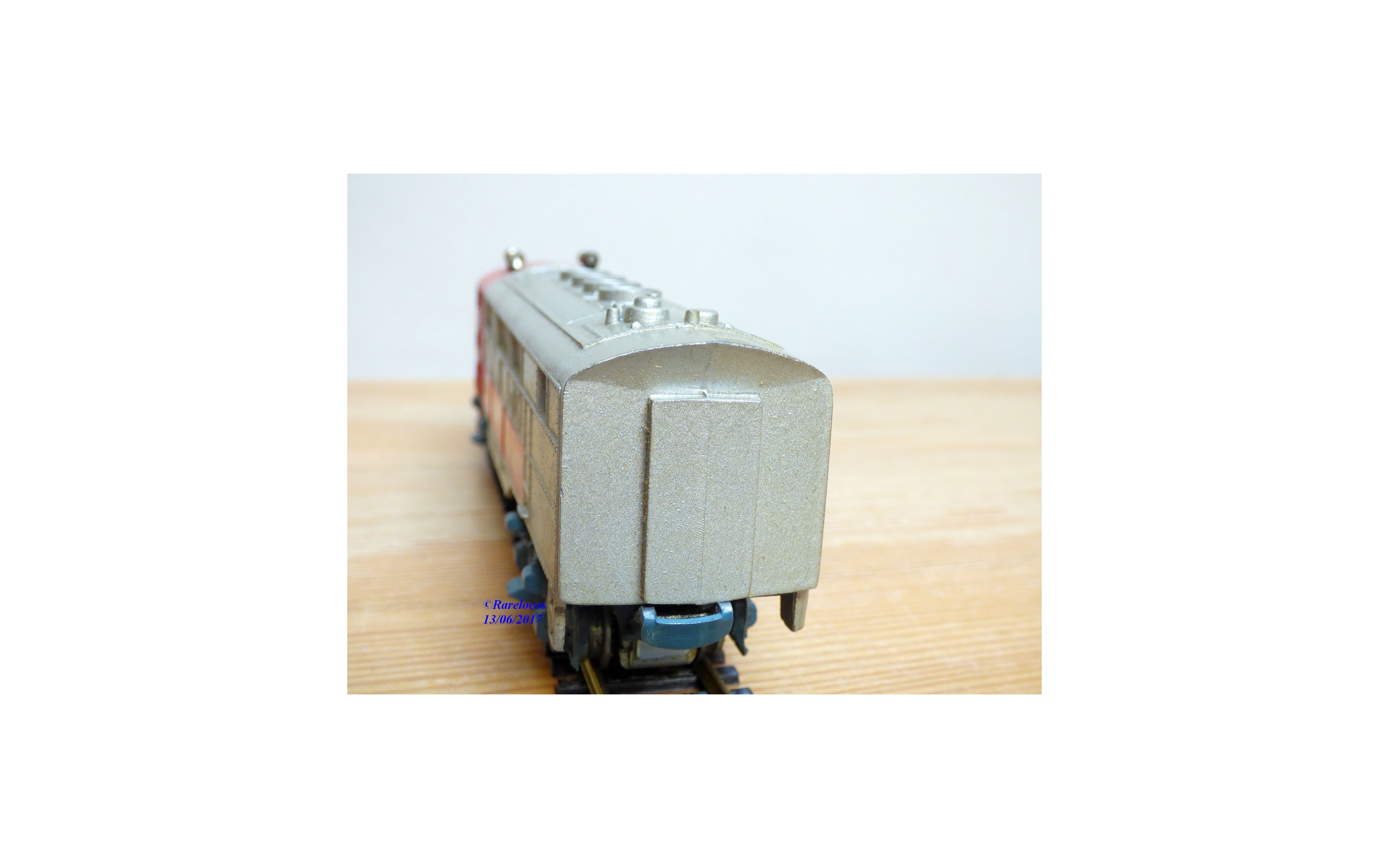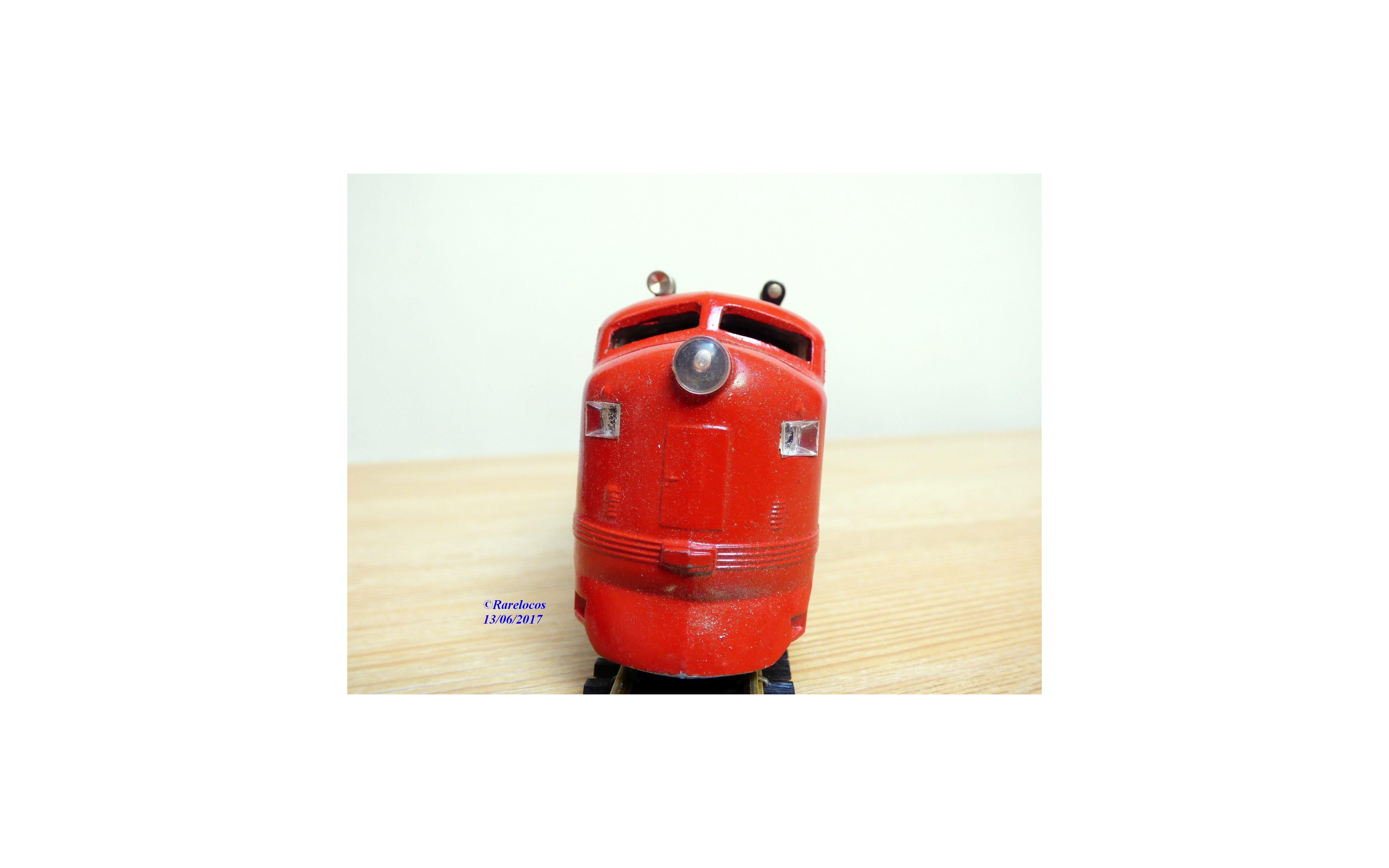 L'attelage de la loco est tordu, quasi impossible à redresser car intégré au bogie qui est en zamak, et il n' y a plus de bandages, l' éclairage fonctionne ( voir photos ).