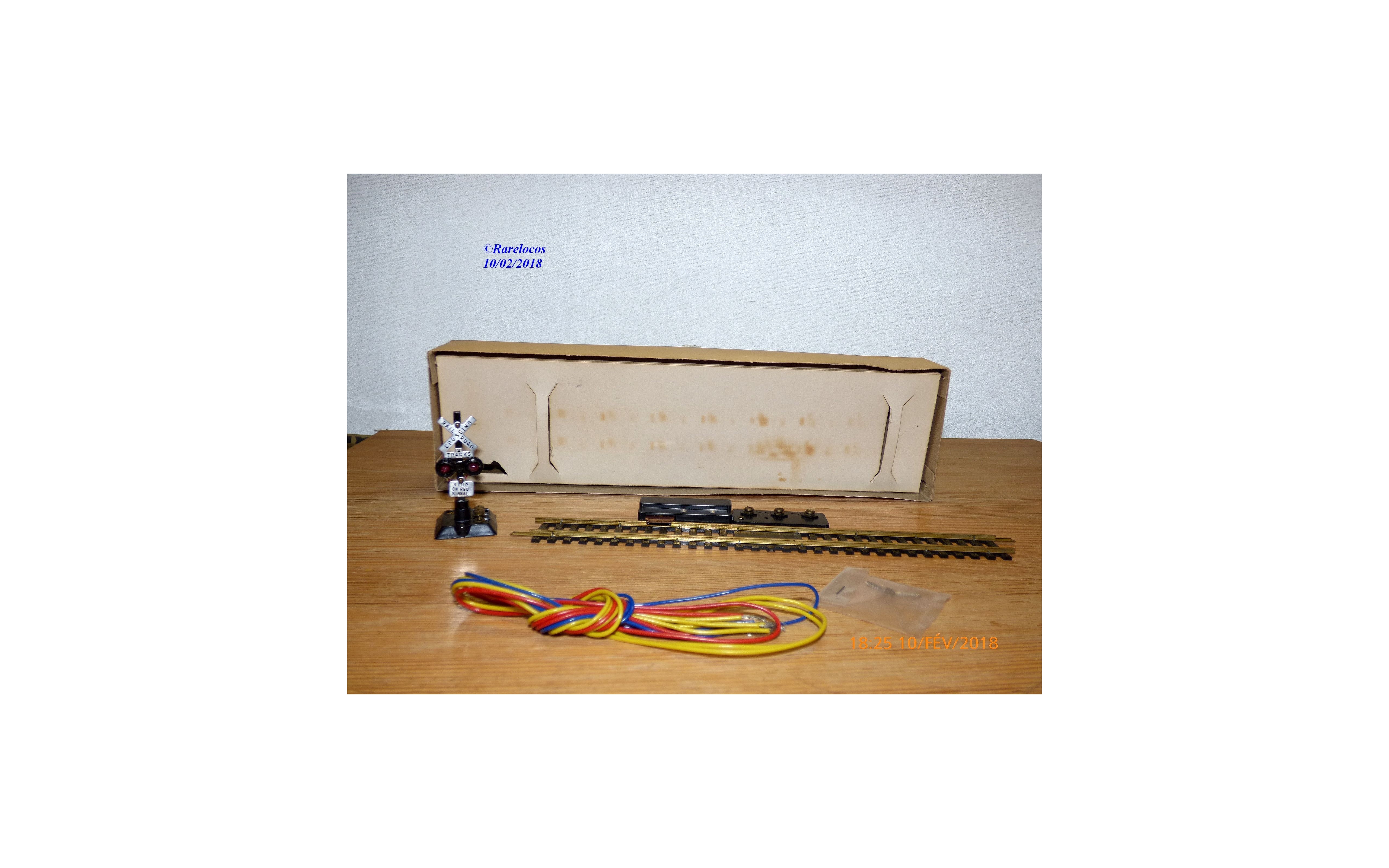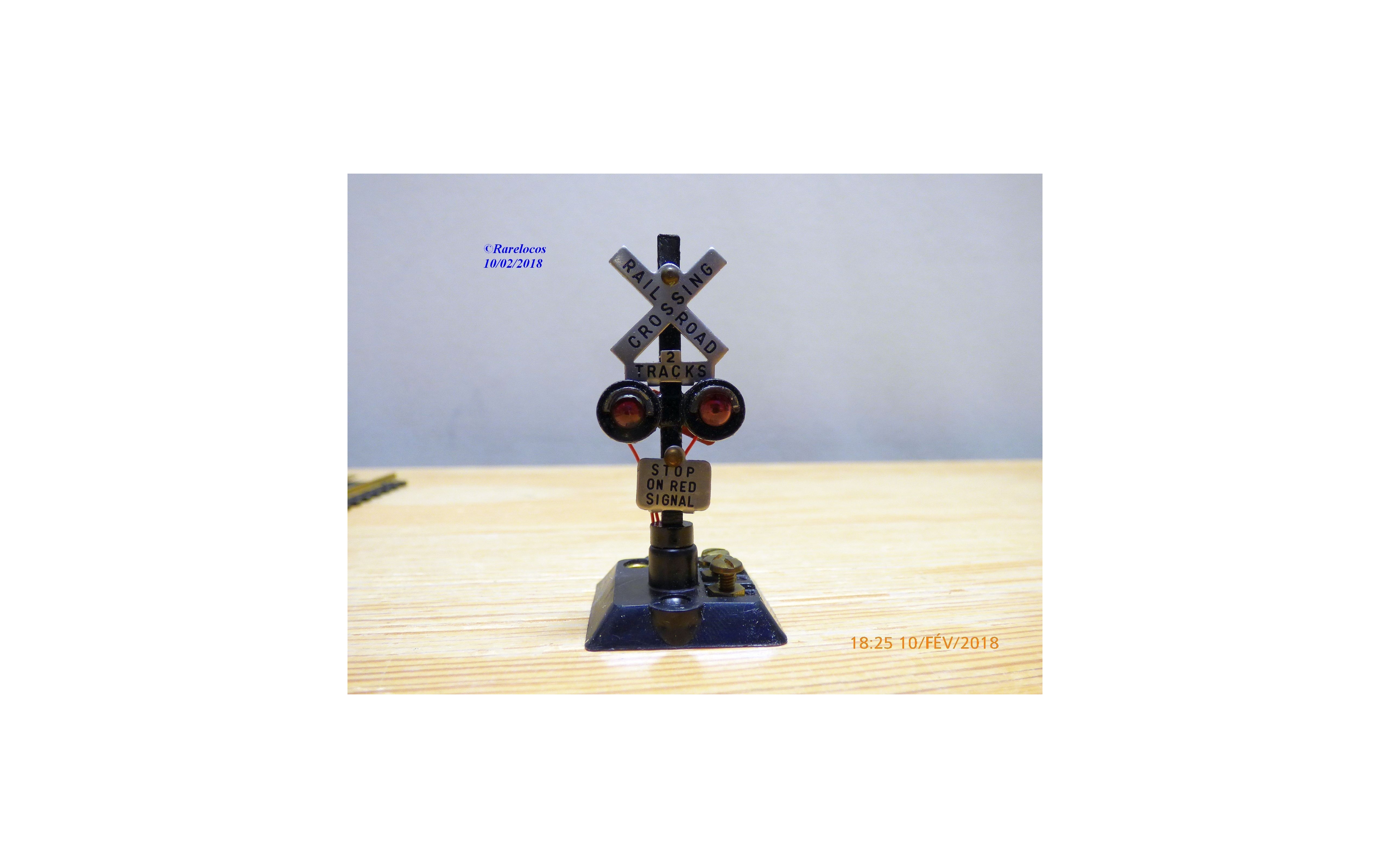 Elément de voie droit et signal à 2 feux des chemins de fer américains, notice présente, boîte d'origine en état neuf.